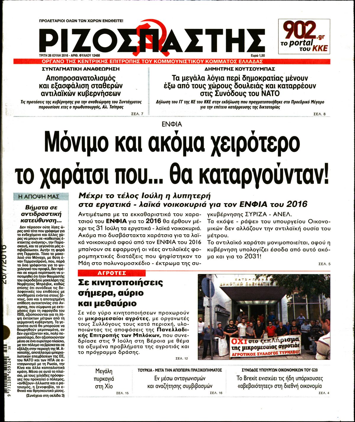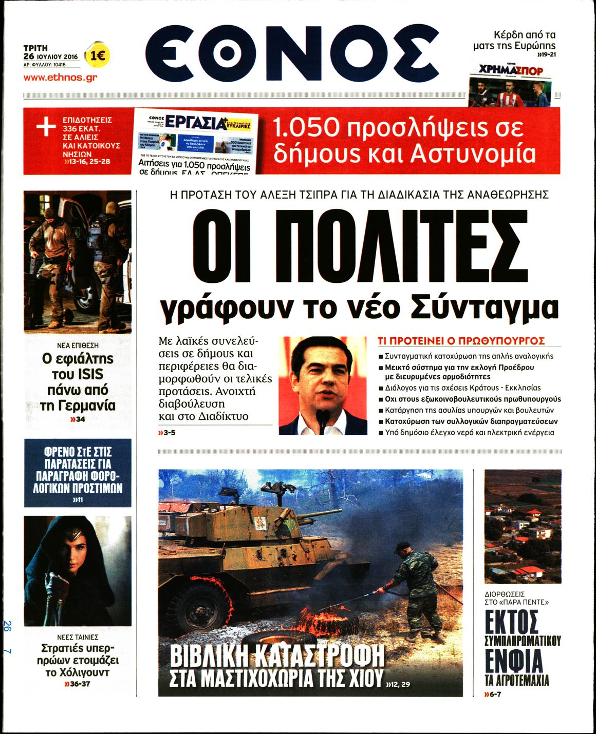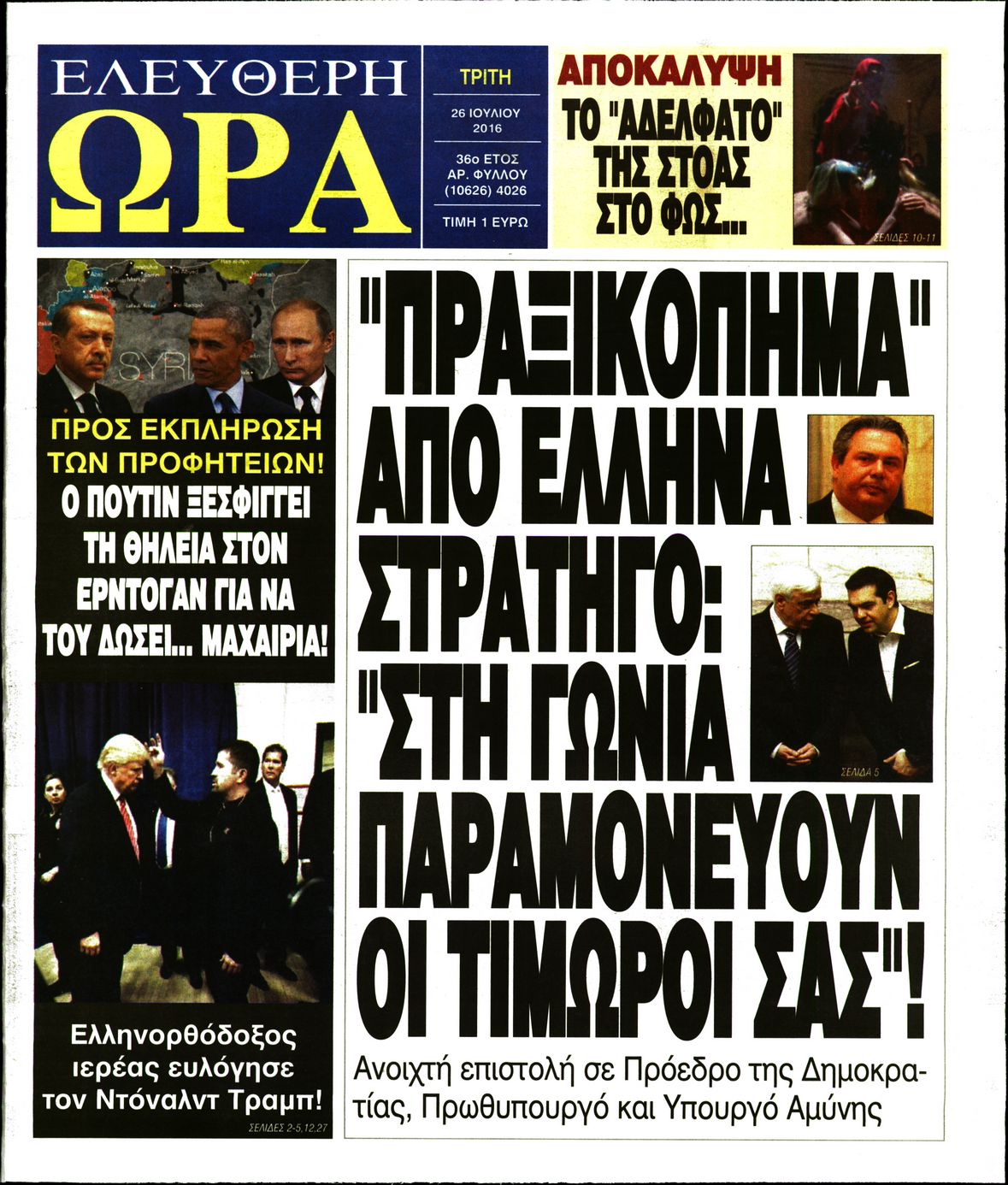 Οι πολιτικές εφημερίδες 26/7/2016 Enikos Newsroom 05:19, Τρίτη 26 Ιουλίου 2016 Media Διαβάστε τα σημερινά πρωτοσέλιδα των πολιτικών εφημερίδων: ΠΟΛΙΤΙΚΕΣ ΕΦΗΜΕΡΙΔΕΣ ΠΡΩΤΟΣΕΛΙΔΑ Μοιράσου το: σχολίασε κι εσύ (0 σχόλια) Ακολουθήστε το enikos.gr στο Google News και μάθετε πρώτοι όλες τις ειδήσεις Δείτε όλες τις τελευταίες ειδήσεις από την Ελλάδα και τον Κόσμο στο enikos.gr Ειδήσεις Ροή Ειδήσεων 6 ώρες πριν Εκτός ευρωομάδας ΣΥΡΙΖΑ ο Νίκος Παππάς μετά την επίθεση στον δημοσιογράφο Νίκο Γιαννόπουλο – Η μήνυση και οι νέες δηλώσεις 6 ώρες πριν «Αγριεύουν» οι αγρότες: «Δεν συντρέχει λόγος συνάντησης με τον πρωθυπουργό» – Ώρα αποφάσεων στη σύσκεψη της Πέμπτης 6 ώρες πριν Κυψέλη: Χωρίς την οικογένειά της δίπλα της απολογήθηκε η 16χρονη – «Της είχε επιτεθεί κάποιος για να την βιάσει, φοβήθηκε και κυκλοφορούσε με μαχαίρι» 6 ώρες πριν Politico: Το πρόβλημα της Ευρώπης δεν είναι το Βέλγιο αλλά ο Ντόναλντ Τραμπ 8 ώρες πριν Αλεξανδρούπολη: Πολυοργανική ανεπάρκεια λόγω υποσιτισμού η αιτία θανάτου του 3χρονου αγοριού 6 ώρες πριν Μυστήριο με τεράστιες κυκλικές πέτρες 200 κιλών – Ανακαλύφθηκαν τυχαία κατά τη διάρκεια οδικών έργων και κανείς δεν ξέρει από πού προέρχονται 7 ώρες πριν Ύπνος: Ειδικός εξηγεί τον πραγματικό λόγο που ξυπνάτε στις 4 τα ξημερώματα – Ο ρόλος των ορμονών και του κιρκάδιου ρυθμού 8 ώρες πριν Αριθμολογία: Οι άνθρωποι που έχουν γεννηθεί αυτές τις 4 ημερομηνίες, είναι τρυφεροί και αγαπούν ανιδιοτελώς 20 ώρες πριν 20 χρόνια τα Χριστούγεννα ξεκινούν στα Public με μεγάλη ποικιλία σε δώρα! 6 λεπτά πριν Αυστραλία: Κυβερνητική δέσμευση για αυστηρότερα μέτρα κατά της υποκίνησης μίσους 21 λεπτά πριν Ντόναλντ Τραμπ: Παρουσίασε τα επιτεύγματα της διακυβέρνησής του – Σκληρή κριτική στον Τζο Μπάιντεν 36 λεπτά πριν Κτηνοτρόφοι: Με δάκρυα στα μάτια ζουν τον εφιάλτη των άδειων στάβλων – «Καταστράφηκαν οι ζωές μας» 51 λεπτά πριν Νέο αμερικανικό πλήγμα σε σκάφος που φέρεται να μετέφερε ναρκωτικά στον Ειρηνικό – Τέσσερις νεκροί 1 ώρα πριν Αλ Τσαντίρι Νιουζ: «Λύγισε» ο Δημήτρης Λάλος για τον Δημήτρη Ήμελλο – «Τον μνημονεύω, να ‘ναι καλά εκεί που είναι» ENIKOS NETWORK Αϋπνία: Το κόλπο που θα σας βοηθήσει να κοιμηθείτε απόψε – Είναι απλό και έχει αποτέλεσμα 2,6 εκατομμύρια πολίτες έχουν ήδη εμβολιαστεί κατά της γρίπης ΕΛΣΤΑΤ: Τι δείχνουν τα νέα στοιχεία για τις ηλεκτρονικές παραγγελίες των επιχειρήσεων ΚΕΠΕ: Οι 3 διακριτές συμβολές των ΜμΕ και της μεταποίησης στην ελληνική οικονομία Χαρτογραφώντας το «σημείο χωρίς επιστροφή»: Για πρώτη φορά αποκαλύπτεται με λεπτομέρεια το ακανθώδες όριο της ατμόσφαιρας τ... Η Google καταργεί τη λειτουργία «dark web report» – Πώς θα μπορούν οι χρήστες να διαγράφουν τα δεδομένα τους περισσότερα 02:30 , Πέμπτη 18 Δεκεμβρίου 2025 Αλ Τσαντίρι Νιουζ: Η κόρη της Πάολα στο κοινό – Η ατάκα Λαζόπουλου που την έκανε να «κοκκινήσει» Γιορτινή διάθεση και ευχάριστες στιγμές γέμισε η αποψινή, τελευταία για το 2025, εκπομπή του «... 22:24 , Τετάρτη 17 Δεκεμβρίου 2025 Το Σπίτι Δίπλα Στο Ποτάμι: Σε κίνδυνο η υγεία του Απόστολου – Τι θα δούμε απόψε “Το Σπίτι Δίπλα στο Ποτάμι” ξετυλίγει το νήμα της ζωής των πέντε αδελφών με καταισ... 21:14 , Τετάρτη 17 Δεκεμβρίου 2025 Παιχνίδια Εκδίκησης: Θα καταφέρει ο Χρήστος να κλονίσει την εμπιστοσύνη της Μάγιας απέναντι στον Άγη; Τα «Παιχνίδια Εκδίκησης» έρχονται απόψε στις 22:30, στον Αντ1, με το τελευταίο επεισόδιο της χ... 20:57 , Τετάρτη 17 Δεκεμβρίου 2025 Άγιος Έρωτας: Η Χλόη καταθέτει εναντ