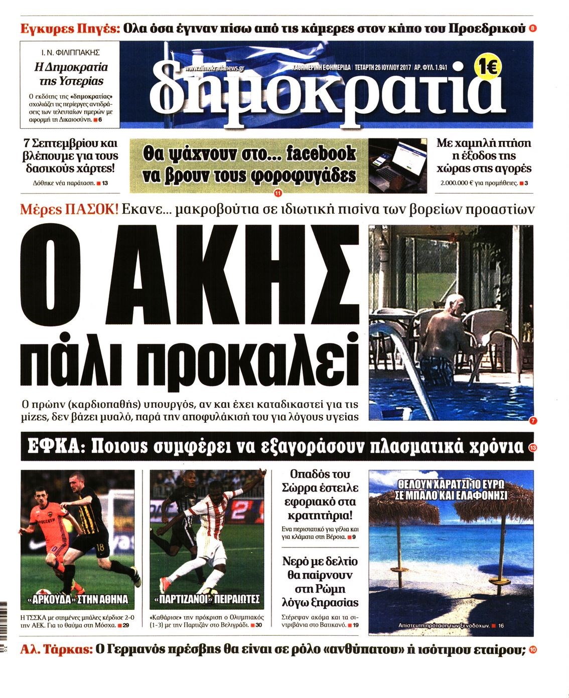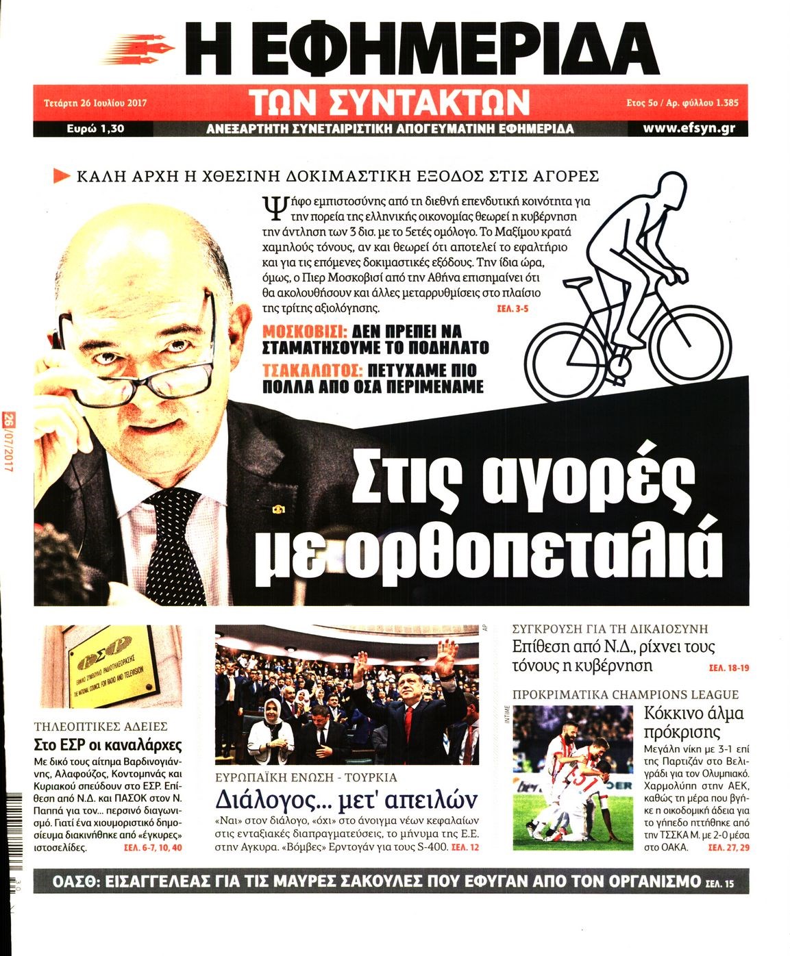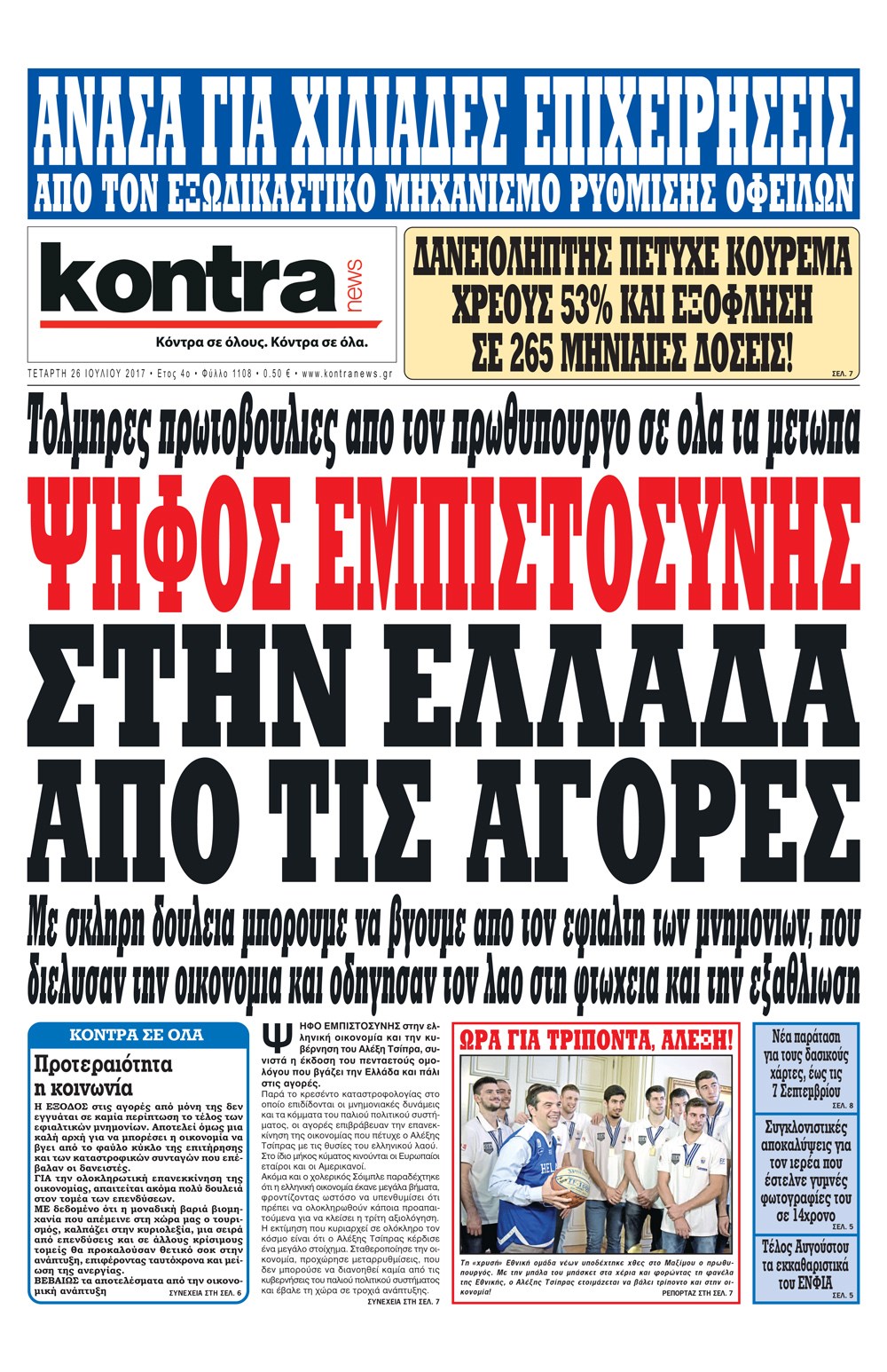 Οι πολιτικές εφημερίδες 26/7/2017 Enikos Newsroom 07:39, Τετάρτη 26 Ιουλίου 2017 Media Διαβάστε τα σημερινά πρωτοσέλιδα των πολιτικών εφημερίδων: ΠΟΛΙΤΙΚΕΣ ΕΦΗΜΕΡΙΔΕΣ ΠΡΩΤΟΣΕΛΙΔΑ Μοιράσου το: σχολίασε κι εσύ (0 σχόλια) Ακολουθήστε το enikos.gr στο Google News και μάθετε πρώτοι όλες τις ειδήσεις Δείτε όλες τις τελευταίες ειδήσεις από την Ελλάδα και τον Κόσμο στο enikos.gr Ειδήσεις Ροή Ειδήσεων 4 ώρες πριν Από το Ορμένιο ως τα Μάλγαρα κι από τη Σιάτιστα μέχρι τη Νίκαια: Μπλόκα σε όλη την Ελλάδα – Το Σάββατο ανοίγουν τα διόδια οι αγρότες 1 ώρα πριν Εμπλοκή και αερομαχίες με οπλισμένα τουρκικά F-16 στο Αιγαίο 3 ώρες πριν Αττική: Θρίλερ με νεκρό βρέφος 5 μηνών – Κοιμόταν στο ίδιο κρεβάτι με τους γονείς του 1 ώρα πριν Πούτιν: «Ναι, είμαι ερωτευμένος» – Βίντεο από τη σπάνια προσωπική παραδοχή του 3 ώρες πριν Μεσόγειος: Η διαδρομή του ρωσικού τάνκερ «Qendil» και η στοχευμένη επίθεση της Ουκρανίας με drone – Ο Πούτιν προειδοποίησε για αντίποινα 5 ώρες πριν Τα 5 ζώδια που ευνοούνται στην ερωτική ζωή τους την επόμενη εβδομάδα – «Η ενέργεια του Αιγόκερου φέρνει αγάπη και σταθερότητα» 6 ώρες πριν Αυτό το έξυπνο μαθηματικό κόλπο θα μπορούσε να αλλάξει τον τρόπο με τον οποίο οι επιστήμονες μελετούν τους σεισμούς 2 ώρες πριν Μήπως έχετε χάσει τον εαυτό σας στη σχέση σας; 7 «αθόρυβες» υποχωρήσεις που μάλλον κάνατε, χωρίς να το συνειδητοποιήσετε 4 ώρες πριν Κουίζ για την παλιά Αθήνα: Αναγνωρίζετε την περιοχή; Έχετε περάσει 100% από εκεί 8 λεπτά πριν Μπαράκ Ομπάμα: Τα βιβλία, οι ταινίες και τα τραγούδια που ξεχώρισε το 2025 – Πλήρης λίστα 13 λεπτά πριν Don’t Forget The Lyrics: Η Έλλη Κοκκίνου υποδέχεται 4 παίκτες που θα κάνουν τα πάντα για να μη χάσουν ούτε… μισή λέξη από τους στίχους 19 λεπτά πριν Πλεύρης στον ΑΝΤ1: Η βασική πολιτική που ψηφίστηκε από τους υπουργούς Μετανάστευσης είναι η δημιουργία κέντρων κράτησης μεταναστών στην Αφρική – ΒΙΝΤΕΟ 23 λεπτά πριν Η εξομολόγηση της Νίκης Σερέτη: «Δεν κρύβω ότι ήταν πάρα πολύ δύσκολο όλο αυτό που βίωσα» 29 λεπτά πριν Αγρότες: Κλειστό ξανά το ρεύμα εισόδου στα Μάλγαρα – Άνοιξαν τον κόμβο της Χαλκηδόνας ENIKOS NETWORK Έχετε πραγματικά μεγάλη καρδιά; 10 χαρακτηριστικά όσων έχουν καλοσύνη «Η σούπερ» γρίπη εξαπλώνεται στην Ευρώπη-Στοιχεία από το ECDC για την αποτελεσματικότητα του εμβολίου Επίδομα παιδιού: Πότε ανοίγει ξανά η πλατφόρμα για τις αιτήσεις Προκήρυξη ΑΣΕΠ για 397 μόνιμες προσλήψεις στο Δημόσιο: Βγήκαν τα προσωρινά αποτελέσματα – Πότε αρχίζει η υποβολή ενστάσεων Χαρτογραφώντας το «σημείο χωρίς επιστροφή»: Για πρώτη φορά αποκαλύπτεται με λεπτομέρεια το ακανθώδες όριο της ατμόσφαιρας τ... Η Google καταργεί τη λειτουργία «dark web report» – Πώς θα μπορούν οι χρήστες να διαγράφουν τα δεδομένα τους περισσότερα 20:37 , Παρασκευή 19 Δεκεμβρίου 2025 Don’t Forget The Lyrics: Η Έλλη Κοκκίνου υποδέχεται 4 παίκτες που θα κάνουν τα πάντα για να μη χάσουν ούτε… μισή λέξη από τους στίχους Το «Don’t Forget The Lyrics» επιστρέφει απόψε, Παρασκευή 19 Δεκεμβρίου, στις 21:00 με νέο επει... 19:31 , Παρασκευή 19 Δεκεμβρίου 2025 GNTM: Απόψε ο μεγάλος τελικός για τους 4 φιναλίστ Έπειτα από μήνες γεμάτους μόδα, δημιουργία και έντονες αναμετρήσεις, το GNTM 2025 κορυφώνεται,... 18:11 , Παρασκευή 19 Δεκεμβρίου 2025 Το σόι σου: Ο Άρης έρχεται στην Ελλάδα για τις γιορτές των Χριστουγέννων – Τι θα δούμε στο αποψινό εορταστικό επεισόδιο Ένα απολαυστικό, εορταστικό επεισόδιο της σειράς “Το σόι σου”, γεμάτο ευτράπελα αλ... 15:15 , Παρασκευή 19 Δεκεμβρίου 2025 Την Κυριακή 