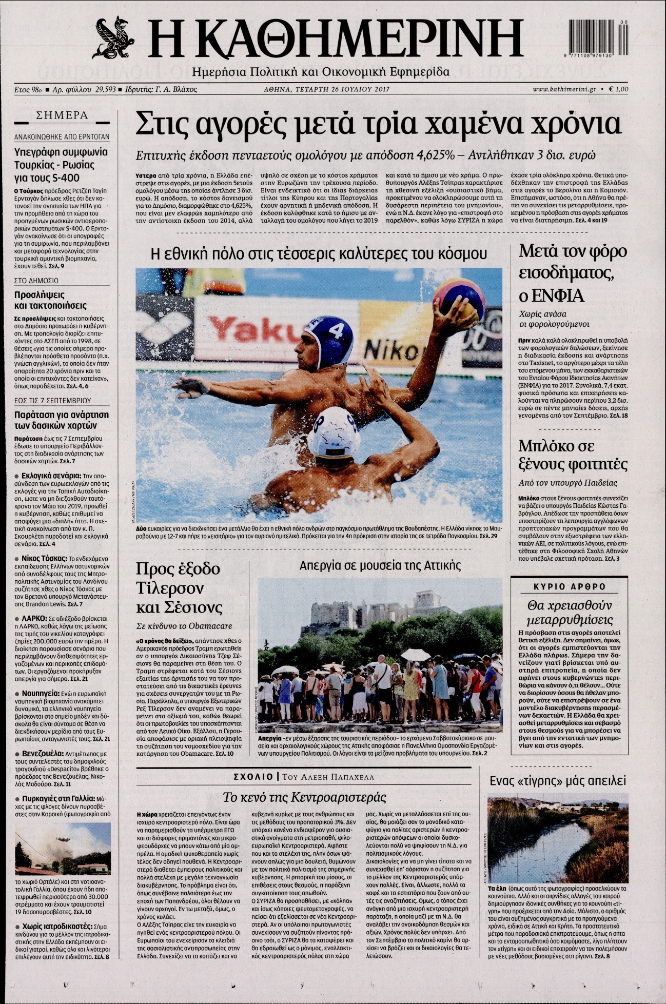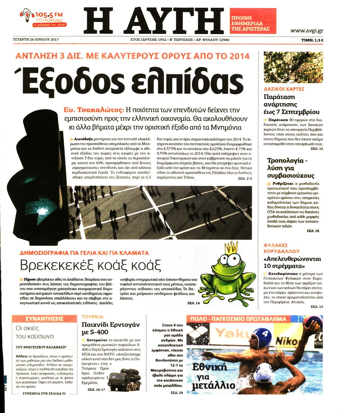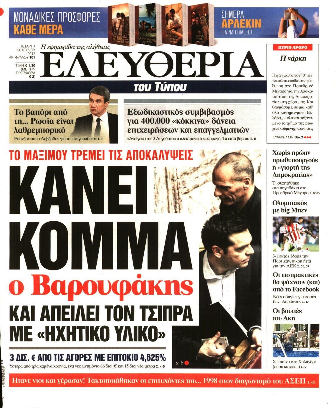 Οι πολιτικές εφημερίδες 26/7/2017 Enikos Newsroom 07:39, Τετάρτη 26 Ιουλίου 2017 Media Διαβάστε τα σημερινά πρωτοσέλιδα των πολιτικών εφημερίδων: ΠΟΛΙΤΙΚΕΣ ΕΦΗΜΕΡΙΔΕΣ ΠΡΩΤΟΣΕΛΙΔΑ Μοιράσου το: σχολίασε κι εσύ (0 σχόλια) Ακολουθήστε το enikos.gr στο Google News και μάθετε πρώτοι όλες τις ειδήσεις Δείτε όλες τις τελευταίες ειδήσεις από την Ελλάδα και τον Κόσμο στο enikos.gr Ειδήσεις Ροή Ειδήσεων 4 ώρες πριν Από το Ορμένιο ως τα Μάλγαρα κι από τη Σιάτιστα μέχρι τη Νίκαια: Μπλόκα σε όλη την Ελλάδα – Το Σάββατο ανοίγουν τα διόδια οι αγρότες 1 ώρα πριν Εμπλοκή και αερομαχίες με οπλισμένα τουρκικά F-16 στο Αιγαίο 3 ώρες πριν Αττική: Θρίλερ με νεκρό βρέφος 5 μηνών – Κοιμόταν στο ίδιο κρεβάτι με τους γονείς του 1 ώρα πριν Πούτιν: «Ναι, είμαι ερωτευμένος» – Βίντεο από τη σπάνια προσωπική παραδοχή του 3 ώρες πριν Μεσόγειος: Η διαδρομή του ρωσικού τάνκερ «Qendil» και η στοχευμένη επίθεση της Ουκρανίας με drone – Ο Πούτιν προειδοποίησε για αντίποινα 5 ώρες πριν Τα 5 ζώδια που ευνοούνται στην ερωτική ζωή τους την επόμενη εβδομάδα – «Η ενέργεια του Αιγόκερου φέρνει αγάπη και σταθερότητα» 6 ώρες πριν Αυτό το έξυπνο μαθηματικό κόλπο θα μπορούσε να αλλάξει τον τρόπο με τον οποίο οι επιστήμονες μελετούν τους σεισμούς 2 ώρες πριν Μήπως έχετε χάσει τον εαυτό σας στη σχέση σας; 7 «αθόρυβες» υποχωρήσεις που μάλλον κάνατε, χωρίς να το συνειδητοποιήσετε 4 ώρες πριν Κουίζ για την παλιά Αθήνα: Αναγνωρίζετε την περιοχή; Έχετε περάσει 100% από εκεί 8 λεπτά πριν Μπαράκ Ομπάμα: Τα βιβλία, οι ταινίες και τα τραγούδια που ξεχώρισε το 2025 – Πλήρης λίστα 13 λεπτά πριν Don’t Forget The Lyrics: Η Έλλη Κοκκίνου υποδέχεται 4 παίκτες που θα κάνουν τα πάντα για να μη χάσουν ούτε… μισή λέξη από τους στίχους 19 λεπτά πριν Πλεύρης στον ΑΝΤ1: Η βασική πολιτική που ψηφίστηκε από τους υπουργούς Μετανάστευσης είναι η δημιουργία κέντρων κράτησης μεταναστών στην Αφρική – ΒΙΝΤΕΟ 23 λεπτά πριν Η εξομολόγηση της Νίκης Σερέτη: «Δεν κρύβω ότι ήταν πάρα πολύ δύσκολο όλο αυτό που βίωσα» 29 λεπτά πριν Αγρότες: Κλειστό ξανά το ρεύμα εισόδου στα Μάλγαρα – Άνοιξαν τον κόμβο της Χαλκηδόνας ENIKOS NETWORK Έχετε πραγματικά μεγάλη καρδιά; 10 χαρακτηριστικά όσων έχουν καλοσύνη «Η σούπερ» γρίπη εξαπλώνεται στην Ευρώπη-Στοιχεία από το ECDC για την αποτελεσματικότητα του εμβολίου Επίδομα παιδιού: Πότε ανοίγει ξανά η πλατφόρμα για τις αιτήσεις Προκήρυξη ΑΣΕΠ για 397 μόνιμες προσλήψεις στο Δημόσιο: Βγήκαν τα προσωρινά αποτελέσματα – Πότε αρχίζει η υποβολή ενστάσεων Χαρτογραφώντας το «σημείο χωρίς επιστροφή»: Για πρώτη φορά αποκαλύπτεται με λεπτομέρεια το ακανθώδες όριο της ατμόσφαιρας τ... Η Google καταργεί τη λειτουργία «dark web report» – Πώς θα μπορούν οι χρήστες να διαγράφουν τα δεδομένα τους περισσότερα 20:37 , Παρασκευή 19 Δεκεμβρίου 2025 Don’t Forget The Lyrics: Η Έλλη Κοκκίνου υποδέχεται 4 παίκτες που θα κάνουν τα πάντα για να μη χάσουν ούτε… μισή λέξη από τους στίχους Το «Don’t Forget The Lyrics» επιστρέφει απόψε, Παρασκευή 19 Δεκεμβρίου, στις 21:00 με νέο επει... 19:31 , Παρασκευή 19 Δεκεμβρίου 2025 GNTM: Απόψε ο μεγάλος τελικός για τους 4 φιναλίστ Έπειτα από μήνες γεμάτους μόδα, δημιουργία και έντονες αναμετρήσεις, το GNTM 2025 κορυφώνεται,... 18:11 , Παρασκευή 19 Δεκεμβρίου 2025 Το σόι σου: Ο Άρης έρχεται στην Ελλάδα για τις γιορτές των Χριστουγέννων – Τι θα δούμε στο αποψινό εορταστικό επεισόδιο Ένα απολαυστικό, εορταστικό επεισόδιο της σειράς “Το σόι σου”, γεμάτο ευτράπελα αλ... 15:15 , Παρασκευή 19 Δεκεμβρίου 2025 Την Κυριακή 