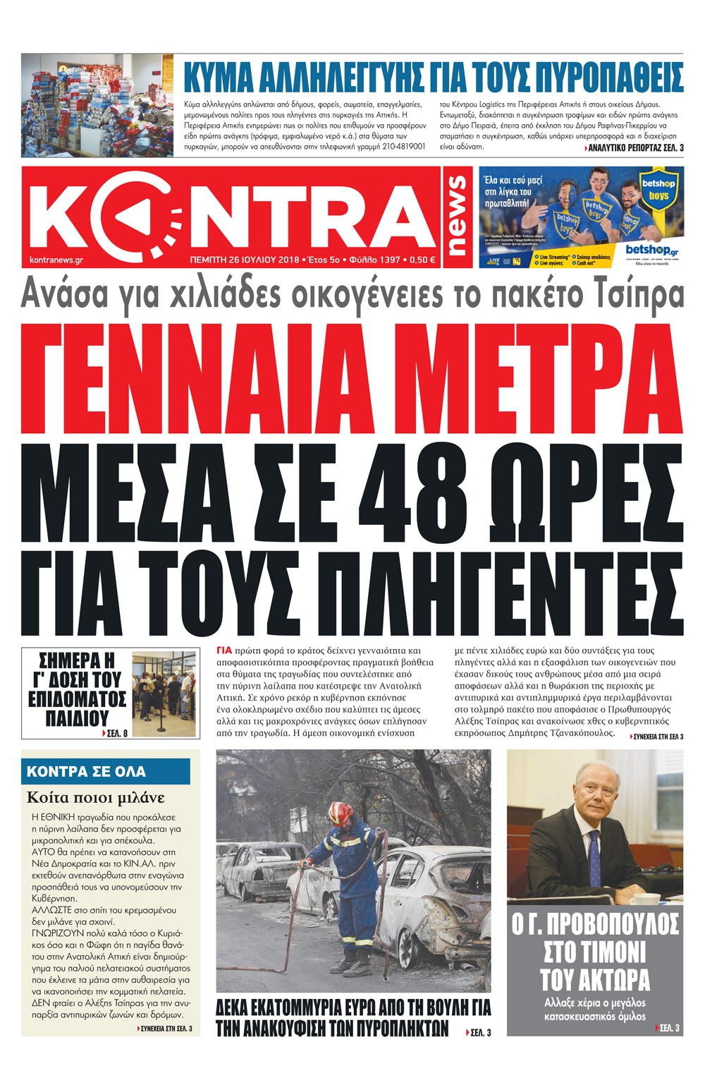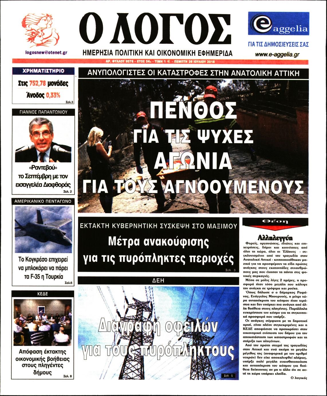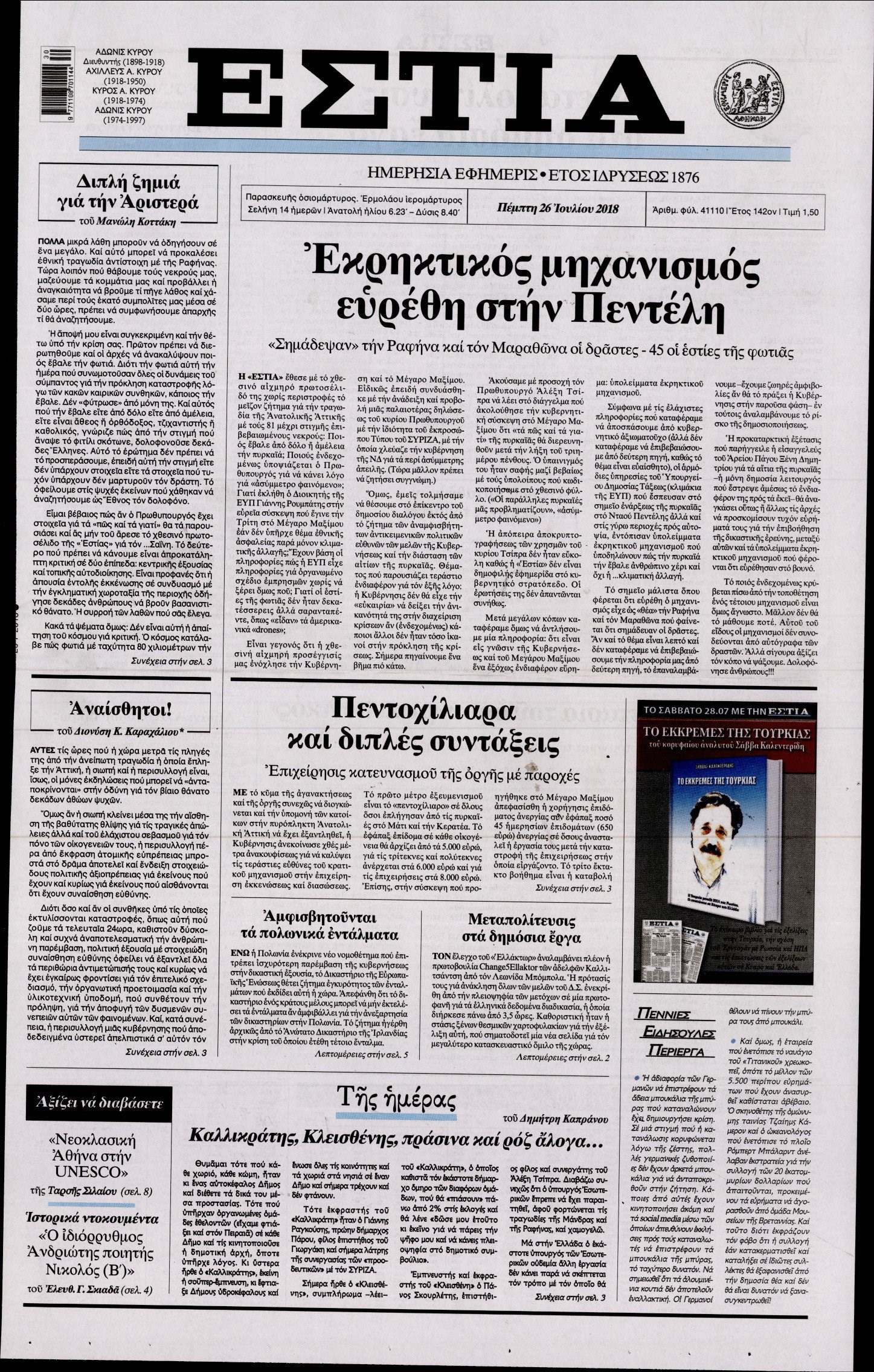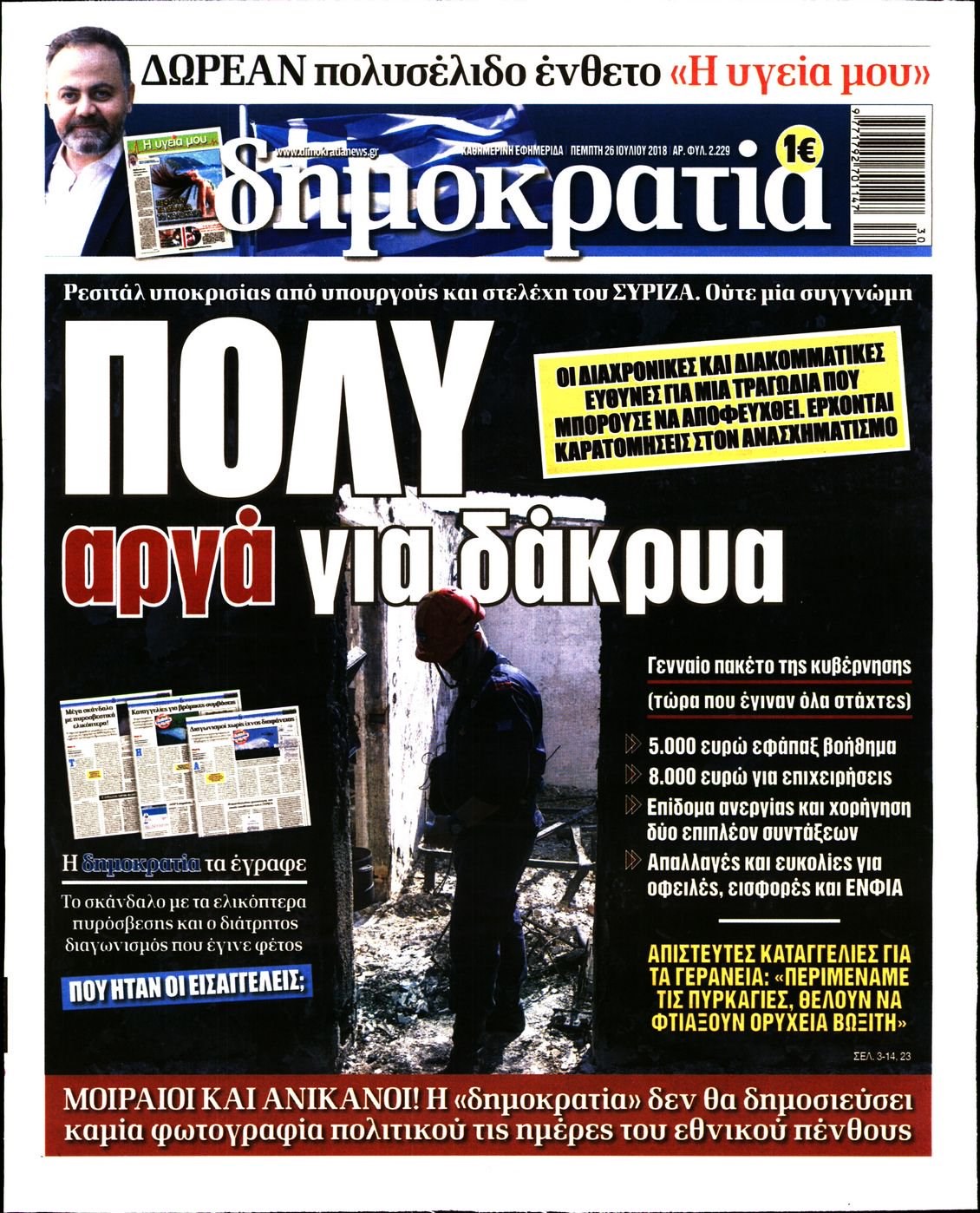 Οι πολιτικές εφημερίδες 26/7/2018 Enikos Newsroom 06:45, Πέμπτη 26 Ιουλίου 2018 Media Διαβάστε τα σημερινά πρωτοσέλιδα των πολιτικών εφημερίδων. ΠΟΛΙΤΙΚΕΣ ΕΦΗΜΕΡΙΔΕΣ ΠΡΩΤΟΣΕΛΙΔΑ Μοιράσου το: σχολίασε κι εσύ (0 σχόλια) Ακολουθήστε το enikos.gr στο Google News και μάθετε πρώτοι όλες τις ειδήσεις Δείτε όλες τις τελευταίες ειδήσεις από την Ελλάδα και τον Κόσμο στο enikos.gr Ειδήσεις Ροή Ειδήσεων 4 ώρες πριν Χριστούγεννα στα μπλόκα οι αγρότες: Άνοιξαν στα διόδια και μοίρασαν προϊόντα στους πολίτες – Νέα σύσκεψη την Κυριακή στη Νίκαια 4 ώρες πριν Κύκλωμα διακίνησης ναρκωτικών σε σχολεία: Τηλεφωνούσαν στους ανηλίκους την ώρα του μαθήματος – Οι διάλογοι-σοκ, τα «ψευδώνυμα» και τα βασανιστήρια 4 ώρες πριν Αρχεία Επστάιν: Οι 500 σελίδες που λείπουν, τα αναπάντητα ερωτήματα και οι επώνυμοι – Τι έπεται 5 ώρες πριν Ζελένσκι: Μόνο οι ΗΠΑ και ο Τραμπ μπορούν να πιέσουν τη Ρωσία να βάλει τέλος στον πόλεμο 6 ώρες πριν Φοινικούντα: Προφυλακιστέος ο 30χρονος για συνέργεια στη διπλή δολοφονία – Και άλλα πρόσωπα στο «μικροσκόπιο» 4 ώρες πριν Αποκαλύφθηκε το άγνωστο «GPS» της αρχαιότητας – Πώς οι ναοί «φώτιζαν» τον δρόμο των ναυτικών πριν από την εφεύρεση των φάρων 5 ώρες πριν Ύπνος: Η διατροφή που μπορεί να σας βοηθήσει να κοιμάστε καλύτερα και να ζήσετε περισσότερο 6 ώρες πριν Αριθμολογία: Ο αριθμός του φύλακα αγγέλου σας, με βάση τον μήνα γέννησής σας – «Έτσι σας στέλνει σημάδια το σύμπαν» 18 ώρες πριν Enerwave: Το νέο «ρεύμα» στη λιανική ενέργειας που αλλάζει την εμπειρία του καταναλωτή 16 λεπτά πριν Δυτική Όχθη: Δύο Παλαιστίνιοι νεκροί από σφαίρες του Ισραηλινού στρατού 31 λεπτά πριν Ένοχος ο 54χρονος «ερευνητής» που έταζε ότι θα εντοπίσει τον αγνοούμενο γιατρό από την Κρήτη – «Μας γέμισε φρούδες ελπίδες», λέει ο πατέρας του 33χρονου 47 λεπτά πριν Σεισμός 3,8 Ρίχτερ ανοιχτά της Αμοργού 1 ώρα πριν Άννα Βίσση: Τα… Social Media «προσκύνησαν» την «απόλυτη» για την συναυλία της στο Καλλιμάρμαρο που προβλήθηκε από το Mega 1 ώρα πριν Φωτεινή Αθερίδου: «Προσπαθώ να είμαι κάθετη και αυστηρή σαν μαμά πια» ENIKOS NETWORK Οι γυναίκες αποκαλύπτουν το πιο ελκυστικό πράγμα που μπορεί να κάνει ένας άνδρας Ομορφιά και αντιγήρανση: Ειδικοί μιλούν για συσκευές περιποίησης του δέρματος «Πολεμική» προετοιμασία από την ευρωπαϊκή βιομηχανία ενέργειας – Η Eurelectric ζητεί «ομπρέλα» προστασίας για τις υποδομές Ακύρωση ΑΦΜ για απάτες – Ποιους βάζει στο στόχαστρο η ΑΑΔΕ Χαρτογραφώντας το «σημείο χωρίς επιστροφή»: Για πρώτη φορά αποκαλύπτεται με λεπτομέρεια το ακανθώδες όριο της ατμόσφαιρας τ... Η Google καταργεί τη λειτουργία «dark web report» – Πώς θα μπορούν οι χρήστες να διαγράφουν τα δεδομένα τους περισσότερα 01:30 , Κυριακή 21 Δεκεμβρίου 2025 Άννα Βίσση: Τα… Social Media «προσκύνησαν» την «απόλυτη» για την συναυλία της στο Καλλιμάρμαρο που προβλήθηκε από το Mega Την ημέρα των γενεθλίων της Άννας Βίσση, το MEGA τίμησε τη διαχρονική παρουσία της «απόλυτης Ε... 00:00 , Κυριακή 21 Δεκεμβρίου 2025 The Voice: Η επιστροφή της Έλενας Παπαρίζου και η ατάκα του Γιώργου Μαζωνάκη μετά τις καταγγελίες Στη φάση των Cross Battles Live μπήκε το The Voice, με την Έλενα Παπαρίζου να επιστρέφει στο π... 20:30 , Σάββατο 20 Δεκεμβρίου 2025 Αυτή την Κυριακή με τη Realnews: Instyle, μαζί Drive και Realnews Geopolitics Αυτή την Κυριακή με τη Realnews: Instyle, μαζί Drive και Realnews Geopolitics Instyle Η Άννα Ρ... 20:28 , Σάββατο 20 Δεκεμβρίου 2025 Ο ΑΝΤ1 γεμίζει τις γιορτές με μουσική – Ποιους καλλιτέχνες θα απολαύσουμε Φέτος στον ΑΝΤ1 γιορτάζουμε τις νύχτες μας πα