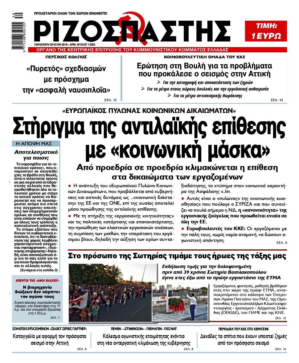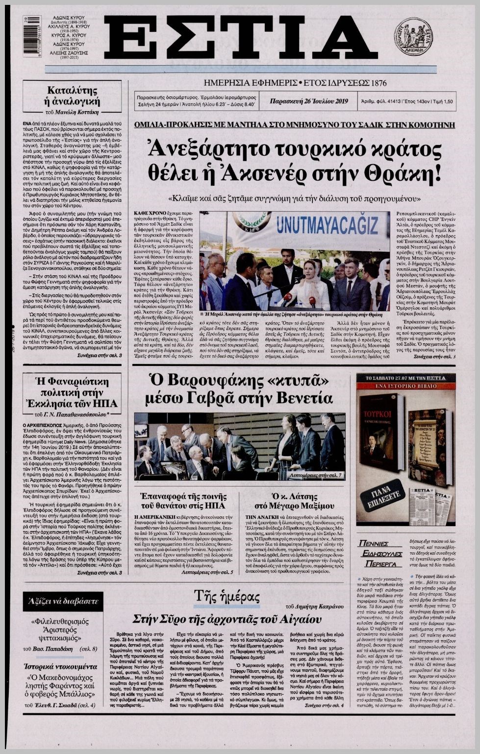 Οι πολιτικές εφημερίδες 26/7/2019 Κώστας Τεό 06:32, Παρασκευή 26 Ιουλίου 2019 Media Διαβάστε τα πρωτοσέλιδα των πολιτικών εφημερίδων: ΠΟΛΙΤΙΚΕΣ ΕΦΗΜΕΡΙΔΕΣ ΠΡΩΤΟΣΕΛΙΔΑ Μοιράσου το: σχολίασε κι εσύ (0 σχόλια) Ακολουθήστε το enikos.gr στο Google News και μάθετε πρώτοι όλες τις ειδήσεις Δείτε όλες τις τελευταίες ειδήσεις από την Ελλάδα και τον Κόσμο στο enikos.gr Ειδήσεις Ροή Ειδήσεων 4 ώρες πριν Χριστούγεννα στα μπλόκα οι αγρότες: Άνοιξαν στα διόδια και μοίρασαν προϊόντα στους πολίτες – Νέα σύσκεψη την Κυριακή στη Νίκαια 4 ώρες πριν Κύκλωμα διακίνησης ναρκωτικών σε σχολεία: Τηλεφωνούσαν στους ανηλίκους την ώρα του μαθήματος – Οι διάλογοι-σοκ, τα «ψευδώνυμα» και τα βασανιστήρια 4 ώρες πριν Αρχεία Επστάιν: Οι 500 σελίδες που λείπουν, τα αναπάντητα ερωτήματα και οι επώνυμοι – Τι έπεται 5 ώρες πριν Ζελένσκι: Μόνο οι ΗΠΑ και ο Τραμπ μπορούν να πιέσουν τη Ρωσία να βάλει τέλος στον πόλεμο 6 ώρες πριν Φοινικούντα: Προφυλακιστέος ο 30χρονος για συνέργεια στη διπλή δολοφονία – Και άλλα πρόσωπα στο «μικροσκόπιο» 3 ώρες πριν Αποκαλύφθηκε το άγνωστο «GPS» της αρχαιότητας – Πώς οι ναοί «φώτιζαν» τον δρόμο των ναυτικών πριν από την εφεύρεση των φάρων 4 ώρες πριν Ύπνος: Η διατροφή που μπορεί να σας βοηθήσει να κοιμάστε καλύτερα και να ζήσετε περισσότερο 6 ώρες πριν Αριθμολογία: Ο αριθμός του φύλακα αγγέλου σας, με βάση τον μήνα γέννησής σας – «Έτσι σας στέλνει σημάδια το σύμπαν» 18 ώρες πριν Enerwave: Το νέο «ρεύμα» στη λιανική ενέργειας που αλλάζει την εμπειρία του καταναλωτή 15 λεπτά πριν Δυτική Όχθη: Δύο Παλαιστίνιοι νεκροί από σφαίρες του Ισραηλινού στρατού 30 λεπτά πριν Ένοχος ο 54χρονος «ερευνητής» που έταζε ότι θα εντοπίσει τον αγνοούμενο γιατρό από την Κρήτη – «Μας γέμισε φρούδες ελπίδες», λέει ο πατέρας του 33χρονου 45 λεπτά πριν Σεισμός 3,8 Ρίχτερ ανοιχτά της Αμοργού 1 ώρα πριν Άννα Βίσση: Τα… Social Media «προσκύνησαν» την «απόλυτη» για την συναυλία της στο Καλλιμάρμαρο που προβλήθηκε από το Mega 1 ώρα πριν Φωτεινή Αθερίδου: «Προσπαθώ να είμαι κάθετη και αυστηρή σαν μαμά πια» ENIKOS NETWORK Οι γυναίκες αποκαλύπτουν το πιο ελκυστικό πράγμα που μπορεί να κάνει ένας άνδρας Ομορφιά και αντιγήρανση: Ειδικοί μιλούν για συσκευές περιποίησης του δέρματος «Πολεμική» προετοιμασία από την ευρωπαϊκή βιομηχανία ενέργειας – Η Eurelectric ζητεί «ομπρέλα» προστασίας για τις υποδομές Ακύρωση ΑΦΜ για απάτες – Ποιους βάζει στο στόχαστρο η ΑΑΔΕ Χαρτογραφώντας το «σημείο χωρίς επιστροφή»: Για πρώτη φορά αποκαλύπτεται με λεπτομέρεια το ακανθώδες όριο της ατμόσφαιρας τ... Η Google καταργεί τη λειτουργία «dark web report» – Πώς θα μπορούν οι χρήστες να διαγράφουν τα δεδομένα τους περισσότερα 01:30 , Κυριακή 21 Δεκεμβρίου 2025 Άννα Βίσση: Τα… Social Media «προσκύνησαν» την «απόλυτη» για την συναυλία της στο Καλλιμάρμαρο που προβλήθηκε από το Mega Την ημέρα των γενεθλίων της Άννας Βίσση, το MEGA τίμησε τη διαχρονική παρουσία της «απόλυτης Ε... 00:00 , Κυριακή 21 Δεκεμβρίου 2025 The Voice: Η επιστροφή της Έλενας Παπαρίζου και η ατάκα του Γιώργου Μαζωνάκη μετά τις καταγγελίες Στη φάση των Cross Battles Live μπήκε το The Voice, με την Έλενα Παπαρίζου να επιστρέφει στο π... 20:30 , Σάββατο 20 Δεκεμβρίου 2025 Αυτή την Κυριακή με τη Realnews: Instyle, μαζί Drive και Realnews Geopolitics Αυτή την Κυριακή με τη Realnews: Instyle, μαζί Drive και Realnews Geopolitics Instyle Η Άννα Ρ... 20:28 , Σάββατο 20 Δεκεμβρίου 2025 Ο ΑΝΤ1 γεμίζει τις γιορτές με μουσική – Ποιους καλλιτέχνες θα απολαύσουμε Φέτος στον ΑΝΤ1 γιορτάζουμε τις νύχτες μας παρέα 