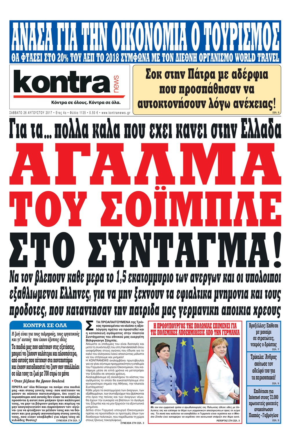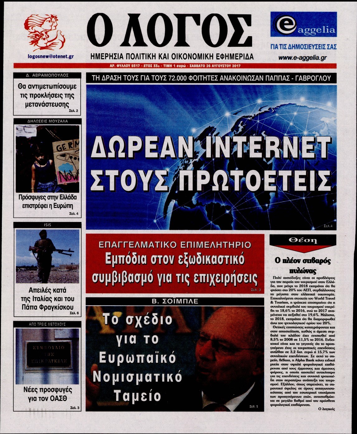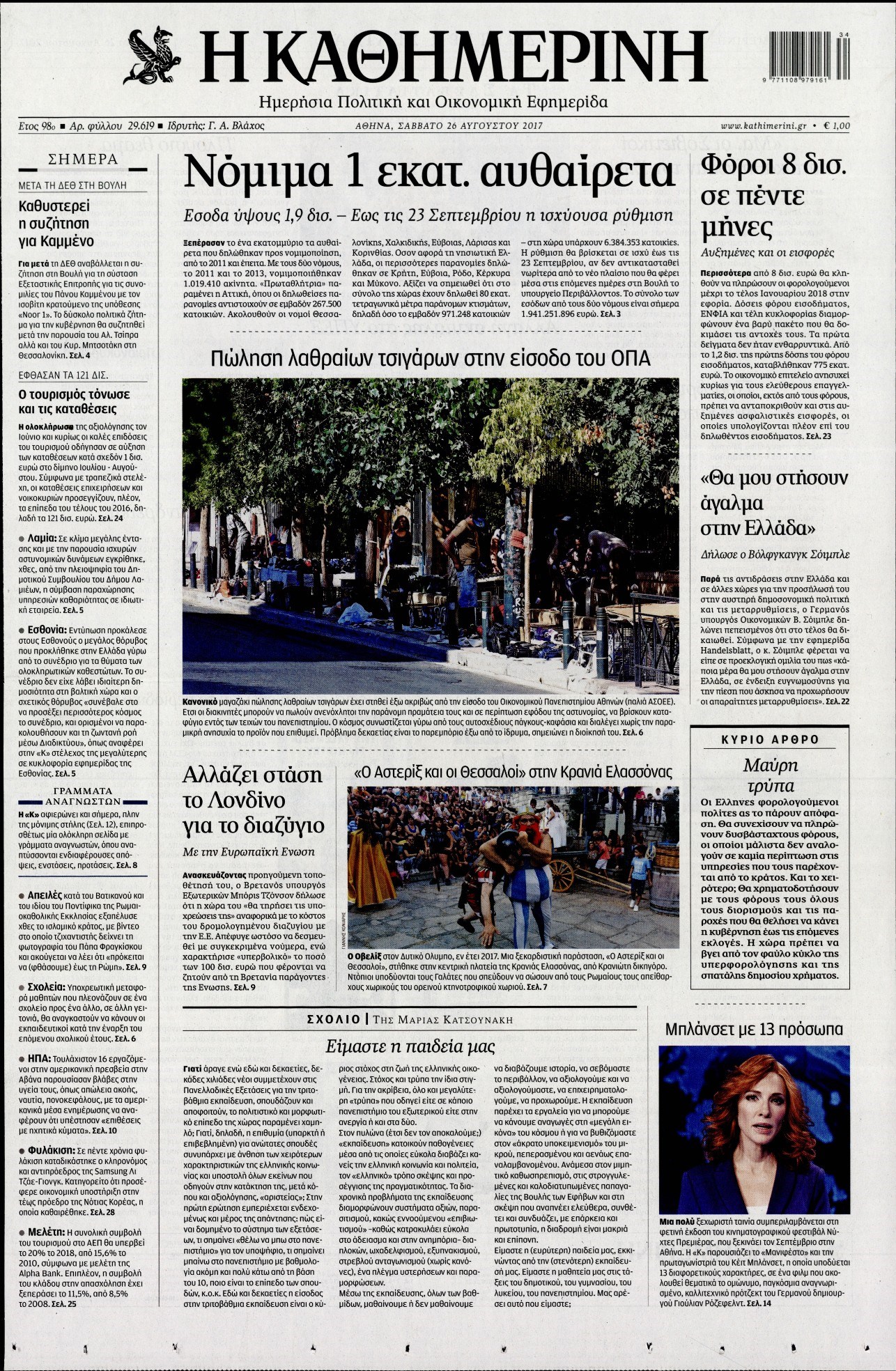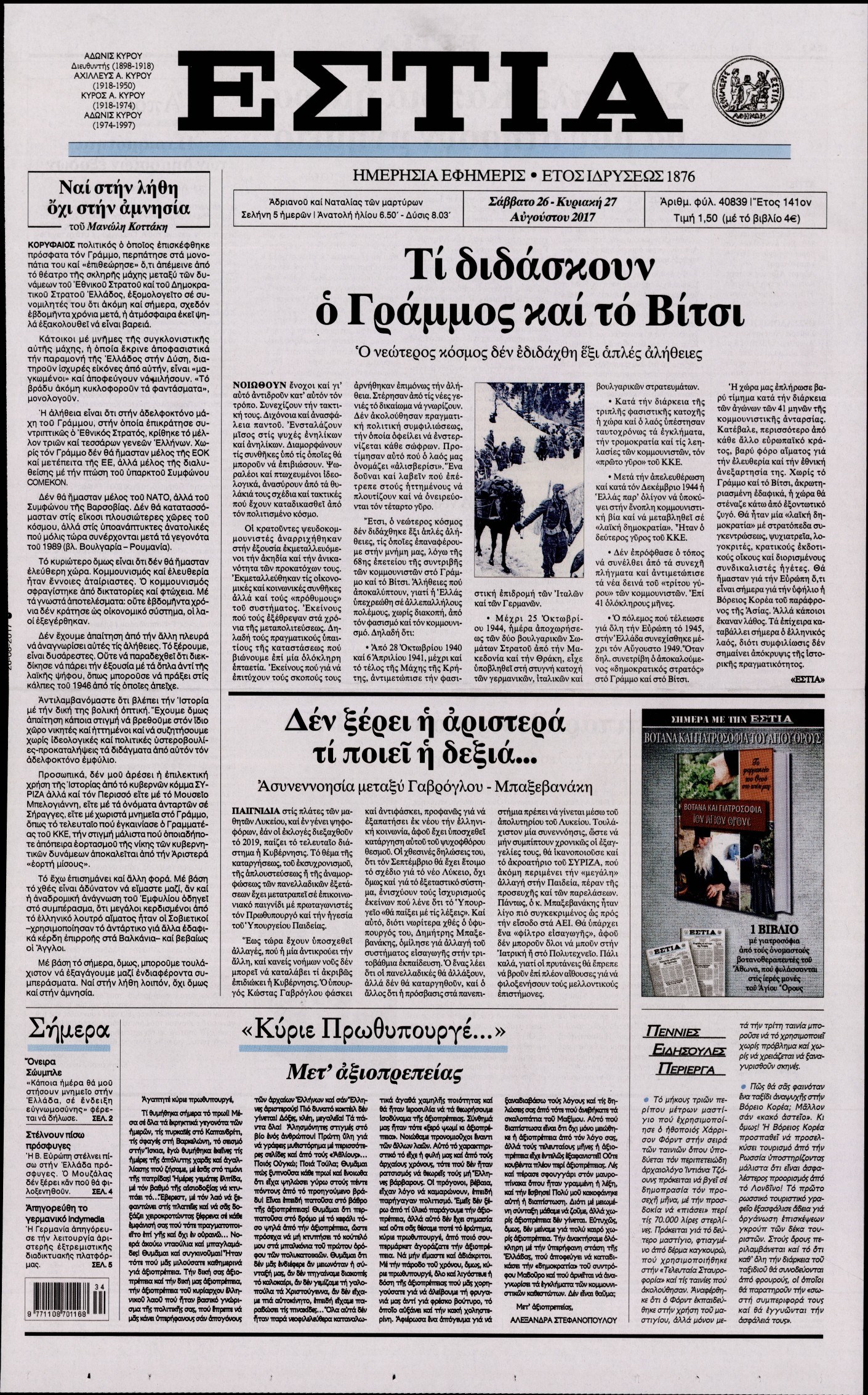Οι πολιτικές εφημερίδες 26/8/2017 Enikos Newsroom 07:55, Σάββατο 26 Αυγούστου 2017 Media Διαβάστε τα σημερινά πρωτοσέλιδα των πολιτικών εφημερίδων: ΠΟΛΙΤΙΚΕΣ ΕΦΗΜΕΡΙΔΕΣ ΠΡΩΤΟΣΕΛΙΔΑ Μοιράσου το: σχολίασε κι εσύ (0 σχόλια) Ακολουθήστε το enikos.gr στο Google News και μάθετε πρώτοι όλες τις ειδήσεις Δείτε όλες τις τελευταίες ειδήσεις από την Ελλάδα και τον Κόσμο στο enikos.gr Ειδήσεις Ροή Ειδήσεων 2 ώρες πριν Μπλόκα: Οι αγρότες σηκώνουν τις μπάρες σε διόδια για τους εκδρομείς των Χριστουγέννων και μοιράζουν προϊόντα – Βίντεο 3 ώρες πριν Τσιάρας προς αγρότες: Τα μπλόκα και τα πείσματα δεν ωφελούν – Οι λύσεις περνούν μέσα από τον διάλογο 4 ώρες πριν Αρχεία Έπσταϊν: Οι συγκλονιστικές φωτογραφίες – Ο Μάικλ Τζάκσον, ο Μικ Τζάγκερ και ο Κέβιν Σπέισι ανάμεσα στους διάσημους που απεικονίζονται 2 ώρες πριν Μαθητές διακινούσαν κοκαΐνη και χασίς σε σχολείο της Αττικής – 12 συλλήψεις 2 ώρες πριν Βέλγιο: Άγνωστοι έριξαν κόκκινη μπογιά στο προξενείο της Πολωνίας στις Βρυξέλλες 6 ώρες πριν Μία νέα «χρυσή» περίοδος αρχίζει για 3 ζώδια από σήμερα – «Μία αναπάντεχη ευκαιρία οδηγεί στην επιτυχία» 4 ώρες πριν Διαιτολόγος αποκαλύπτει 9 πρωινές συνήθειες που «λιώνουν» το κοιλιακό λίπος – «Υποστηρίζουν την υγιεινή απώλεια βάρους» 5 ώρες πριν Οι 7 φράσεις που δεν λένε ποτέ οι συναισθηματικά έξυπνοι άνθρωποι κατά τη διάρκεια ενός καβγά 7 ώρες πριν Enerwave: Το νέο «ρεύμα» στη λιανική ενέργειας που αλλάζει την εμπειρία του καταναλωτή 9 λεπτά πριν Στο νοσοκομείο ο Λευτέρης Πανταζής – Τι συνέβη 18 λεπτά πριν Super League: Με Κηφισιά ο Ολυμπιακός για να «κλείσει» το 2025 στην κορυφή – Αναλυτικά το πρόγραμμα της 15ης αγωνιστικής 23 λεπτά πριν ΕΛΑΣ: Συνελήφθησαν Υπαρχιπυροσβέστης και δύο ακόμη άτομα για κατοχή και διακίνηση ναρκωτικών ουσιών – Η καταγγελία και ο τιμοκατάλογος 31 λεπτά πριν Πακιστάν: Σε κάθειρξη 17 ετών καταδικάστηκαν ο πρώην πρωθυπουργός Ίμραν Χαν και η σύζυγός του 39 λεπτά πριν Μαρινάκης στον Realfm 97,8: Η κυβέρνηση σέβεται κάθε λογική διεκδίκηση των αγροτών, αλλά και το αίτημα των πολιτών να μην ταλαιπωρούνται ENIKOS NETWORK Η αποχή από την αναπαραγωγή παρατείνει τη ζωή στα ζώα, σύμφωνα με μελέτη – Τι ισχύει για τους ανθρώπους; Σημαντικές επαφές στις ΗΠΑ είχε ο υπουργός Υγείας Άδωνις Γεωργιάδης Επιτροπή Ανταγωνισμού: Στο μικροσκόπιο σχολικές τσάντες και επώνυμα brands – Τι ερευνάται Ευλογιά αιγοπροβάτων: Παρατεταμένη επιζωοτία, αυστηρά μέτρα – Τι ισχύει για τον εμβολιασμό και την ανασύσταση του ζωικού κε... Χαρτογραφώντας το «σημείο χωρίς επιστροφή»: Για πρώτη φορά αποκαλύπτεται με λεπτομέρεια το ακανθώδες όριο της ατμόσφαιρας τ... Η Google καταργεί τη λειτουργία «dark web report» – Πώς θα μπορούν οι χρήστες να διαγράφουν τα δεδομένα τους περισσότερα 14:04 , Σάββατο 20 Δεκεμβρίου 2025 Η Realnews αυτής της Κυριακής (21/12/2025) Με τίτλο: «Ασπίδα προστασίας για την Ελλάδα» κυκλοφορεί, αυτήν την Κυριακή, η Realnews. Σημαντ... 12:53 , Σάββατο 20 Δεκεμβρίου 2025 Να μ’ αγαπάς: Το παρελθόν έρχεται στο φως – Καταιγιστικές εξελίξεις στα τελευταία επεισόδια του 2025 Ο Άγγελος αποκαλύπτεται, η Φωτεινή ανησυχεί για τον Λευτέρη και η Ζωή έρχεται αντιμέτωπη με το... 11:41 , Σάββατο 20 Δεκεμβρίου 2025 «Η αγάπη δεν χάνεται ποτέ»: Η μικρού μήκους ταινία κινουμένων σχεδίων που θέτει ερωτήματα για τη ζωή και τον θάνατο Ο θάνατος είναι ένα από τα πιο σκληρά θέματα που καλείται να διαχειριστεί κάποιος στη διάρκεια... 09:30 , Σάββατο 20 Δεκεμβρίου 2025 «Porto Leone: Στη γειτονιά με τα κ