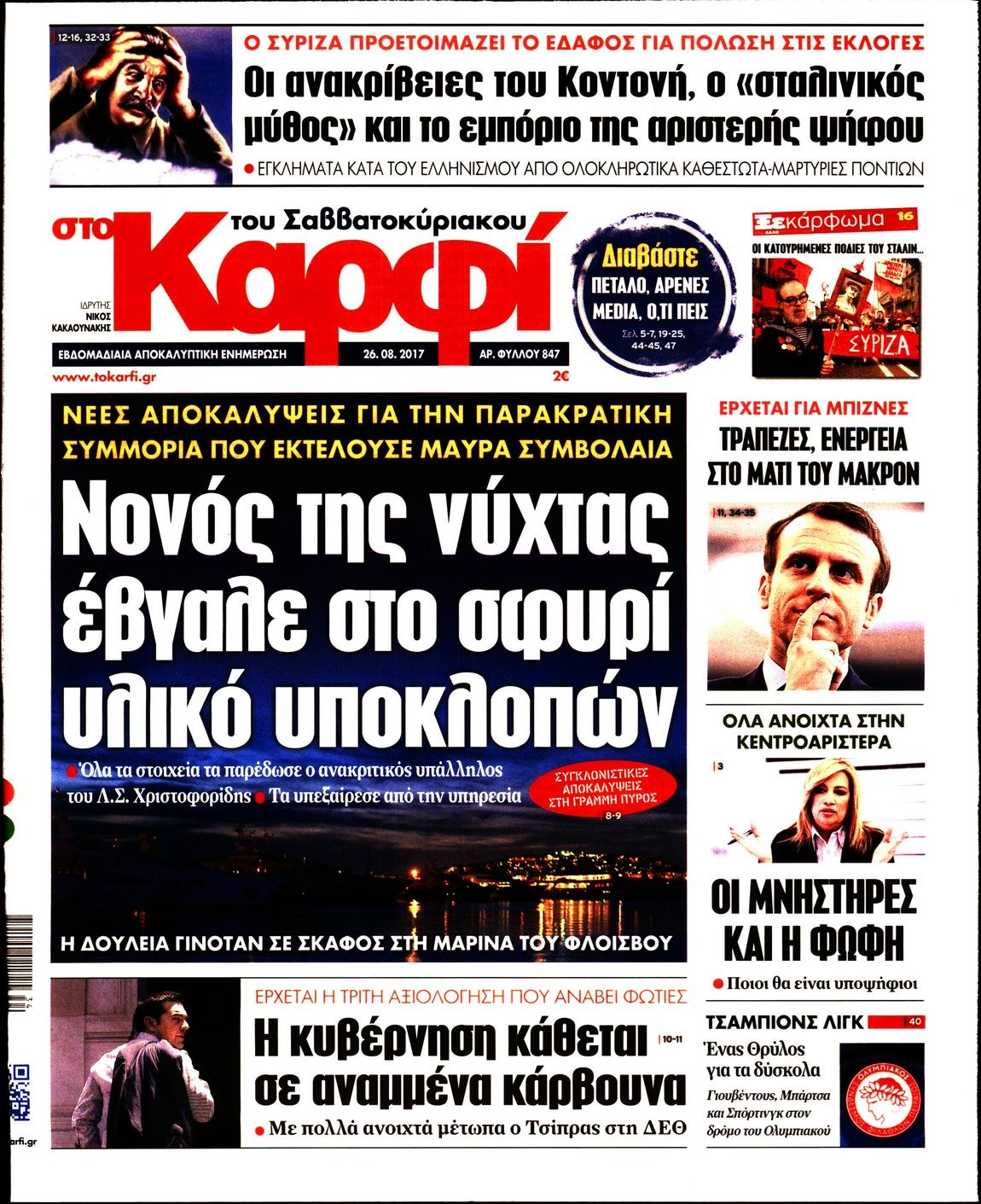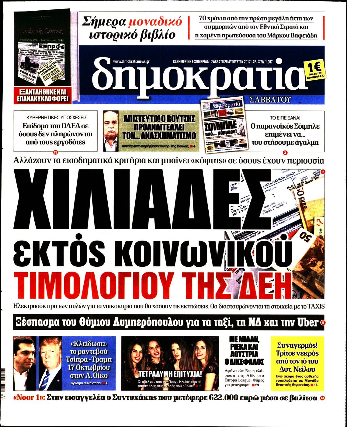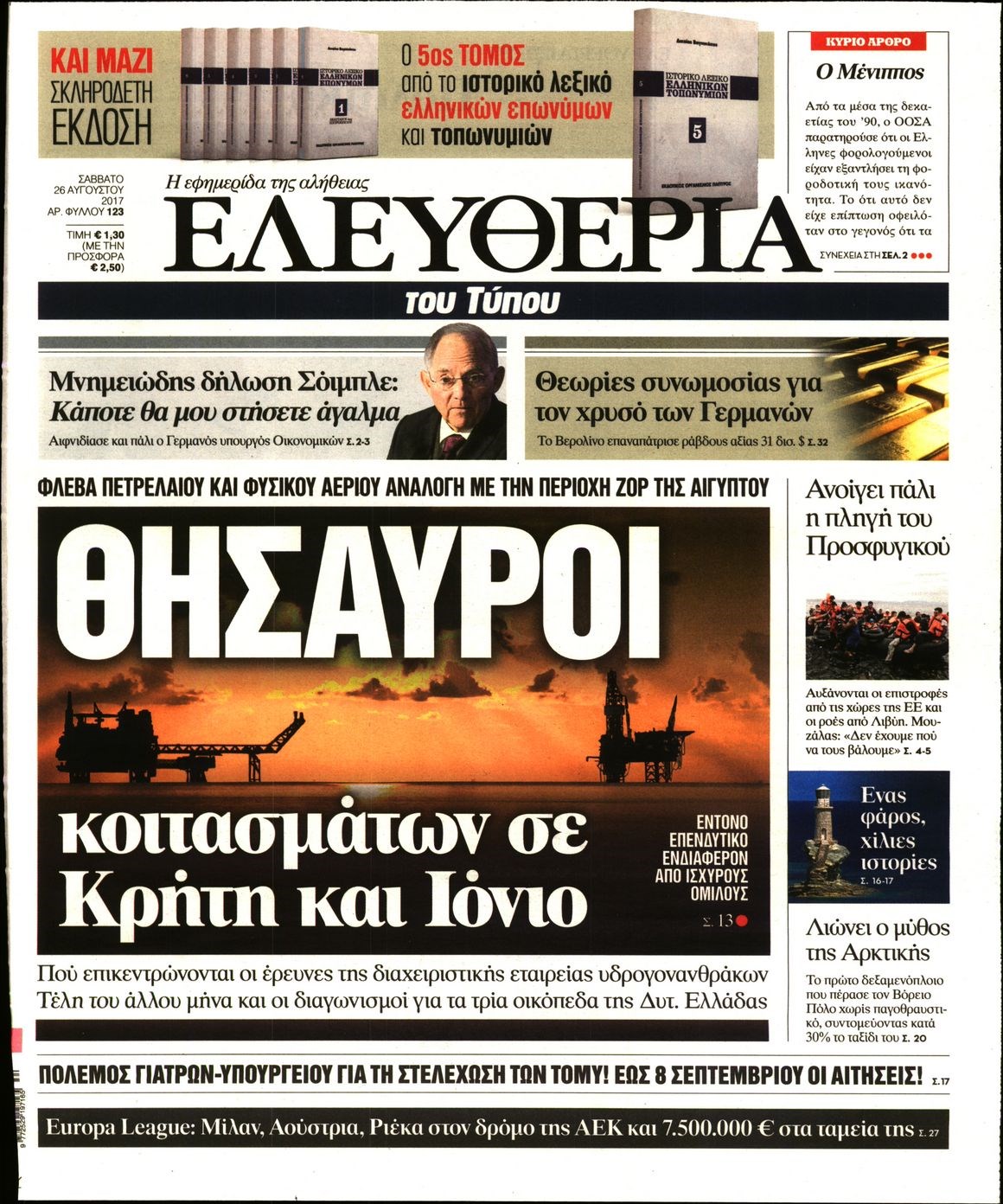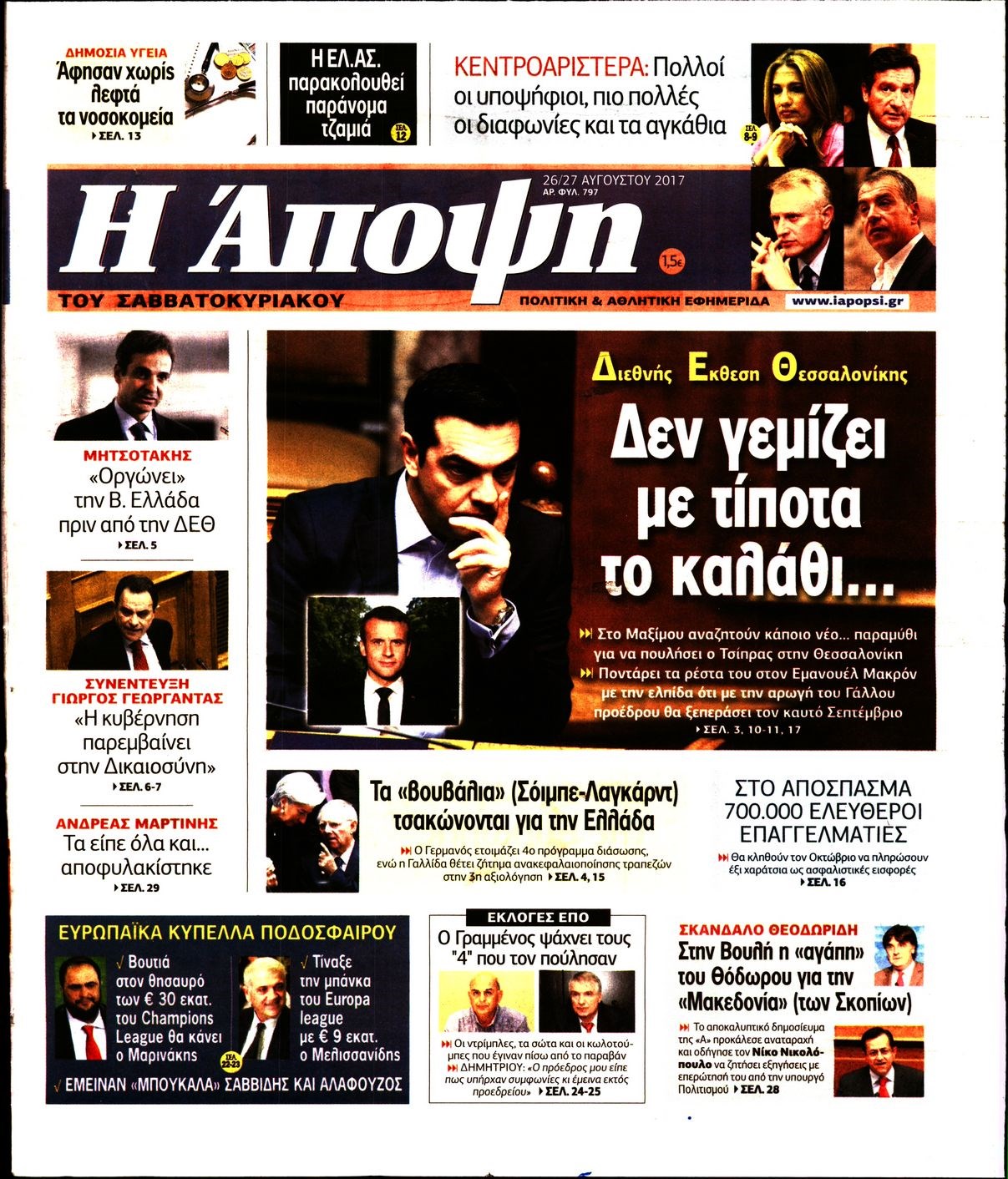 Οι πολιτικές εφημερίδες 26/8/2017 Enikos Newsroom 07:55, Σάββατο 26 Αυγούστου 2017 Media Διαβάστε τα σημερινά πρωτοσέλιδα των πολιτικών εφημερίδων: ΠΟΛΙΤΙΚΕΣ ΕΦΗΜΕΡΙΔΕΣ ΠΡΩΤΟΣΕΛΙΔΑ Μοιράσου το: σχολίασε κι εσύ (0 σχόλια) Ακολουθήστε το enikos.gr στο Google News και μάθετε πρώτοι όλες τις ειδήσεις Δείτε όλες τις τελευταίες ειδήσεις από την Ελλάδα και τον Κόσμο στο enikos.gr Ειδήσεις Ροή Ειδήσεων 2 ώρες πριν Μπλόκα: Οι αγρότες σηκώνουν τις μπάρες σε διόδια για τους εκδρομείς των Χριστουγέννων και μοιράζουν προϊόντα – Βίντεο 3 ώρες πριν Τσιάρας προς αγρότες: Τα μπλόκα και τα πείσματα δεν ωφελούν – Οι λύσεις περνούν μέσα από τον διάλογο 4 ώρες πριν Αρχεία Έπσταϊν: Οι συγκλονιστικές φωτογραφίες – Ο Μάικλ Τζάκσον, ο Μικ Τζάγκερ και ο Κέβιν Σπέισι ανάμεσα στους διάσημους που απεικονίζονται 2 ώρες πριν Μαθητές διακινούσαν κοκαΐνη και χασίς σε σχολείο της Αττικής – 12 συλλήψεις 2 ώρες πριν Βέλγιο: Άγνωστοι έριξαν κόκκινη μπογιά στο προξενείο της Πολωνίας στις Βρυξέλλες 6 ώρες πριν Μία νέα «χρυσή» περίοδος αρχίζει για 3 ζώδια από σήμερα – «Μία αναπάντεχη ευκαιρία οδηγεί στην επιτυχία» 4 ώρες πριν Διαιτολόγος αποκαλύπτει 9 πρωινές συνήθειες που «λιώνουν» το κοιλιακό λίπος – «Υποστηρίζουν την υγιεινή απώλεια βάρους» 5 ώρες πριν Οι 7 φράσεις που δεν λένε ποτέ οι συναισθηματικά έξυπνοι άνθρωποι κατά τη διάρκεια ενός καβγά 7 ώρες πριν Enerwave: Το νέο «ρεύμα» στη λιανική ενέργειας που αλλάζει την εμπειρία του καταναλωτή 9 λεπτά πριν Στο νοσοκομείο ο Λευτέρης Πανταζής – Τι συνέβη 18 λεπτά πριν Super League: Με Κηφισιά ο Ολυμπιακός για να «κλείσει» το 2025 στην κορυφή – Αναλυτικά το πρόγραμμα της 15ης αγωνιστικής 23 λεπτά πριν ΕΛΑΣ: Συνελήφθησαν Υπαρχιπυροσβέστης και δύο ακόμη άτομα για κατοχή και διακίνηση ναρκωτικών ουσιών – Η καταγγελία και ο τιμοκατάλογος 31 λεπτά πριν Πακιστάν: Σε κάθειρξη 17 ετών καταδικάστηκαν ο πρώην πρωθυπουργός Ίμραν Χαν και η σύζυγός του 39 λεπτά πριν Μαρινάκης στον Realfm 97,8: Η κυβέρνηση σέβεται κάθε λογική διεκδίκηση των αγροτών, αλλά και το αίτημα των πολιτών να μην ταλαιπωρούνται ENIKOS NETWORK Η αποχή από την αναπαραγωγή παρατείνει τη ζωή στα ζώα, σύμφωνα με μελέτη – Τι ισχύει για τους ανθρώπους; Σημαντικές επαφές στις ΗΠΑ είχε ο υπουργός Υγείας Άδωνις Γεωργιάδης Επιτροπή Ανταγωνισμού: Στο μικροσκόπιο σχολικές τσάντες και επώνυμα brands – Τι ερευνάται Ευλογιά αιγοπροβάτων: Παρατεταμένη επιζωοτία, αυστηρά μέτρα – Τι ισχύει για τον εμβολιασμό και την ανασύσταση του ζωικού κε... Χαρτογραφώντας το «σημείο χωρίς επιστροφή»: Για πρώτη φορά αποκαλύπτεται με λεπτομέρεια το ακανθώδες όριο της ατμόσφαιρας τ... Η Google καταργεί τη λειτουργία «dark web report» – Πώς θα μπορούν οι χρήστες να διαγράφουν τα δεδομένα τους περισσότερα 14:04 , Σάββατο 20 Δεκεμβρίου 2025 Η Realnews αυτής της Κυριακής (21/12/2025) Με τίτλο: «Ασπίδα προστασίας για την Ελλάδα» κυκλοφορεί, αυτήν την Κυριακή, η Realnews. Σημαντ... 12:53 , Σάββατο 20 Δεκεμβρίου 2025 Να μ’ αγαπάς: Το παρελθόν έρχεται στο φως – Καταιγιστικές εξελίξεις στα τελευταία επεισόδια του 2025 Ο Άγγελος αποκαλύπτεται, η Φωτεινή ανησυχεί για τον Λευτέρη και η Ζωή έρχεται αντιμέτωπη με το... 11:41 , Σάββατο 20 Δεκεμβρίου 2025 «Η αγάπη δεν χάνεται ποτέ»: Η μικρού μήκους ταινία κινουμένων σχεδίων που θέτει ερωτήματα για τη ζωή και τον θάνατο Ο θάνατος είναι ένα από τα πιο σκληρά θέματα που καλείται να διαχειριστεί κάποιος στη διάρκεια... 09:30 , Σάββατο 20 Δεκεμβρίου 2025 «Porto Leone: Στη γειτονιά με τα κ
