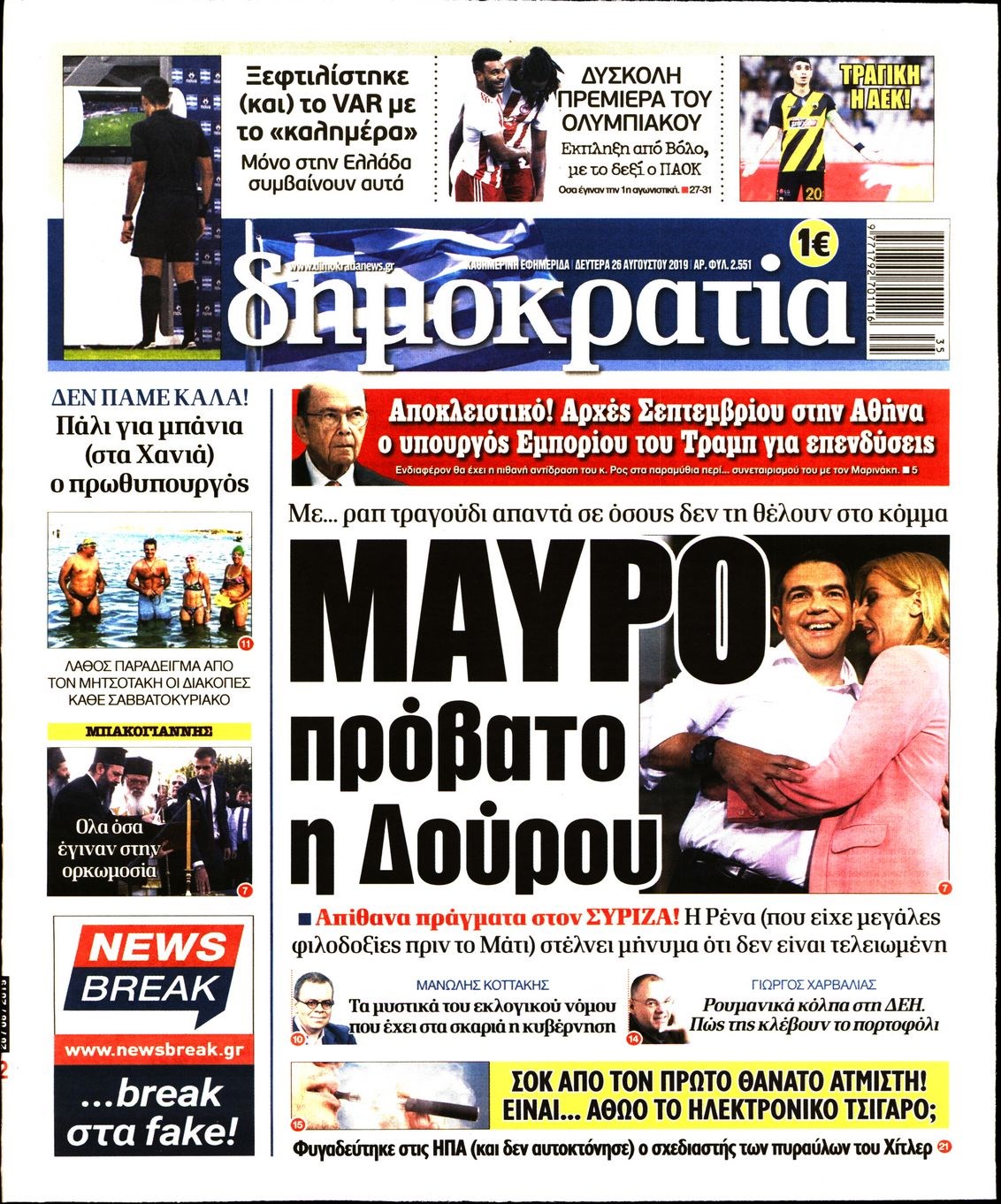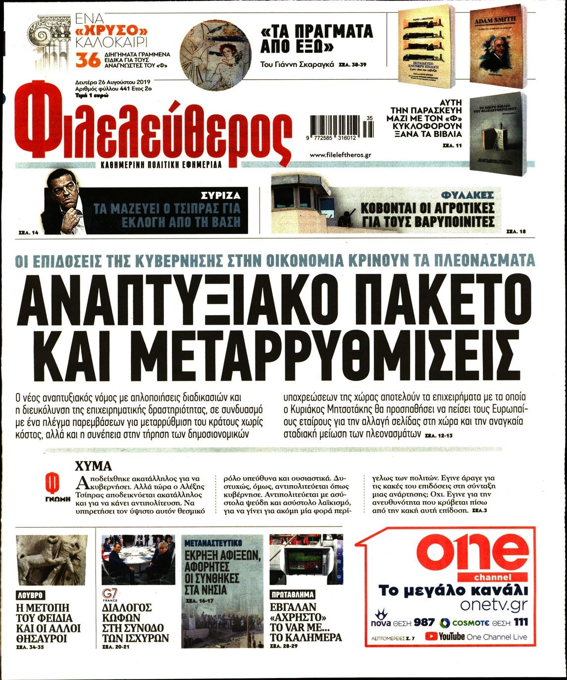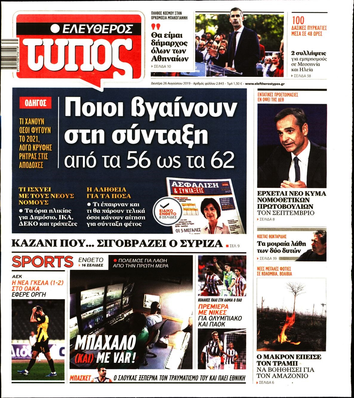 Οι πολιτικές εφημερίδες 26/8/2019 Διονύσης Νίκκας 06:20, Δευτέρα 26 Αυγούστου 2019 Media Διαβάστε τα πρωτοσέλιδα των πολιτικών εφημερίδων… ΕΦΗΜΕΡΙΔΩΝ ΠΟΛΙΤΙΚΩΝ ΠΡΩΤΟΣΕΛΙΔΑ Μοιράσου το: σχολίασε κι εσύ (0 σχόλια) Ακολουθήστε το enikos.gr στο Google News και μάθετε πρώτοι όλες τις ειδήσεις Δείτε όλες τις τελευταίες ειδήσεις από την Ελλάδα και τον Κόσμο στο enikos.gr Ειδήσεις Ροή Ειδήσεων 2 ώρες πριν Αυστραλία: Σχέσεις με το ISIS εκτιμάται πως είχαν οι δράστες της τρομοκρατικής επίθεσης στο Σίδνεϊ 25 λεπτά πριν Τσιάρας για αγροτικές κινητοποιήσεις: Μονόδρομος ο διάλογος – Διαφάνεια με τη μεταφορά του ΟΠΕΚΕΠΕ στην ΑΑΔΕ 2 ώρες πριν Σοκ στο Χόλιγουντ: Νεκροί από μαχαιριές ο σκηνοθέτης Ρομπ Ράινερ και η σύζυγός του – Αναφορές ότι τους σκότωσε ο γιος τους 2 ώρες πριν Αγρότες: Αμετακίνητοι από τα μπλόκα σε τελωνεία και εθνικές οδούς – Ο χάρτης των κινητοποιήσεων και τα αιτήματά τους 2 ώρες πριν Δολοφονία στη Φοινικούντα: Απολογούνται σήμερα οι δύο συλληφθέντες – Στο «κάδρο» και δύο γυναίκες 7 λεπτά πριν Τα 3 ζώδια που μπαίνουν σε μια νέα δυναμική εποχή – «Είστε έτοιμοι για όλα» 1 ώρα πριν Κληρονόμησε 2,8 εκατ. ευρώ και φοβάται ότι οι άνδρες θα την πλησιάζουν για τα λεφτά – «Μήπως καλύτερα να το κρατήσω μυστικό;» 2 ώρες πριν Κάτω από παλάτι κρυβόταν ένα άλλο μνημειώδες ανάκτορο: Οι ανασκαφές σε αρχαία πόλη αποκάλυψαν τα ερείπια και τα μυστικά του 4 ώρες πριν Διατροφή: Γιατρός προειδοποιεί για 2 απλά λάθη που αυξάνουν τον κίνδυνο χρόνιων παθήσεων 5 λεπτά πριν Το χρυσό συμβόλαιο της THEON INTERNATIONAL 7 λεπτά πριν Τα 3 ζώδια που μπαίνουν σε μια νέα δυναμική εποχή – «Είστε έτοιμοι για όλα» 15 λεπτά πριν Αλλάζει το σκηνικό του καιρού την Παρασκευή: «Το ατμοσφαιρικό βουνό υποχωρεί και ανοίγει ο δρόμος για τις κακοκαιρίες» 20 λεπτά πριν Λίλα Μπακλέση – Νατάσα Εξηνταβελώνη: «Όταν πας μια Πατρινιά και μια Περιστεριώτισσα σε εστιατόριο με Michelin – Βίντεο από την έξοδό τους 25 λεπτά πριν Τσιάρας για αγροτικές κινητοποιήσεις: Μονόδρομος ο διάλογος – Διαφάνεια με τη μεταφορά του ΟΠΕΚΕΠΕ στην ΑΑΔΕ ENIKOS NETWORK Έλλειψη μαγνησίου: Ποια τα συμπτώματα που επηρεάζουν ύπνο, ενέργεια και διάθεση Έχετε καλή φυσική κατάσταση; Δείτε αν μπορείτε να κάνετε αυτές τις 5 κινήσεις Δάνεια σε ελβετικό φράγκο: Ανακοινώνεται η ρύθμιση- Ποιοι και πόσο θα έχουν όφελος – Όλες οι λεπτομέρειες Τέλος οι διώξεις για χρέη σε Εφορία και ΕΦΚΑ – Τι προβλέπει νέα διάταξη μετά την πτώχευση Σύγχρονος Νοστράδαμος: Προειδοποιεί για «μεγάλο γεγονός» τους επόμενους μήνες που θα συγκλονίσει τη Βρετανία και τον κόσμο Τεστ παρατηρητικότητας: Μπορείτε να βρείτε τις 3 διαφορές στις εικόνες με έναν πιγκουίνο σε 14 δευτερόλεπτα περισσότερα 09:15 , Δευτέρα 15 Δεκεμβρίου 2025 Την Κυριακή με τη Realnews: Ό,τι και αν αγοράσεις, σκανάρεις και κερδίζεις! Την Κυριακή με τη Realnews: Ό,τι και αν αγοράσεις, σκανάρεις και κερδίζεις! Με το PADU app, το... 07:42 , Δευτέρα 15 Δεκεμβρίου 2025 Την Κυριακή με τη Realnews: Δωροεπιταγή10€ Δωροεπιταγή αξίας 10€ για αγορές άνω των 60€ από τα πολυκαταστήματα FactoryOutlet H προσφορά ι... 07:17 , Δευτέρα 15 Δεκεμβρίου 2025 Αυτή την Κυριακή με τη Realnews: Instyle, μαζί Drive και Realnews Geopolitics Αυτή την Κυριακή με τη Realnews: Instyle, μαζί Drive και Realnews Geopolitics Instyle Η Άννα Ρ... 05:49 , Δευτέρα 15 Δεκεμβρίου 2025 Οι οικονομικές εφημερίδες 15/12/2025 Διαβάστε τα πρωτοσέλιδα από τις οικονομικές εφημερίδες, σήμερα 15/12/2025. ΤΕΛΕΥΤΑΙΕΣ ΕΙΔΗΣΕΙΣ 5 λεπτά πριν Το χρυσό συμβόλαιο της THEON INTERNATIONAL 7 λεπτά πριν Τα 3 ζώδια π
