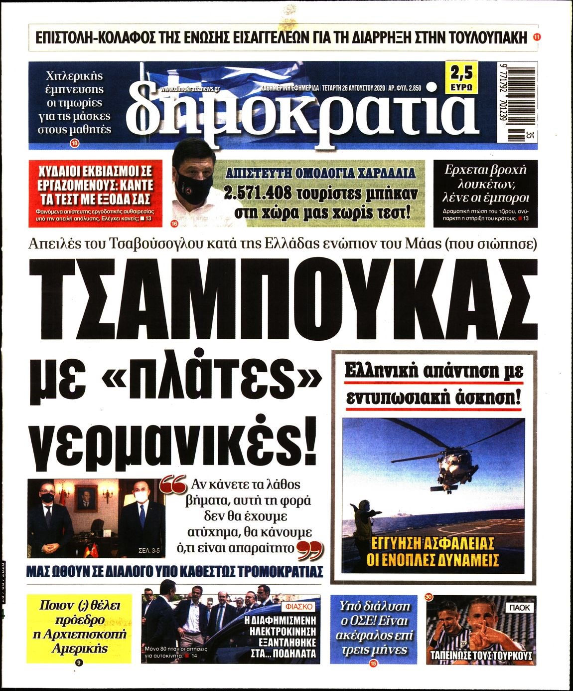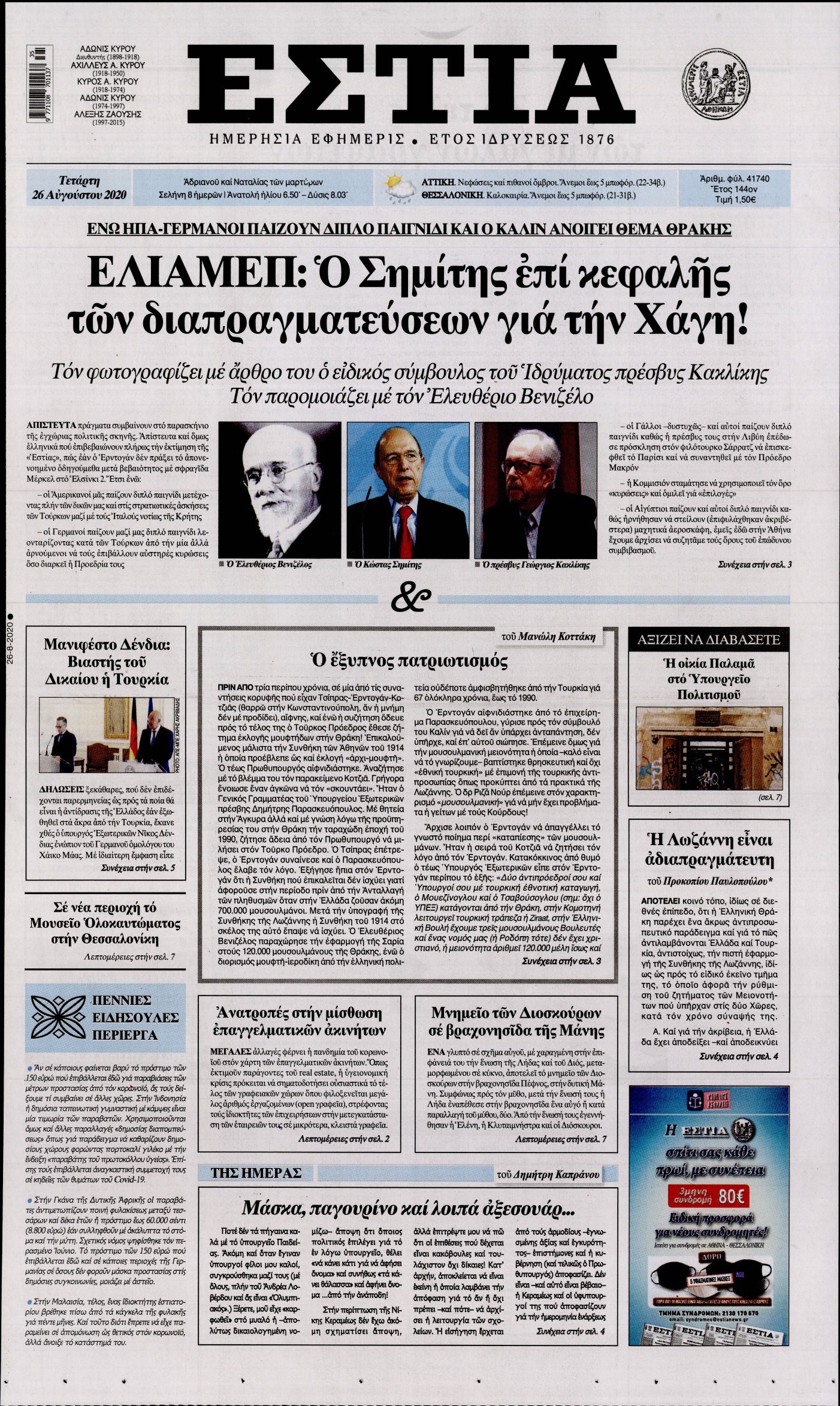 Οι πολιτικές εφημερίδες 26/8/2020 Διονύσης Νίκκας 06:12, Τετάρτη 26 Αυγούστου 2020 Media Διαβάστε τα πρωτοσέλιδα των πολιτικών εφημερίδων… ΠΟΛΙΤΙΚΕΣ ΕΦΗΜΕΡΙΔΕΣ ΠΡΩΤΟΣΕΛΙΔΑ Μοιράσου το: σχολίασε κι εσύ (0 σχόλια) Ακολουθήστε το enikos.gr στο Google News και μάθετε πρώτοι όλες τις ειδήσεις Δείτε όλες τις τελευταίες ειδήσεις από την Ελλάδα και τον Κόσμο στο enikos.gr Ειδήσεις Ροή Ειδήσεων 2 ώρες πριν Χριστούγεννα στα μπλόκα: Επιμένουν στις κινητοποιήσεις τους οι αγρότες – Ανοίγουν τα διόδια το Σαββατοκύριακο 2 ώρες πριν Ουκρανία: Η άνευ προηγουμένου επίθεση σε ρωσικό τάνκερ στη Μεσόγειο και το μήνυμα προς στον Πούτιν – Το «μακρύ χέρι» του Κιέβου 2 ώρες πριν Πούτιν: Τα μηνύματα σε Ευρώπη και ΝΑΤΟ από το μαραθώνιο «σόου» του – Η απαίτηση για «σεβασμό» και η ειρήνη «με τους όρους» της Μόσχας 3 ώρες πριν Τραμπ: Δεν αποκλείει την πιθανότητα ενός πολέμου στη Βενεζουέλα – «Ο Μαδούρο ξέρει καλύτερα από τον καθένα τι ακριβώς θέλω» 3 ώρες πριν Συνεχίζει να προκαλεί ο Μίτσκοσκι: «Για μένα το όνομα Μακεδονία είναι ιερό» 2 ώρες πριν Ανακαλύφθηκαν αρχαία χρυσά νομίσματα 2.200 ετών που απεικονίζουν τον θεό Απόλλωνα – Η άγνωστη σύνδεση με τον Φίλιππο Β΄ της Μακεδονίας 3 ώρες πριν Ύπνος: Μια κρυφή κατάσταση του εγκεφάλου πριν από τον ύπνο μπορεί να είναι το “κλειδί” για υψηλή ευφυΐα και δημιουργικότητα 4 ώρες πριν Αριθμολογία: Οι άνθρωποι που έχουν γεννηθεί αυτές τις 4 ημερομηνίες, συχνά παρεξηγούνται – «Η καλοσύνη τους κρύβει τεράστια δύναμη» 5 ώρες πριν Ξεχάστε το καθάρισμα το Σαββατοκύριακο: Ο «κανόνας των 20 λεπτών» που θα σας λύσει τα χέρια 15 λεπτά πριν Φαίη Σκορδά: «Παλιότερα τα κομπλιμέντα τα προσπερνούσα, τώρα τα έχω ανάγκη» 30 λεπτά πριν Βασίλης Σπανούλης: Δεν εμφανίστηκε ούτε ένας δημοσιογράφος στην συνέντευξη Τύπου – «Καλησπέρα στον… κανέναν», δείτε βίντεο 42 λεπτά πριν Πόλεμος στην Ουκρανία: Εφτά νεκροί από ρωσική πυραυλική επίθεση στο λιμάνι της Οδησσού 45 λεπτά πριν ΗΠΑ: Η κυβέρνηση του Ντόναλντ Τραμπ άρχισε να δημοσιοποιεί τα αρχεία Έπσταϊν 57 λεπτά πριν Σάμος: Άνοιξε το μπλόκο των αγροτών στον κόμβο Κοκκαρίου – Σε νέα συνεδρίαση θα καθορίσουν την στάση τους ENIKOS NETWORK Το ΕΚΑΒ τιμήθηκε από την Ακαδημία Αθηνών για τα 40 χρόνια προσφοράς του Έχετε πραγματικά μεγάλη καρδιά; 10 χαρακτηριστικά όσων έχουν καλοσύνη Αναστολή μέτρων αναγκαστικής εκτέλεσης για κτηνοτρόφους που πλήττονται από την ευλογιά των αιγοπροβάτων Πλήρης επάρκεια προϊόντων στις λαϊκές της Αττικής, παρά τις αγροτικές κινητοποιήσεις – Τι απαντούν οι πωλητές Χαρτογραφώντας το «σημείο χωρίς επιστροφή»: Για πρώτη φορά αποκαλύπτεται με λεπτομέρεια το ακανθώδες όριο της ατμόσφαιρας τ... Η Google καταργεί τη λειτουργία «dark web report» – Πώς θα μπορούν οι χρήστες να διαγράφουν τα δεδομένα τους περισσότερα 22:42 , Παρασκευή 19 Δεκεμβρίου 2025 Γιώργος Γιαννόπουλος για “Το σόι σου”: “Είναι ευτυχία και ευλογία αυτή η σειρά” «Είναι ευτυχία και ευλογία η συγκυρία αυτής της σειράς», θα πει ο Γιώργος Γιαννόπουλος -ο αγαπ... 20:37 , Παρασκευή 19 Δεκεμβρίου 2025 Don’t Forget The Lyrics: Η Έλλη Κοκκίνου υποδέχεται 4 παίκτες που θα κάνουν τα πάντα για να μη χάσουν ούτε… μισή λέξη από τους στίχους Το «Don’t Forget The Lyrics» επιστρέφει απόψε, Παρασκευή 19 Δεκεμβρίου, στις 21:00 με νέο επει... 19:31 , Παρασκευή 19 Δεκεμβρίου 2025 GNTM: Απόψε ο μεγάλος τελικός για τους 4 φιναλίστ Έπειτα από μήνες γεμάτους μόδα, δημιουργία και έντονες αναμετρήσεις, το GNTM 2025 κορυφώνεται,... 18:11 , Πα