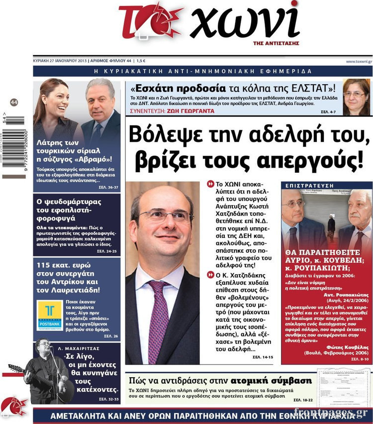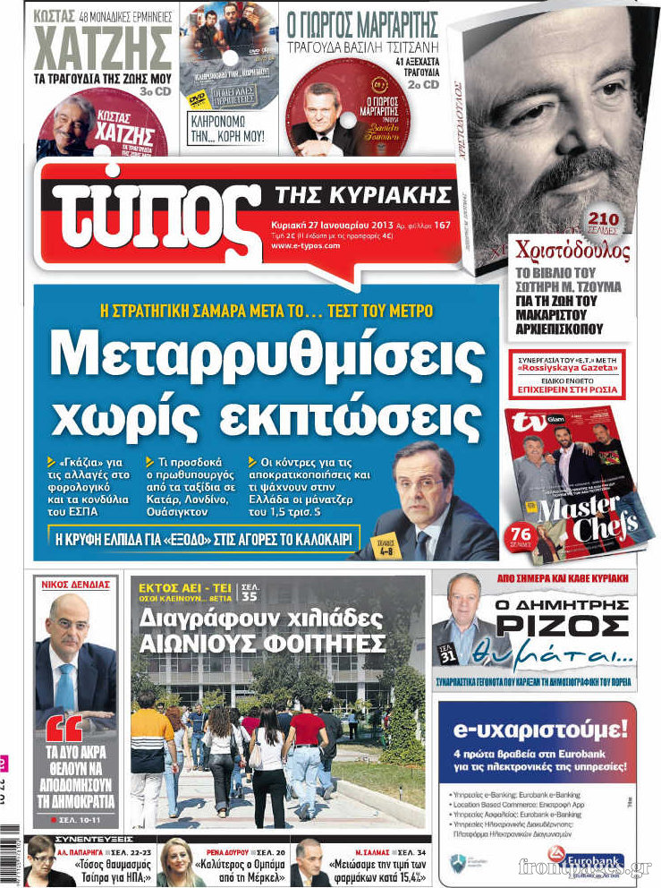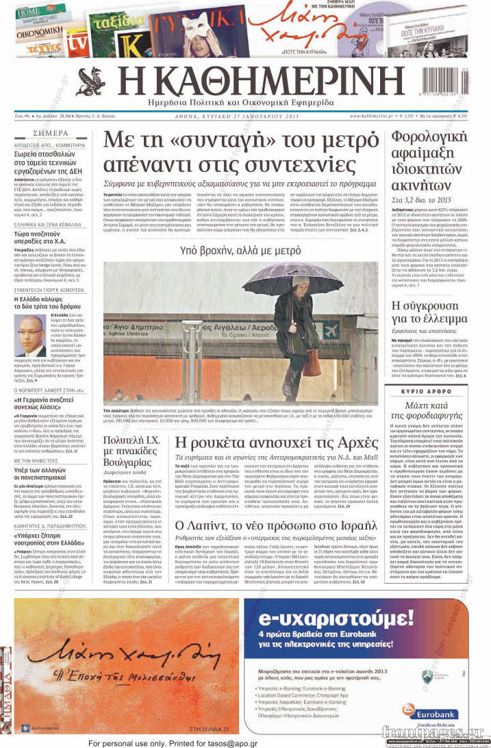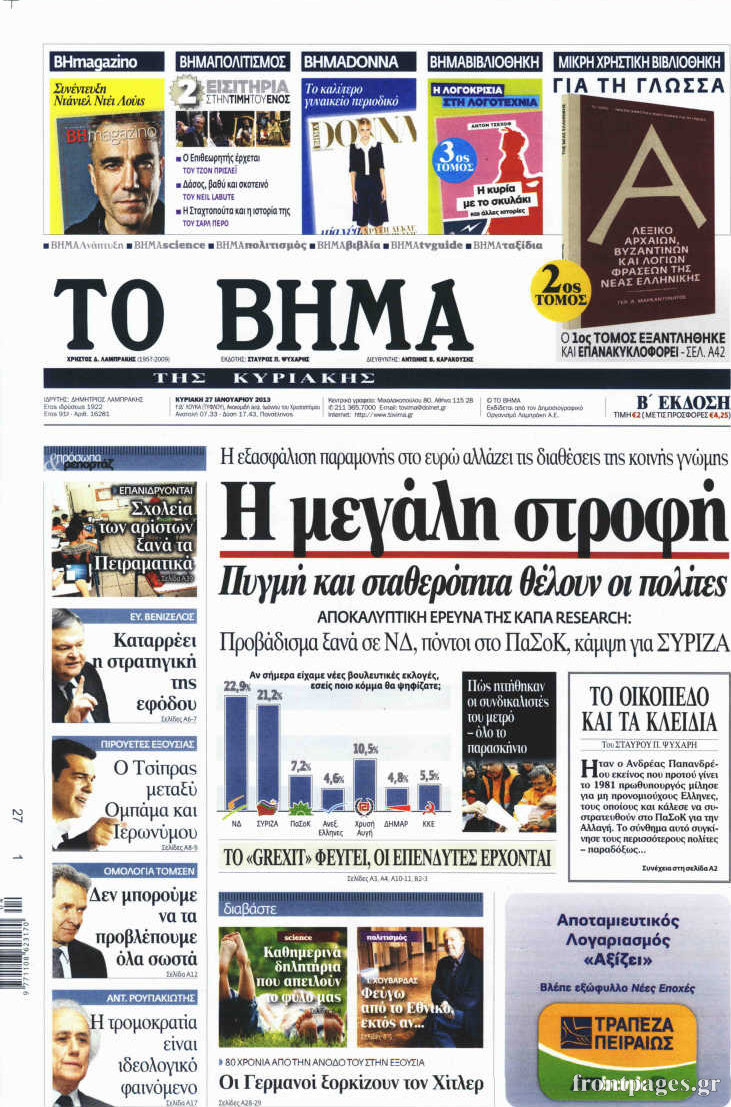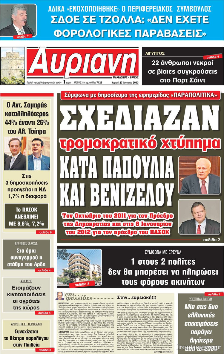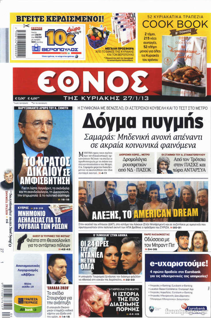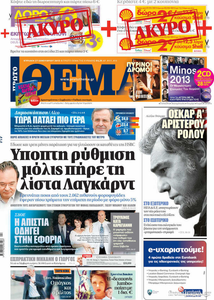 Οι πολιτικές εφημερίδες Enikos Newsroom 08:40, Κυριακή 27 Ιανουαρίου 2013 Media Οι πολιτικές εφημερίδες Δείτε τα πρωτοσέλιδα των πολιτικών εφημερίδων ΠΟΛΙΤΙΚΕΣ ΕΦΗΜΕΡΙΔΕΣ ΠΡΩΤΟΣΕΛΙΔΑ Μοιράσου το: σχολίασε κι εσύ (0 σχόλια) Ακολουθήστε το enikos.gr στο Google News και μάθετε πρώτοι όλες τις ειδήσεις Δείτε όλες τις τελευταίες ειδήσεις από την Ελλάδα και τον Κόσμο στο enikos.gr Ειδήσεις Ροή Ειδήσεων 2 ώρες πριν Μπλόκα: Οι αγρότες σηκώνουν τις μπάρες σε διόδια για τους εκδρομείς των Χριστουγέννων και μοιράζουν προϊόντα – Βίντεο 2 ώρες πριν Τσιάρας προς αγρότες: Τα μπλόκα και τα πείσματα δεν ωφελούν – Οι λύσεις περνούν μέσα από τον διάλογο 3 ώρες πριν Αρχεία Έπσταϊν: Οι συγκλονιστικές φωτογραφίες – Ο Μάικλ Τζάκσον, ο Μικ Τζάγκερ και ο Κέβιν Σπέισι ανάμεσα στους διάσημους που απεικονίζονται 1 ώρα πριν Μαθητές διακινούσαν κοκαΐνη και χασίς σε σχολείο της Αττικής – 12 συλλήψεις 1 ώρα πριν Βέλγιο: Άγνωστοι έριξαν κόκκινη μπογιά στο προξενείο της Πολωνίας στις Βρυξέλλες 5 ώρες πριν Μία νέα «χρυσή» περίοδος αρχίζει για 3 ζώδια από σήμερα – «Μία αναπάντεχη ευκαιρία οδηγεί στην επιτυχία» 4 ώρες πριν Διαιτολόγος αποκαλύπτει 9 πρωινές συνήθειες που «λιώνουν» το κοιλιακό λίπος – «Υποστηρίζουν την υγιεινή απώλεια βάρους» 5 ώρες πριν Οι 7 φράσεις που δεν λένε ποτέ οι συναισθηματικά έξυπνοι άνθρωποι κατά τη διάρκεια ενός καβγά 7 ώρες πριν Enerwave: Το νέο «ρεύμα» στη λιανική ενέργειας που αλλάζει την εμπειρία του καταναλωτή 8 λεπτά πριν Πακιστάν: Σε κάθειρξη 17 ετών καταδικάστηκαν ο πρώην πρωθυπουργός Ίμραν Χαν και η σύζυγός του 16 λεπτά πριν Μαρινάκης στον Realfm 97,8: Η κυβέρνηση σέβεται κάθε λογική διεκδίκηση των αγροτών, αλλά και το αίτημα των πολιτών να μην ταλαιπωρούνται 22 λεπτά πριν O Πάντερ MVP της 17ης αγωνιστικής στην Euroleague 31 λεπτά πριν Πέθανε η τραγουδίστρια Κλαούντια Ντελμέρ 39 λεπτά πριν Μία ανεκμετάλλευτη πηγή θα μπορούσε να προσφέρει ανεξάντλητη ενέργεια – Οι επιστήμονες ίσως γνωρίζουν πώς να την ξεκλειδώσουν ENIKOS NETWORK Η αποχή από την αναπαραγωγή παρατείνει τη ζωή στα ζώα, σύμφωνα με μελέτη – Τι ισχύει για τους ανθρώπους; Σημαντικές επαφές στις ΗΠΑ είχε ο υπουργός Υγείας Άδωνις Γεωργιάδης Ευλογιά αιγοπροβάτων: Παρατεταμένη επιζωοτία, αυστηρά μέτρα – Τι ισχύει για τον εμβολιασμό και την ανασύσταση του ζωικού κε... Τσιάρας προς αγρότες: Έχει ικανοποιηθεί το 74% των αιτημάτων – Τα μπλόκα και τα πείσματα δεν ωφελούν Χαρτογραφώντας το «σημείο χωρίς επιστροφή»: Για πρώτη φορά αποκαλύπτεται με λεπτομέρεια το ακανθώδες όριο της ατμόσφαιρας τ... Η Google καταργεί τη λειτουργία «dark web report» – Πώς θα μπορούν οι χρήστες να διαγράφουν τα δεδομένα τους περισσότερα 14:04 , Σάββατο 20 Δεκεμβρίου 2025 Η Realnews αυτής της Κυριακής (21/12/2025) Με τίτλο: «Ασπίδα προστασίας για την Ελλάδα» κυκλοφορεί, αυτήν την Κυριακή, η Realnews. Σημαντ... 12:53 , Σάββατο 20 Δεκεμβρίου 2025 Να μ’ αγαπάς: Το παρελθόν έρχεται στο φως – Καταιγιστικές εξελίξεις στα τελευταία επεισόδια του 2025 Ο Άγγελος αποκαλύπτεται, η Φωτεινή ανησυχεί για τον Λευτέρη και η Ζωή έρχεται αντιμέτωπη με το... 11:41 , Σάββατο 20 Δεκεμβρίου 2025 «Η αγάπη δεν χάνεται ποτέ»: Η μικρού μήκους ταινία κινουμένων σχεδίων που θέτει ερωτήματα για τη ζωή και τον θάνατο Ο θάνατος είναι ένα από τα πιο σκληρά θέματα που καλείται να διαχειριστεί κάποιος στη διάρκεια... 09:30 , Σάββατο 20 Δεκεμβρίου 2025 «Porto Leone: Στη γειτονιά με τα κόκκινα φανάρια» – Ο Χρόνης αποκαλύπτει στην Αλεξάνδρα το μυστικό γι