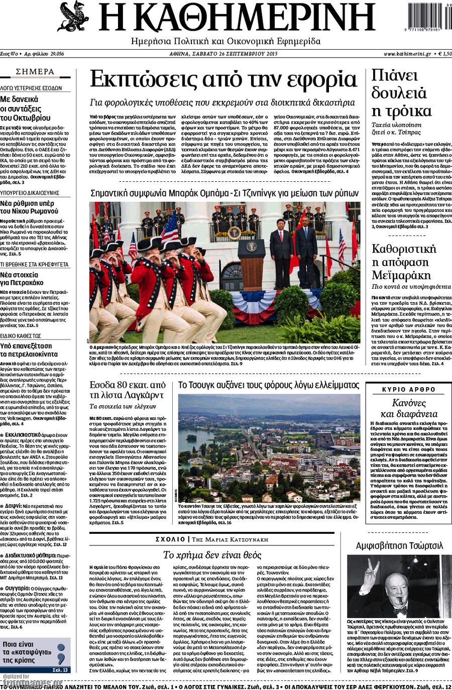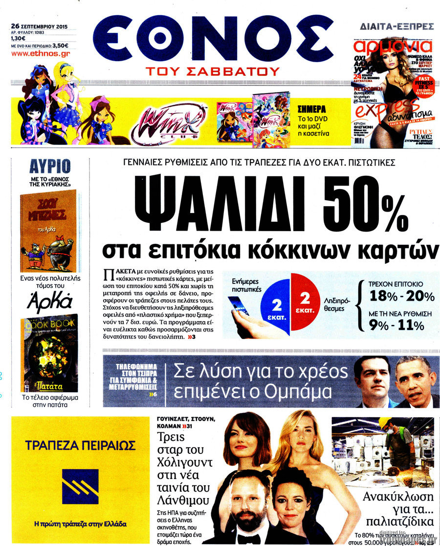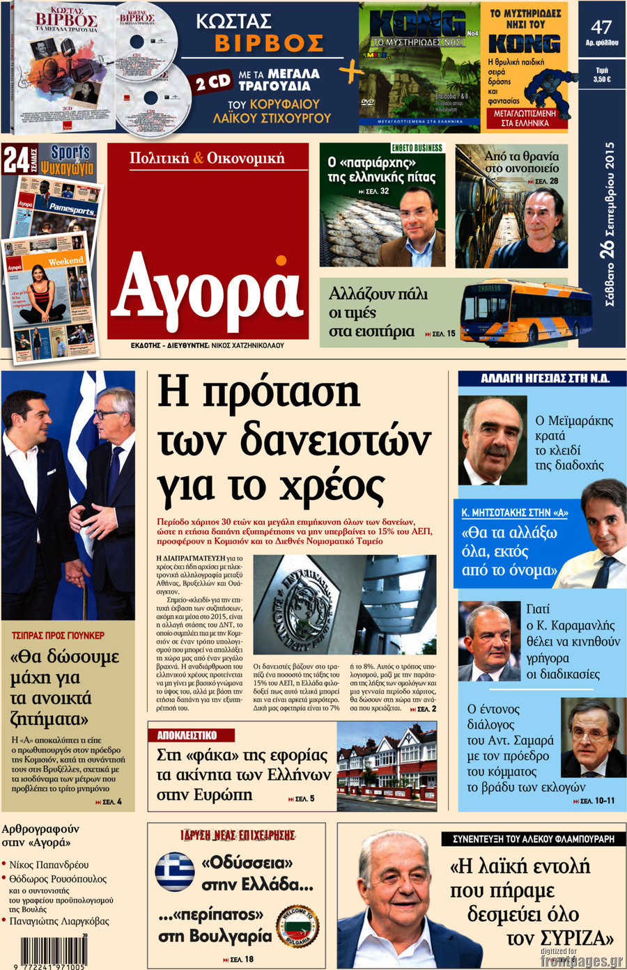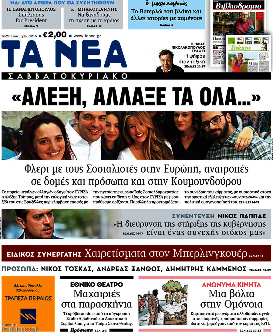 Οι πολιτικές εφημερίδες 26/9/2015 Στεφανία Κασίμη 07:31, Σάββατο 26 Σεπτεμβρίου 2015 Media ΠΟΛΙΤΙΚΕΣ ΕΦΗΜΕΡΙΔΕΣ ΠΡΩΤΟΣΕΛΙΔΑ Μοιράσου το: σχολίασε κι εσύ (0 σχόλια) Ακολουθήστε το enikos.gr στο Google News και μάθετε πρώτοι όλες τις ειδήσεις Δείτε όλες τις τελευταίες ειδήσεις από την Ελλάδα και τον Κόσμο στο enikos.gr Ειδήσεις Ροή Ειδήσεων 3 ώρες πριν Χριστούγεννα στα μπλόκα οι αγρότες: Άνοιξαν στα διόδια και μοίρασαν προϊόντα στους πολίτες – Νέα σύσκεψη την Κυριακή στη Νίκαια 4 ώρες πριν Κύκλωμα διακίνησης ναρκωτικών σε σχολεία: Τηλεφωνούσαν στους ανηλίκους την ώρα του μαθήματος – Οι διάλογοι-σοκ, τα «ψευδώνυμα» και τα βασανιστήρια 3 ώρες πριν Αρχεία Επστάιν: Οι 500 σελίδες που λείπουν, τα αναπάντητα ερωτήματα και οι επώνυμοι – Τι έπεται 5 ώρες πριν Ζελένσκι: Μόνο οι ΗΠΑ και ο Τραμπ μπορούν να πιέσουν τη Ρωσία να βάλει τέλος στον πόλεμο 5 ώρες πριν Φοινικούντα: Προφυλακιστέος ο 30χρονος για συνέργεια στη διπλή δολοφονία – Και άλλα πρόσωπα στο «μικροσκόπιο» 3 ώρες πριν Αποκαλύφθηκε το άγνωστο «GPS» της αρχαιότητας – Πώς οι ναοί «φώτιζαν» τον δρόμο των ναυτικών πριν από την εφεύρεση των φάρων 4 ώρες πριν Ύπνος: Η διατροφή που μπορεί να σας βοηθήσει να κοιμάστε καλύτερα και να ζήσετε περισσότερο 5 ώρες πριν Αριθμολογία: Ο αριθμός του φύλακα αγγέλου σας, με βάση τον μήνα γέννησής σας – «Έτσι σας στέλνει σημάδια το σύμπαν» 17 ώρες πριν Enerwave: Το νέο «ρεύμα» στη λιανική ενέργειας που αλλάζει την εμπειρία του καταναλωτή 12 λεπτά πριν Σεισμός 3,8 Ρίχτερ ανοιχτά της Αμοργού 28 λεπτά πριν Άννα Βίσση: Τα… Social Media «προσκύνησαν» την «απόλυτη» για την συναυλία της στο Καλλιμάρμαρο που προβλήθηκε από το Mega 42 λεπτά πριν Φωτεινή Αθερίδου: «Προσπαθώ να είμαι κάθετη και αυστηρή σαν μαμά πια» 57 λεπτά πριν ΗΠΑ, Αίγυπτος, Κατάρ και Τουρκία συζήτησαν τη δεύτερη φάση του ειρηνευτικού σχεδίου για τη Γάζα 1 ώρα πριν Γιάννης Αντετοκούνμπο: Έμεινε στην 6η θέση της ψηφοφορίας του ESPN για το βραβείο του MVP του NBA ENIKOS NETWORK Οι γυναίκες αποκαλύπτουν το πιο ελκυστικό πράγμα που μπορεί να κάνει ένας άνδρας Ομορφιά και αντιγήρανση: Ειδικοί μιλούν για συσκευές περιποίησης του δέρματος «Πολεμική» προετοιμασία από την ευρωπαϊκή βιομηχανία ενέργειας – Η Eurelectric ζητεί «ομπρέλα» προστασίας για τις υποδομές Ακύρωση ΑΦΜ για απάτες – Ποιους βάζει στο στόχαστρο η ΑΑΔΕ Χαρτογραφώντας το «σημείο χωρίς επιστροφή»: Για πρώτη φορά αποκαλύπτεται με λεπτομέρεια το ακανθώδες όριο της ατμόσφαιρας τ... Η Google καταργεί τη λειτουργία «dark web report» – Πώς θα μπορούν οι χρήστες να διαγράφουν τα δεδομένα τους περισσότερα 01:30 , Κυριακή 21 Δεκεμβρίου 2025 Άννα Βίσση: Τα… Social Media «προσκύνησαν» την «απόλυτη» για την συναυλία της στο Καλλιμάρμαρο που προβλήθηκε από το Mega Την ημέρα των γενεθλίων της Άννας Βίσση, το MEGA τίμησε τη διαχρονική παρουσία της «απόλυτης Ε... 00:00 , Κυριακή 21 Δεκεμβρίου 2025 The Voice: Η επιστροφή της Έλενας Παπαρίζου και η ατάκα του Γιώργου Μαζωνάκη μετά τις καταγγελίες Στη φάση των Cross Battles Live μπήκε το The Voice, με την Έλενα Παπαρίζου να επιστρέφει στο π... 20:30 , Σάββατο 20 Δεκεμβρίου 2025 Αυτή την Κυριακή με τη Realnews: Instyle, μαζί Drive και Realnews Geopolitics Αυτή την Κυριακή με τη Realnews: Instyle, μαζί Drive και Realnews Geopolitics Instyle Η Άννα Ρ... 20:28 , Σάββατο 20 Δεκεμβρίου 2025 Ο ΑΝΤ1 γεμίζει τις γιορτές με μουσική – Ποιους καλλιτέχνες θα απολαύσουμε Φέτος στον ΑΝΤ1 γιορτάζουμε τις νύχτες μας παρέα με αγαπημένους καλλιτέχνες και μεγάλες μουσι... ΤΕΛΕΥΤΑΙΕΣ ΕΙΔΗΣΕΙΣ 12 λεπτά πρ