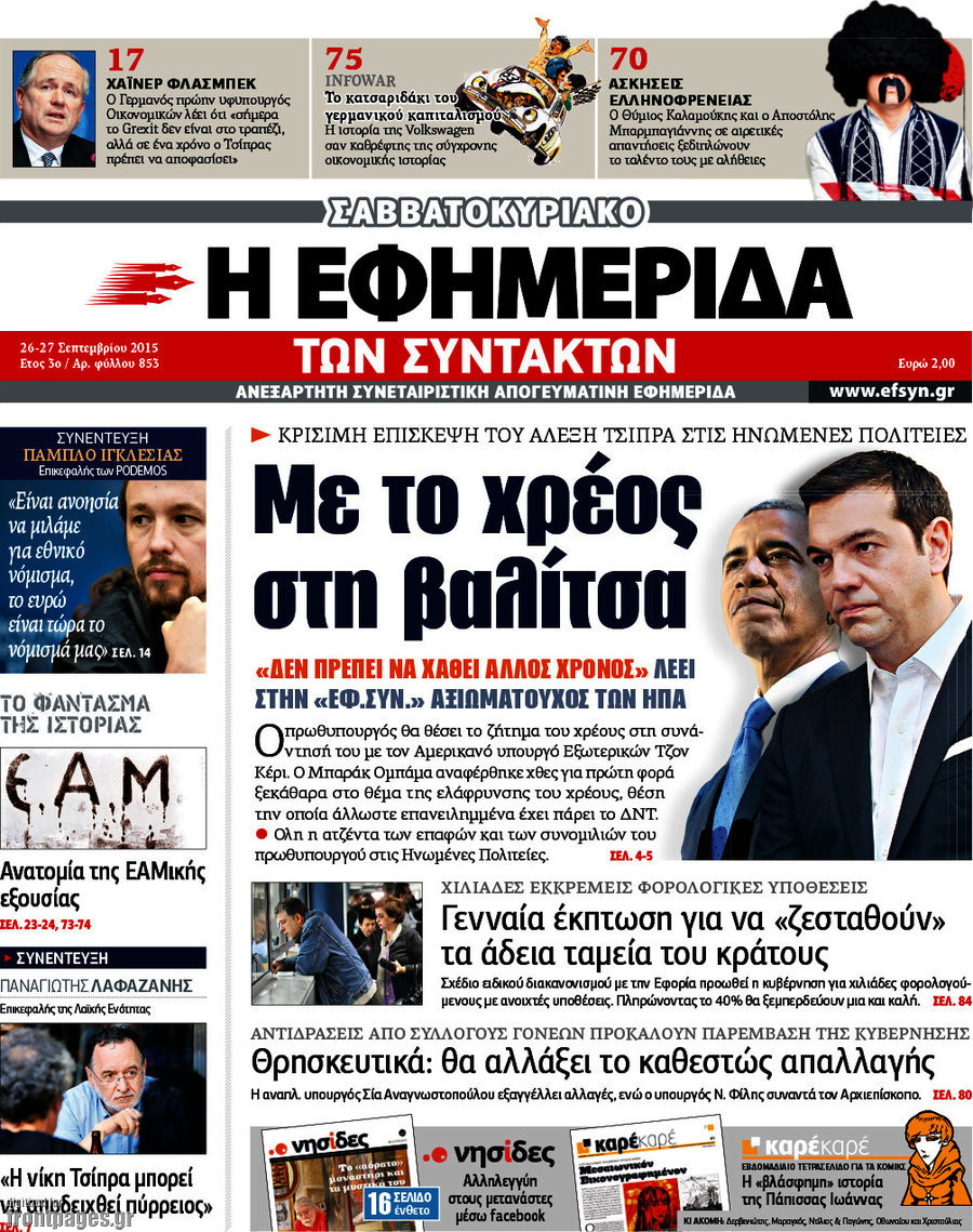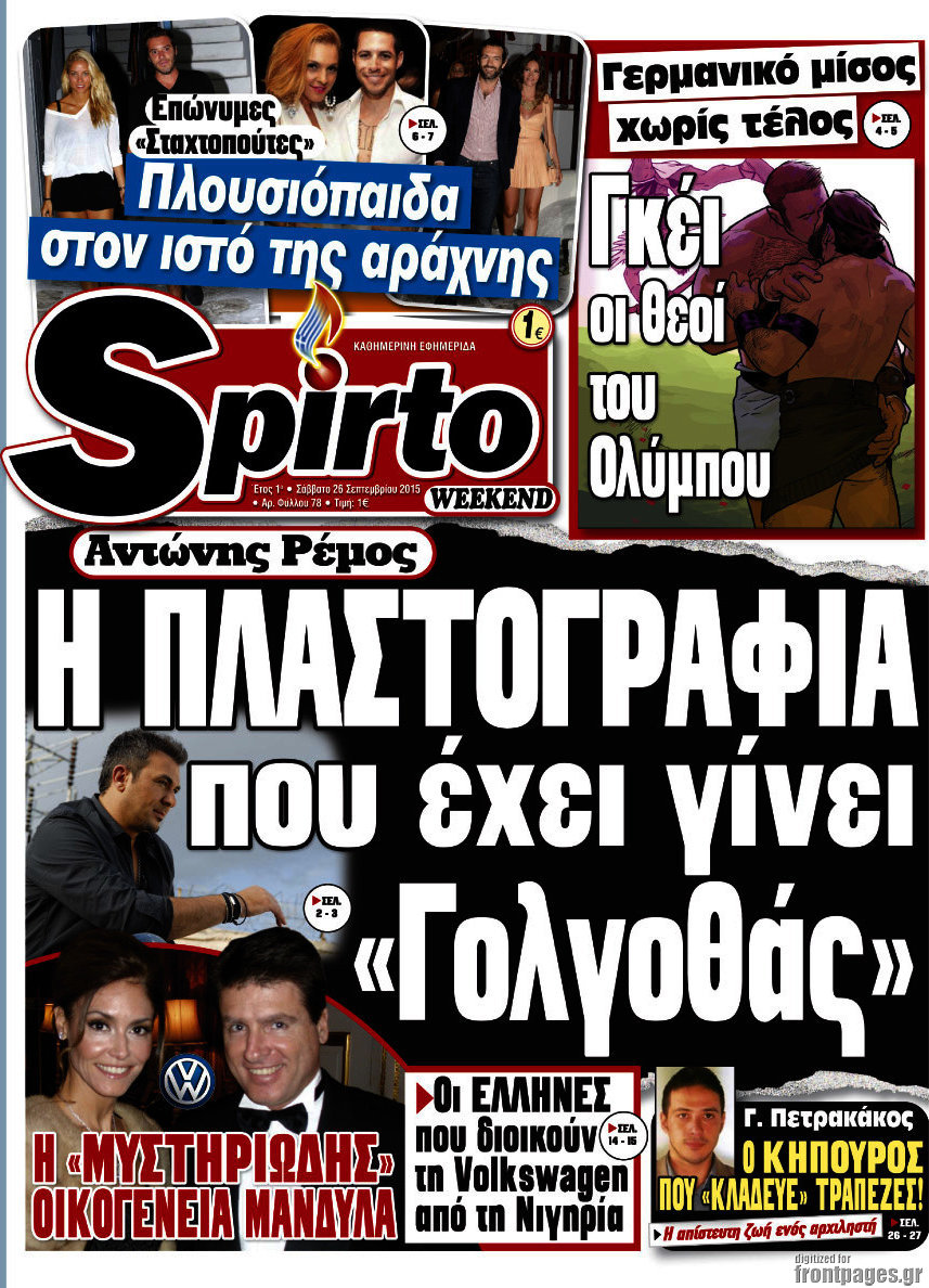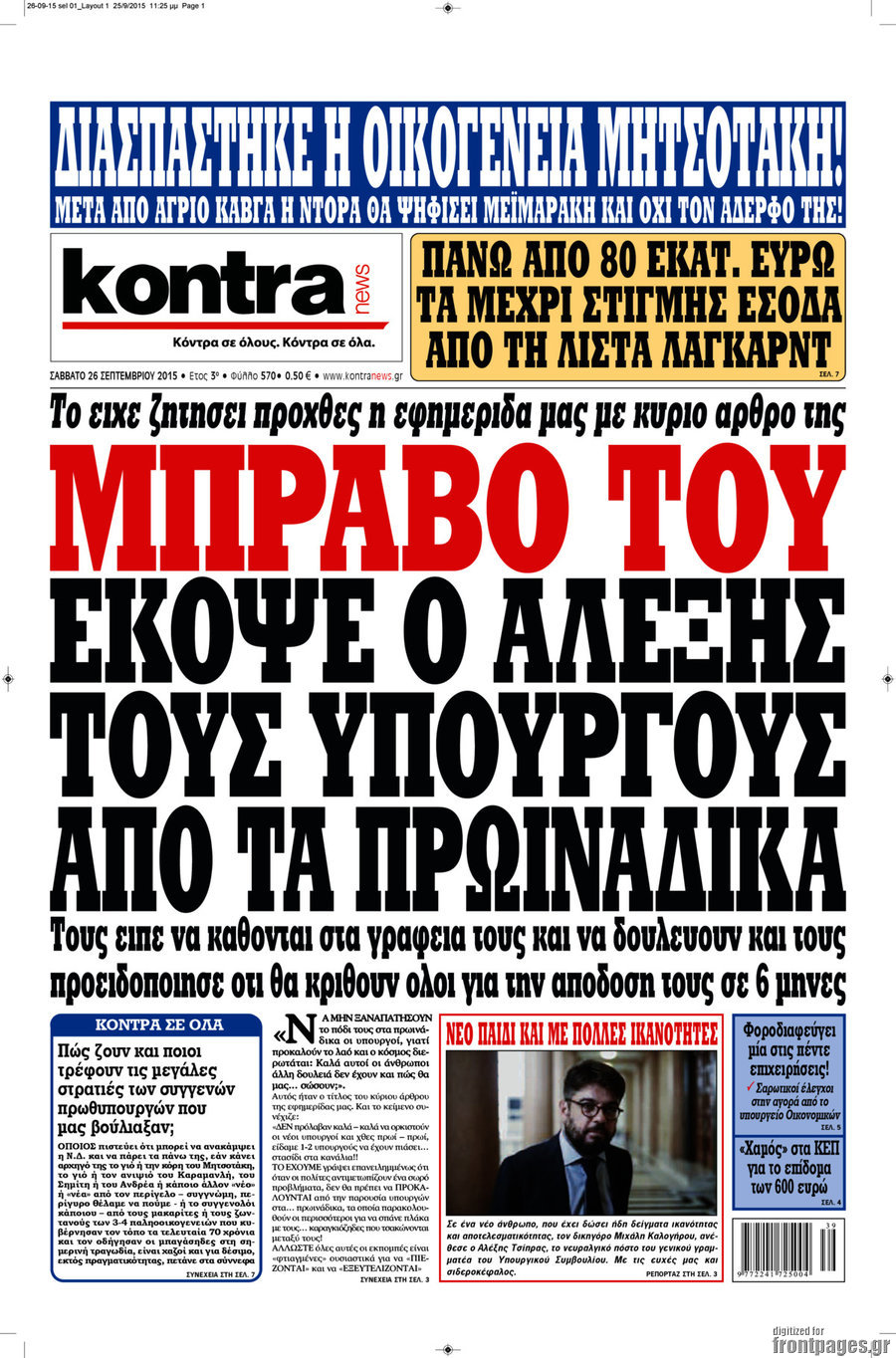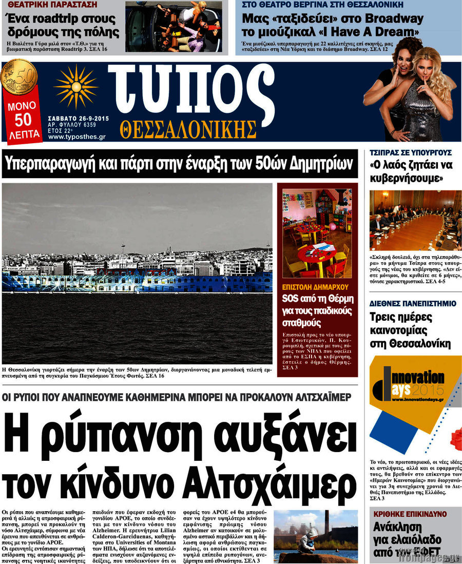 Οι πολιτικές εφημερίδες 26/9/2015 Στεφανία Κασίμη 07:31, Σάββατο 26 Σεπτεμβρίου 2015 Media ΠΟΛΙΤΙΚΕΣ ΕΦΗΜΕΡΙΔΕΣ ΠΡΩΤΟΣΕΛΙΔΑ Μοιράσου το: σχολίασε κι εσύ (0 σχόλια) Ακολουθήστε το enikos.gr στο Google News και μάθετε πρώτοι όλες τις ειδήσεις Δείτε όλες τις τελευταίες ειδήσεις από την Ελλάδα και τον Κόσμο στο enikos.gr Ειδήσεις Ροή Ειδήσεων 3 ώρες πριν Χριστούγεννα στα μπλόκα οι αγρότες: Άνοιξαν στα διόδια και μοίρασαν προϊόντα στους πολίτες – Νέα σύσκεψη την Κυριακή στη Νίκαια 4 ώρες πριν Κύκλωμα διακίνησης ναρκωτικών σε σχολεία: Τηλεφωνούσαν στους ανηλίκους την ώρα του μαθήματος – Οι διάλογοι-σοκ, τα «ψευδώνυμα» και τα βασανιστήρια 3 ώρες πριν Αρχεία Επστάιν: Οι 500 σελίδες που λείπουν, τα αναπάντητα ερωτήματα και οι επώνυμοι – Τι έπεται 5 ώρες πριν Ζελένσκι: Μόνο οι ΗΠΑ και ο Τραμπ μπορούν να πιέσουν τη Ρωσία να βάλει τέλος στον πόλεμο 5 ώρες πριν Φοινικούντα: Προφυλακιστέος ο 30χρονος για συνέργεια στη διπλή δολοφονία – Και άλλα πρόσωπα στο «μικροσκόπιο» 3 ώρες πριν Αποκαλύφθηκε το άγνωστο «GPS» της αρχαιότητας – Πώς οι ναοί «φώτιζαν» τον δρόμο των ναυτικών πριν από την εφεύρεση των φάρων 4 ώρες πριν Ύπνος: Η διατροφή που μπορεί να σας βοηθήσει να κοιμάστε καλύτερα και να ζήσετε περισσότερο 5 ώρες πριν Αριθμολογία: Ο αριθμός του φύλακα αγγέλου σας, με βάση τον μήνα γέννησής σας – «Έτσι σας στέλνει σημάδια το σύμπαν» 17 ώρες πριν Enerwave: Το νέο «ρεύμα» στη λιανική ενέργειας που αλλάζει την εμπειρία του καταναλωτή 12 λεπτά πριν Σεισμός 3,8 Ρίχτερ ανοιχτά της Αμοργού 28 λεπτά πριν Άννα Βίσση: Τα… Social Media «προσκύνησαν» την «απόλυτη» για την συναυλία της στο Καλλιμάρμαρο που προβλήθηκε από το Mega 42 λεπτά πριν Φωτεινή Αθερίδου: «Προσπαθώ να είμαι κάθετη και αυστηρή σαν μαμά πια» 57 λεπτά πριν ΗΠΑ, Αίγυπτος, Κατάρ και Τουρκία συζήτησαν τη δεύτερη φάση του ειρηνευτικού σχεδίου για τη Γάζα 1 ώρα πριν Γιάννης Αντετοκούνμπο: Έμεινε στην 6η θέση της ψηφοφορίας του ESPN για το βραβείο του MVP του NBA ENIKOS NETWORK Οι γυναίκες αποκαλύπτουν το πιο ελκυστικό πράγμα που μπορεί να κάνει ένας άνδρας Ομορφιά και αντιγήρανση: Ειδικοί μιλούν για συσκευές περιποίησης του δέρματος «Πολεμική» προετοιμασία από την ευρωπαϊκή βιομηχανία ενέργειας – Η Eurelectric ζητεί «ομπρέλα» προστασίας για τις υποδομές Ακύρωση ΑΦΜ για απάτες – Ποιους βάζει στο στόχαστρο η ΑΑΔΕ Χαρτογραφώντας το «σημείο χωρίς επιστροφή»: Για πρώτη φορά αποκαλύπτεται με λεπτομέρεια το ακανθώδες όριο της ατμόσφαιρας τ... Η Google καταργεί τη λειτουργία «dark web report» – Πώς θα μπορούν οι χρήστες να διαγράφουν τα δεδομένα τους περισσότερα 01:30 , Κυριακή 21 Δεκεμβρίου 2025 Άννα Βίσση: Τα… Social Media «προσκύνησαν» την «απόλυτη» για την συναυλία της στο Καλλιμάρμαρο που προβλήθηκε από το Mega Την ημέρα των γενεθλίων της Άννας Βίσση, το MEGA τίμησε τη διαχρονική παρουσία της «απόλυτης Ε... 00:00 , Κυριακή 21 Δεκεμβρίου 2025 The Voice: Η επιστροφή της Έλενας Παπαρίζου και η ατάκα του Γιώργου Μαζωνάκη μετά τις καταγγελίες Στη φάση των Cross Battles Live μπήκε το The Voice, με την Έλενα Παπαρίζου να επιστρέφει στο π... 20:30 , Σάββατο 20 Δεκεμβρίου 2025 Αυτή την Κυριακή με τη Realnews: Instyle, μαζί Drive και Realnews Geopolitics Αυτή την Κυριακή με τη Realnews: Instyle, μαζί Drive και Realnews Geopolitics Instyle Η Άννα Ρ... 20:28 , Σάββατο 20 Δεκεμβρίου 2025 Ο ΑΝΤ1 γεμίζει τις γιορτές με μουσική – Ποιους καλλιτέχνες θα απολαύσουμε Φέτος στον ΑΝΤ1 γιορτάζουμε τις νύχτες μας παρέα με αγαπημένους καλλιτέχνες και μεγάλες μουσι... ΤΕΛΕΥΤΑΙΕΣ ΕΙΔΗΣΕΙΣ 12 λεπτά πρ