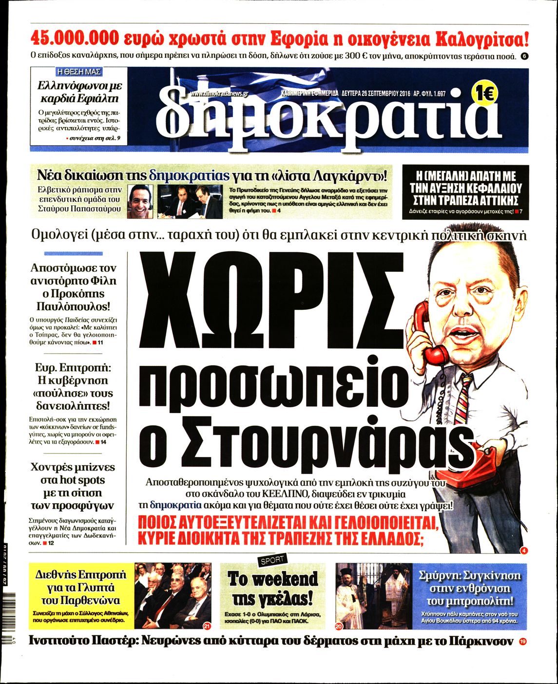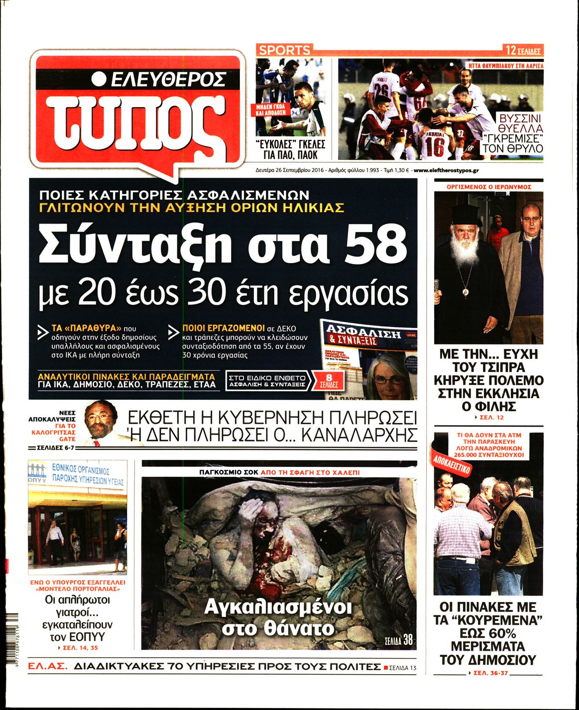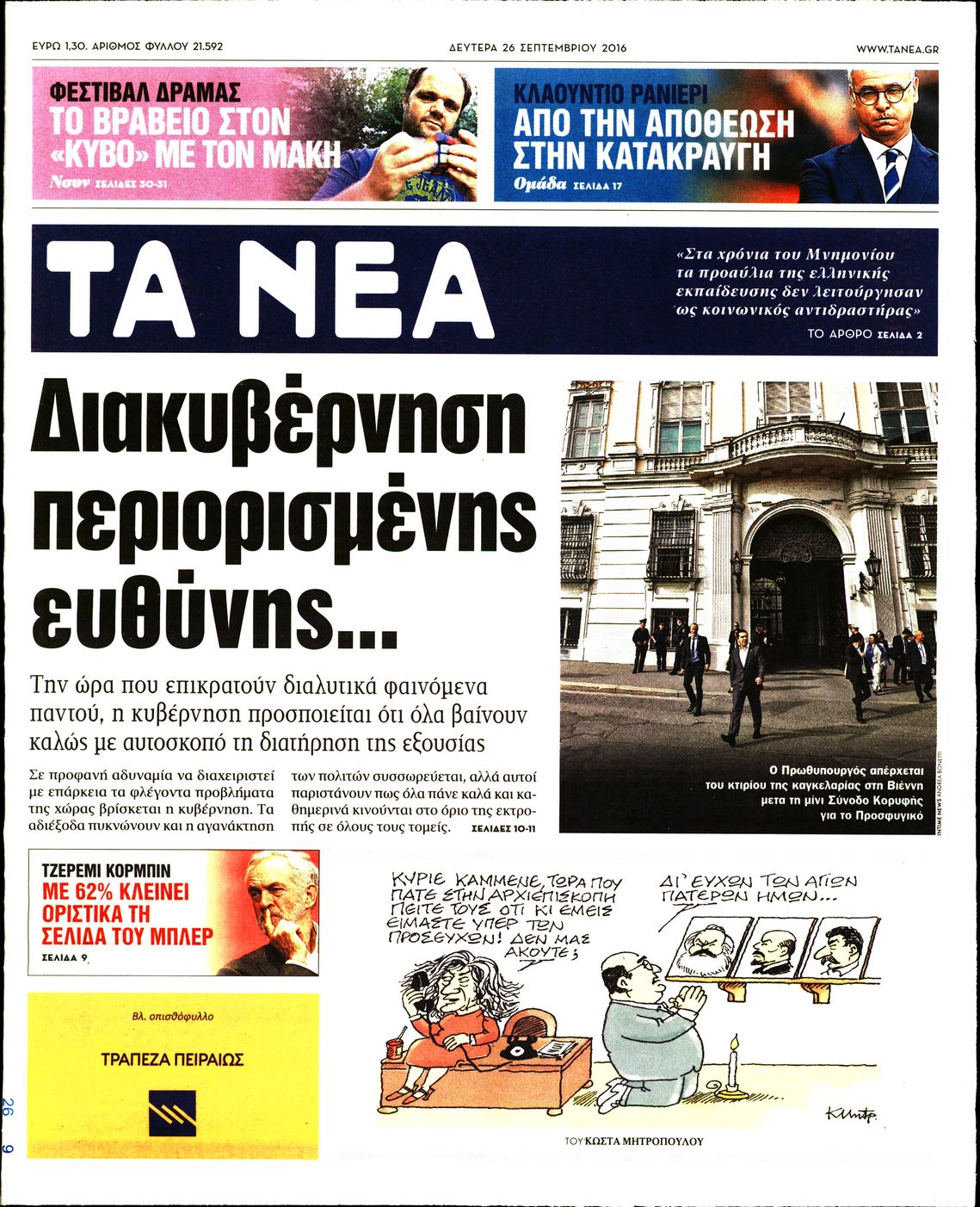 Oι πολιτικές εφημερίδες 26/9/2016 Enikos Newsroom 05:00, Δευτέρα 26 Σεπτεμβρίου 2016 Media Διαβάστε τα σημερινά πρωτοσέλιδα των πολιτικών εφημερίδων: ΠΟΛΙΤΙΚΕΣ ΕΦΗΜΕΡΙΔΕΣ ΠΡΩΤΟΣΕΛΙΔΑ Μοιράσου το: σχολίασε κι εσύ (0 σχόλια) Ακολουθήστε το enikos.gr στο Google News και μάθετε πρώτοι όλες τις ειδήσεις Δείτε όλες τις τελευταίες ειδήσεις από την Ελλάδα και τον Κόσμο στο enikos.gr Ειδήσεις Ροή Ειδήσεων 6 ώρες πριν Εκτός ευρωομάδας ΣΥΡΙΖΑ ο Νίκος Παππάς μετά την επίθεση στον δημοσιογράφο Νίκο Γιαννόπουλο – Η μήνυση και οι νέες δηλώσεις 6 ώρες πριν «Αγριεύουν» οι αγρότες: «Δεν συντρέχει λόγος συνάντησης με τον πρωθυπουργό» – Ώρα αποφάσεων στη σύσκεψη της Πέμπτης 6 ώρες πριν Κυψέλη: Χωρίς την οικογένειά της δίπλα της απολογήθηκε η 16χρονη – «Της είχε επιτεθεί κάποιος για να την βιάσει, φοβήθηκε και κυκλοφορούσε με μαχαίρι» 6 ώρες πριν Politico: Το πρόβλημα της Ευρώπης δεν είναι το Βέλγιο αλλά ο Ντόναλντ Τραμπ 8 ώρες πριν Αλεξανδρούπολη: Πολυοργανική ανεπάρκεια λόγω υποσιτισμού η αιτία θανάτου του 3χρονου αγοριού 6 ώρες πριν Μυστήριο με τεράστιες κυκλικές πέτρες 200 κιλών – Ανακαλύφθηκαν τυχαία κατά τη διάρκεια οδικών έργων και κανείς δεν ξέρει από πού προέρχονται 7 ώρες πριν Ύπνος: Ειδικός εξηγεί τον πραγματικό λόγο που ξυπνάτε στις 4 τα ξημερώματα – Ο ρόλος των ορμονών και του κιρκάδιου ρυθμού 8 ώρες πριν Αριθμολογία: Οι άνθρωποι που έχουν γεννηθεί αυτές τις 4 ημερομηνίες, είναι τρυφεροί και αγαπούν ανιδιοτελώς 20 ώρες πριν 20 χρόνια τα Χριστούγεννα ξεκινούν στα Public με μεγάλη ποικιλία σε δώρα! 6 λεπτά πριν Αυστραλία: Κυβερνητική δέσμευση για αυστηρότερα μέτρα κατά της υποκίνησης μίσους 21 λεπτά πριν Ντόναλντ Τραμπ: Παρουσίασε τα επιτεύγματα της διακυβέρνησής του – Σκληρή κριτική στον Τζο Μπάιντεν 36 λεπτά πριν Κτηνοτρόφοι: Με δάκρυα στα μάτια ζουν τον εφιάλτη των άδειων στάβλων – «Καταστράφηκαν οι ζωές μας» 51 λεπτά πριν Νέο αμερικανικό πλήγμα σε σκάφος που φέρεται να μετέφερε ναρκωτικά στον Ειρηνικό – Τέσσερις νεκροί 1 ώρα πριν Αλ Τσαντίρι Νιουζ: «Λύγισε» ο Δημήτρης Λάλος για τον Δημήτρη Ήμελλο – «Τον μνημονεύω, να ‘ναι καλά εκεί που είναι» ENIKOS NETWORK Αϋπνία: Το κόλπο που θα σας βοηθήσει να κοιμηθείτε απόψε – Είναι απλό και έχει αποτέλεσμα 2,6 εκατομμύρια πολίτες έχουν ήδη εμβολιαστεί κατά της γρίπης ΕΛΣΤΑΤ: Τι δείχνουν τα νέα στοιχεία για τις ηλεκτρονικές παραγγελίες των επιχειρήσεων ΚΕΠΕ: Οι 3 διακριτές συμβολές των ΜμΕ και της μεταποίησης στην ελληνική οικονομία Χαρτογραφώντας το «σημείο χωρίς επιστροφή»: Για πρώτη φορά αποκαλύπτεται με λεπτομέρεια το ακανθώδες όριο της ατμόσφαιρας τ... Η Google καταργεί τη λειτουργία «dark web report» – Πώς θα μπορούν οι χρήστες να διαγράφουν τα δεδομένα τους περισσότερα 02:30 , Πέμπτη 18 Δεκεμβρίου 2025 Αλ Τσαντίρι Νιουζ: Η κόρη της Πάολα στο κοινό – Η ατάκα Λαζόπουλου που την έκανε να «κοκκινήσει» Γιορτινή διάθεση και ευχάριστες στιγμές γέμισε η αποψινή, τελευταία για το 2025, εκπομπή του «... 22:24 , Τετάρτη 17 Δεκεμβρίου 2025 Το Σπίτι Δίπλα Στο Ποτάμι: Σε κίνδυνο η υγεία του Απόστολου – Τι θα δούμε απόψε “Το Σπίτι Δίπλα στο Ποτάμι” ξετυλίγει το νήμα της ζωής των πέντε αδελφών με καταισ... 21:14 , Τετάρτη 17 Δεκεμβρίου 2025 Παιχνίδια Εκδίκησης: Θα καταφέρει ο Χρήστος να κλονίσει την εμπιστοσύνη της Μάγιας απέναντι στον Άγη; Τα «Παιχνίδια Εκδίκησης» έρχονται απόψε στις 22:30, στον Αντ1, με το τελευταίο επεισόδιο της χ... 20:57 , Τετάρτη 17 Δεκεμβρίου 2025 Άγιος Έρωτας: Η Χλόη καταθέτει 
