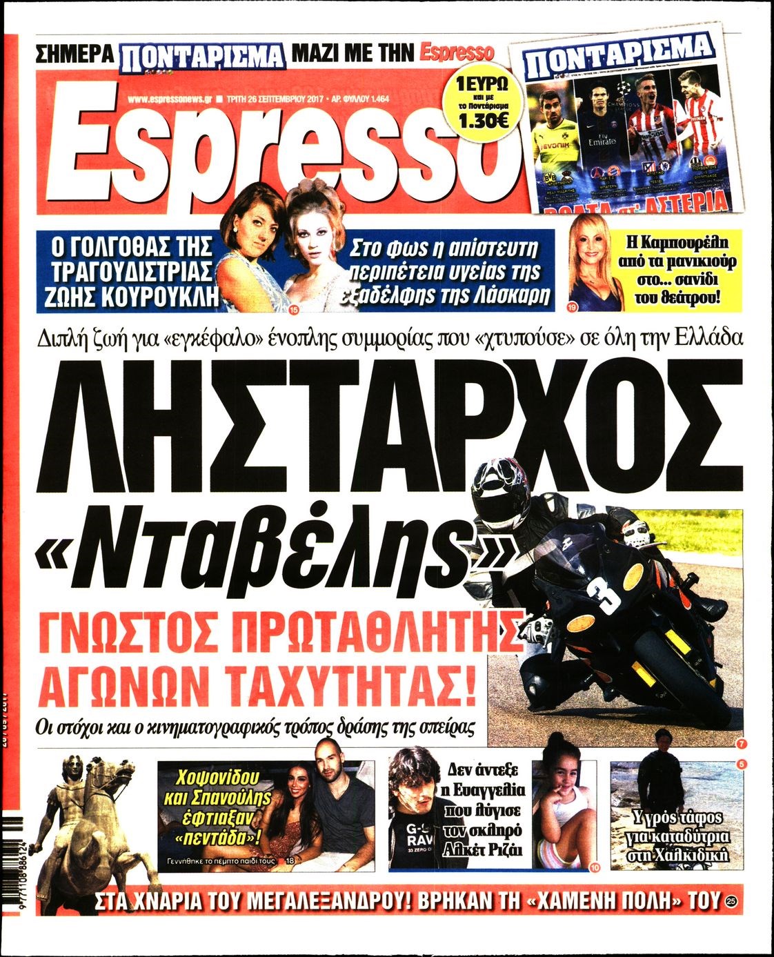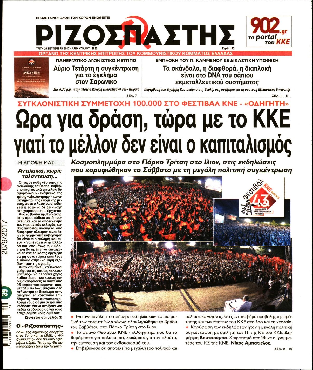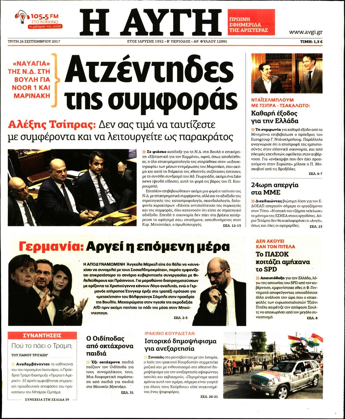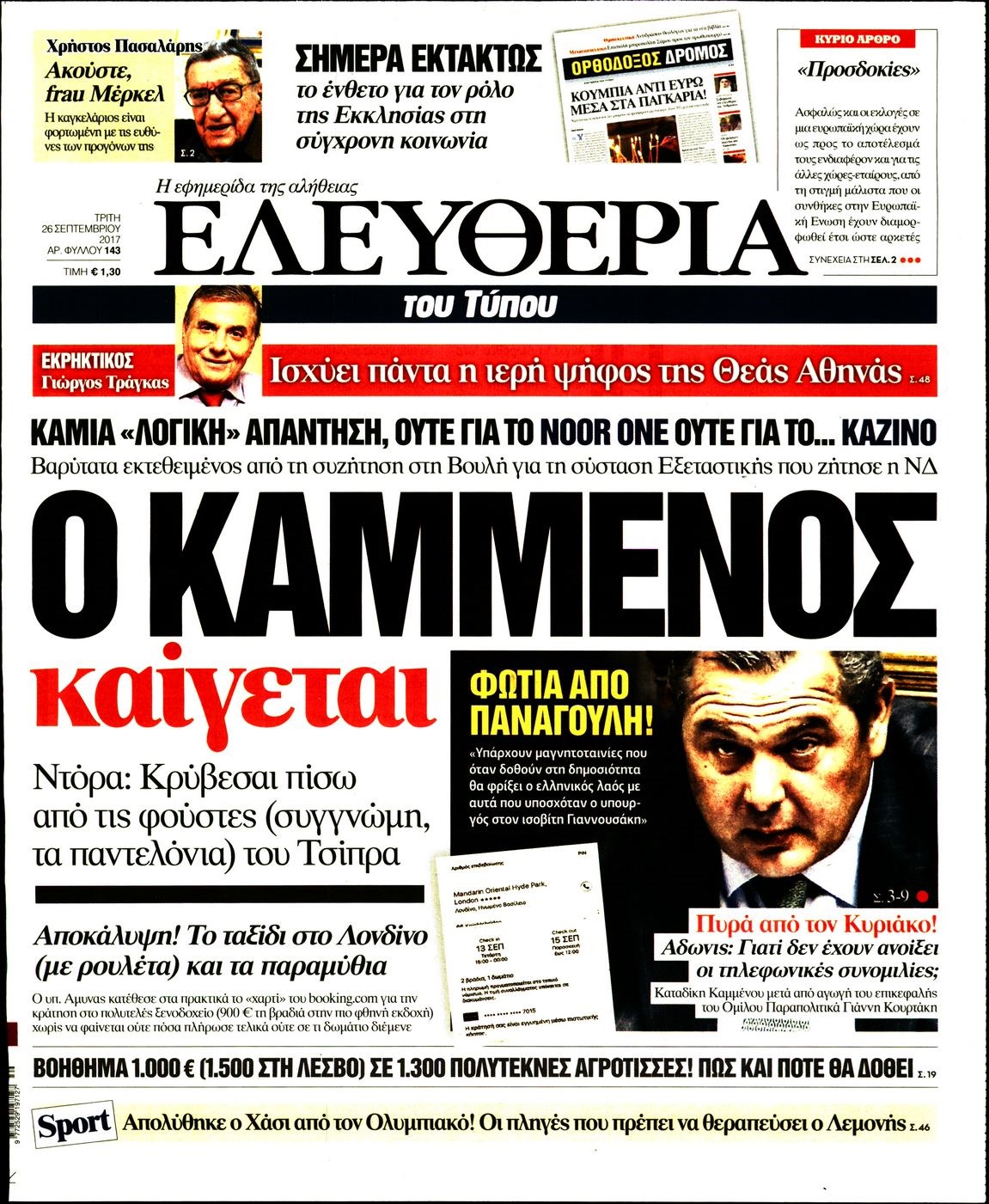 Οι πολιτικές εφημερίδες 26/9/2017 Κώστας Τεό 05:24, Τρίτη 26 Σεπτεμβρίου 2017 Media Διαβάστε τα σημερινά πρωτοσέλιδα των πολιτικών εφημερίδων: ΠΟΛΙΤΙΚΕΣ ΕΦΗΜΕΡΙΔΕΣ ΠΡΩΤΟΣΕΛΙΔΑ Μοιράσου το: σχολίασε κι εσύ (0 σχόλια) Ακολουθήστε το enikos.gr στο Google News και μάθετε πρώτοι όλες τις ειδήσεις Δείτε όλες τις τελευταίες ειδήσεις από την Ελλάδα και τον Κόσμο στο enikos.gr Ειδήσεις Ροή Ειδήσεων 2 ώρες πριν Χριστούγεννα στα μπλόκα: Επιμένουν στις κινητοποιήσεις τους οι αγρότες – Ανοίγουν τα διόδια το Σαββατοκύριακο 2 ώρες πριν Ουκρανία: Η άνευ προηγουμένου επίθεση σε ρωσικό τάνκερ στη Μεσόγειο και το μήνυμα προς στον Πούτιν – Το «μακρύ χέρι» του Κιέβου 1 ώρα πριν Πούτιν: Τα μηνύματα σε Ευρώπη και ΝΑΤΟ από το μαραθώνιο «σόου» του – Η απαίτηση για «σεβασμό» και η ειρήνη «με τους όρους» της Μόσχας 2 ώρες πριν Τραμπ: Δεν αποκλείει την πιθανότητα ενός πολέμου στη Βενεζουέλα – «Ο Μαδούρο ξέρει καλύτερα από τον καθένα τι ακριβώς θέλω» 3 ώρες πριν Συνεχίζει να προκαλεί ο Μίτσκοσκι: «Για μένα το όνομα Μακεδονία είναι ιερό» 1 ώρα πριν Ανακαλύφθηκαν αρχαία χρυσά νομίσματα 2.200 ετών που απεικονίζουν τον θεό Απόλλωνα – Η άγνωστη σύνδεση με τον Φίλιππο Β΄ της Μακεδονίας 2 ώρες πριν Ύπνος: Μια κρυφή κατάσταση του εγκεφάλου πριν από τον ύπνο μπορεί να είναι το “κλειδί” για υψηλή ευφυΐα και δημιουργικότητα 3 ώρες πριν Αριθμολογία: Οι άνθρωποι που έχουν γεννηθεί αυτές τις 4 ημερομηνίες, συχνά παρεξηγούνται – «Η καλοσύνη τους κρύβει τεράστια δύναμη» 4 ώρες πριν Ξεχάστε το καθάρισμα το Σαββατοκύριακο: Ο «κανόνας των 20 λεπτών» που θα σας λύσει τα χέρια 6 λεπτά πριν Βασίλης Σπανούλης: Δεν εμφανίστηκε ούτε ένας δημοσιογράφος στην συνέντευξη Τύπου – «Καλησπέρα στον… κανέναν», δείτε βίντεο 17 λεπτά πριν Πόλεμος στην Ουκρανία: Εφτά νεκροί από ρωσική πυραυλική επίθεση στο λιμάνι της Οδησσού 20 λεπτά πριν ΗΠΑ: Η κυβέρνηση του Ντόναλντ Τραμπ άρχισε να δημοσιοποιεί τα αρχεία Έπσταϊν 32 λεπτά πριν Σάμος: Άνοιξε το μπλόκο των αγροτών στον κόμβο Κοκκαρίου – Σε νέα συνεδρίαση θα καθορίσουν την στάση τους 40 λεπτά πριν Άνω Λιόσια: Πυροβολισμοί σε επιχείρηση με χαλιά – Εντοπίστηκαν 10 κάλυκες ENIKOS NETWORK Το ΕΚΑΒ τιμήθηκε από την Ακαδημία Αθηνών για τα 40 χρόνια προσφοράς του Έχετε πραγματικά μεγάλη καρδιά; 10 χαρακτηριστικά όσων έχουν καλοσύνη Αναστολή μέτρων αναγκαστικής εκτέλεσης για κτηνοτρόφους που πλήττονται από την ευλογιά των αιγοπροβάτων Πλήρης επάρκεια προϊόντων στις λαϊκές της Αττικής, παρά τις αγροτικές κινητοποιήσεις – Τι απαντούν οι πωλητές Χαρτογραφώντας το «σημείο χωρίς επιστροφή»: Για πρώτη φορά αποκαλύπτεται με λεπτομέρεια το ακανθώδες όριο της ατμόσφαιρας τ... Η Google καταργεί τη λειτουργία «dark web report» – Πώς θα μπορούν οι χρήστες να διαγράφουν τα δεδομένα τους περισσότερα 22:42 , Παρασκευή 19 Δεκεμβρίου 2025 Γιώργος Γιαννόπουλος για “Το σόι σου”: “Είναι ευτυχία και ευλογία αυτή η σειρά” «Είναι ευτυχία και ευλογία η συγκυρία αυτής της σειράς», θα πει ο Γιώργος Γιαννόπουλος -ο αγαπ... 20:37 , Παρασκευή 19 Δεκεμβρίου 2025 Don’t Forget The Lyrics: Η Έλλη Κοκκίνου υποδέχεται 4 παίκτες που θα κάνουν τα πάντα για να μη χάσουν ούτε… μισή λέξη από τους στίχους Το «Don’t Forget The Lyrics» επιστρέφει απόψε, Παρασκευή 19 Δεκεμβρίου, στις 21:00 με νέο επει... 19:31 , Παρασκευή 19 Δεκεμβρίου 2025 GNTM: Απόψε ο μεγάλος τελικός για τους 4 φιναλίστ Έπειτα από μήνες γεμάτους μόδα, δημιουργία και έντονες αναμετρήσεις, το GNTM 2025 κορυφώνεται,... 18:11 , Παρα