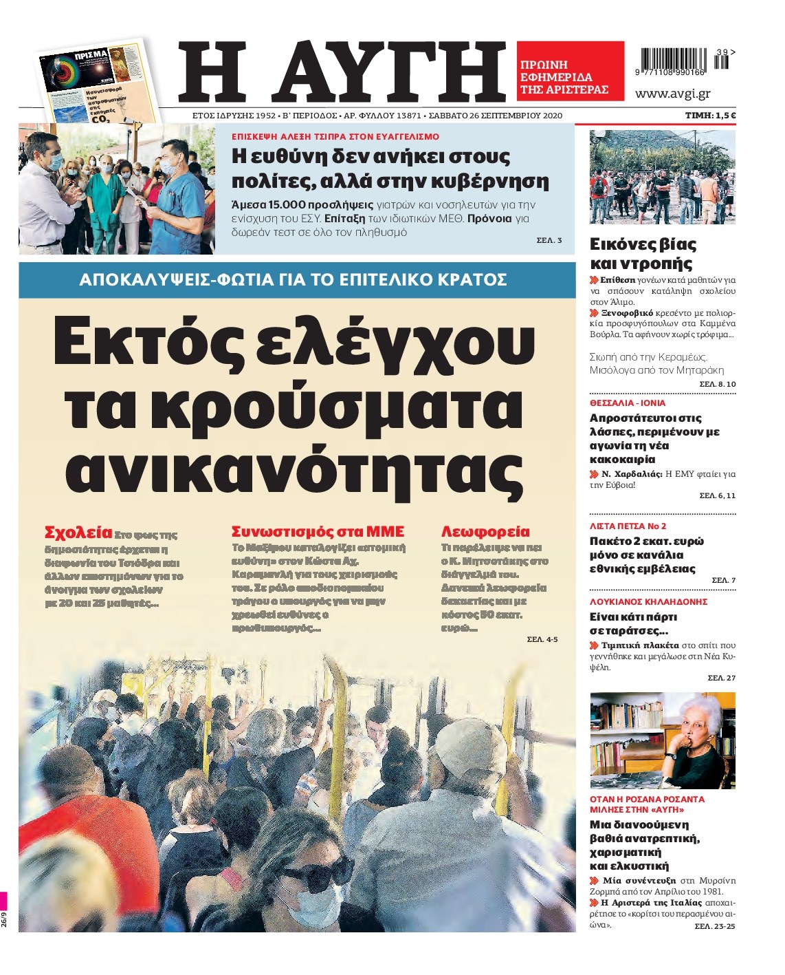 Οι πολιτικές εφημερίδες 26/9/2020 Διονύσης Νίκκας 07:18, Σάββατο 26 Σεπτεμβρίου 2020 Media Διαβάστε τα πρωτοσέλιδα των πολιτικών εφημερίδων… ΠΟΛΙΤΙΚΕΣ ΕΦΗΜΕΡΙΔΕΣ ΠΡΩΤΟΣΕΛΙΔΑ Μοιράσου το: σχολίασε κι εσύ (0 σχόλια) Ακολουθήστε το enikos.gr στο Google News και μάθετε πρώτοι όλες τις ειδήσεις Δείτε όλες τις τελευταίες ειδήσεις από την Ελλάδα και τον Κόσμο στο enikos.gr Ειδήσεις Ροή Ειδήσεων 7 ώρες πριν Εκτός ευρωομάδας ΣΥΡΙΖΑ ο Νίκος Παππάς μετά την επίθεση στον δημοσιογράφο Νίκο Γιαννόπουλο – Η μήνυση και οι νέες δηλώσεις 7 ώρες πριν «Αγριεύουν» οι αγρότες: «Δεν συντρέχει λόγος συνάντησης με τον πρωθυπουργό» – Ώρα αποφάσεων στη σύσκεψη της Πέμπτης 7 ώρες πριν Κυψέλη: Χωρίς την οικογένειά της δίπλα της απολογήθηκε η 16χρονη – «Της είχε επιτεθεί κάποιος για να την βιάσει, φοβήθηκε και κυκλοφορούσε με μαχαίρι» 6 ώρες πριν Politico: Το πρόβλημα της Ευρώπης δεν είναι το Βέλγιο αλλά ο Ντόναλντ Τραμπ 8 ώρες πριν Αλεξανδρούπολη: Πολυοργανική ανεπάρκεια λόγω υποσιτισμού η αιτία θανάτου του 3χρονου αγοριού 7 ώρες πριν Μυστήριο με τεράστιες κυκλικές πέτρες 200 κιλών – Ανακαλύφθηκαν τυχαία κατά τη διάρκεια οδικών έργων και κανείς δεν ξέρει από πού προέρχονται 8 ώρες πριν Ύπνος: Ειδικός εξηγεί τον πραγματικό λόγο που ξυπνάτε στις 4 τα ξημερώματα – Ο ρόλος των ορμονών και του κιρκάδιου ρυθμού 9 ώρες πριν Αριθμολογία: Οι άνθρωποι που έχουν γεννηθεί αυτές τις 4 ημερομηνίες, είναι τρυφεροί και αγαπούν ανιδιοτελώς 20 ώρες πριν 20 χρόνια τα Χριστούγεννα ξεκινούν στα Public με μεγάλη ποικιλία σε δώρα! 2 λεπτά πριν Οι αθλητικές εφημερίδες 18/12/2025 7 λεπτά πριν Οι πολιτικές εφημερίδες 18/12/2025 15 λεπτά πριν Τα ζώδια σήμερα, Πέμπτη 18 Δεκεμβρίου: Λέοντες, η καρδιά σας θέλει να εκφραστεί 23 λεπτά πριν Το Ποντίκι σήμερα Πέμπτη 18/12/2025 28 λεπτά πριν Εφημερεύοντα φαρμακεία σε Αθήνα και Θεσσαλονίκη (18/12) ENIKOS NETWORK Αϋπνία: Το κόλπο που θα σας βοηθήσει να κοιμηθείτε απόψε – Είναι απλό και έχει αποτέλεσμα 2,6 εκατομμύρια πολίτες έχουν ήδη εμβολιαστεί κατά της γρίπης ΕΛΣΤΑΤ: Τι δείχνουν τα νέα στοιχεία για τις ηλεκτρονικές παραγγελίες των επιχειρήσεων ΚΕΠΕ: Οι 3 διακριτές συμβολές των ΜμΕ και της μεταποίησης στην ελληνική οικονομία Χαρτογραφώντας το «σημείο χωρίς επιστροφή»: Για πρώτη φορά αποκαλύπτεται με λεπτομέρεια το ακανθώδες όριο της ατμόσφαιρας τ... Η Google καταργεί τη λειτουργία «dark web report» – Πώς θα μπορούν οι χρήστες να διαγράφουν τα δεδομένα τους περισσότερα 05:43 , Πέμπτη 18 Δεκεμβρίου 2025 Οι αθλητικές εφημερίδες 18/12/2025 Διαβάστε τα πρωτοσέλιδα από τις αθλητικές εφημερίδες, σήμερα 18/12/2025. 05:38 , Πέμπτη 18 Δεκεμβρίου 2025 Οι πολιτικές εφημερίδες 18/12/2025 Διαβάστε τα πρωτοσέλιδα από τις πολιτικές εφημερίδες, σήμερα 18/12/2025. 05:22 , Πέμπτη 18 Δεκεμβρίου 2025 Το Ποντίκι σήμερα Πέμπτη 18/12/2025 Διαβάστε το πρωτοσέλιδο της εφημερίδας «Το Ποντίκι» σήμερα 18/12/2025. 02:30 , Πέμπτη 18 Δεκεμβρίου 2025 Αλ Τσαντίρι Νιουζ: Η κόρη της Πάολα στο κοινό – Η ατάκα Λαζόπουλου που την έκανε να «κοκκινήσει» Γιορτινή διάθεση και ευχάριστες στιγμές γέμισε η αποψινή, τελευταία για το 2025, εκπομπή του «... ΤΕΛΕΥΤΑΙΕΣ ΕΙΔΗΣΕΙΣ 2 λεπτά πριν Οι αθλητικές εφημερίδες 18/12/2025 7 λεπτά πριν Οι πολιτικές εφημερίδες 18/12/2025 15 λεπτά πριν Τα ζώδια σήμερα, Πέμπτη 18 Δεκεμβρίου: Λέοντες, η καρδιά... 23 λεπτά πριν Το Ποντίκι σήμερα Πέμπτη 18/12/2025 28 λεπτά πριν Εφημερεύοντα φαρμακεία σε Αθήνα και Θεσσαλονίκη (18/12) 30 λεπτά πριν Αλεξάνδρα Ούστα: «Αυτό που με τρέλανε στον σύζυγό μου... 37 λεπτά πριν Μιχά