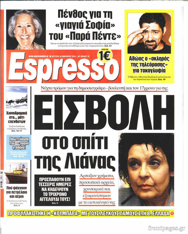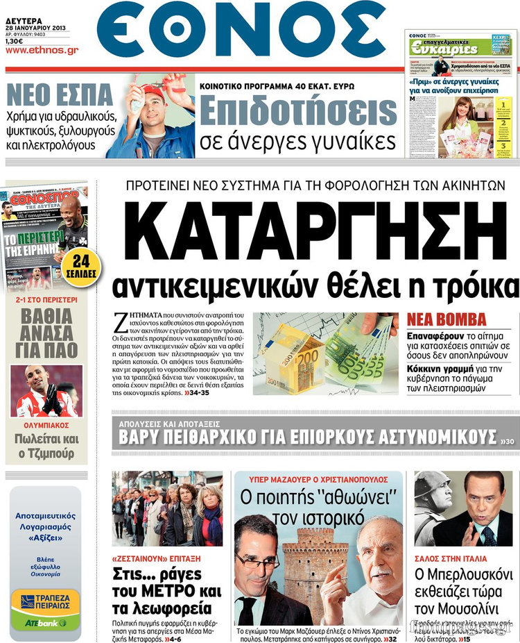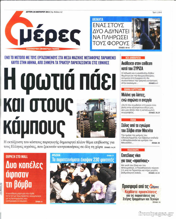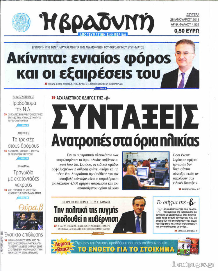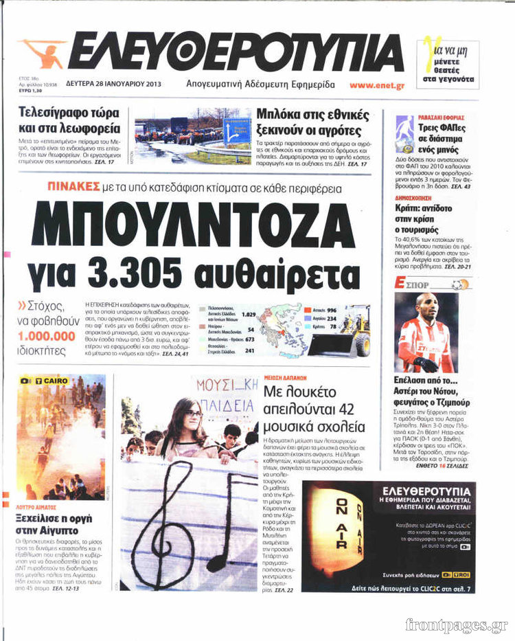 Οι πολιτικές εφημερίδες Enikos Newsroom 09:09, Δευτέρα 28 Ιανουαρίου 2013 Media Οι πολιτικές εφημερίδες Τα πρωτοσέλιδα των πολιτικών εφημερίδων. ΕΦΗΜΕΡΙΔΕΣ ΕΦΗΜΕΡΙΔΕΣ ΠΡΩΤΟΣΕΛΙΔΑ ΠΟΛΙΤΙΚΕΣ ΕΦΗΜΕΡΙΔΕΣ ΠΡΩΤΟΣΕΛΙΔΑ Μοιράσου το: σχολίασε κι εσύ (0 σχόλια) Ακολουθήστε το enikos.gr στο Google News και μάθετε πρώτοι όλες τις ειδήσεις Δείτε όλες τις τελευταίες ειδήσεις από την Ελλάδα και τον Κόσμο στο enikos.gr Ειδήσεις Ροή Ειδήσεων 2 ώρες πριν Τρομοκρατική επίθεση στο Σίδνεϊ: Νεκροί 11 πολίτες και ένας δράστης – Εντοπίστηκε αυτοσχέδιος εκρηκτικός μηχανισμός 2 ώρες πριν ΟΠΕΚΕΠΕ-Κρήτη: Προθεσμία να απολογηθούν από την Τρίτη έως την Πέμπτη έλαβαν οι 16 συλληφθέντες 5 ώρες πριν Σκληραίνουν τη στάση τους οι αγρότες: Αποφασίζουν τις δράσεις της εβδομάδας – Αύριο το συλλαλητήριο στα δικαστήρια της Λάρισας 7 ώρες πριν Κυριάκος Μητσοτάκης μετά το «όχι» των αγροτών: Διάλογος δεν γίνεται με τελεσίγραφα και οι λύσεις προκύπτουν μόνο από συζήτηση 2 ώρες πριν Πανεπιστήμιο Μπράουν: Υπό κράτηση ένα «άτομο ενδιαφέροντος» για το μακελειό με τους 2 νεκρούς και τους 9 τραυματίες 1 ώρα πριν Τα 5 ζώδια που ευνοούνται στα ερωτικά τους έως τις 21 Δεκεμβρίου – «Η επόμενη σχέση σας θα είναι καθοριστική» 2 ώρες πριν Γεωλογική αποκάλυψη: Επιστήμονες εξηγούν πώς η Ιβηρική Χερσόνησος περιστρέφεται σαν… ρολόι 5 ώρες πριν Προπονήτρια ευεξίας που έχασε 24 κιλά αποκαλύπτει: «Αυτά είναι τα 6 ανησυχητικά σημάδια της υψηλής κορτιζόλης» 6 ώρες πριν Τα 8 πράγματα που τα ευτυχισμένα ζευγάρια δεν κάνουν ποτέ μπροστά στα παιδιά τους 1 λεπτό πριν Αργυρούπολη: Στον εισαγγελέα ο 59χρονος που απείλησε με τσεκούρι άλλον οδηγό – Φωτογραφία με το «μίνι» οπλοστάσιο που είχε στην κατοχή του 18 λεπτά πριν Σαλαμίνα: Έρευνες σε σπίτια και καταστήματα έβγαλαν «λαβράκια» – Δύο συλλήψεις, κατασχέθηκαν όπλα και φυσίγγια 26 λεπτά πριν Κουίζ για την παλιά Αθήνα: Αναγνωρίζετε την οδό; Είναι από τις πιο γνωστές 30 λεπτά πριν Βασίλης Δήμας για Νότη Σφακιανάκη: «Ενδόμυχα έχει ενοχλήσει όχι τόσο με τις απόψεις, αλλά με την παρρησία του» 38 λεπτά πριν Κικίλιας: Επενδύσεις σε ναυτιλία και λιμενικές υποδομές – Η μεγάλη ευκαιρία της ελληνικής οικονομίας για ανάπτυξη ENIKOS NETWORK Πρωτοβουλία της Ελλάδας για ενιαίο ευρωπαϊκό πλαίσιο στη δωρεά σπέρματος και ωαρίων Η ορθολογική χρήση των αντιβιοτικών στο επίκεντρο σεμιναρίου του ΙΣΑ ΟΠΕΚΑ: Ποια επιδόματα καταβάλλονται πριν από τα Χριστούγεννα – Τι αλλάζει μόνιμα από το 2026 ΔΥΠΑ: Οι καταβολές που θα γίνουν την ερχόμενη Τετάρτη Σύγχρονος Νοστράδαμος: Προειδοποιεί για «μεγάλο γεγονός» τους επόμενους μήνες που θα συγκλονίσει τη Βρετανία και τον κόσμο Τεστ παρατηρητικότητας: Μπορείτε να βρείτε τις 3 διαφορές στις εικόνες με έναν πιγκουίνο σε 14 δευτερόλεπτα περισσότερα 16:32 , Κυριακή 14 Δεκεμβρίου 2025 Τηλεθέαση (13/12): Πώς κινήθηκαν οι εκπομπές στην πρωινή ζώνη το Σάββατο Με αμείωτη ένταση συνεχίστηκε η μάχη για την τηλεθέαση στην πρωινή ζώνη των τηλεοπτικών καναλι... 15:07 , Κυριακή 14 Δεκεμβρίου 2025 IQ160: Η Μαρίνα στέλνει το φούτερ του Τηλέμαχου για το τεστ πατρότητας Η Πηνελόπη αποφασίζει να κάνει αμνιοπαρακέντηση, για να βεβαιωθεί για την υγεία του μωρού της ... 12:46 , Κυριακή 14 Δεκεμβρίου 2025 Η Realnews στο www.pressreader.com Διαβάστε την ψηφιακή έκδοση της εφημερίδας στην οθόνη του κινητού, του tablet και του υπολογισ... 10:07 , Κυριακή 14 Δεκεμβρίου 2025 Η γη της ελιάς: Η αρχή του τέλους του Δημοσθένη πλησιάζει Η δραματική σειρά του ME