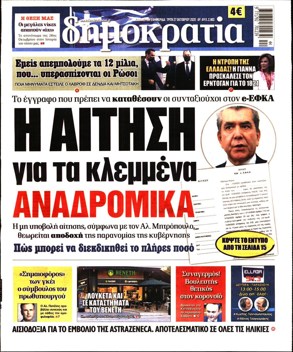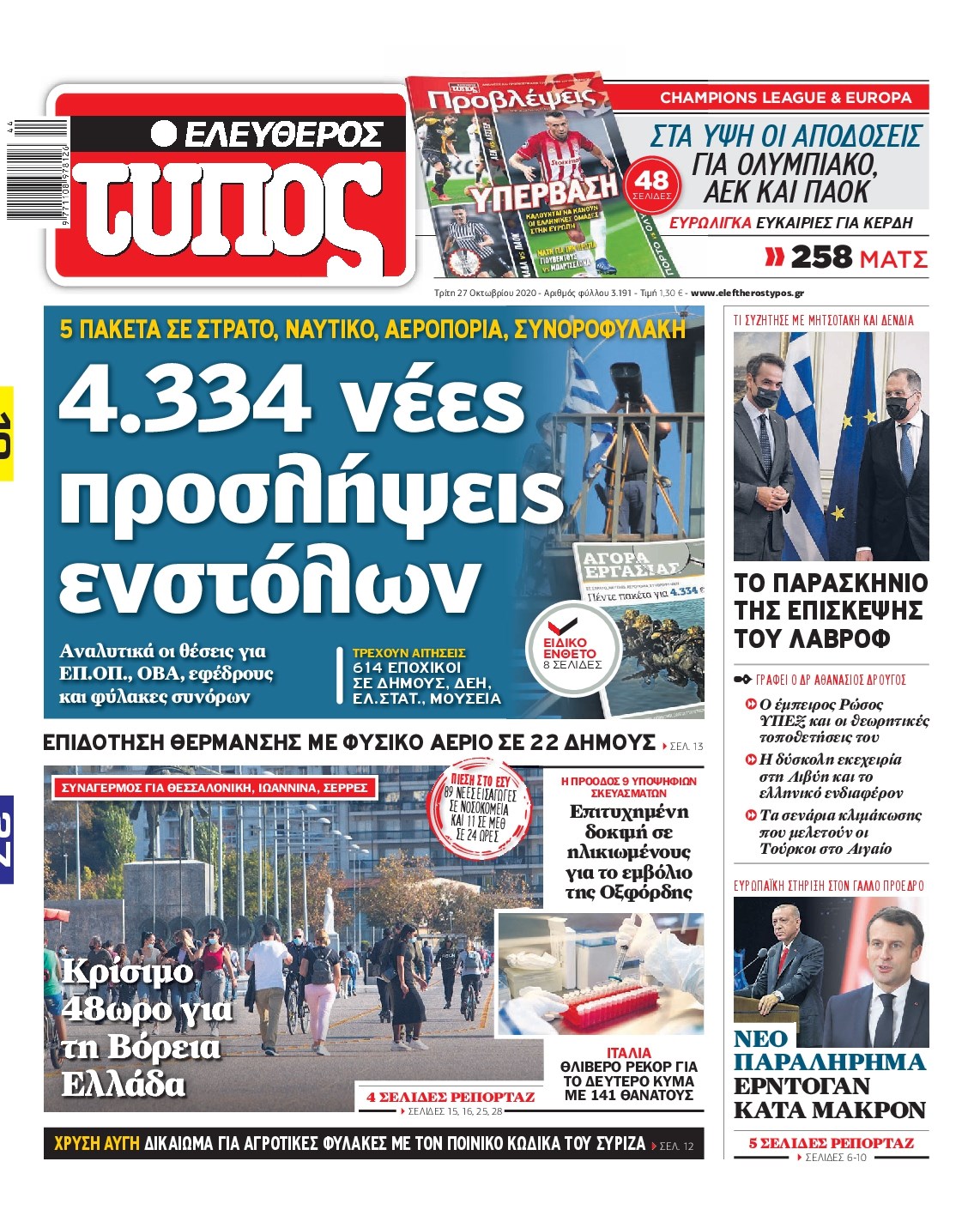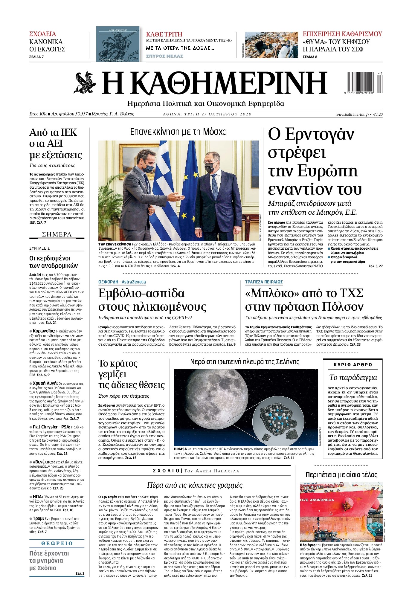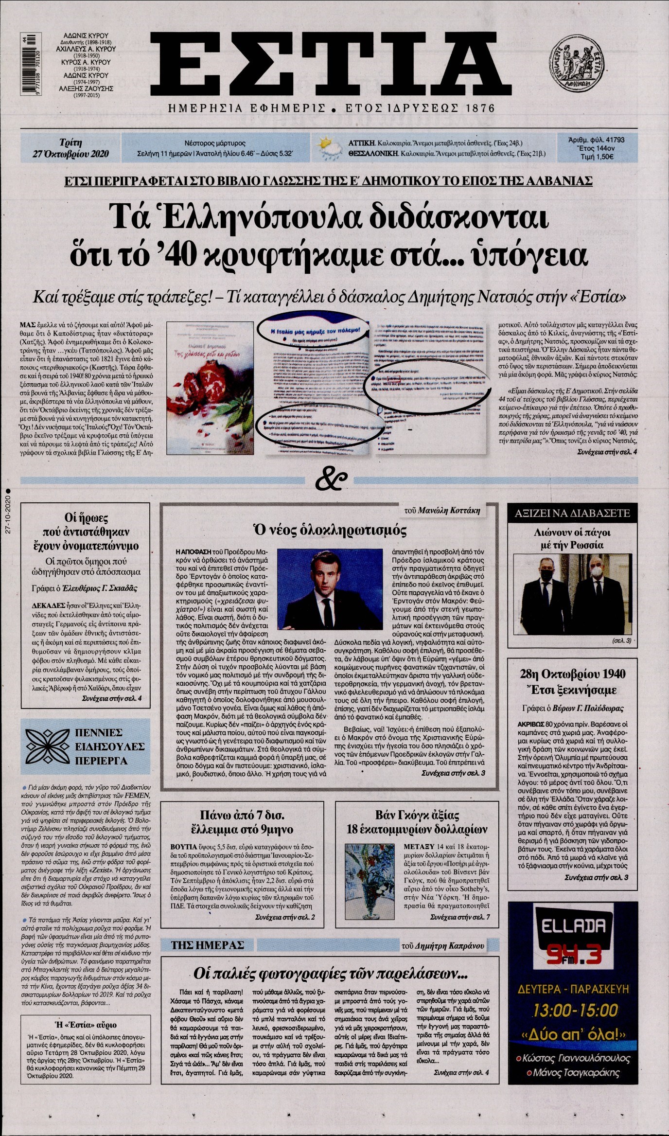 Οι πολιτικές εφημερίδες 27/10/2020 Διονύσης Νίκκας 06:06, Τρίτη 27 Οκτωβρίου 2020 Media Διαβάστε τα πρωτοσέλιδα των πολιτικών εφημερίδων… ΠΟΛΙΤΙΚΕΣ ΕΦΗΜΕΡΙΔΕΣ ΠΡΩΤΟΣΕΛΙΔΑ Μοιράσου το: σχολίασε κι εσύ (0 σχόλια) Ακολουθήστε το enikos.gr στο Google News και μάθετε πρώτοι όλες τις ειδήσεις Δείτε όλες τις τελευταίες ειδήσεις από την Ελλάδα και τον Κόσμο στο enikos.gr Ειδήσεις Ροή Ειδήσεων 1 λεπτό πριν Υπόθεση Έπσταϊν: Το Υπουργείο Δικαιοσύνης δημοσιοποίησε μια σειρά από εξαιρετικά επεξεργασμένα αρχεία – «Λείπουν τα πιο σημαντικά έγγραφα», λένε οι Δημοκρατικοί 9 ώρες πριν Χριστούγεννα στα μπλόκα: Επιμένουν στις κινητοποιήσεις τους οι αγρότες – Ανοίγουν τα διόδια το Σαββατοκύριακο 2 ώρες πριν Σαρωτικοί οι έλεγχοι στους δρόμους ενόψει εορτών – Μπλόκα της τροχαίας σε κεντρικές αρτηρίες της Αττικής 9 ώρες πριν Πούτιν: Τα μηνύματα σε Ευρώπη και ΝΑΤΟ από το μαραθώνιο «σόου» του – Η απαίτηση για «σεβασμό» και η ειρήνη «με τους όρους» της Μόσχας 8 ώρες πριν Άνω Λιόσια: Πυροβολισμοί σε επιχείρηση με χαλιά – Εντοπίστηκαν 10 κάλυκες 2 ώρες πριν Αυγά: Πόσα μπορείτε να τρώτε την ημέρα με ασφάλεια για μέγιστη πρόσληψη πρωτεΐνης 2 ώρες πριν Τα ζώδια σήμερα, Σάββατο 20 Δεκεμβρίου: Παρθένοι, το σύμπαν σας δίνει το κλειδί 9 ώρες πριν Ανακαλύφθηκαν αρχαία χρυσά νομίσματα 2.200 ετών που απεικονίζουν τον θεό Απόλλωνα – Η άγνωστη σύνδεση με τον Φίλιππο Β΄ της Μακεδονίας 2 ώρες πριν Οπτική ψευδαίσθηση: Μόνο αν είσαι ο Σέρλοκ Χολμς θα βρεις τον αριθμό «87» σε 7 δευτερόλεπτα 1 λεπτό πριν Υπόθεση Έπσταϊν: Το Υπουργείο Δικαιοσύνης δημοσιοποίησε μια σειρά από εξαιρετικά επεξεργασμένα αρχεία – «Λείπουν τα πιο σημαντικά έγγραφα», λένε οι Δημοκρατικοί 4 λεπτά πριν Καιρός: Αλλαγή σκηνικού σήμερα με βροχές και πτώση της θερμοκρασίας – Οι προβλέψεις των μετεωρολόγων για τα Χριστούγεννα 12 λεπτά πριν ΟΝΕΧ – MEGATUGS: Ξεκίνησε η ναυπήγηση ρυμουλκών στην Ελλάδα – Προθάλαμος πολεμικών πλοίων – Δείτε φωτογραφίες και βίντεο 21 λεπτά πριν Φοινικούντα: Σήμερα απολογείται ο 30χρονος γιος γνωστού επιχειρηματία της Πλάκας 28 λεπτά πριν Οι αθλητικές μεταδόσεις 20/12/2025 ENIKOS NETWORK Πρέπει να αποδέχεστε ή να απορρίπτετε όλα τα cookies; Ένας ειδικός εξηγεί Η αγαπημένη λιχουδιά των πόνι που μπορεί να ενισχύσει όραση, εγκέφαλο και ανοσοποιητικό Αναστολή μέτρων αναγκαστικής εκτέλεσης για κτηνοτρόφους που πλήττονται από την ευλογιά των αιγοπροβάτων Πλήρης επάρκεια προϊόντων στις λαϊκές της Αττικής, παρά τις αγροτικές κινητοποιήσεις – Τι απαντούν οι πωλητές Χαρτογραφώντας το «σημείο χωρίς επιστροφή»: Για πρώτη φορά αποκαλύπτεται με λεπτομέρεια το ακανθώδες όριο της ατμόσφαιρας τ... Η Google καταργεί τη λειτουργία «dark web report» – Πώς θα μπορούν οι χρήστες να διαγράφουν τα δεδομένα τους περισσότερα 05:48 , Σάββατο 20 Δεκεμβρίου 2025 Οι οικονομικές εφημερίδες 20/12/2025 Διαβάστε τα πρωτοσέλιδα από τις οικονομικές εφημερίδες, σήμερα 20/12/2025. 05:43 , Σάββατο 20 Δεκεμβρίου 2025 Οι αθλητικές εφημερίδες 20/12/2025 Διαβάστε τα πρωτοσέλιδα από τις αθλητικές εφημερίδες, σήμερα 20/12/2025. 05:38 , Σάββατο 20 Δεκεμβρίου 2025 Οι πολιτικές εφημερίδες 20/12/2025 Διαβάστε τα πρωτοσέλιδα από τις πολιτικές εφημερίδες, σήμερα 20/12/2025. 04:20 , Σάββατο 20 Δεκεμβρίου 2025 Αγγελική Νικολούλη: Τα συλλυπητήρια για την απώλεια της Ειρήνης Μαρινάκη Τα συλληπητήρια στον πρόεδρο του Mega, τον Βαγγέλη Μαρινάκη, για την απώλεια της μητέρας του Ε... ΤΕΛΕΥΤΑΙΕΣ ΕΙΔΗΣΕΙΣ 1 λεπτό πριν Υπόθεση Έπσταϊν: Το Υπουργε