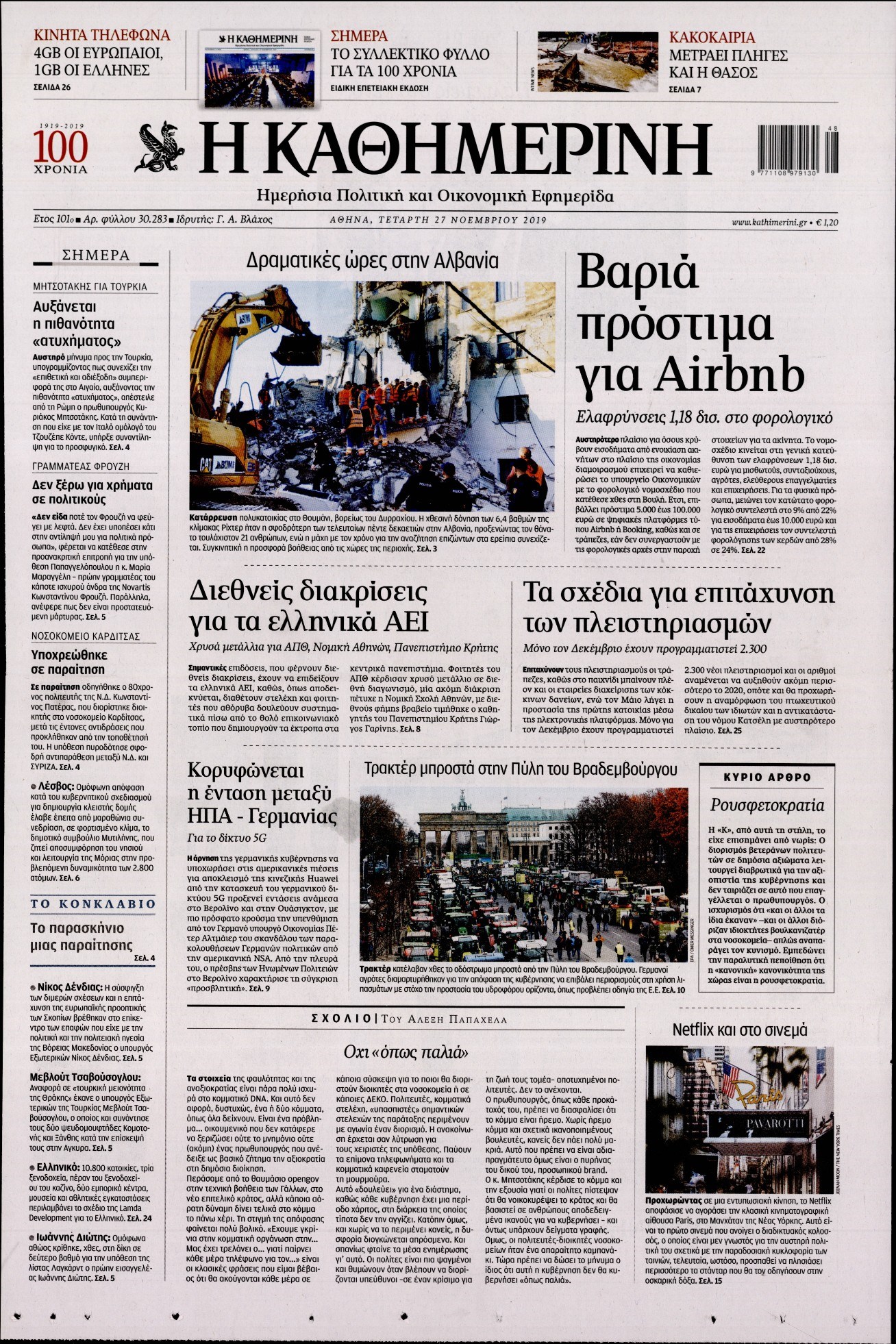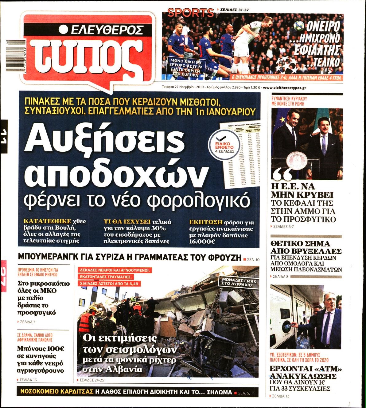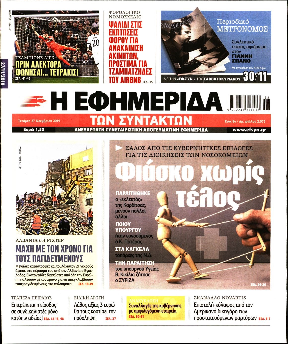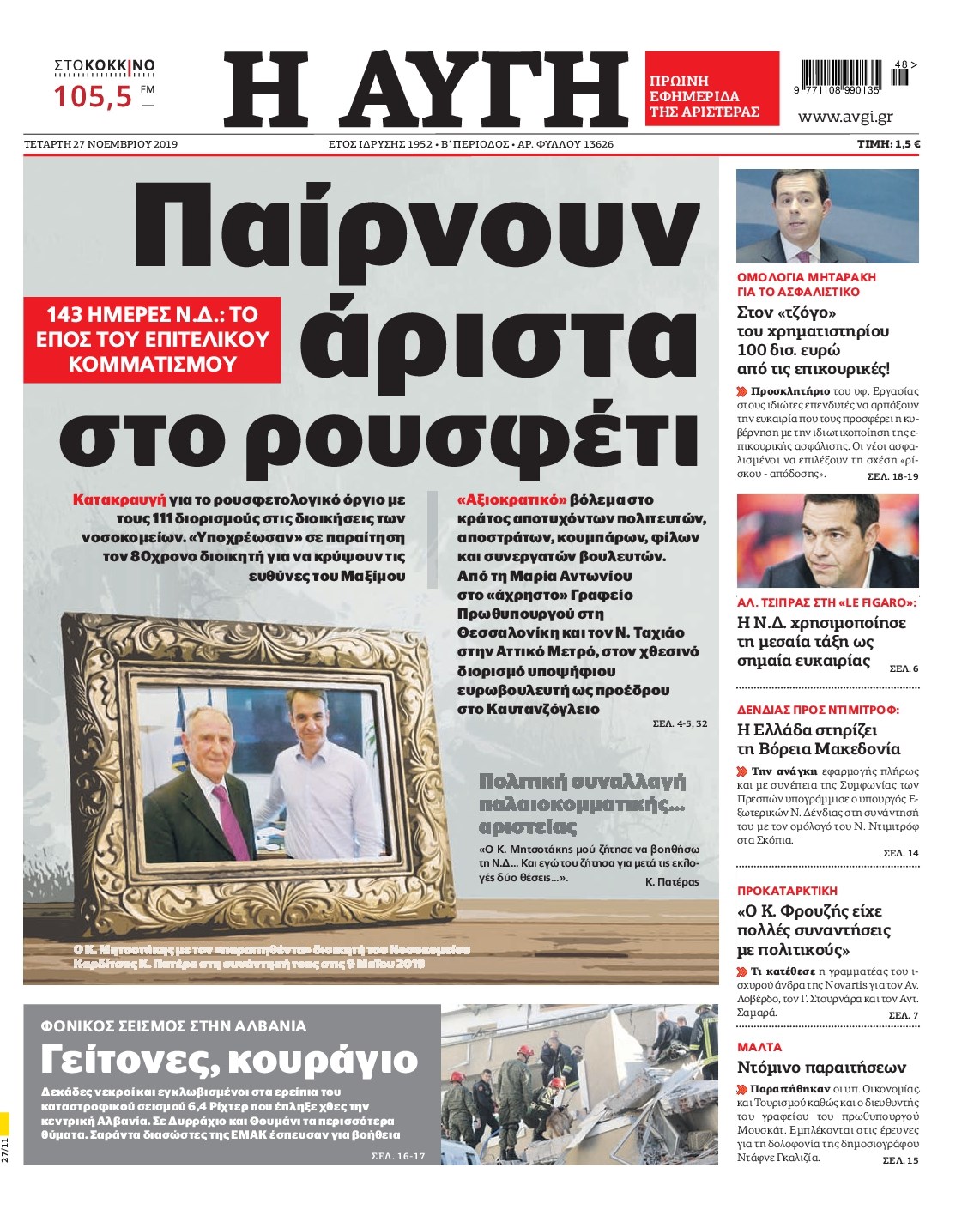 Οι πολιτικές εφημερίδες 27/11/19 Διονύσης Νίκκας 06:08, Τετάρτη 27 Νοεμβρίου 2019 Media Διαβάστε τα πρωτοσέλιδα των πολιτικών εφημερίδων… ΕΦΗΜΕΡΙΔΕΣ ΠΟΛΙΤΙΚΕΣ Μοιράσου το: σχολίασε κι εσύ (0 σχόλια) Ακολουθήστε το enikos.gr στο Google News και μάθετε πρώτοι όλες τις ειδήσεις Δείτε όλες τις τελευταίες ειδήσεις από την Ελλάδα και τον Κόσμο στο enikos.gr Ειδήσεις Ροή Ειδήσεων 2 ώρες πριν Μεσόγειος: Η διαδρομή του ρωσικού τάνκερ «Qendil» και η στοχευμένη επίθεση της Ουκρανίας με drone – Ο Πούτιν προειδοποίησε για αντίποινα 2 ώρες πριν Αττική: Θρίλερ με νεκρό βρέφος 5 μηνών – Κοιμόταν στο ίδιο κρεβάτι με τους γονείς του 3 ώρες πριν Από το Ορμένιο ως τα Μάλγαρα κι από τη Σιάτιστα μέχρι τη Νίκαια: Μπλόκα σε όλη την Ελλάδα – Το Σάββατο ανοίγουν τα διόδια οι αγρότες 3 ώρες πριν «Έλληνας Εσκομπάρ»: Φωτογραφίες με τους 4 τόνους κοκαΐνης που κατασχέθηκαν από το σκάφος «Ουρανία» 4 ώρες πριν Πούτιν: Σαρκαστικά μηνύματα, παράπονα και απρόοπτα στη συνέντευξη Τύπου – Η πρόταση γάμου on air και οι ερωτήσεις για τα αγγούρια και τους… εξωγήινους 4 ώρες πριν Τα 5 ζώδια που ευνοούνται στην ερωτική ζωή τους την επόμενη εβδομάδα – «Η ενέργεια του Αιγόκερου φέρνει αγάπη και σταθερότητα» 8 ώρες πριν Ειδικός μοιράζεται 6 κόλπα για να διατηρείστε σε φόρμα με πάνω από 40 ώρες εργασίας την εβδομάδα: «Προπονηθείτε πριν από τη δουλειά, όχι μετά» 5 ώρες πριν Αυτό το έξυπνο μαθηματικό κόλπο θα μπορούσε να αλλάξει τον τρόπο με τον οποίο οι επιστήμονες μελετούν τους σεισμούς 3 ώρες πριν Κουίζ για την παλιά Αθήνα: Αναγνωρίζετε την περιοχή; Έχετε περάσει 100% από εκεί 3 λεπτά πριν Ρούμπιο: Έχει υπάρξει πρόοδος στις συνομιλίες για την Ουκρανία – Τα τελευταία ζητήματα είναι τα πιο δύσκολα 10 λεπτά πριν Πούτιν: «Ναι, είμαι ερωτευμένος» – Βίντεο από τη σπάνια προσωπική παραδοχή του 15 λεπτά πριν Γαλλία – Shein: Υποχρεωτικός έλεγχος ηλικίας των πελατών μετά τον σάλο με τις ερωτικές κούκλες 20 λεπτά πριν Εμπλοκή και αερομαχίες με οπλισμένα τουρκικά F-16 στο Αιγαίο 28 λεπτά πριν GNTM: Απόψε ο μεγάλος τελικός για τους 4 φιναλίστ ENIKOS NETWORK Έχετε πραγματικά μεγάλη καρδιά; 10 χαρακτηριστικά όσων έχουν καλοσύνη «Η σούπερ» γρίπη εξαπλώνεται στην Ευρώπη-Στοιχεία από το ECDC για την αποτελεσματικότητα του εμβολίου Προκήρυξη ΑΣΕΠ για 397 μόνιμες προσλήψεις στο Δημόσιο: Βγήκαν τα προσωρινά αποτελέσματα – Πότε αρχίζει η υποβολή ενστάσεων Η απάντηση της κυβέρνησης στα αιτήματα των αγροτών: 16 έχουν ικανοποιηθεί, 4 βρίσκονται υπό επεξεργασία και 7 δεν είναι εφι... Χαρτογραφώντας το «σημείο χωρίς επιστροφή»: Για πρώτη φορά αποκαλύπτεται με λεπτομέρεια το ακανθώδες όριο της ατμόσφαιρας τ... Η Google καταργεί τη λειτουργία «dark web report» – Πώς θα μπορούν οι χρήστες να διαγράφουν τα δεδομένα τους περισσότερα 19:31 , Παρασκευή 19 Δεκεμβρίου 2025 GNTM: Απόψε ο μεγάλος τελικός για τους 4 φιναλίστ Έπειτα από μήνες γεμάτους μόδα, δημιουργία και έντονες αναμετρήσεις, το GNTM 2025 κορυφώνεται,... 18:11 , Παρασκευή 19 Δεκεμβρίου 2025 Το σόι σου: Ο Άρης έρχεται στην Ελλάδα για τις γιορτές των Χριστουγέννων – Τι θα δούμε στο αποψινό εορταστικό επεισόδιο Ένα απολαυστικό, εορταστικό επεισόδιο της σειράς “Το σόι σου”, γεμάτο ευτράπελα αλ... 15:15 , Παρασκευή 19 Δεκεμβρίου 2025 Την Κυριακή με τη Realnews: Ό,τι και αν αγοράσεις, σκανάρεις και κερδίζεις! Την Κυριακή με τη Realnews: Ό,τι και αν αγοράσεις, σκανάρεις και κερδίζεις! Με το PADU app, το... 08:00 , Παρασκευή 19 Δεκεμβρίου 2025 Την Κυριακή με τη Realnews: Δωροεπιταγή 1