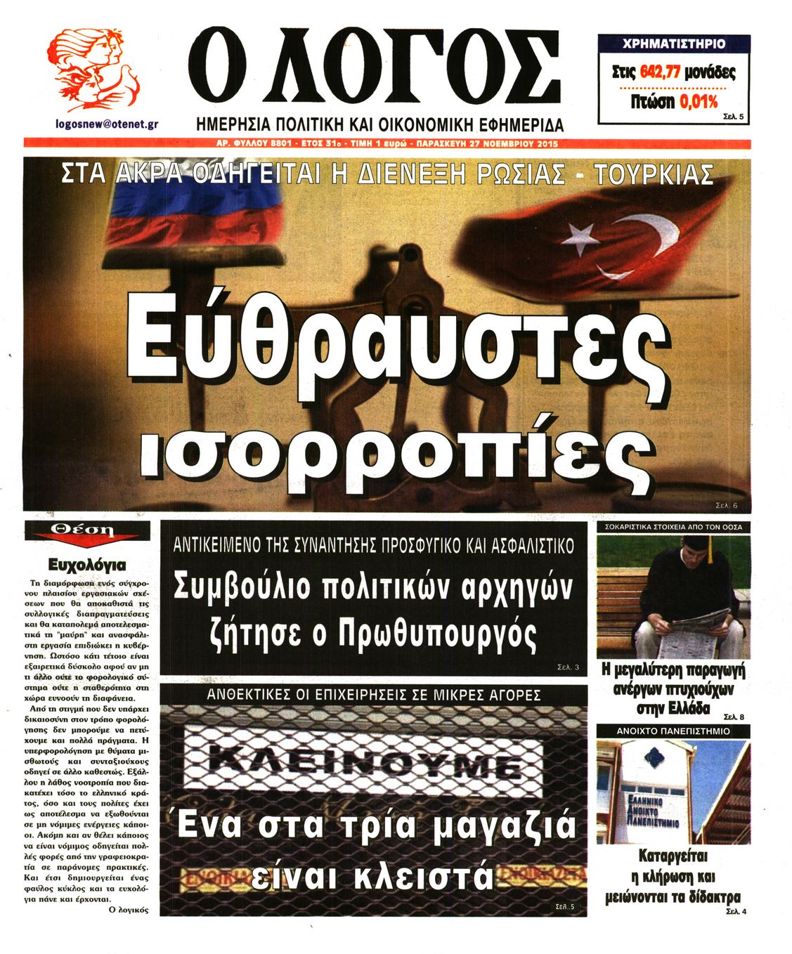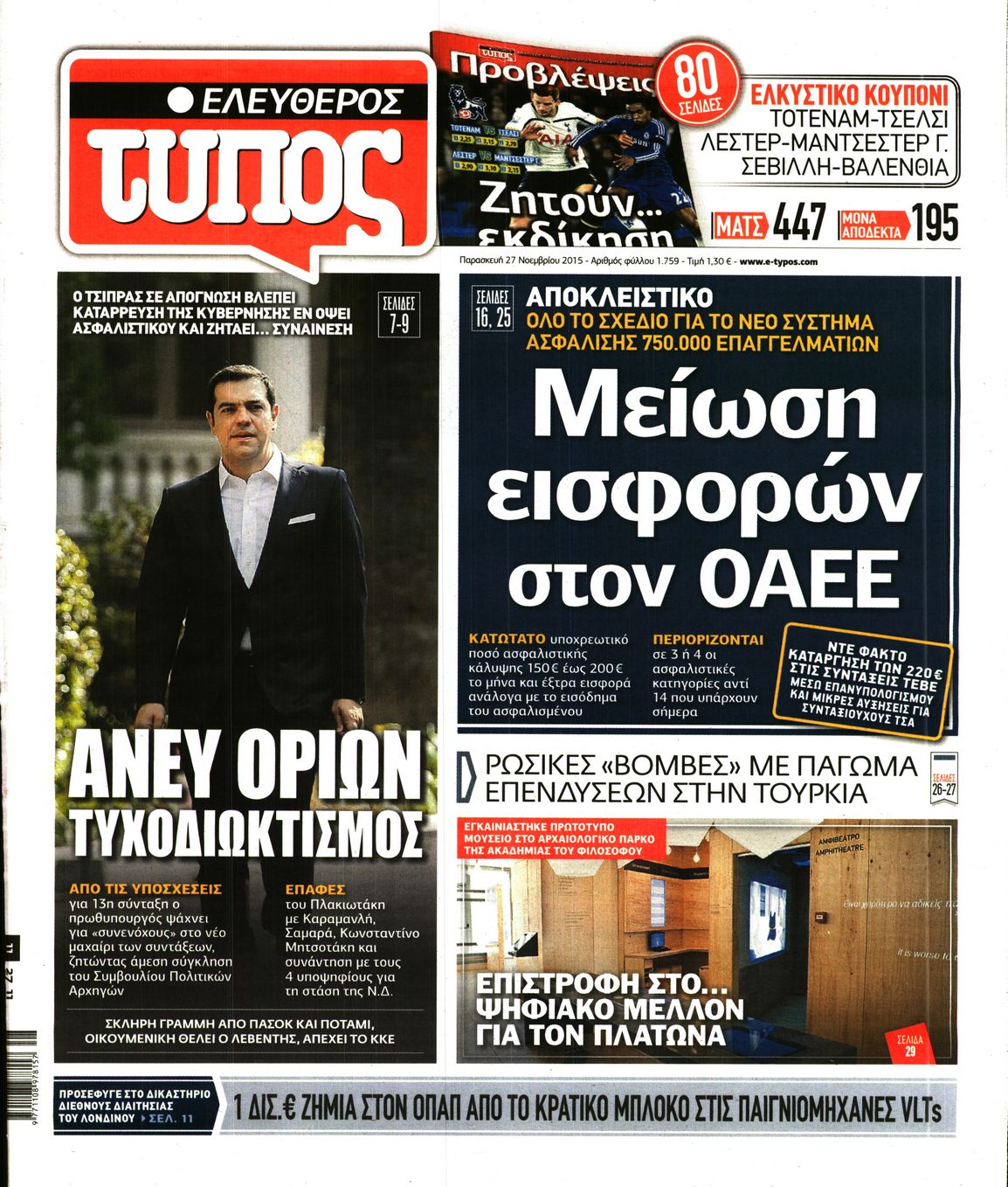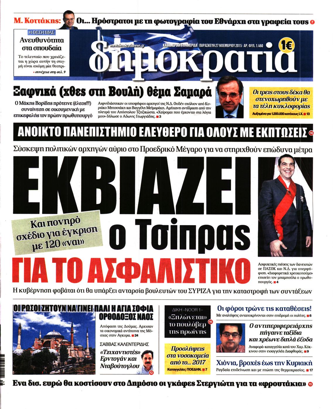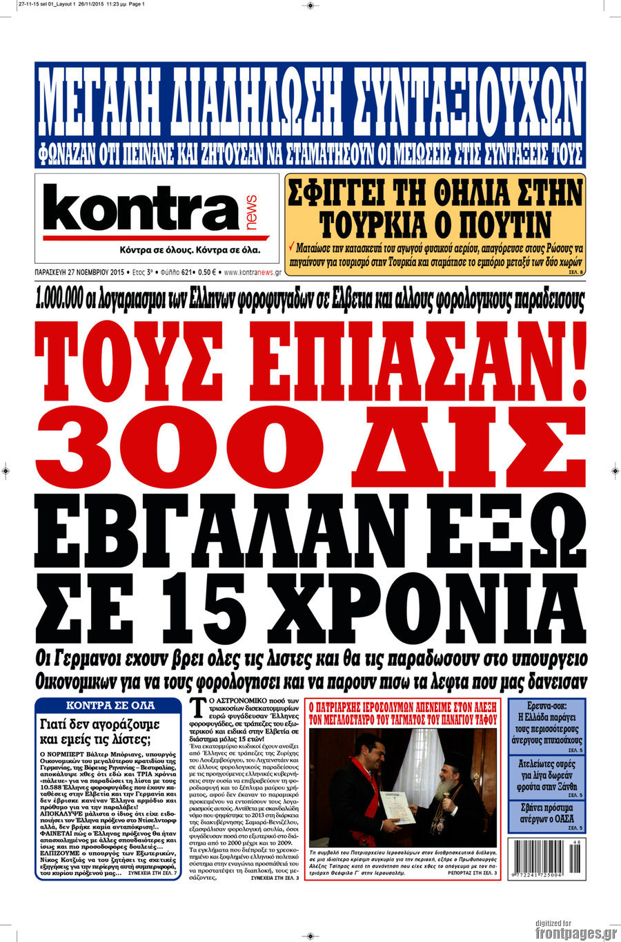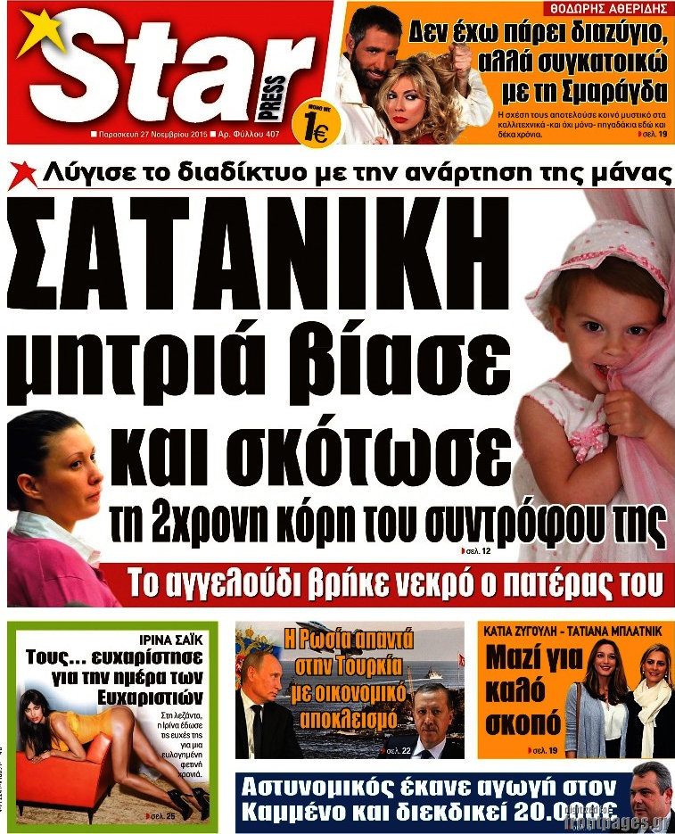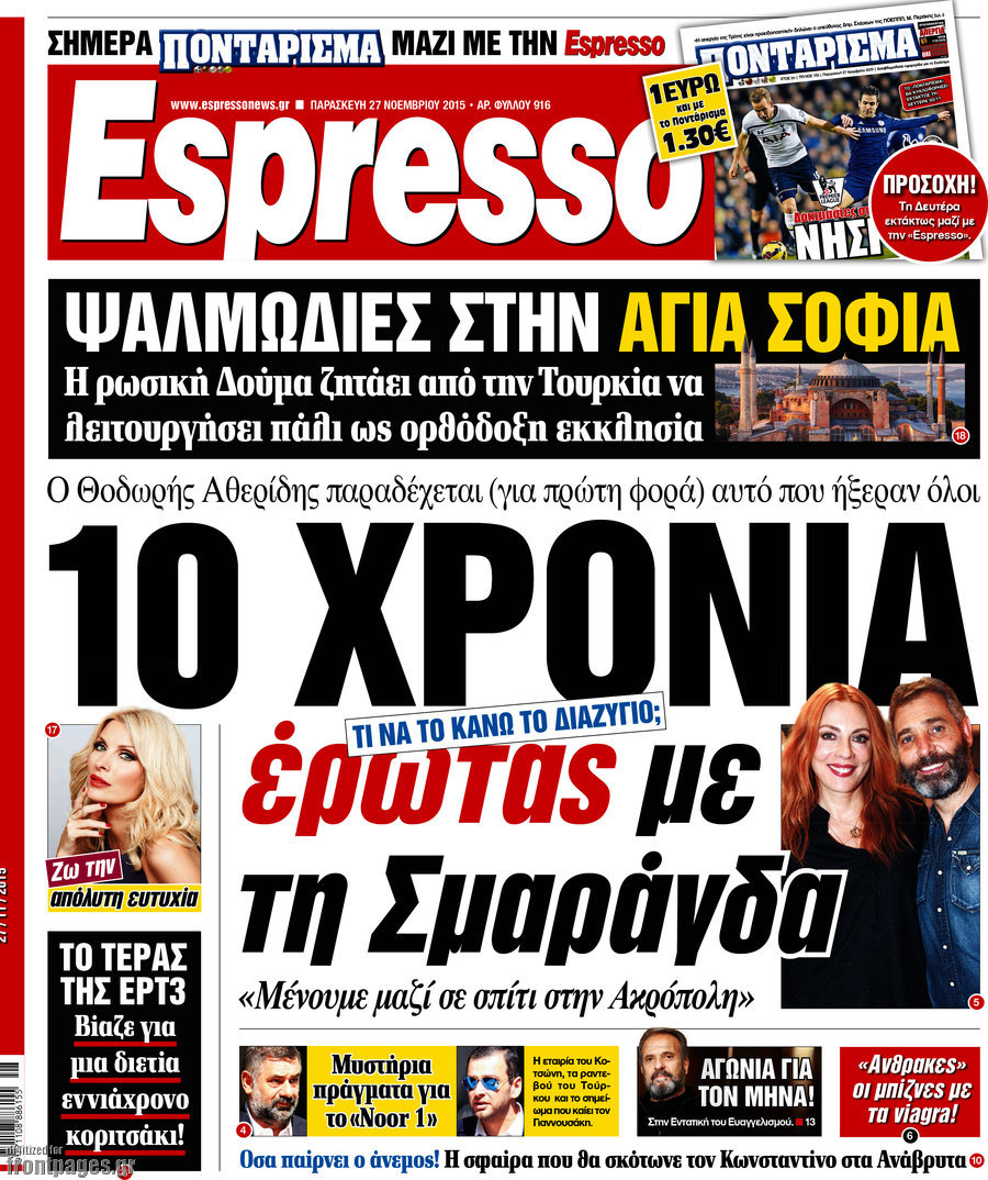 Οι πολιτικές εφημερίδες 27/11/2015 Enikos Newsroom 06:12, Παρασκευή 27 Νοεμβρίου 2015 Media Διαβάστε τα σημερινά πρωτοσέλιδα των πολιτικών εφημερίδων: ΠΟΛΙΤΙΚΕΣ ΕΦΗΜΕΡΙΔΕΣ ΠΡΩΤΟΣΕΛΙΔΑ Μοιράσου το: σχολίασε κι εσύ (0 σχόλια) Ακολουθήστε το enikos.gr στο Google News και μάθετε πρώτοι όλες τις ειδήσεις Δείτε όλες τις τελευταίες ειδήσεις από την Ελλάδα και τον Κόσμο στο enikos.gr Ειδήσεις Ροή Ειδήσεων 42 λεπτά πριν Υπόθεση Έπσταϊν: Το Υπουργείο Δικαιοσύνης δημοσιοποίησε μια σειρά από εξαιρετικά επεξεργασμένα αρχεία – «Λείπουν τα πιο σημαντικά έγγραφα», λένε οι Δημοκρατικοί 2 ώρες πριν Σαρωτικοί οι έλεγχοι στους δρόμους ενόψει εορτών – Μπλόκα της τροχαίας σε κεντρικές αρτηρίες της Αττικής 52 λεπτά πριν ΟΝΕΧ – MEGATUGS: Ξεκίνησε η ναυπήγηση ρυμουλκών στην Ελλάδα – Προθάλαμος πολεμικών πλοίων – Δείτε φωτογραφίες και βίντεο 44 λεπτά πριν Καιρός: Αλλαγή σκηνικού σήμερα με βροχές και πτώση της θερμοκρασίας – Οι προβλέψεις των μετεωρολόγων για τα Χριστούγεννα 10 ώρες πριν Χριστούγεννα στα μπλόκα: Επιμένουν στις κινητοποιήσεις τους οι αγρότες – Ανοίγουν τα διόδια το Σαββατοκύριακο 2 ώρες πριν Αυγά: Πόσα μπορείτε να τρώτε την ημέρα με ασφάλεια για μέγιστη πρόσληψη πρωτεΐνης 3 ώρες πριν Τα ζώδια σήμερα, Σάββατο 20 Δεκεμβρίου: Παρθένοι, το σύμπαν σας δίνει το κλειδί 2 ώρες πριν Οπτική ψευδαίσθηση: Μόνο αν είσαι ο Σέρλοκ Χολμς θα βρεις τον αριθμό «87» σε 7 δευτερόλεπτα 22 λεπτά πριν Αρχαιολόγοι ανακάλυψαν σε χωράφι απεικόνιση 600 ετών ενός Αγίου – Τα στοιχεία που δείχνουν ότι μαρτύρησε 6 λεπτά πριν MyHealth App: Τα στοιχεία για τον Προσωπικό Βοηθό Υγείας Πολίτη – Τι ερωτήματα έγιναν μέσα σε 7 ημέρες 14 λεπτά πριν Τρομεροί γονείς: Η Μαρία Καβογιάννη εισβάλλει στο σπίτι της οικογένειας Στεφανίδη 22 λεπτά πριν Αρχαιολόγοι ανακάλυψαν σε χωράφι απεικόνιση 600 ετών ενός Αγίου – Τα στοιχεία που δείχνουν ότι μαρτύρησε 29 λεπτά πριν Mega χριστουγεννιάτικη φορολοταρία: «Κλείδωσε» η ημερομηνία για την κλήρωση – Ερωτήσεις και απαντήσεις 36 λεπτά πριν ΗΠΑ: Τέσσερις μετανάστες πέθαναν σε κέντρα κράτησης – Αύξηση θανάτων σε επίπεδο ρεκόρ το 2025 ENIKOS NETWORK Το τεστ των 10 δευτερολέπτων που μπορεί να προβλέψει το προσδόκιμο ζωής σας – Τι λέει ειδικός του Cleveland Επιλέξτε καρέκλα για να μάθετε ποια είναι τα κρυφά χαρακτηριστικά σας – Τι αποκάλυψε για εσάς αυτό το τεστ προσωπικότητας; Mega χριστουγεννιάτικη φορολοταρία: «Κλείδωσε» η ημερομηνία για την κλήρωση – Ερωτήσεις και απαντήσεις Αναστολή μέτρων αναγκαστικής εκτέλεσης για κτηνοτρόφους που πλήττονται από την ευλογιά των αιγοπροβάτων Χαρτογραφώντας το «σημείο χωρίς επιστροφή»: Για πρώτη φορά αποκαλύπτεται με λεπτομέρεια το ακανθώδες όριο της ατμόσφαιρας τ... Η Google καταργεί τη λειτουργία «dark web report» – Πώς θα μπορούν οι χρήστες να διαγράφουν τα δεδομένα τους περισσότερα 08:14 , Σάββατο 20 Δεκεμβρίου 2025 Τρομεροί γονείς: Η Μαρία Καβογιάννη εισβάλλει στο σπίτι της οικογένειας Στεφανίδη Όσα θα δούμε στο νέο διπλό επεισόδιο της σειράς «Τρομεροί γονείς», σήμερα Σάββατο 20 Δεκεμβρίο... 05:48 , Σάββατο 20 Δεκεμβρίου 2025 Οι οικονομικές εφημερίδες 20/12/2025 Διαβάστε τα πρωτοσέλιδα από τις οικονομικές εφημερίδες, σήμερα 20/12/2025. 05:43 , Σάββατο 20 Δεκεμβρίου 2025 Οι αθλητικές εφημερίδες 20/12/2025 Διαβάστε τα πρωτοσέλιδα από τις αθλητικές εφημερίδες, σήμερα 20/12/2025. 05:38 , Σάββατο 20 Δεκεμβρίου 2025 Οι πολιτικές εφημερίδες 20/12/2025 Διαβάστε τα πρωτοσέλιδα από τις πολιτικές εφημερίδες, σήμερα 20/12/2025. ΤΕΛΕΥΤΑΙΕ