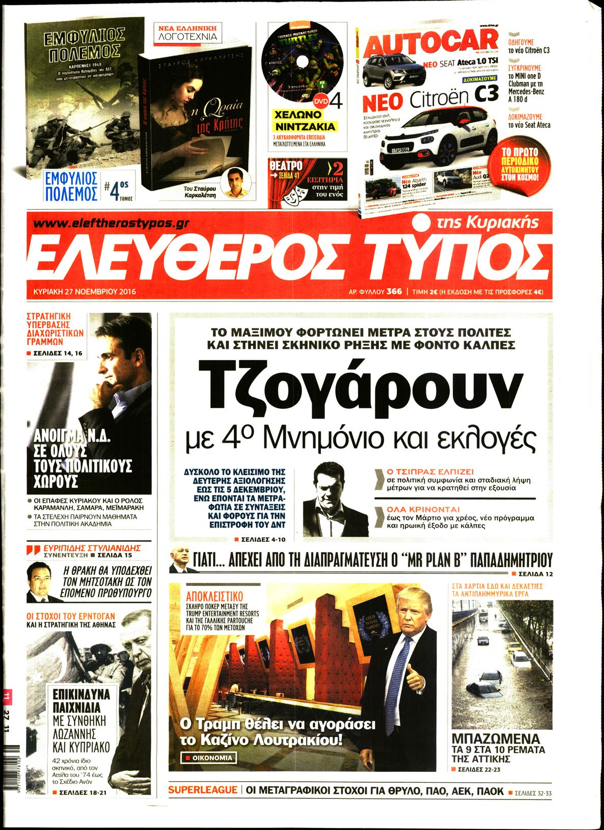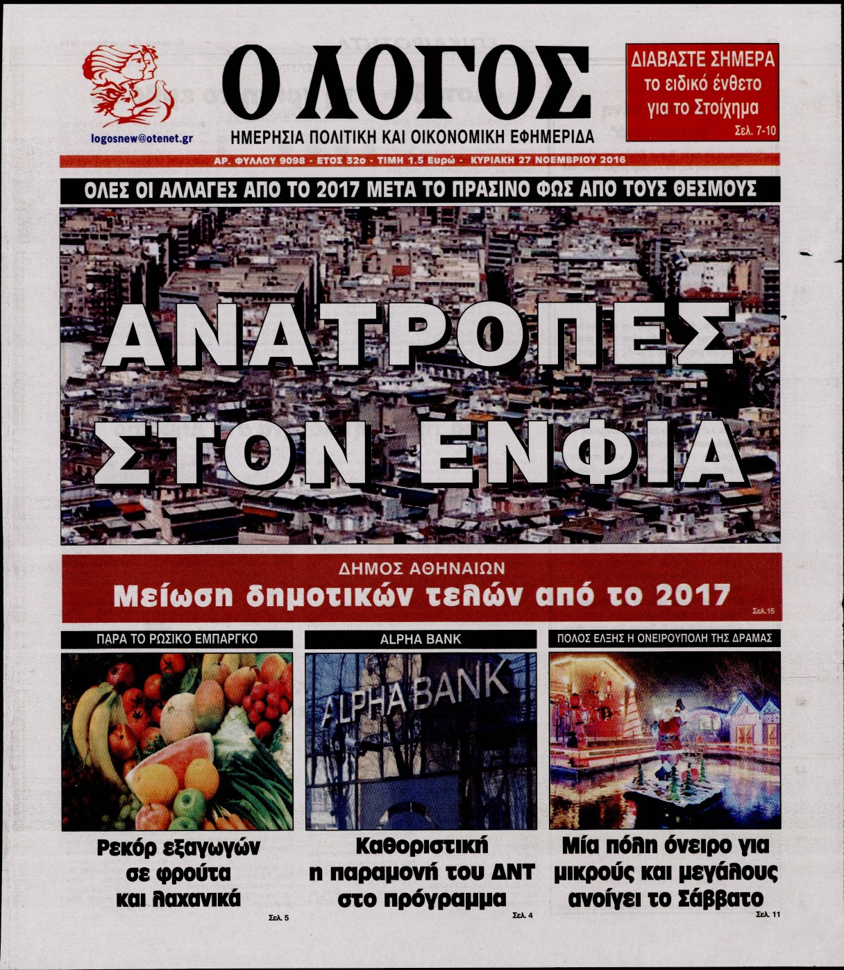 Οι πολιτικές εφημερίδες 27/11/2016 Enikos Newsroom 02:28, Κυριακή 27 Νοεμβρίου 2016 Media Διαβάστε τα σημερινά πρωτοσέλιδα των πολιτικών εφημερίδων: ΠΟΛΙΤΙΚΕΣ ΕΦΗΜΕΡΙΔΕΣ ΠΡΩΤΟΣΕΛΙΔΑ Μοιράσου το: σχολίασε κι εσύ (0 σχόλια) Ακολουθήστε το enikos.gr στο Google News και μάθετε πρώτοι όλες τις ειδήσεις Δείτε όλες τις τελευταίες ειδήσεις από την Ελλάδα και τον Κόσμο στο enikos.gr Ειδήσεις Ροή Ειδήσεων 8 ώρες πριν Χριστούγεννα στα μπλόκα: Επιμένουν στις κινητοποιήσεις τους οι αγρότες – Ανοίγουν τα διόδια το Σαββατοκύριακο 9 ώρες πριν Ουκρανία: Η άνευ προηγουμένου επίθεση σε ρωσικό τάνκερ στη Μεσόγειο και το μήνυμα προς στον Πούτιν – Το «μακρύ χέρι» του Κιέβου 8 ώρες πριν Πούτιν: Τα μηνύματα σε Ευρώπη και ΝΑΤΟ από το μαραθώνιο «σόου» του – Η απαίτηση για «σεβασμό» και η ειρήνη «με τους όρους» της Μόσχας 7 ώρες πριν ΗΠΑ: Η κυβέρνηση του Ντόναλντ Τραμπ άρχισε να δημοσιοποιεί τα αρχεία Έπσταϊν 7 ώρες πριν Άνω Λιόσια: Πυροβολισμοί σε επιχείρηση με χαλιά – Εντοπίστηκαν 10 κάλυκες 57 λεπτά πριν Αυγά: Πόσα μπορείτε να τρώτε την ημέρα με ασφάλεια για μέγιστη πρόσληψη πρωτεΐνης 1 ώρα πριν Τα ζώδια σήμερα, Σάββατο 20 Δεκεμβρίου: Παρθένοι, το σύμπαν σας δίνει το κλειδί 8 ώρες πριν Ανακαλύφθηκαν αρχαία χρυσά νομίσματα 2.200 ετών που απεικονίζουν τον θεό Απόλλωνα – Η άγνωστη σύνδεση με τον Φίλιππο Β΄ της Μακεδονίας 9 ώρες πριν Ύπνος: Μια κρυφή κατάσταση του εγκεφάλου πριν από τον ύπνο μπορεί να είναι το “κλειδί” για υψηλή ευφυΐα και δημιουργικότητα 3 λεπτά πριν Αναβολή συμφωνίας ΕΕ-Mercosur: Ο χρόνος «δεν είναι απεριόριστος» προειδοποιεί η Παραγουάη 18 λεπτά πριν Κίριλ Ντμίτριεφ: Στις ΗΠΑ ο απεσταλμένος της Ρωσίας για συνομιλίες με τους ομολόγους του, Γουίτκοφ και Κούσνερ 25 λεπτά πριν ΔΕΔΔΗΕ: Διακοπές ρεύματος σήμερα (20/12) στην Αθήνα και σε άλλες 7 περιοχές της Αττικής 34 λεπτά πριν Κολομβία: Είκοσι χρόνια κάθειρξη σε πρώην ανώτερο αξιωματικό για 72 εκτελέσεις αμάχων 41 λεπτά πριν Οπτική ψευδαίσθηση: Μόνο αν είσαι ο Σέρλοκ Χολμς θα βρεις τον αριθμό «87» σε 7 δευτερόλεπτα ENIKOS NETWORK Πρέπει να αποδέχεστε ή να απορρίπτετε όλα τα cookies; Ένας ειδικός εξηγεί Η αγαπημένη λιχουδιά των πόνι που μπορεί να ενισχύσει όραση, εγκέφαλο και ανοσοποιητικό Αναστολή μέτρων αναγκαστικής εκτέλεσης για κτηνοτρόφους που πλήττονται από την ευλογιά των αιγοπροβάτων Πλήρης επάρκεια προϊόντων στις λαϊκές της Αττικής, παρά τις αγροτικές κινητοποιήσεις – Τι απαντούν οι πωλητές Χαρτογραφώντας το «σημείο χωρίς επιστροφή»: Για πρώτη φορά αποκαλύπτεται με λεπτομέρεια το ακανθώδες όριο της ατμόσφαιρας τ... Η Google καταργεί τη λειτουργία «dark web report» – Πώς θα μπορούν οι χρήστες να διαγράφουν τα δεδομένα τους περισσότερα 05:48 , Σάββατο 20 Δεκεμβρίου 2025 Οι οικονομικές εφημερίδες 20/12/2025 Διαβάστε τα πρωτοσέλιδα από τις οικονομικές εφημερίδες, σήμερα 20/12/2025. 05:43 , Σάββατο 20 Δεκεμβρίου 2025 Οι αθλητικές εφημερίδες 20/12/2025 Διαβάστε τα πρωτοσέλιδα από τις αθλητικές εφημερίδες, σήμερα 20/12/2025. 05:38 , Σάββατο 20 Δεκεμβρίου 2025 Οι πολιτικές εφημερίδες 20/12/2025 Διαβάστε τα πρωτοσέλιδα από τις πολιτικές εφημερίδες, σήμερα 20/12/2025. 04:20 , Σάββατο 20 Δεκεμβρίου 2025 Αγγελική Νικολούλη: Τα συλλυπητήρια για την απώλεια της Ειρήνης Μαρινάκη Τα συλληπητήρια στον πρόεδρο του Mega, τον Βαγγέλη Μαρινάκη, για την απώλεια της μητέρας του Ε... ΤΕΛΕΥΤΑΙΕΣ ΕΙΔΗΣΕΙΣ 18 λεπτά πριν Κίριλ Ντμίτριεφ: Στις ΗΠΑ ο απεσταλμένος της Ρωσίας... 25 λεπτά πριν ΔΕΔΔΗΕ: Διακοπές ρεύματος σήμερα (20/12) στην Αθήνα 