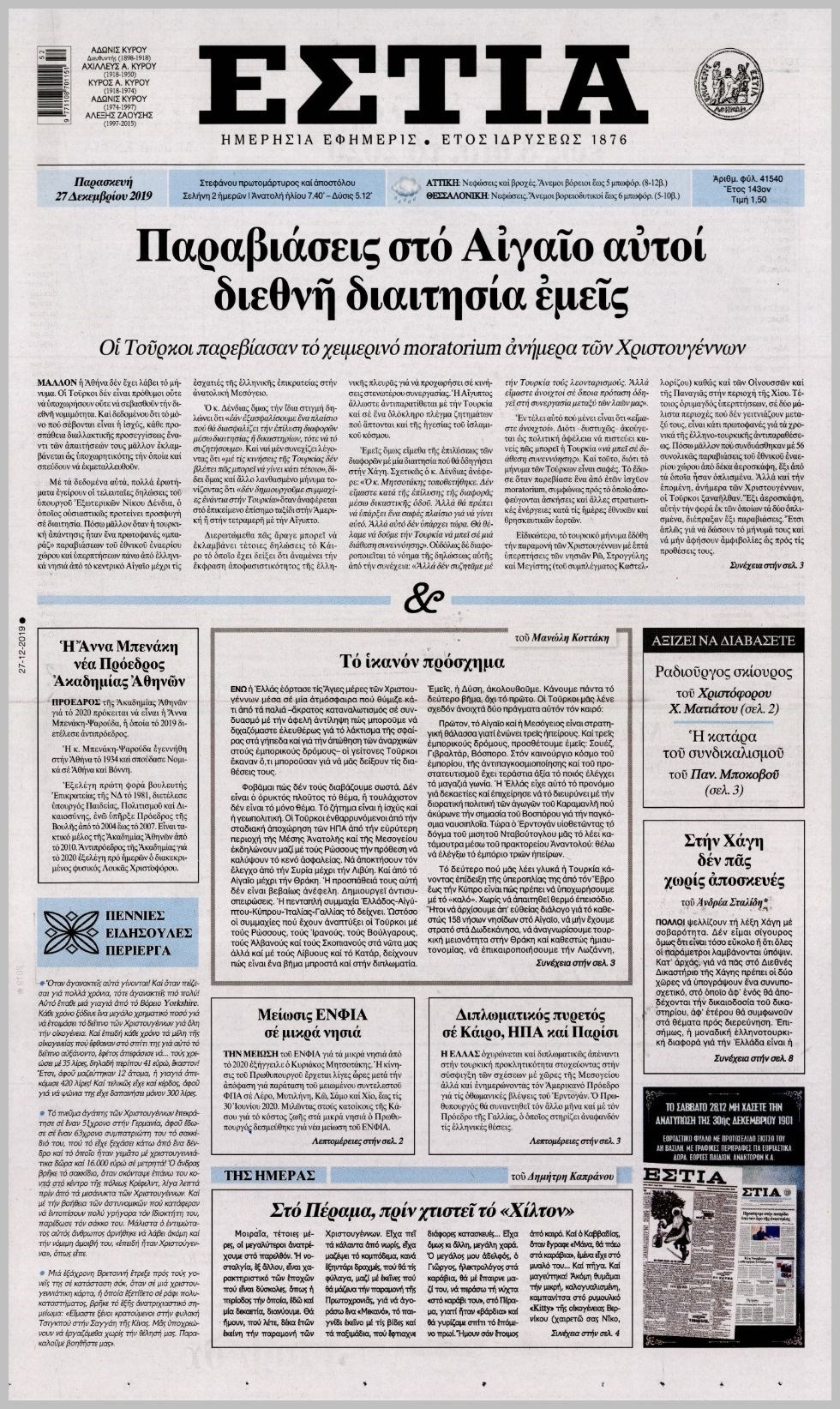 Οι πολιτικές εφημερίδες 27/12/2019 Κώστας Τεό 07:50, Παρασκευή 27 Δεκεμβρίου 2019 Media Διαβάστε τα πρωτοσέλιδα των πολιτικών εφημερίδων: ΠΟΛΙΤΙΚΕΣ ΕΦΗΜΕΡΙΔΕΣ ΠΡΩΤΟΣΕΛΙΔΑ Μοιράσου το: σχολίασε κι εσύ (0 σχόλια) Ακολουθήστε το enikos.gr στο Google News και μάθετε πρώτοι όλες τις ειδήσεις Δείτε όλες τις τελευταίες ειδήσεις από την Ελλάδα και τον Κόσμο στο enikos.gr Ειδήσεις Ροή Ειδήσεων 9 ώρες πριν Χριστούγεννα στα μπλόκα: Επιμένουν στις κινητοποιήσεις τους οι αγρότες – Ανοίγουν τα διόδια το Σαββατοκύριακο 1 ώρα πριν Σαρωτικοί οι έλεγχοι στους δρόμους ενόψει εορτών – Μπλόκα της τροχαίας σε κεντρικές αρτηρίες της Αττικής 8 ώρες πριν Πούτιν: Τα μηνύματα σε Ευρώπη και ΝΑΤΟ από το μαραθώνιο «σόου» του – Η απαίτηση για «σεβασμό» και η ειρήνη «με τους όρους» της Μόσχας 8 ώρες πριν ΗΠΑ: Η κυβέρνηση του Ντόναλντ Τραμπ άρχισε να δημοσιοποιεί τα αρχεία Έπσταϊν 8 ώρες πριν Άνω Λιόσια: Πυροβολισμοί σε επιχείρηση με χαλιά – Εντοπίστηκαν 10 κάλυκες 1 ώρα πριν Αυγά: Πόσα μπορείτε να τρώτε την ημέρα με ασφάλεια για μέγιστη πρόσληψη πρωτεΐνης 2 ώρες πριν Τα ζώδια σήμερα, Σάββατο 20 Δεκεμβρίου: Παρθένοι, το σύμπαν σας δίνει το κλειδί 8 ώρες πριν Ανακαλύφθηκαν αρχαία χρυσά νομίσματα 2.200 ετών που απεικονίζουν τον θεό Απόλλωνα – Η άγνωστη σύνδεση με τον Φίλιππο Β΄ της Μακεδονίας 1 ώρα πριν Οπτική ψευδαίσθηση: Μόνο αν είσαι ο Σέρλοκ Χολμς θα βρεις τον αριθμό «87» σε 7 δευτερόλεπτα 51 δευτερόλεπτα πριν Φοινικούντα: Σήμερα απολογείται ο 30χρονος γιος γνωστού επιχειρηματία της Πλάκας 8 λεπτά πριν Οι αθλητικές μεταδόσεις 20/12/2025 18 λεπτά πριν Εορτολόγιο: Ποιοι γιορτάζουν σήμερα 20 Δεκεμβρίου 25 λεπτά πριν Συρία: Μπαράζ αμερικανικών επιδρομών εναντίον του ISIS – «Πλήττουμε δυνατά οχυρά του ΙΚ» λέει ο Ντόναλντ Τραμπ 34 λεπτά πριν Αναβολή συμφωνίας ΕΕ-Mercosur: Ο χρόνος «δεν είναι απεριόριστος» προειδοποιεί η Παραγουάη ENIKOS NETWORK Πρέπει να αποδέχεστε ή να απορρίπτετε όλα τα cookies; Ένας ειδικός εξηγεί Η αγαπημένη λιχουδιά των πόνι που μπορεί να ενισχύσει όραση, εγκέφαλο και ανοσοποιητικό Αναστολή μέτρων αναγκαστικής εκτέλεσης για κτηνοτρόφους που πλήττονται από την ευλογιά των αιγοπροβάτων Πλήρης επάρκεια προϊόντων στις λαϊκές της Αττικής, παρά τις αγροτικές κινητοποιήσεις – Τι απαντούν οι πωλητές Χαρτογραφώντας το «σημείο χωρίς επιστροφή»: Για πρώτη φορά αποκαλύπτεται με λεπτομέρεια το ακανθώδες όριο της ατμόσφαιρας τ... Η Google καταργεί τη λειτουργία «dark web report» – Πώς θα μπορούν οι χρήστες να διαγράφουν τα δεδομένα τους περισσότερα 05:48 , Σάββατο 20 Δεκεμβρίου 2025 Οι οικονομικές εφημερίδες 20/12/2025 Διαβάστε τα πρωτοσέλιδα από τις οικονομικές εφημερίδες, σήμερα 20/12/2025. 05:43 , Σάββατο 20 Δεκεμβρίου 2025 Οι αθλητικές εφημερίδες 20/12/2025 Διαβάστε τα πρωτοσέλιδα από τις αθλητικές εφημερίδες, σήμερα 20/12/2025. 05:38 , Σάββατο 20 Δεκεμβρίου 2025 Οι πολιτικές εφημερίδες 20/12/2025 Διαβάστε τα πρωτοσέλιδα από τις πολιτικές εφημερίδες, σήμερα 20/12/2025. 04:20 , Σάββατο 20 Δεκεμβρίου 2025 Αγγελική Νικολούλη: Τα συλλυπητήρια για την απώλεια της Ειρήνης Μαρινάκη Τα συλληπητήρια στον πρόεδρο του Mega, τον Βαγγέλη Μαρινάκη, για την απώλεια της μητέρας του Ε... ΤΕΛΕΥΤΑΙΕΣ ΕΙΔΗΣΕΙΣ 8 λεπτά πριν Οι αθλητικές μεταδόσεις 20/12/2025 18 λεπτά πριν Εορτολόγιο: Ποιοι γιορτάζουν σήμερα 20 Δεκεμβρίου 25 λεπτά πριν Συρία: Μπαράζ αμερικανικών επιδρομών εναντίον του ISIS... 34 λεπτά πριν Αναβολή συμφωνίας ΕΕ-Mercosur: Ο χρόνος «δεν είναι... 49 λεπτά πριν Κίριλ Ντμίτριεφ: Στις ΗΠΑ ο απεσταλμέ
