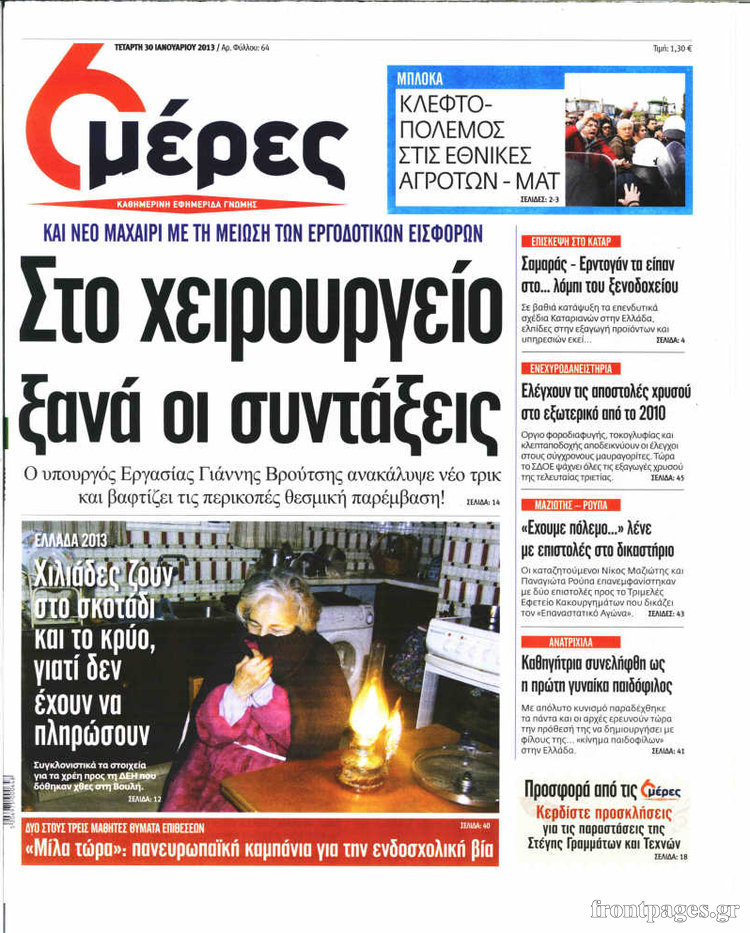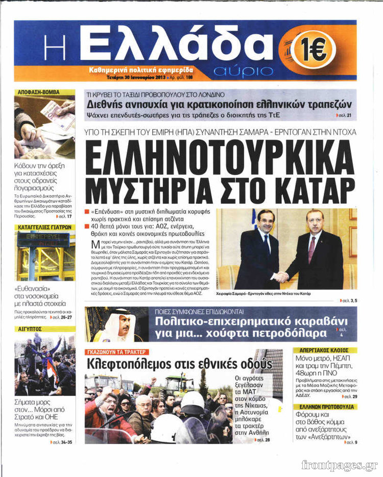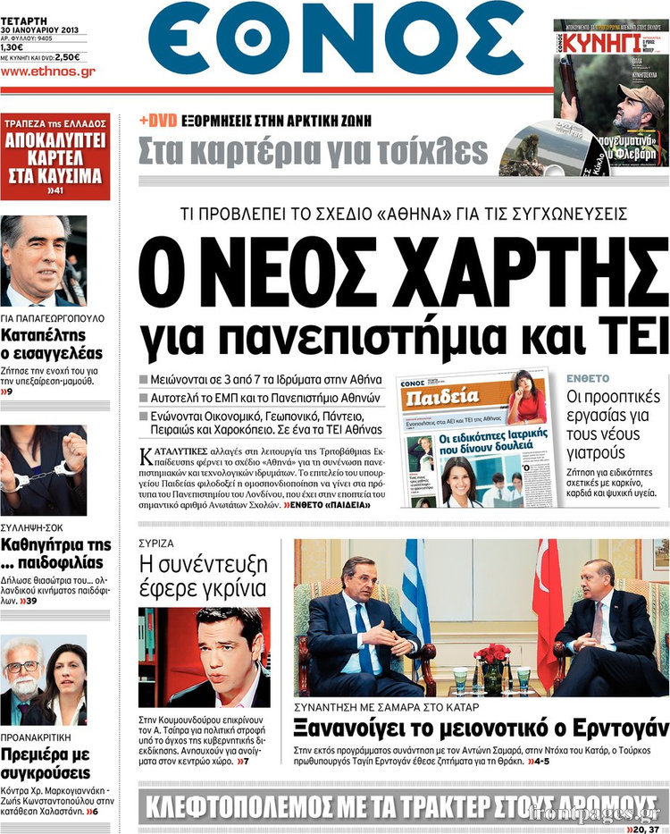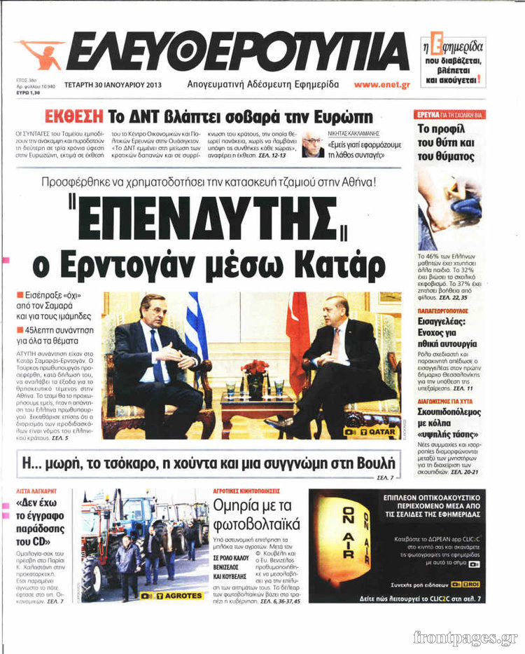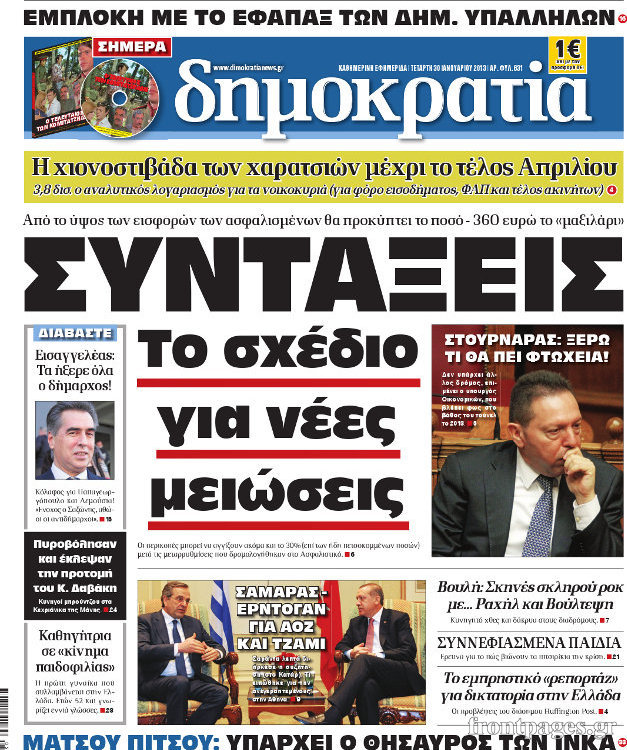 Οι πολιτικές εφημερίδες Enikos Newsroom 09:17, Τετάρτη 30 Ιανουαρίου 2013 Media Οι πολιτικές εφημερίδες ΕΦΗΜΕΡΙΔΕΣ ΟΙ ΠΟΛΙΤΙΚΕΣ ΕΦΗΜΕΡΙΔΕΣ ΠΡΩΤΟΣΕΛΙΔΑ Μοιράσου το: σχολίασε κι εσύ (0 σχόλια) Ακολουθήστε το enikos.gr στο Google News και μάθετε πρώτοι όλες τις ειδήσεις Δείτε όλες τις τελευταίες ειδήσεις από την Ελλάδα και τον Κόσμο στο enikos.gr Ειδήσεις Ροή Ειδήσεων 6 ώρες πριν Εκτός ευρωομάδας ΣΥΡΙΖΑ ο Νίκος Παππάς μετά την επίθεση στον δημοσιογράφο Νίκο Γιαννόπουλο – Η μήνυση και οι νέες δηλώσεις 7 ώρες πριν «Αγριεύουν» οι αγρότες: «Δεν συντρέχει λόγος συνάντησης με τον πρωθυπουργό» – Ώρα αποφάσεων στη σύσκεψη της Πέμπτης 7 ώρες πριν Κυψέλη: Χωρίς την οικογένειά της δίπλα της απολογήθηκε η 16χρονη – «Της είχε επιτεθεί κάποιος για να την βιάσει, φοβήθηκε και κυκλοφορούσε με μαχαίρι» 6 ώρες πριν Politico: Το πρόβλημα της Ευρώπης δεν είναι το Βέλγιο αλλά ο Ντόναλντ Τραμπ 8 ώρες πριν Αλεξανδρούπολη: Πολυοργανική ανεπάρκεια λόγω υποσιτισμού η αιτία θανάτου του 3χρονου αγοριού 6 ώρες πριν Μυστήριο με τεράστιες κυκλικές πέτρες 200 κιλών – Ανακαλύφθηκαν τυχαία κατά τη διάρκεια οδικών έργων και κανείς δεν ξέρει από πού προέρχονται 7 ώρες πριν Ύπνος: Ειδικός εξηγεί τον πραγματικό λόγο που ξυπνάτε στις 4 τα ξημερώματα – Ο ρόλος των ορμονών και του κιρκάδιου ρυθμού 8 ώρες πριν Αριθμολογία: Οι άνθρωποι που έχουν γεννηθεί αυτές τις 4 ημερομηνίες, είναι τρυφεροί και αγαπούν ανιδιοτελώς 20 ώρες πριν 20 χρόνια τα Χριστούγεννα ξεκινούν στα Public με μεγάλη ποικιλία σε δώρα! 8 λεπτά πριν Το Ποντίκι σήμερα Πέμπτη 18/12/2025 12 λεπτά πριν Εφημερεύοντα φαρμακεία σε Αθήνα και Θεσσαλονίκη (18/12) 15 λεπτά πριν Αλεξάνδρα Ούστα: «Αυτό που με τρέλανε στον σύζυγό μου ήταν η ορθολογική του σκέψη» 22 λεπτά πριν Μιχάλης Αεράκης: «Της είπα “θέλω να κάνουμε σπιτικό, αλλά υπάρχουν τρεις προϋποθέσεις…”» 30 λεπτά πριν Αυστραλία: Κυβερνητική δέσμευση για αυστηρότερα μέτρα κατά της υποκίνησης μίσους ENIKOS NETWORK Αϋπνία: Το κόλπο που θα σας βοηθήσει να κοιμηθείτε απόψε – Είναι απλό και έχει αποτέλεσμα 2,6 εκατομμύρια πολίτες έχουν ήδη εμβολιαστεί κατά της γρίπης ΕΛΣΤΑΤ: Τι δείχνουν τα νέα στοιχεία για τις ηλεκτρονικές παραγγελίες των επιχειρήσεων ΚΕΠΕ: Οι 3 διακριτές συμβολές των ΜμΕ και της μεταποίησης στην ελληνική οικονομία Χαρτογραφώντας το «σημείο χωρίς επιστροφή»: Για πρώτη φορά αποκαλύπτεται με λεπτομέρεια το ακανθώδες όριο της ατμόσφαιρας τ... Η Google καταργεί τη λειτουργία «dark web report» – Πώς θα μπορούν οι χρήστες να διαγράφουν τα δεδομένα τους περισσότερα 05:22 , Πέμπτη 18 Δεκεμβρίου 2025 Το Ποντίκι σήμερα Πέμπτη 18/12/2025 Διαβάστε το πρωτοσέλιδο της εφημερίδας «Το Ποντίκι» σήμερα 18/12/2025. 02:30 , Πέμπτη 18 Δεκεμβρίου 2025 Αλ Τσαντίρι Νιουζ: Η κόρη της Πάολα στο κοινό – Η ατάκα Λαζόπουλου που την έκανε να «κοκκινήσει» Γιορτινή διάθεση και ευχάριστες στιγμές γέμισε η αποψινή, τελευταία για το 2025, εκπομπή του «... 22:24 , Τετάρτη 17 Δεκεμβρίου 2025 Το Σπίτι Δίπλα Στο Ποτάμι: Σε κίνδυνο η υγεία του Απόστολου – Τι θα δούμε απόψε “Το Σπίτι Δίπλα στο Ποτάμι” ξετυλίγει το νήμα της ζωής των πέντε αδελφών με καταισ... 21:14 , Τετάρτη 17 Δεκεμβρίου 2025 Παιχνίδια Εκδίκησης: Θα καταφέρει ο Χρήστος να κλονίσει την εμπιστοσύνη της Μάγιας απέναντι στον Άγη; Τα «Παιχνίδια Εκδίκησης» έρχονται απόψε στις 22:30, στον Αντ1, με το τελευταίο επεισόδιο της χ... ΤΕΛΕΥΤΑΙΕΣ ΕΙΔΗΣΕΙΣ 8 λεπτά πριν Το Ποντίκι σήμερα Πέμπτη 18/12/2025 12 λεπτά πριν Εφημερεύοντα φαρμακεία σε Αθήνα και Θε