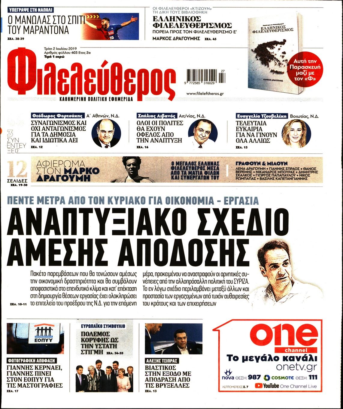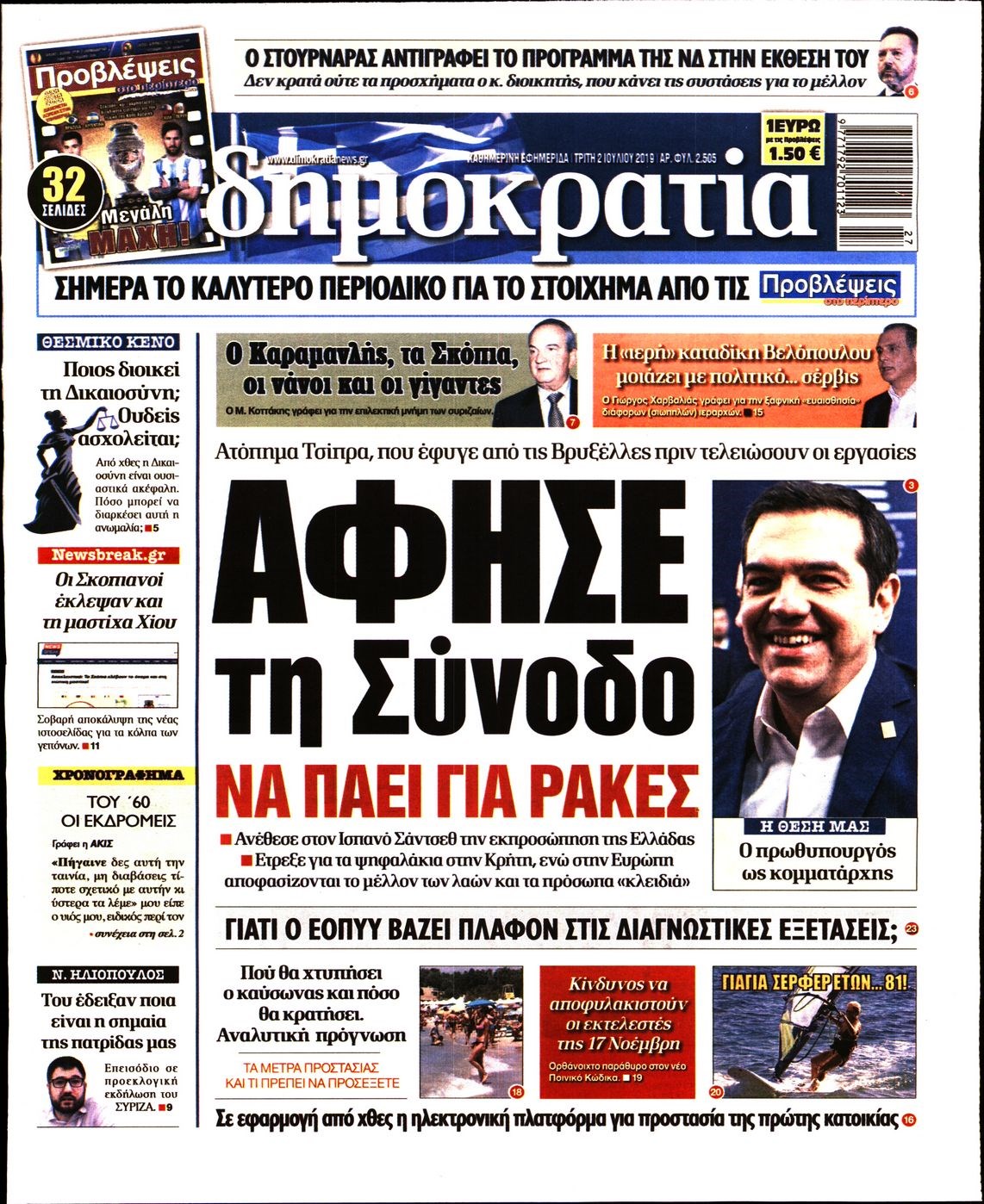 Οι πολιτικές εφημερίδες 2/7/2019 Enikos Newsroom 06:30, Τρίτη 02 Ιουλίου 2019 Media Διαβάστε τα πρωτοσέλιδα των πολιτικών εφημερίδων: ΠΟΛΙΤΙΚΕΣ ΕΦΗΜΕΡΙΔΕΣ ΠΡΩΤΟΣΕΛΙΔΑ Μοιράσου το: σχολίασε κι εσύ (0 σχόλια) Ακολουθήστε το enikos.gr στο Google News και μάθετε πρώτοι όλες τις ειδήσεις Δείτε όλες τις τελευταίες ειδήσεις από την Ελλάδα και τον Κόσμο στο enikos.gr Ειδήσεις Ροή Ειδήσεων 5 ώρες πριν Χριστούγεννα στα μπλόκα: Επιμένουν στις κινητοποιήσεις τους οι αγρότες – Ανοίγουν τα διόδια το Σαββατοκύριακο 5 ώρες πριν Ουκρανία: Η άνευ προηγουμένου επίθεση σε ρωσικό τάνκερ στη Μεσόγειο και το μήνυμα προς στον Πούτιν – Το «μακρύ χέρι» του Κιέβου 4 ώρες πριν Πούτιν: Τα μηνύματα σε Ευρώπη και ΝΑΤΟ από το μαραθώνιο «σόου» του – Η απαίτηση για «σεβασμό» και η ειρήνη «με τους όρους» της Μόσχας 5 ώρες πριν Τραμπ: Δεν αποκλείει την πιθανότητα ενός πολέμου στη Βενεζουέλα – «Ο Μαδούρο ξέρει καλύτερα από τον καθένα τι ακριβώς θέλω» 6 ώρες πριν Συνεχίζει να προκαλεί ο Μίτσκοσκι: «Για μένα το όνομα Μακεδονία είναι ιερό» 5 ώρες πριν Ανακαλύφθηκαν αρχαία χρυσά νομίσματα 2.200 ετών που απεικονίζουν τον θεό Απόλλωνα – Η άγνωστη σύνδεση με τον Φίλιππο Β΄ της Μακεδονίας 5 ώρες πριν Ύπνος: Μια κρυφή κατάσταση του εγκεφάλου πριν από τον ύπνο μπορεί να είναι το “κλειδί” για υψηλή ευφυΐα και δημιουργικότητα 6 ώρες πριν Αριθμολογία: Οι άνθρωποι που έχουν γεννηθεί αυτές τις 4 ημερομηνίες, συχνά παρεξηγούνται – «Η καλοσύνη τους κρύβει τεράστια δύναμη» 7 ώρες πριν Ξεχάστε το καθάρισμα το Σαββατοκύριακο: Ο «κανόνας των 20 λεπτών» που θα σας λύσει τα χέρια 10 λεπτά πριν Ταμίλα Κουλίεβα: «Δεν θέλω να είμαι κάποια που πορεύεται συνεχώς με τις ίδιες αναφορές» 25 λεπτά πριν Η Ελλάδα προσχωρεί στη Διεθνή Επιτροπή Αποζημιώσεων για την Ουκρανία 40 λεπτά πριν GNTM: Η Ξένια Τσίρκοβα αναδείχθηκε μεγάλη νικήτρια και πήρε τις 50.000 ευρώ – Ποιος βρέθηκε σε απόσταση αναπνοής; 55 λεπτά πριν Θεσσαλονίκη: Εξαφανίστηκε 13χρονος από χώρο φιλοξενίας ασυνόδευτων ανηλίκων στο Ωραιόκαστρο 1 ώρα πριν Ντόναλντ Τραμπ: «Πολύ βαριά αντίποινα» στη Συρία – «Πλήττουμε πολύ δυνατά οχυρά του Ισλαμικού Κράτους» ENIKOS NETWORK Το ΕΚΑΒ τιμήθηκε από την Ακαδημία Αθηνών για τα 40 χρόνια προσφοράς του Έχετε πραγματικά μεγάλη καρδιά; 10 χαρακτηριστικά όσων έχουν καλοσύνη Αναστολή μέτρων αναγκαστικής εκτέλεσης για κτηνοτρόφους που πλήττονται από την ευλογιά των αιγοπροβάτων Πλήρης επάρκεια προϊόντων στις λαϊκές της Αττικής, παρά τις αγροτικές κινητοποιήσεις – Τι απαντούν οι πωλητές Χαρτογραφώντας το «σημείο χωρίς επιστροφή»: Για πρώτη φορά αποκαλύπτεται με λεπτομέρεια το ακανθώδες όριο της ατμόσφαιρας τ... Η Google καταργεί τη λειτουργία «dark web report» – Πώς θα μπορούν οι χρήστες να διαγράφουν τα δεδομένα τους περισσότερα 02:50 , Σάββατο 20 Δεκεμβρίου 2025 GNTM: Η Ξένια Τσίρκοβα αναδείχθηκε μεγάλη νικήτρια και πήρε τις 50.000 ευρώ – Ποιος βρέθηκε σε απόσταση αναπνοής; Με φαντασμαγορικό τρόπο ολοκληρώθηκε το βράδυ της Παρασκευής ο μεγάλος τελικός του GNTM, μέσα ... 22:42 , Παρασκευή 19 Δεκεμβρίου 2025 Γιώργος Γιαννόπουλος για “Το σόι σου”: “Είναι ευτυχία και ευλογία αυτή η σειρά” «Είναι ευτυχία και ευλογία η συγκυρία αυτής της σειράς», θα πει ο Γιώργος Γιαννόπουλος -ο αγαπ... 20:37 , Παρασκευή 19 Δεκεμβρίου 2025 Don’t Forget The Lyrics: Η Έλλη Κοκκίνου υποδέχεται 4 παίκτες που θα κάνουν τα πάντα για να μη χάσουν ούτε… μισή λέξη από τους στίχους Το «Don’t Forget The Lyrics» επιστρέφει απόψε, Παρασκευή 19 Δε