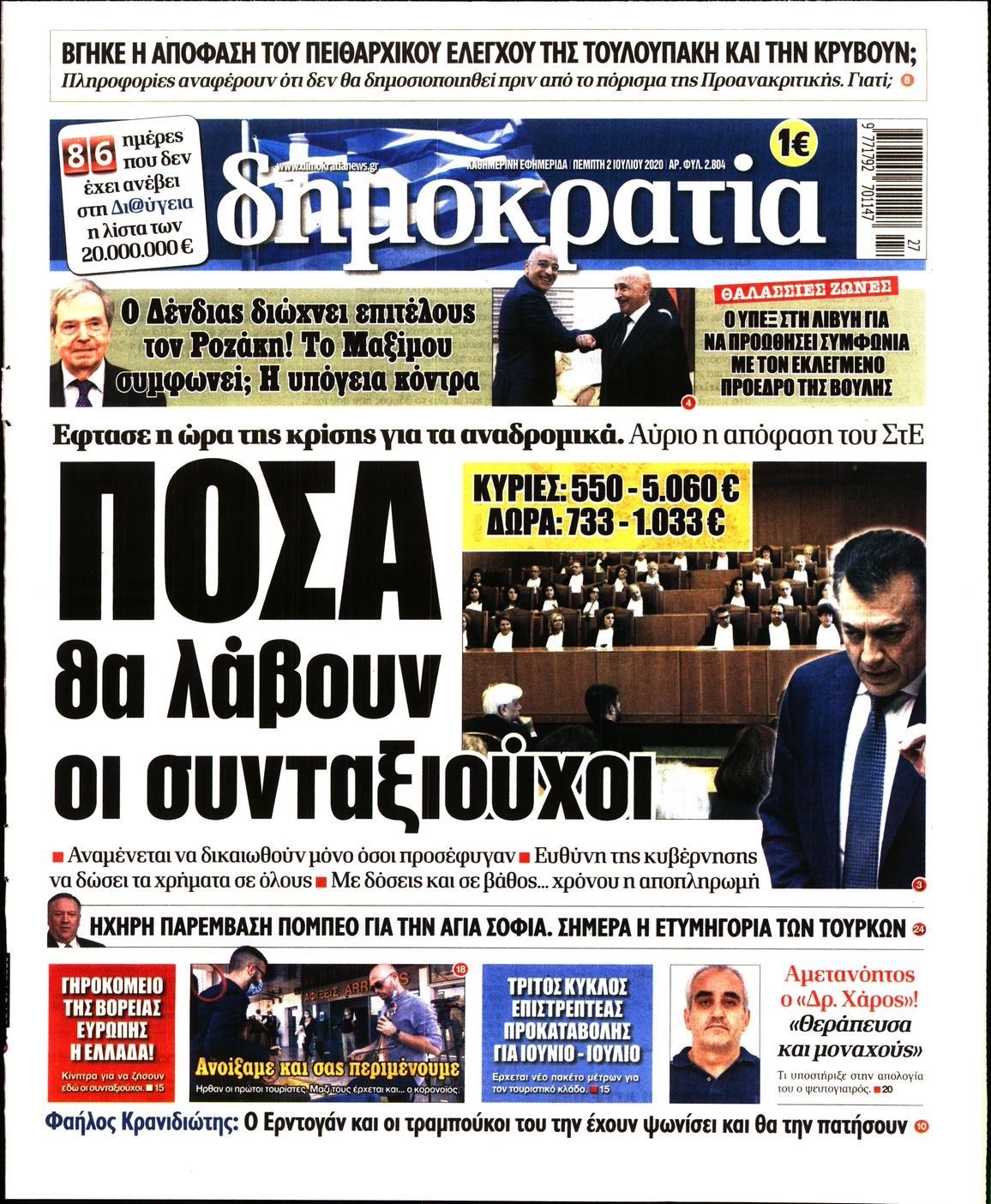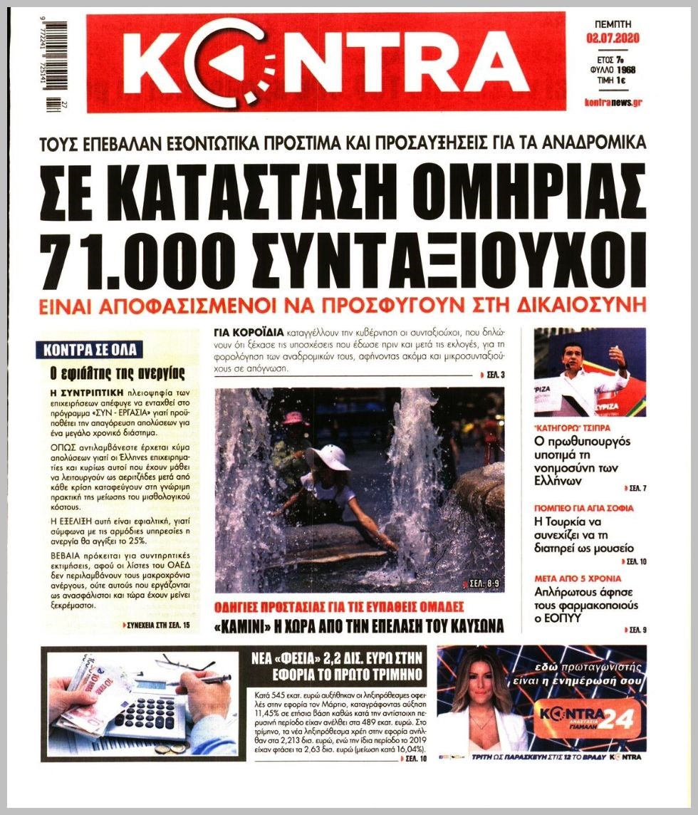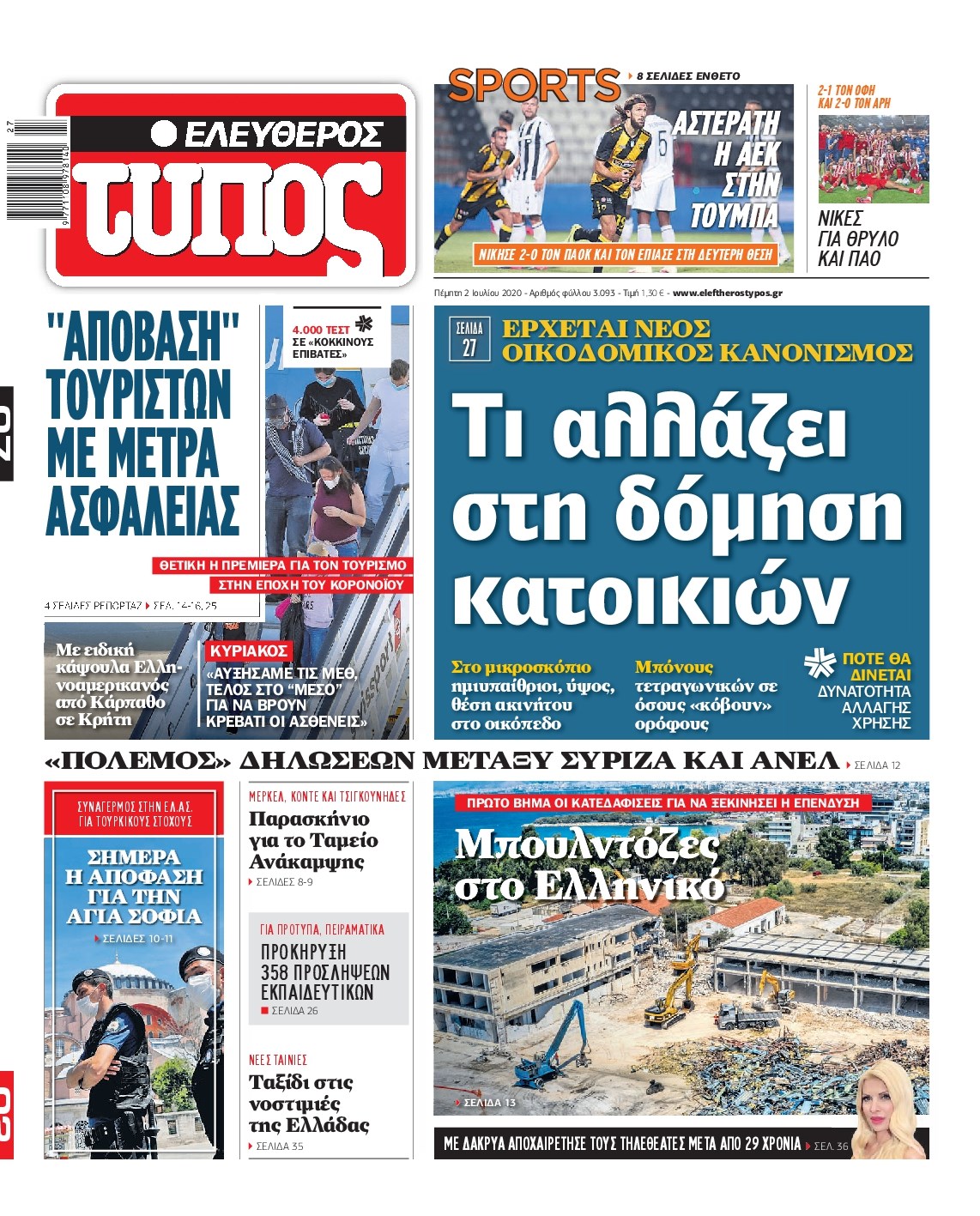 Οι πολιτικές εφημερίδες 2/7/2020 Διονύσης Νίκκας 06:09, Πέμπτη 02 Ιουλίου 2020 Media Διαβάστε τα πρωτοσέλιδα των πολιτικών εφημερίδων… ΠΟΛΙΤΙΚΕΣ ΕΦΗΜΕΡΙΔΕΣ ΠΡΩΤΟΣΕΛΙΔΑ Μοιράσου το: σχολίασε κι εσύ (0 σχόλια) Ακολουθήστε το enikos.gr στο Google News και μάθετε πρώτοι όλες τις ειδήσεις Δείτε όλες τις τελευταίες ειδήσεις από την Ελλάδα και τον Κόσμο στο enikos.gr Ειδήσεις Ροή Ειδήσεων 2 ώρες πριν Μπλόκα: Οι αγρότες σηκώνουν τις μπάρες σε διόδια για τους εκδρομείς των Χριστουγέννων και μοιράζουν προϊόντα – Βίντεο 2 ώρες πριν Τσιάρας προς αγρότες: Τα μπλόκα και τα πείσματα δεν ωφελούν – Οι λύσεις περνούν μέσα από τον διάλογο 3 ώρες πριν Αρχεία Έπσταϊν: Οι συγκλονιστικές φωτογραφίες – Ο Μάικλ Τζάκσον, ο Μικ Τζάγκερ και ο Κέβιν Σπέισι ανάμεσα στους διάσημους που απεικονίζονται 56 λεπτά πριν Μαθητές διακινούσαν κοκαΐνη και χασίς σε σχολείο της Αττικής – 12 συλλήψεις 1 ώρα πριν Βέλγιο: Άγνωστοι έριξαν κόκκινη μπογιά στο προξενείο της Πολωνίας στις Βρυξέλλες 5 ώρες πριν Μία νέα «χρυσή» περίοδος αρχίζει για 3 ζώδια από σήμερα – «Μία αναπάντεχη ευκαιρία οδηγεί στην επιτυχία» 3 ώρες πριν Διαιτολόγος αποκαλύπτει 9 πρωινές συνήθειες που «λιώνουν» το κοιλιακό λίπος – «Υποστηρίζουν την υγιεινή απώλεια βάρους» 4 ώρες πριν Οι 7 φράσεις που δεν λένε ποτέ οι συναισθηματικά έξυπνοι άνθρωποι κατά τη διάρκεια ενός καβγά 7 ώρες πριν Enerwave: Το νέο «ρεύμα» στη λιανική ενέργειας που αλλάζει την εμπειρία του καταναλωτή 4 λεπτά πριν Μαρινάκης στον Realfm 97,8: Η κυβέρνηση σέβεται κάθε λογική διεκδίκηση των αγροτών, αλλά και το αίτημα των πολιτών να μην ταλαιπωρούνται 11 λεπτά πριν O Πάντερ MVP της 17ης αγωνιστικής στην Euroleague 19 λεπτά πριν Πέθανε η τραγουδίστρια Κλαούντια Ντελμέρ 27 λεπτά πριν Μία ανεκμετάλλευτη πηγή θα μπορούσε να προσφέρει ανεξάντλητη ενέργεια – Οι επιστήμονες ίσως γνωρίζουν πώς να την ξεκλειδώσουν 35 λεπτά πριν Θεσσαλονίκη: Ανήλικος που είχε εξαφανιστεί βρέθηκε στο σπίτι Τούρκων μετά από αστυνομική επιχείρηση ENIKOS NETWORK Η αποχή από την αναπαραγωγή παρατείνει τη ζωή στα ζώα, σύμφωνα με μελέτη – Τι ισχύει για τους ανθρώπους; Σημαντικές επαφές στις ΗΠΑ είχε ο υπουργός Υγείας Άδωνις Γεωργιάδης Ευλογιά αιγοπροβάτων: Παρατεταμένη επιζωοτία, αυστηρά μέτρα – Τι ισχύει για τον εμβολιασμό και την ανασύσταση του ζωικού κε... Τσιάρας προς αγρότες: Έχει ικανοποιηθεί το 74% των αιτημάτων – Τα μπλόκα και τα πείσματα δεν ωφελούν Χαρτογραφώντας το «σημείο χωρίς επιστροφή»: Για πρώτη φορά αποκαλύπτεται με λεπτομέρεια το ακανθώδες όριο της ατμόσφαιρας τ... Η Google καταργεί τη λειτουργία «dark web report» – Πώς θα μπορούν οι χρήστες να διαγράφουν τα δεδομένα τους περισσότερα 14:04 , Σάββατο 20 Δεκεμβρίου 2025 Η Realnews αυτής της Κυριακής (21/12/2025) Με τίτλο: «Ασπίδα προστασίας για την Ελλάδα» κυκλοφορεί, αυτήν την Κυριακή, η Realnews. Σημαντ... 12:53 , Σάββατο 20 Δεκεμβρίου 2025 Να μ’ αγαπάς: Το παρελθόν έρχεται στο φως – Καταιγιστικές εξελίξεις στα τελευταία επεισόδια του 2025 Ο Άγγελος αποκαλύπτεται, η Φωτεινή ανησυχεί για τον Λευτέρη και η Ζωή έρχεται αντιμέτωπη με το... 11:41 , Σάββατο 20 Δεκεμβρίου 2025 «Η αγάπη δεν χάνεται ποτέ»: Η μικρού μήκους ταινία κινουμένων σχεδίων που θέτει ερωτήματα για τη ζωή και τον θάνατο Ο θάνατος είναι ένα από τα πιο σκληρά θέματα που καλείται να διαχειριστεί κάποιος στη διάρκεια... 09:30 , Σάββατο 20 Δεκεμβρίου 2025 «Porto Leone: Στη γειτονιά με τα κόκκινα φανάρια» – Ο Χρόνης αποκαλύπτει στην Αλεξάνδρα το μυστικό γι