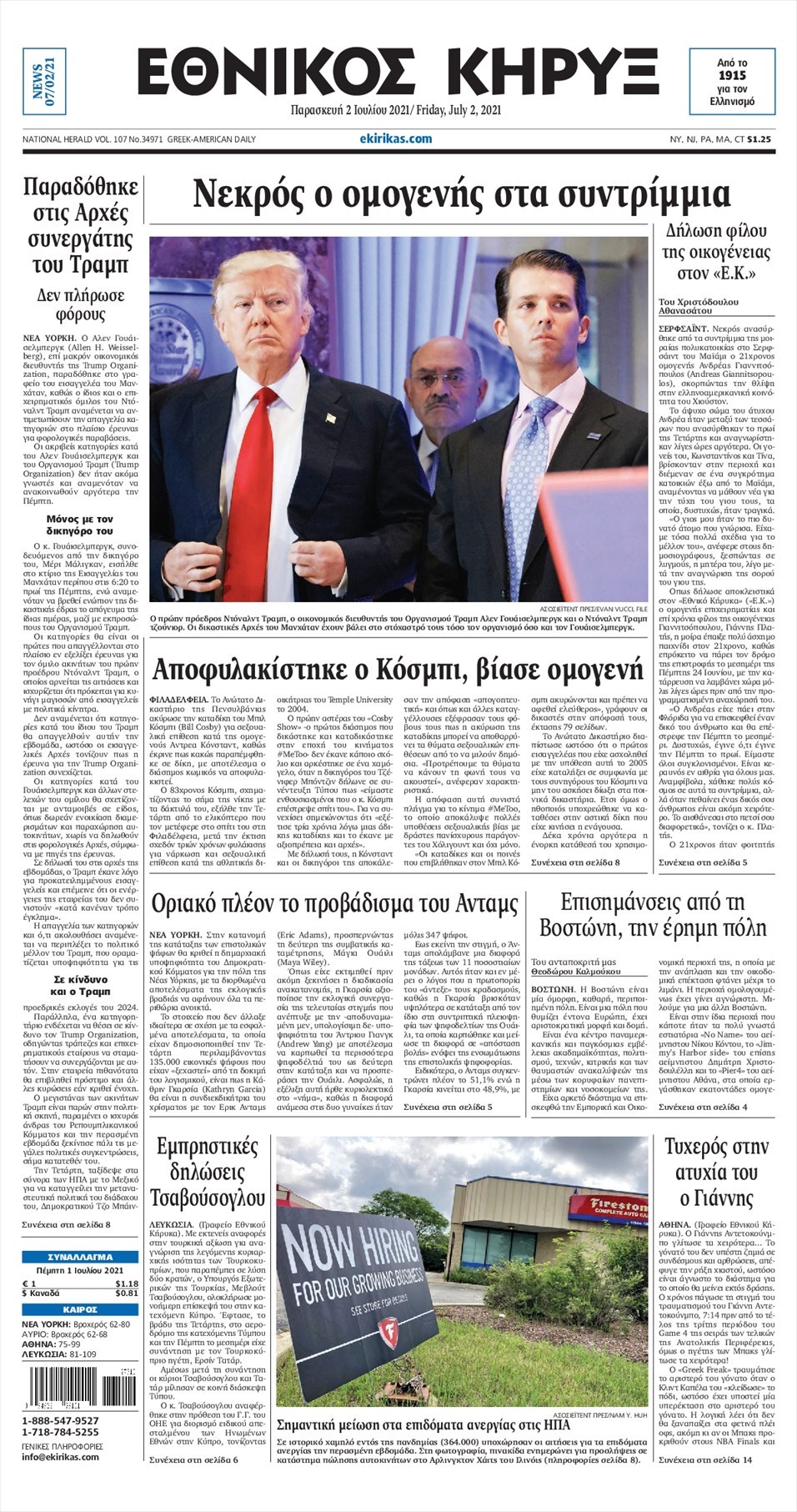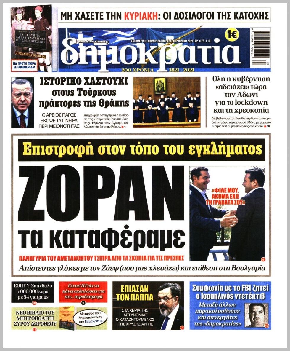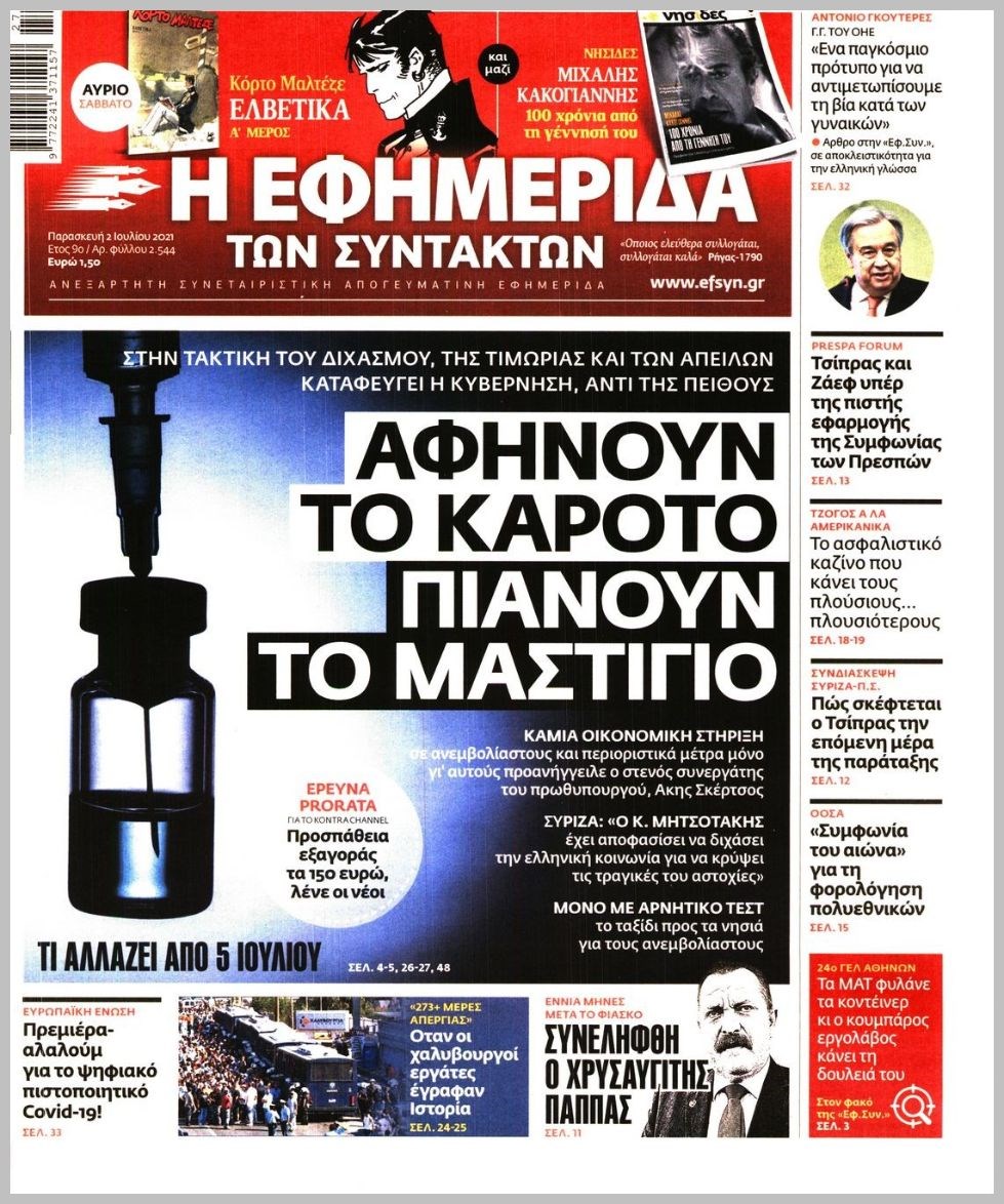 Οι πολιτικές εφημερίδες 2/7/2021 Διονύσης Νίκκας 06:10, Παρασκευή 02 Ιουλίου 2021 Media Διαβάστε τα πρωτοσέλιδα των πολιτικών εφημερίδων… ΕΦΗΜΕΡΙΔΕΣ ΠΡΩΤΟΣΕΛΙΔΑ Μοιράσου το: σχολίασε κι εσύ (0 σχόλια) Ακολουθήστε το enikos.gr στο Google News και μάθετε πρώτοι όλες τις ειδήσεις Δείτε όλες τις τελευταίες ειδήσεις από την Ελλάδα και τον Κόσμο στο enikos.gr Ειδήσεις Ροή Ειδήσεων 4 ώρες πριν Υπόθεση Έπσταϊν: Το Υπουργείο Δικαιοσύνης δημοσιοποίησε μια σειρά από εξαιρετικά επεξεργασμένα αρχεία – «Λείπουν τα πιο σημαντικά έγγραφα», λένε οι Δημοκρατικοί 42 λεπτά πριν Γιορτές με μπλόκα για τους αγρότες: Ανοίγουν διόδια και μοιράζουν προϊόντα στους ταξιδιώτες 1 ώρα πριν Εξαφάνιση 33χρονου γιατρού στην Κρήτη: «Άναψα τα φώτα, τρόμαξε και άρχισε να τρέχει στα χωράφια» – Η τελευταία διαδρομή και η μαρτυρία «κλειδί» 3 ώρες πριν Ο «χάρτης» με τις αυξήσεις και τις φοροελαφρύνσεις του 2026 – Ποιοι και πόσα κερδίζουν 58 λεπτά πριν Τα αρχεία του Έπσταϊν αποκαλύπτουν φωτογραφία του έκπτωτου πρίγκιπα Άντριου – Είναι ξαπλωμένος στην αγκαλιά 5 γυναικών 1 ώρα πριν Μία νέα «χρυσή» περίοδος αρχίζει για 3 ζώδια από σήμερα – «Μία αναπάντεχη ευκαιρία οδηγεί στην επιτυχία» 5 ώρες πριν Αυγά: Πόσα μπορείτε να τρώτε την ημέρα με ασφάλεια για μέγιστη πρόσληψη πρωτεΐνης 3 ώρες πριν Αρχαιολόγοι ανακάλυψαν σε χωράφι απεικόνιση 600 ετών ενός Αγίου – Τα στοιχεία που δείχνουν ότι μαρτύρησε 2 ώρες πριν Αγχώνεται για το χριστουγεννιάτικο δώρο που πήρε στην πλούσια σύντροφό του – «Φοβάμαι πως θα το βρει φθηνιάρικο, φοράει βραχιόλια Cartier» 7 λεπτά πριν Νέες ταυτότητες: Μεγάλη αναμονή για ραντεβού στην Αττική – Τέλος τα ταξίδια εκτός Ελλάδος από τον Αύγουστο για όσους δεν έχουν αλλάξει 15 λεπτά πριν Οι 7 φράσεις που δεν λένε ποτέ οι συναισθηματικά έξυπνοι άνθρωποι κατά τη διάρκεια ενός καβγά 18 λεπτά πριν Τηλεθέαση (19/12): Ανατροπές και πρωτιές στην πρωινή ζώνη 26 λεπτά πριν Πώς η κλιματική αλλαγή επηρεάζει εγκύους και βρέφη – Οι επιπτώσεις των υψηλών θερμοκρασιών 34 λεπτά πριν e-ΕΦΚΑ και ΔΥΠΑ: Οι πληρωμές από 22 έως 24 Δεκεμβρίου – Ποιοι θα δουν χρήματα στους λογαριασμούς τους ENIKOS NETWORK Είστε μόνιμα απρόσεκτοι; 3 σημάδια που δείχνουν ότι μπορεί να είναι σύμπτωμα πάθησης Πόσα κιλά παίρνουμε πραγματικά τα Χριστούγεννα, σύμφωνα με την επιστήμη – Πώς να το αποτρέψουμε; Επίδομα παιδιού: Τι αλλάζει από το 2026 – Το όφελος από τις φορολογικές ελαφρύνσεις Mega χριστουγεννιάτικη φορολοταρία: «Κλείδωσε» η ημερομηνία για την κλήρωση – Ερωτήσεις και απαντήσεις Χαρτογραφώντας το «σημείο χωρίς επιστροφή»: Για πρώτη φορά αποκαλύπτεται με λεπτομέρεια το ακανθώδες όριο της ατμόσφαιρας τ... Η Google καταργεί τη λειτουργία «dark web report» – Πώς θα μπορούν οι χρήστες να διαγράφουν τα δεδομένα τους περισσότερα 09:30 , Σάββατο 20 Δεκεμβρίου 2025 «Porto Leone: Στη γειτονιά με τα κόκκινα φανάρια» – Ο Χρόνης αποκαλύπτει στην Αλεξάνδρα το μυστικό για το παιδί της Λένας Η μεγάλη δραματική σειρά του Apha «Porto Leone: Στη γειτονιά με τα κόκκινα φανάρια» μας μεταφέ... 08:14 , Σάββατο 20 Δεκεμβρίου 2025 Τρομεροί γονείς: Η Μαρία Καβογιάννη εισβάλλει στο σπίτι της οικογένειας Στεφανίδη Όσα θα δούμε στο νέο διπλό επεισόδιο της σειράς «Τρομεροί γονείς», σήμερα Σάββατο 20 Δεκεμβρίο... 05:48 , Σάββατο 20 Δεκεμβρίου 2025 Οι οικονομικές εφημερίδες 20/12/2025 Διαβάστε τα πρωτοσέλιδα από τις οικονομικές εφημερίδες, σήμερα 20/12/2025. 05:43 , Σάββατο 20 Δεκεμβρίου 2025 Οι αθλητικές εφημερίδες 20/12/2025 Διαβάστε 
