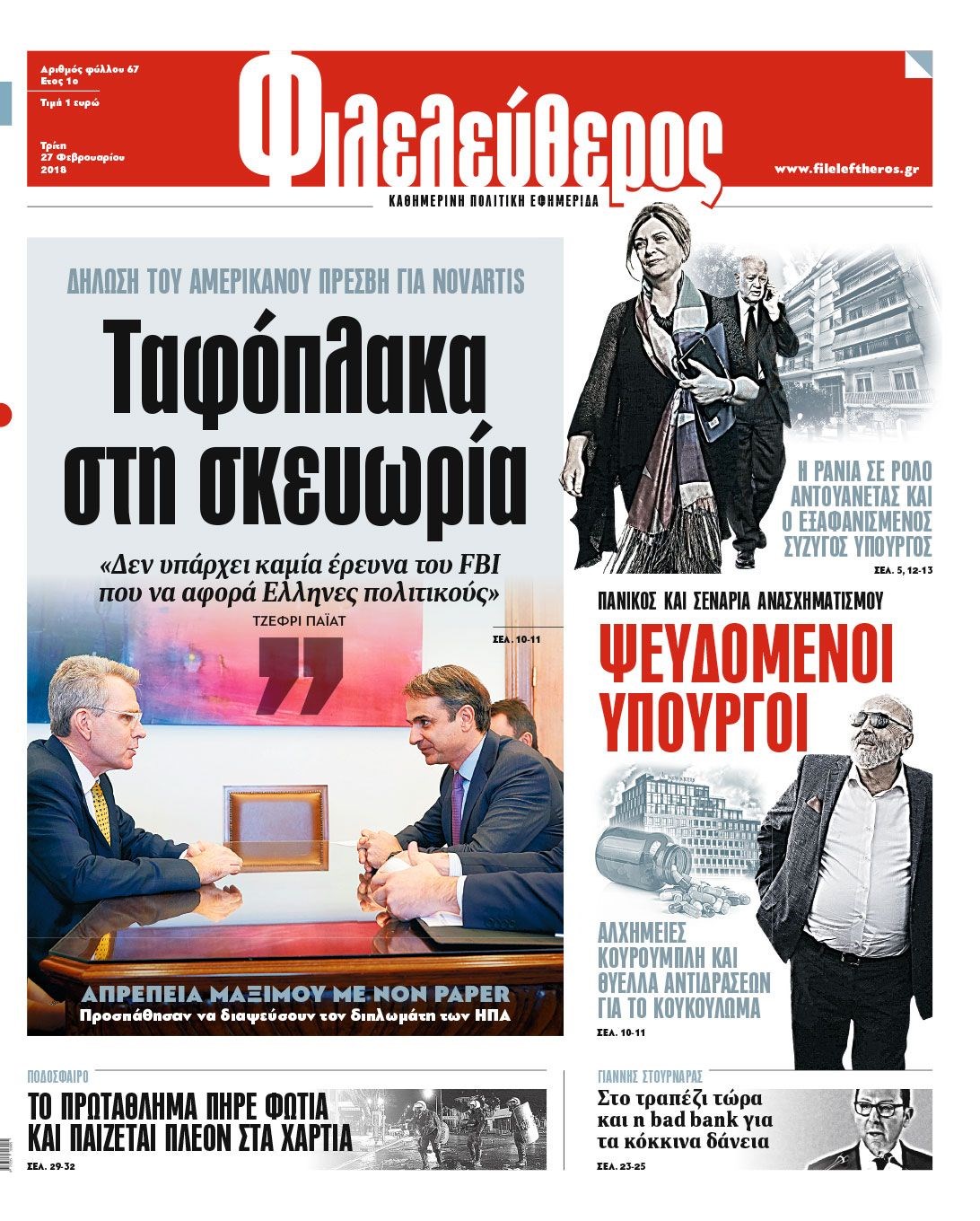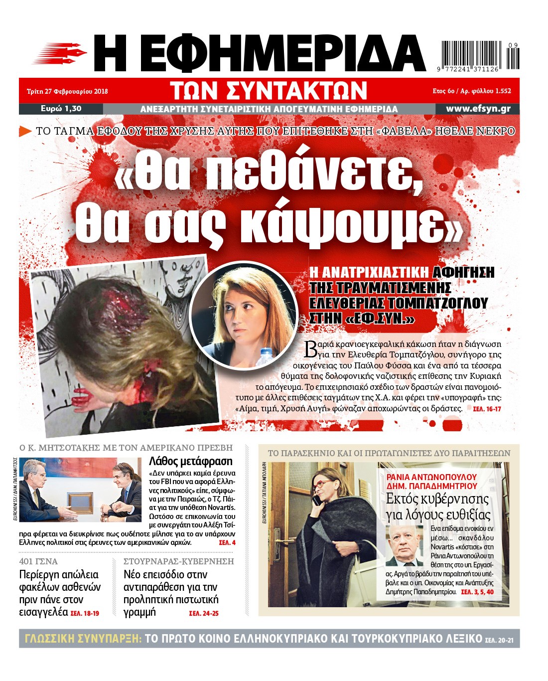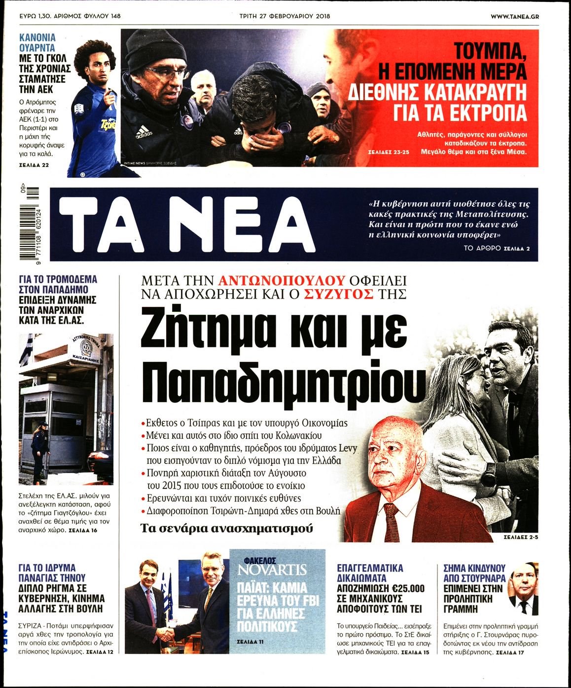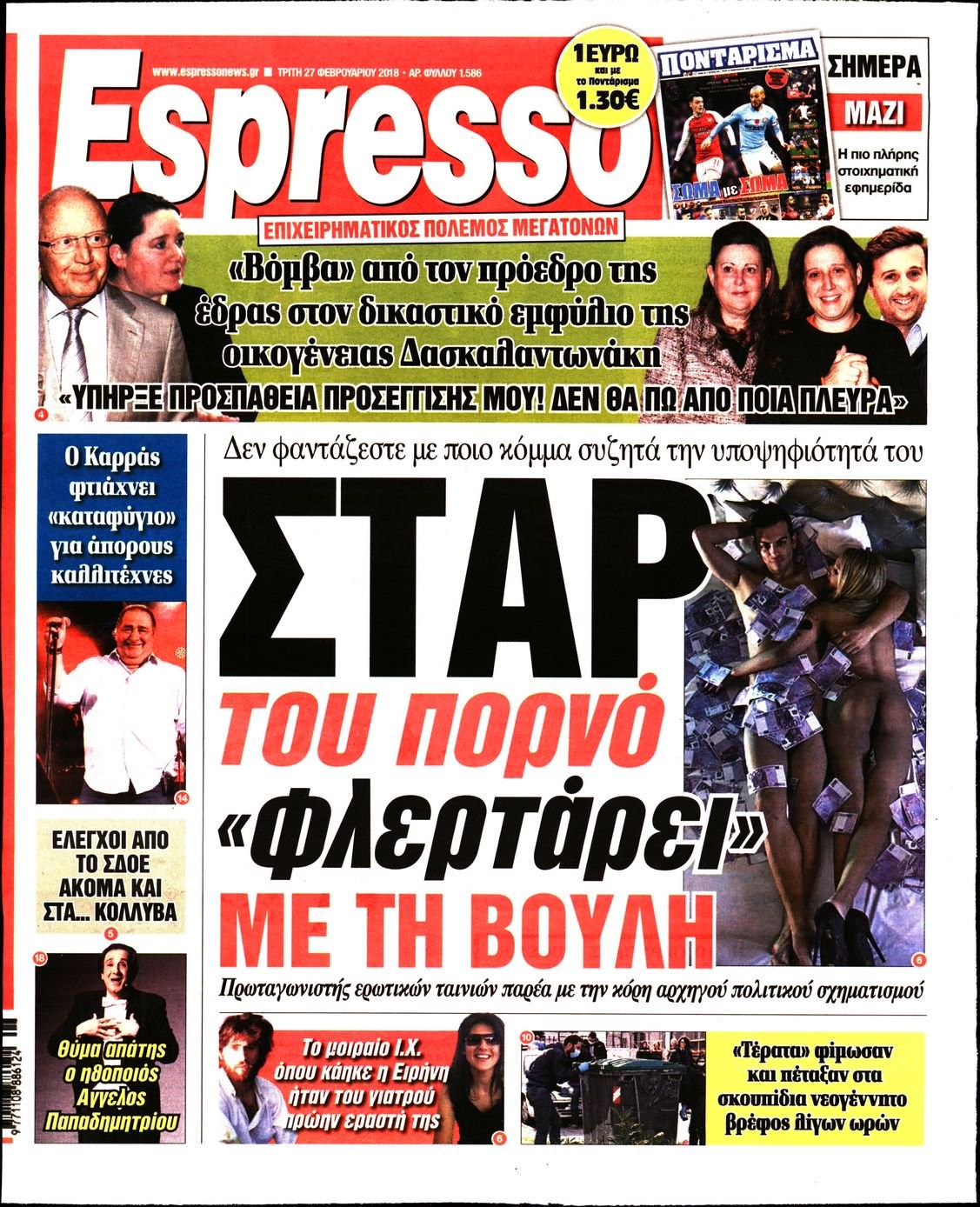 Οι πολιτικές εφημερίδες 27/2/2018 Κώστας Τεό 06:21, Τρίτη 27 Φεβρουαρίου 2018 Media Διαβάστε τα σημερινά πρωτοσέλιδα των πολιτικών εφημερίδων: ΠΟΛΙΤΙΚΕΣ ΕΦΗΜΕΡΙΔΕΣ ΠΡΩΤΟΣΕΛΙΔΑ Μοιράσου το: σχολίασε κι εσύ (0 σχόλια) Ακολουθήστε το enikos.gr στο Google News και μάθετε πρώτοι όλες τις ειδήσεις Δείτε όλες τις τελευταίες ειδήσεις από την Ελλάδα και τον Κόσμο στο enikos.gr Ειδήσεις Ροή Ειδήσεων 2 ώρες πριν Μπλόκα: Οι αγρότες σηκώνουν τις μπάρες σε διόδια για τους εκδρομείς των Χριστουγέννων και μοιράζουν προϊόντα – Βίντεο 2 ώρες πριν Τσιάρας προς αγρότες: Τα μπλόκα και τα πείσματα δεν ωφελούν – Οι λύσεις περνούν μέσα από τον διάλογο 3 ώρες πριν Αρχεία Έπσταϊν: Οι συγκλονιστικές φωτογραφίες – Ο Μάικλ Τζάκσον, ο Μικ Τζάγκερ και ο Κέβιν Σπέισι ανάμεσα στους διάσημους που απεικονίζονται 54 λεπτά πριν Μαθητές διακινούσαν κοκαΐνη και χασίς σε σχολείο της Αττικής – 12 συλλήψεις 60 λεπτά πριν Βέλγιο: Άγνωστοι έριξαν κόκκινη μπογιά στο προξενείο της Πολωνίας στις Βρυξέλλες 5 ώρες πριν Μία νέα «χρυσή» περίοδος αρχίζει για 3 ζώδια από σήμερα – «Μία αναπάντεχη ευκαιρία οδηγεί στην επιτυχία» 3 ώρες πριν Διαιτολόγος αποκαλύπτει 9 πρωινές συνήθειες που «λιώνουν» το κοιλιακό λίπος – «Υποστηρίζουν την υγιεινή απώλεια βάρους» 4 ώρες πριν Οι 7 φράσεις που δεν λένε ποτέ οι συναισθηματικά έξυπνοι άνθρωποι κατά τη διάρκεια ενός καβγά 6 ώρες πριν Enerwave: Το νέο «ρεύμα» στη λιανική ενέργειας που αλλάζει την εμπειρία του καταναλωτή 3 λεπτά πριν Μαρινάκης στον Realfm 97,8: Η κυβέρνηση σέβεται κάθε λογική διεκδίκηση των αγροτών, αλλά και το αίτημα των πολιτών να μην ταλαιπωρούνται 9 λεπτά πριν O Πάντερ MVP της 17ης αγωνιστικής στην Euroleague 18 λεπτά πριν Πέθανε η τραγουδίστρια Κλαούντια Ντελμέρ 25 λεπτά πριν Μία ανεκμετάλλευτη πηγή θα μπορούσε να προσφέρει ανεξάντλητη ενέργεια – Οι επιστήμονες ίσως γνωρίζουν πώς να την ξεκλειδώσουν 34 λεπτά πριν Θεσσαλονίκη: Ανήλικος που είχε εξαφανιστεί βρέθηκε στο σπίτι Τούρκων μετά από αστυνομική επιχείρηση ENIKOS NETWORK Η αποχή από την αναπαραγωγή παρατείνει τη ζωή στα ζώα, σύμφωνα με μελέτη – Τι ισχύει για τους ανθρώπους; Σημαντικές επαφές στις ΗΠΑ είχε ο υπουργός Υγείας Άδωνις Γεωργιάδης Ευλογιά αιγοπροβάτων: Παρατεταμένη επιζωοτία, αυστηρά μέτρα – Τι ισχύει για τον εμβολιασμό και την ανασύσταση του ζωικού κε... Τσιάρας προς αγρότες: Έχει ικανοποιηθεί το 74% των αιτημάτων – Τα μπλόκα και τα πείσματα δεν ωφελούν Χαρτογραφώντας το «σημείο χωρίς επιστροφή»: Για πρώτη φορά αποκαλύπτεται με λεπτομέρεια το ακανθώδες όριο της ατμόσφαιρας τ... Η Google καταργεί τη λειτουργία «dark web report» – Πώς θα μπορούν οι χρήστες να διαγράφουν τα δεδομένα τους περισσότερα 14:04 , Σάββατο 20 Δεκεμβρίου 2025 Η Realnews αυτής της Κυριακής (21/12/2025) Με τίτλο: «Ασπίδα προστασίας για την Ελλάδα» κυκλοφορεί, αυτήν την Κυριακή, η Realnews. Σημαντ... 12:53 , Σάββατο 20 Δεκεμβρίου 2025 Να μ’ αγαπάς: Το παρελθόν έρχεται στο φως – Καταιγιστικές εξελίξεις στα τελευταία επεισόδια του 2025 Ο Άγγελος αποκαλύπτεται, η Φωτεινή ανησυχεί για τον Λευτέρη και η Ζωή έρχεται αντιμέτωπη με το... 11:41 , Σάββατο 20 Δεκεμβρίου 2025 «Η αγάπη δεν χάνεται ποτέ»: Η μικρού μήκους ταινία κινουμένων σχεδίων που θέτει ερωτήματα για τη ζωή και τον θάνατο Ο θάνατος είναι ένα από τα πιο σκληρά θέματα που καλείται να διαχειριστεί κάποιος στη διάρκεια... 09:30 , Σάββατο 20 Δεκεμβρίου 2025 «Porto Leone: Στη γειτονιά με τα κόκκινα φανάρια» – Ο Χρόνης αποκαλύπτει στην Αλεξάνδρα το μυ