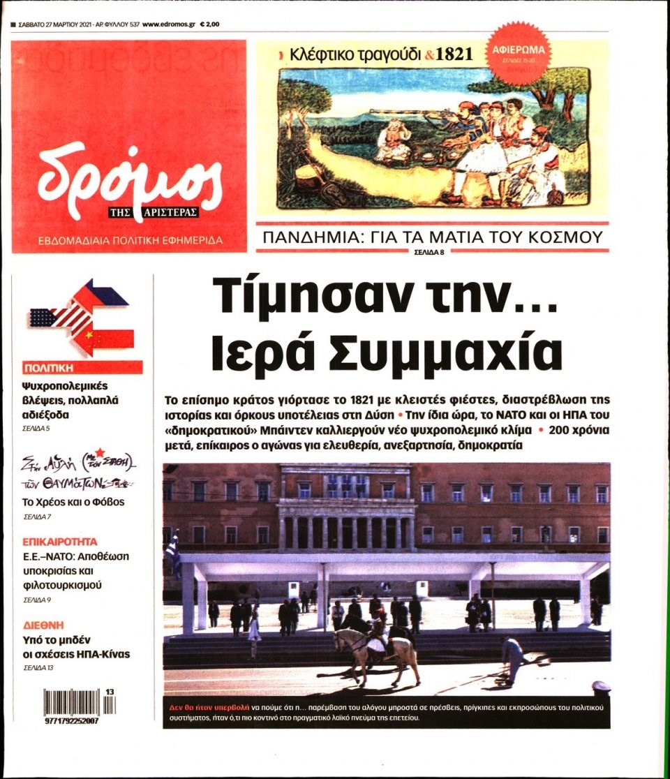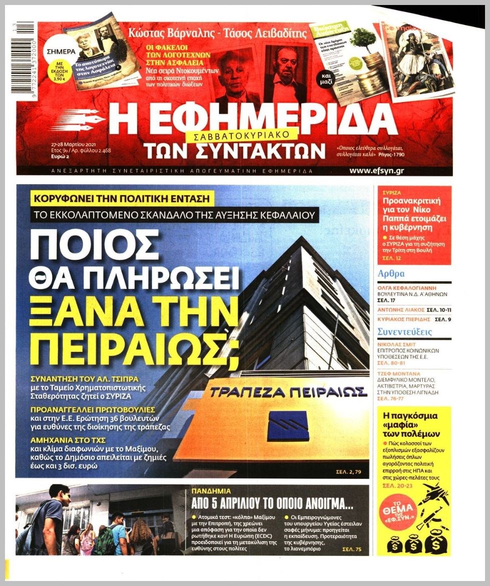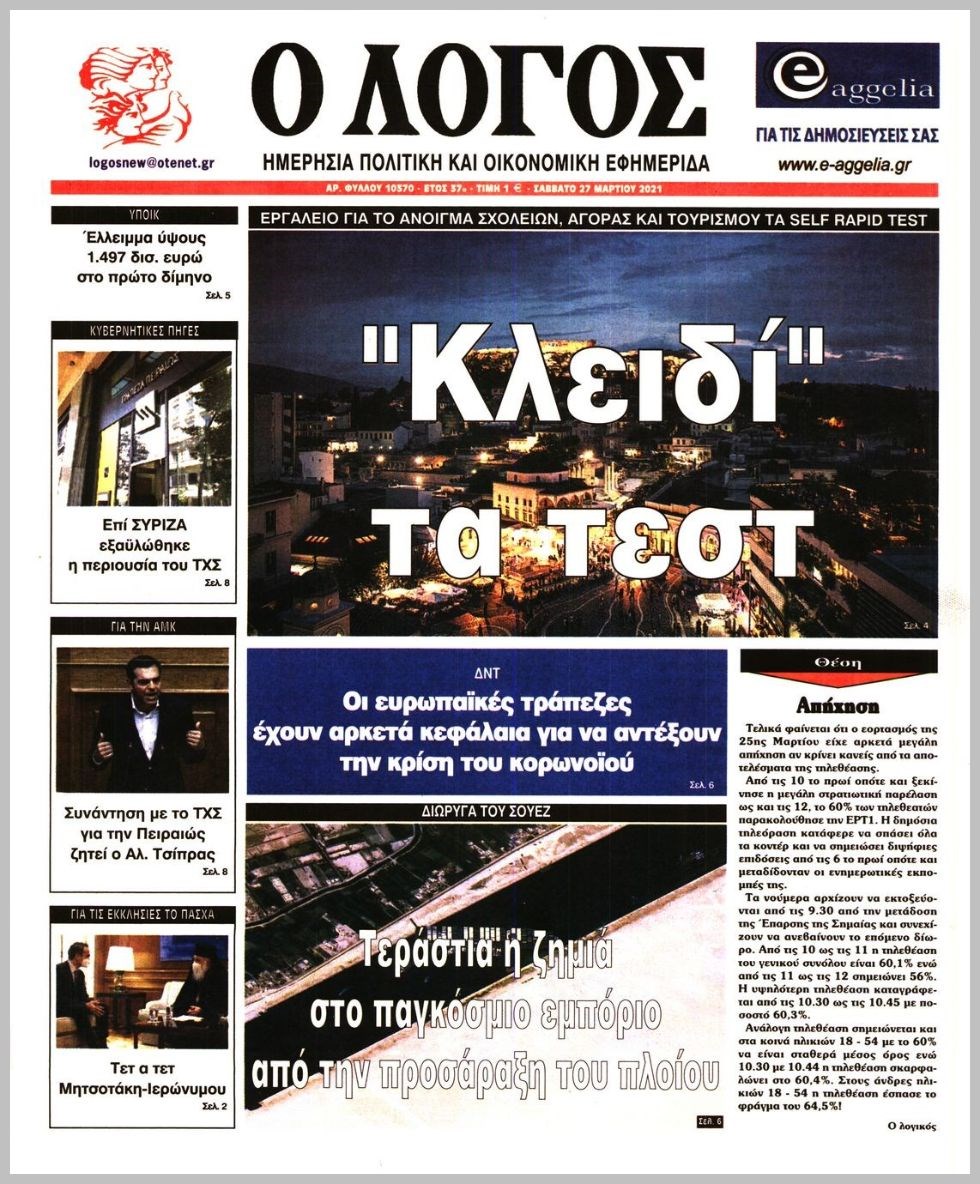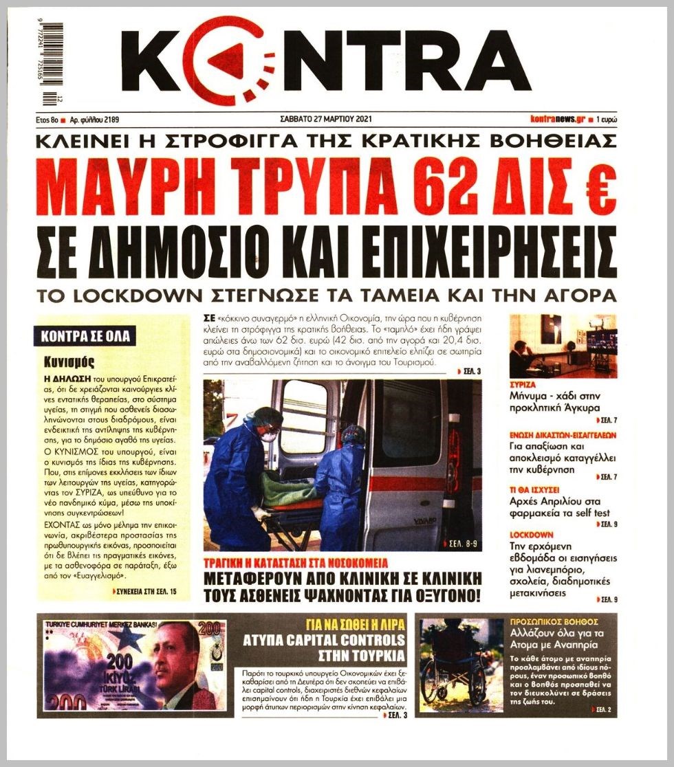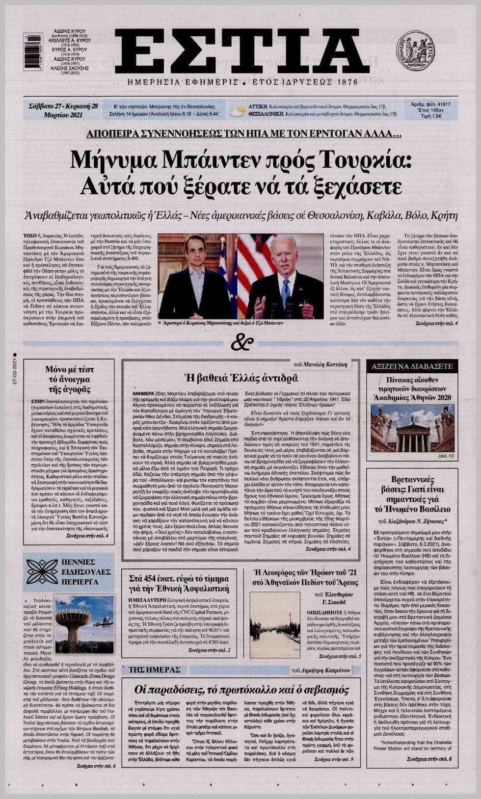 Οι πολιτικές εφημερίδες 27/3/2021 Διονύσης Νίκκας 07:13, Σάββατο 27 Μαρτίου 2021 Media Διαβάστε τα πρωτοσέλιδα των πολιτικών εφημερίδων… ΕΦΗΜΕΡΙΔΕΣ ΠΡΩΤΟΣΕΛΙΔΑ Μοιράσου το: σχολίασε κι εσύ (0 σχόλια) Ακολουθήστε το enikos.gr στο Google News και μάθετε πρώτοι όλες τις ειδήσεις Δείτε όλες τις τελευταίες ειδήσεις από την Ελλάδα και τον Κόσμο στο enikos.gr Ειδήσεις Ροή Ειδήσεων 4 ώρες πριν Υπόθεση Έπσταϊν: Το Υπουργείο Δικαιοσύνης δημοσιοποίησε μια σειρά από εξαιρετικά επεξεργασμένα αρχεία – «Λείπουν τα πιο σημαντικά έγγραφα», λένε οι Δημοκρατικοί 49 λεπτά πριν Γιορτές με μπλόκα για τους αγρότες: Ανοίγουν διόδια και μοιράζουν προϊόντα στους ταξιδιώτες 1 ώρα πριν Εξαφάνιση 33χρονου γιατρού στην Κρήτη: «Άναψα τα φώτα, τρόμαξε και άρχισε να τρέχει στα χωράφια» – Η τελευταία διαδρομή και η μαρτυρία «κλειδί» 3 ώρες πριν Ο «χάρτης» με τις αυξήσεις και τις φοροελαφρύνσεις του 2026 – Ποιοι και πόσα κερδίζουν 1 ώρα πριν Τα αρχεία του Έπσταϊν αποκαλύπτουν φωτογραφία του έκπτωτου πρίγκιπα Άντριου – Είναι ξαπλωμένος στην αγκαλιά 5 γυναικών 1 ώρα πριν Μία νέα «χρυσή» περίοδος αρχίζει για 3 ζώδια από σήμερα – «Μία αναπάντεχη ευκαιρία οδηγεί στην επιτυχία» 5 ώρες πριν Αυγά: Πόσα μπορείτε να τρώτε την ημέρα με ασφάλεια για μέγιστη πρόσληψη πρωτεΐνης 3 ώρες πριν Αρχαιολόγοι ανακάλυψαν σε χωράφι απεικόνιση 600 ετών ενός Αγίου – Τα στοιχεία που δείχνουν ότι μαρτύρησε 2 ώρες πριν Αγχώνεται για το χριστουγεννιάτικο δώρο που πήρε στην πλούσια σύντροφό του – «Φοβάμαι πως θα το βρει φθηνιάρικο, φοράει βραχιόλια Cartier» 7 λεπτά πριν Τα Labubu «μετακομίζουν» στο Χόλιγουντ: Η Sony Pictures ετοιμάζει live-action ταινία με τον σκηνοθέτη του «Wonka» 14 λεπτά πριν Νέες ταυτότητες: Μεγάλη αναμονή για ραντεβού στην Αττική – Τέλος τα ταξίδια εκτός Ελλάδος από τον Αύγουστο για όσους δεν έχουν αλλάξει 23 λεπτά πριν Οι 7 φράσεις που δεν λένε ποτέ οι συναισθηματικά έξυπνοι άνθρωποι κατά τη διάρκεια ενός καβγά 26 λεπτά πριν Τηλεθέαση (19/12): Ανατροπές και πρωτιές στην πρωινή ζώνη 34 λεπτά πριν Πώς η κλιματική αλλαγή επηρεάζει εγκύους και βρέφη – Οι επιπτώσεις των υψηλών θερμοκρασιών ENIKOS NETWORK Είστε μόνιμα απρόσεκτοι; 3 σημάδια που δείχνουν ότι μπορεί να είναι σύμπτωμα πάθησης Πόσα κιλά παίρνουμε πραγματικά τα Χριστούγεννα, σύμφωνα με την επιστήμη – Πώς να το αποτρέψουμε; e-ΕΦΚΑ και ΔΥΠΑ: Έρχονται νέες πληρωμές έως τις 24 Δεκεμβρίου – Ποιοι πάνε ταμείο Επίδομα παιδιού: Τι αλλάζει από το 2026 – Το όφελος από τις φορολογικές ελαφρύνσεις Χαρτογραφώντας το «σημείο χωρίς επιστροφή»: Για πρώτη φορά αποκαλύπτεται με λεπτομέρεια το ακανθώδες όριο της ατμόσφαιρας τ... Η Google καταργεί τη λειτουργία «dark web report» – Πώς θα μπορούν οι χρήστες να διαγράφουν τα δεδομένα τους περισσότερα 09:30 , Σάββατο 20 Δεκεμβρίου 2025 «Porto Leone: Στη γειτονιά με τα κόκκινα φανάρια» – Ο Χρόνης αποκαλύπτει στην Αλεξάνδρα το μυστικό για το παιδί της Λένας Η μεγάλη δραματική σειρά του Apha «Porto Leone: Στη γειτονιά με τα κόκκινα φανάρια» μας μεταφέ... 08:14 , Σάββατο 20 Δεκεμβρίου 2025 Τρομεροί γονείς: Η Μαρία Καβογιάννη εισβάλλει στο σπίτι της οικογένειας Στεφανίδη Όσα θα δούμε στο νέο διπλό επεισόδιο της σειράς «Τρομεροί γονείς», σήμερα Σάββατο 20 Δεκεμβρίο... 05:48 , Σάββατο 20 Δεκεμβρίου 2025 Οι οικονομικές εφημερίδες 20/12/2025 Διαβάστε τα πρωτοσέλιδα από τις οικονομικές εφημερίδες, σήμερα 20/12/2025. 05:43 , Σάββατο 20 Δεκεμβρίου 2025 Οι αθλητικές εφημερίδες 20/12/2025 Διαβάστε τα πρωτοσέλιδα από τις αθλητι