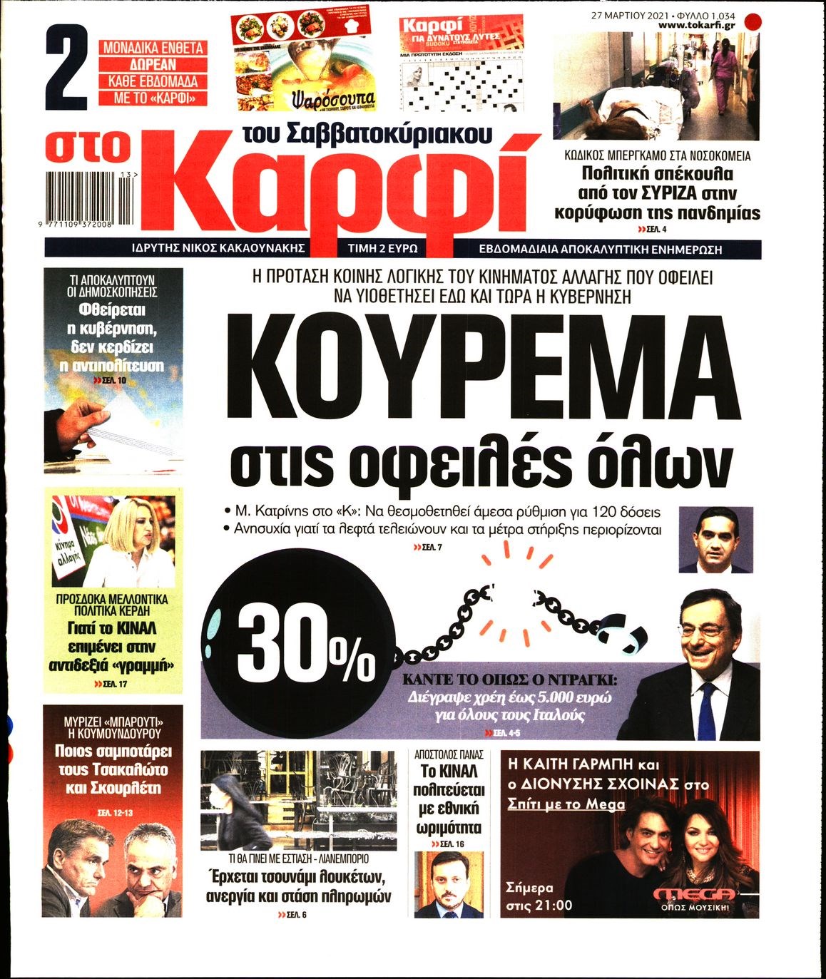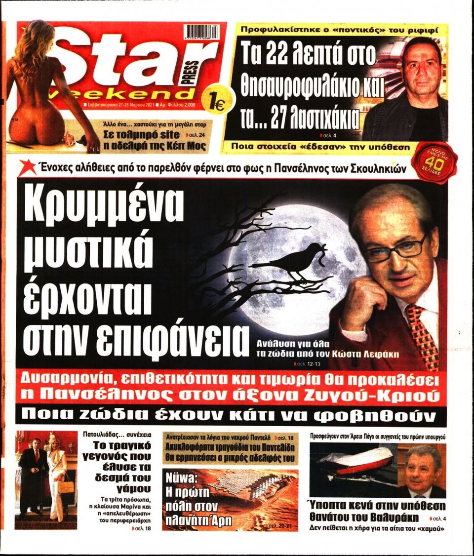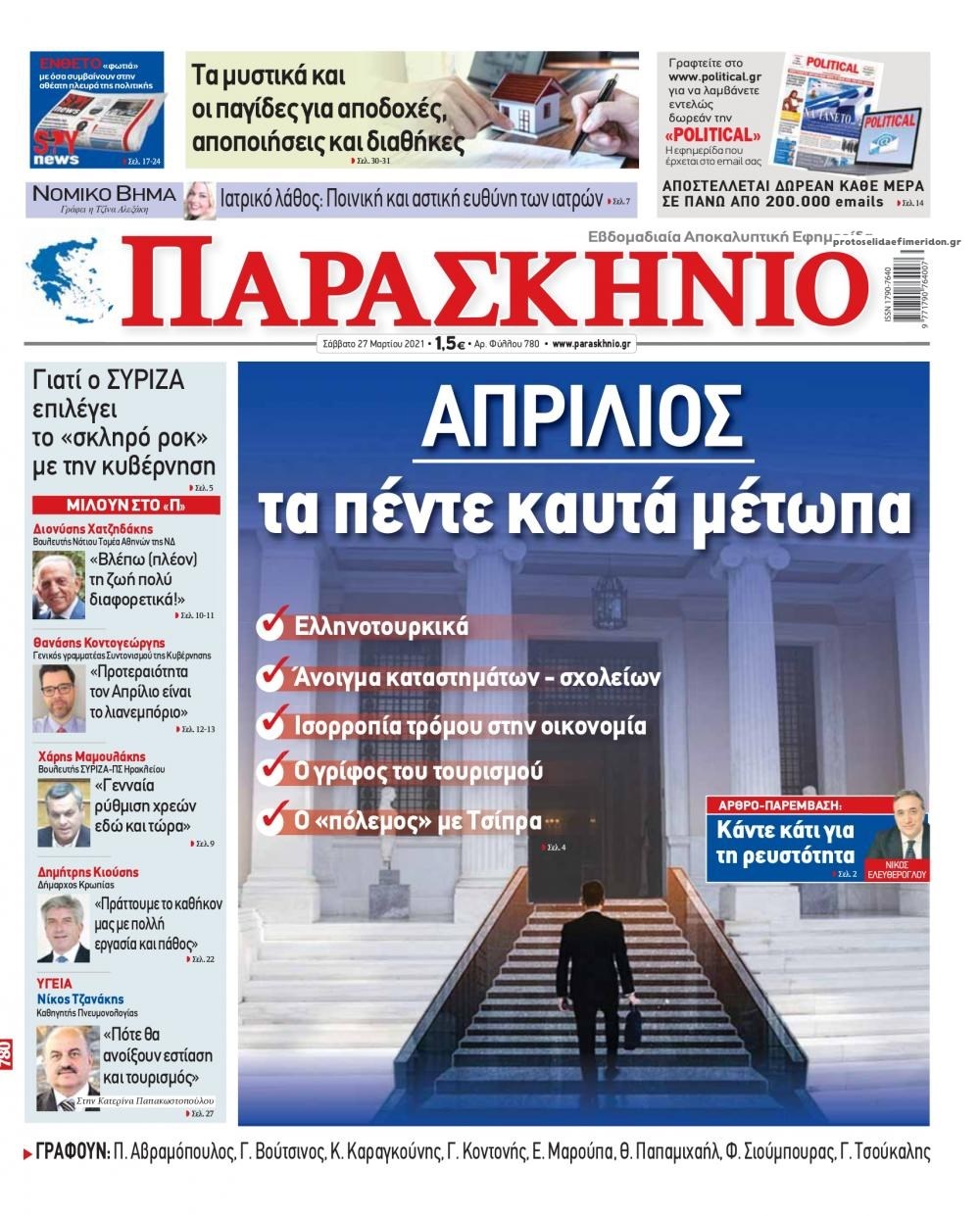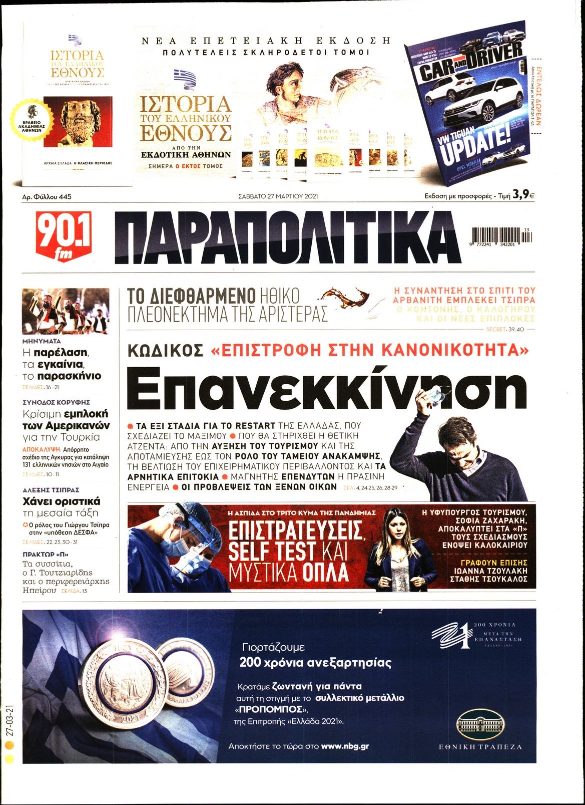 Οι πολιτικές εφημερίδες 27/3/2021 Διονύσης Νίκκας 07:13, Σάββατο 27 Μαρτίου 2021 Media Διαβάστε τα πρωτοσέλιδα των πολιτικών εφημερίδων… ΕΦΗΜΕΡΙΔΕΣ ΠΡΩΤΟΣΕΛΙΔΑ Μοιράσου το: σχολίασε κι εσύ (0 σχόλια) Ακολουθήστε το enikos.gr στο Google News και μάθετε πρώτοι όλες τις ειδήσεις Δείτε όλες τις τελευταίες ειδήσεις από την Ελλάδα και τον Κόσμο στο enikos.gr Ειδήσεις Ροή Ειδήσεων 4 ώρες πριν Υπόθεση Έπσταϊν: Το Υπουργείο Δικαιοσύνης δημοσιοποίησε μια σειρά από εξαιρετικά επεξεργασμένα αρχεία – «Λείπουν τα πιο σημαντικά έγγραφα», λένε οι Δημοκρατικοί 49 λεπτά πριν Γιορτές με μπλόκα για τους αγρότες: Ανοίγουν διόδια και μοιράζουν προϊόντα στους ταξιδιώτες 1 ώρα πριν Εξαφάνιση 33χρονου γιατρού στην Κρήτη: «Άναψα τα φώτα, τρόμαξε και άρχισε να τρέχει στα χωράφια» – Η τελευταία διαδρομή και η μαρτυρία «κλειδί» 3 ώρες πριν Ο «χάρτης» με τις αυξήσεις και τις φοροελαφρύνσεις του 2026 – Ποιοι και πόσα κερδίζουν 1 ώρα πριν Τα αρχεία του Έπσταϊν αποκαλύπτουν φωτογραφία του έκπτωτου πρίγκιπα Άντριου – Είναι ξαπλωμένος στην αγκαλιά 5 γυναικών 1 ώρα πριν Μία νέα «χρυσή» περίοδος αρχίζει για 3 ζώδια από σήμερα – «Μία αναπάντεχη ευκαιρία οδηγεί στην επιτυχία» 5 ώρες πριν Αυγά: Πόσα μπορείτε να τρώτε την ημέρα με ασφάλεια για μέγιστη πρόσληψη πρωτεΐνης 3 ώρες πριν Αρχαιολόγοι ανακάλυψαν σε χωράφι απεικόνιση 600 ετών ενός Αγίου – Τα στοιχεία που δείχνουν ότι μαρτύρησε 2 ώρες πριν Αγχώνεται για το χριστουγεννιάτικο δώρο που πήρε στην πλούσια σύντροφό του – «Φοβάμαι πως θα το βρει φθηνιάρικο, φοράει βραχιόλια Cartier» 7 λεπτά πριν Τα Labubu «μετακομίζουν» στο Χόλιγουντ: Η Sony Pictures ετοιμάζει live-action ταινία με τον σκηνοθέτη του «Wonka» 14 λεπτά πριν Νέες ταυτότητες: Μεγάλη αναμονή για ραντεβού στην Αττική – Τέλος τα ταξίδια εκτός Ελλάδος από τον Αύγουστο για όσους δεν έχουν αλλάξει 23 λεπτά πριν Οι 7 φράσεις που δεν λένε ποτέ οι συναισθηματικά έξυπνοι άνθρωποι κατά τη διάρκεια ενός καβγά 26 λεπτά πριν Τηλεθέαση (19/12): Ανατροπές και πρωτιές στην πρωινή ζώνη 34 λεπτά πριν Πώς η κλιματική αλλαγή επηρεάζει εγκύους και βρέφη – Οι επιπτώσεις των υψηλών θερμοκρασιών ENIKOS NETWORK Είστε μόνιμα απρόσεκτοι; 3 σημάδια που δείχνουν ότι μπορεί να είναι σύμπτωμα πάθησης Πόσα κιλά παίρνουμε πραγματικά τα Χριστούγεννα, σύμφωνα με την επιστήμη – Πώς να το αποτρέψουμε; e-ΕΦΚΑ και ΔΥΠΑ: Έρχονται νέες πληρωμές έως τις 24 Δεκεμβρίου – Ποιοι πάνε ταμείο Επίδομα παιδιού: Τι αλλάζει από το 2026 – Το όφελος από τις φορολογικές ελαφρύνσεις Χαρτογραφώντας το «σημείο χωρίς επιστροφή»: Για πρώτη φορά αποκαλύπτεται με λεπτομέρεια το ακανθώδες όριο της ατμόσφαιρας τ... Η Google καταργεί τη λειτουργία «dark web report» – Πώς θα μπορούν οι χρήστες να διαγράφουν τα δεδομένα τους περισσότερα 09:30 , Σάββατο 20 Δεκεμβρίου 2025 «Porto Leone: Στη γειτονιά με τα κόκκινα φανάρια» – Ο Χρόνης αποκαλύπτει στην Αλεξάνδρα το μυστικό για το παιδί της Λένας Η μεγάλη δραματική σειρά του Apha «Porto Leone: Στη γειτονιά με τα κόκκινα φανάρια» μας μεταφέ... 08:14 , Σάββατο 20 Δεκεμβρίου 2025 Τρομεροί γονείς: Η Μαρία Καβογιάννη εισβάλλει στο σπίτι της οικογένειας Στεφανίδη Όσα θα δούμε στο νέο διπλό επεισόδιο της σειράς «Τρομεροί γονείς», σήμερα Σάββατο 20 Δεκεμβρίο... 05:48 , Σάββατο 20 Δεκεμβρίου 2025 Οι οικονομικές εφημερίδες 20/12/2025 Διαβάστε τα πρωτοσέλιδα από τις οικονομικές εφημερίδες, σήμερα 20/12/2025. 05:43 , Σάββατο 20 Δεκεμβρίου 2025 Οι αθλητικές εφημερίδες 20/12/2025 Διαβάστε τα πρωτοσέλιδα από τις αθλητι