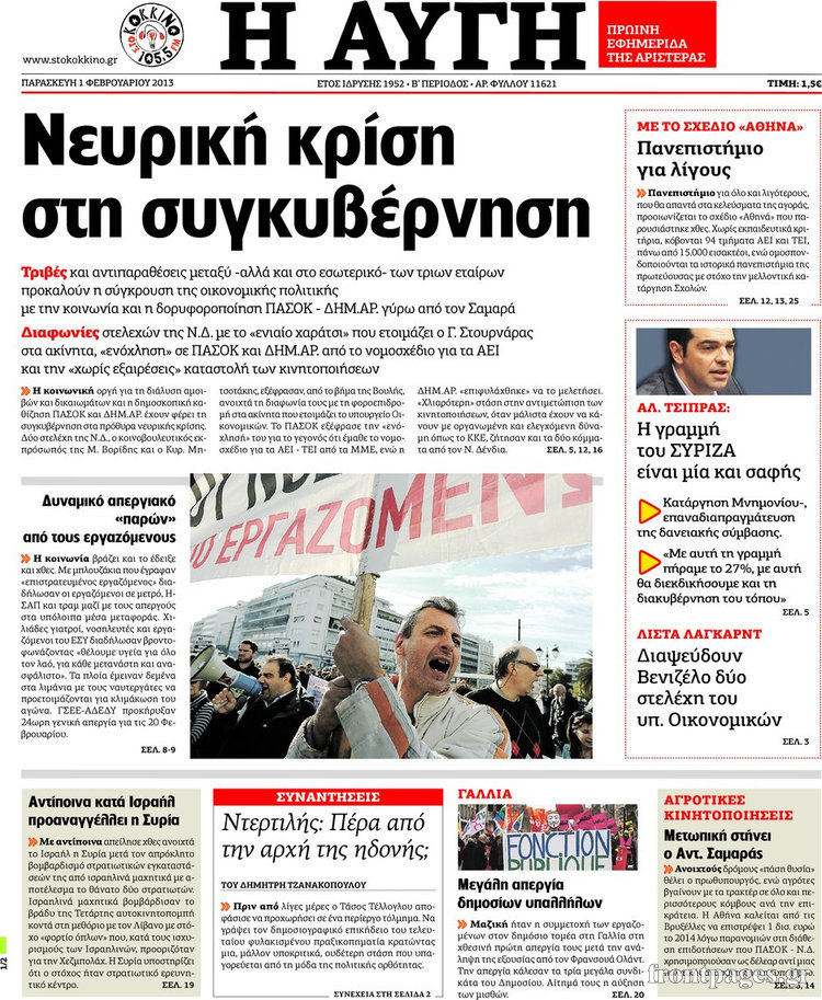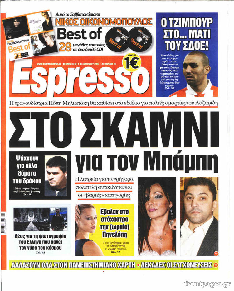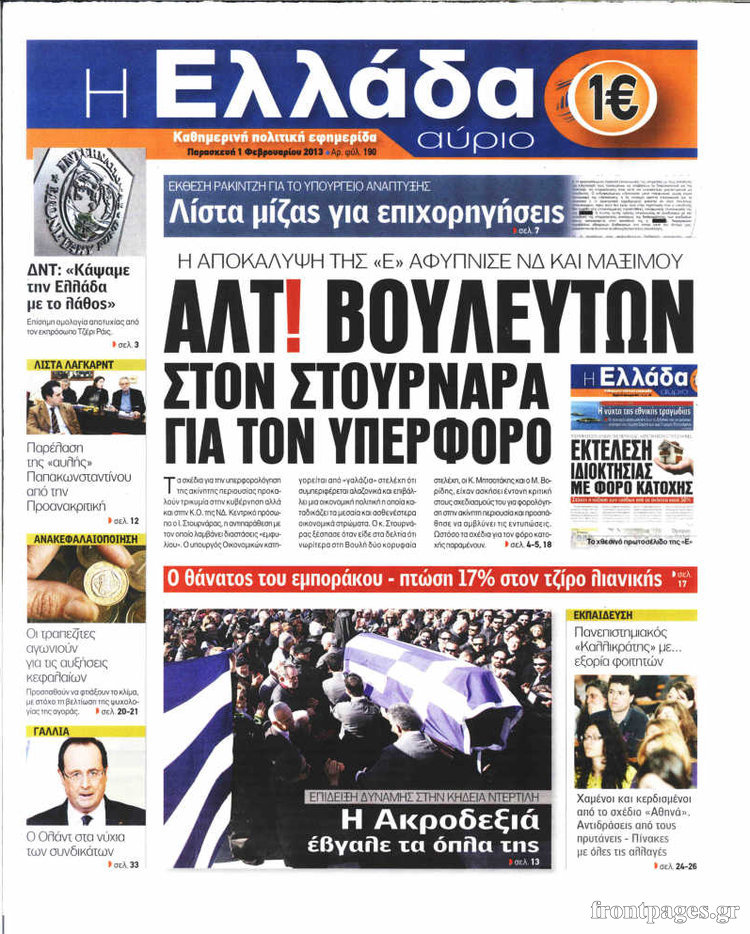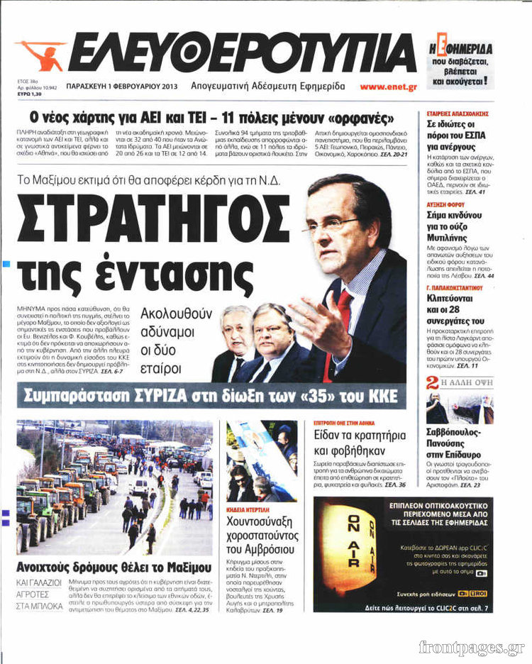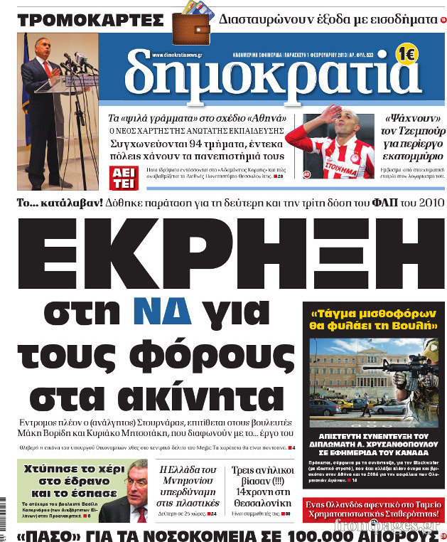 Οι πολιτικές εφημερίδες Enikos Newsroom 09:17, Παρασκευή 01 Φεβρουαρίου 2013 Media Οι πολιτικές εφημερίδες ΕΦΗΜΕΡΙΔΕΣ ΟΙ ΠΟΛΙΤΙΚΕΣ ΕΦΗΜΕΡΙΔΕΣ ΠΡΩΤΟΣΕΛΙΔΑ Μοιράσου το: σχολίασε κι εσύ (0 σχόλια) Ακολουθήστε το enikos.gr στο Google News και μάθετε πρώτοι όλες τις ειδήσεις Δείτε όλες τις τελευταίες ειδήσεις από την Ελλάδα και τον Κόσμο στο enikos.gr Ειδήσεις Ροή Ειδήσεων 4 ώρες πριν Υπόθεση Έπσταϊν: Το Υπουργείο Δικαιοσύνης δημοσιοποίησε μια σειρά από εξαιρετικά επεξεργασμένα αρχεία – «Λείπουν τα πιο σημαντικά έγγραφα», λένε οι Δημοκρατικοί 1 ώρα πριν Γιορτές με μπλόκα για τους αγρότες: Ανοίγουν διόδια και μοιράζουν προϊόντα στους ταξιδιώτες 2 ώρες πριν Εξαφάνιση 33χρονου γιατρού στην Κρήτη: «Άναψα τα φώτα, τρόμαξε και άρχισε να τρέχει στα χωράφια» – Η τελευταία διαδρομή και η μαρτυρία «κλειδί» 3 ώρες πριν Ο «χάρτης» με τις αυξήσεις και τις φοροελαφρύνσεις του 2026 – Ποιοι και πόσα κερδίζουν 1 ώρα πριν Τα αρχεία του Έπσταϊν αποκαλύπτουν φωτογραφία του έκπτωτου πρίγκιπα Άντριου – Είναι ξαπλωμένος στην αγκαλιά 5 γυναικών 1 ώρα πριν Μία νέα «χρυσή» περίοδος αρχίζει για 3 ζώδια από σήμερα – «Μία αναπάντεχη ευκαιρία οδηγεί στην επιτυχία» 6 ώρες πριν Αυγά: Πόσα μπορείτε να τρώτε την ημέρα με ασφάλεια για μέγιστη πρόσληψη πρωτεΐνης 4 ώρες πριν Αρχαιολόγοι ανακάλυψαν σε χωράφι απεικόνιση 600 ετών ενός Αγίου – Τα στοιχεία που δείχνουν ότι μαρτύρησε 3 ώρες πριν Αγχώνεται για το χριστουγεννιάτικο δώρο που πήρε στην πλούσια σύντροφό του – «Φοβάμαι πως θα το βρει φθηνιάρικο, φοράει βραχιόλια Cartier» 4 λεπτά πριν Στέφανος Παπαδόπουλος: Η συνέντευξη μετά τη μήνυση στον Γιώργο Μαζωνάκη – «Δεν θέλω να τα βρούμε εξωδικαστικά» 11 λεπτά πριν Τραγωδία στην άσφαλτο στα Χανιά: Νεκρός 37χρονος οδηγός ΙΧ – Τον βρήκαν ώρες μετά το τροχαίο 19 λεπτά πριν Τα Labubu «μετακομίζουν» στο Χόλιγουντ: Η Sony Pictures ετοιμάζει live-action ταινία με τον σκηνοθέτη του «Wonka» 27 λεπτά πριν Νέες ταυτότητες: Μεγάλη αναμονή για ραντεβού στην Αττική – Τέλος τα ταξίδια εκτός Ελλάδος από τον Αύγουστο για όσους δεν έχουν αλλάξει 36 λεπτά πριν Οι 7 φράσεις που δεν λένε ποτέ οι συναισθηματικά έξυπνοι άνθρωποι κατά τη διάρκεια ενός καβγά ENIKOS NETWORK Είστε μόνιμα απρόσεκτοι; 3 σημάδια που δείχνουν ότι μπορεί να είναι σύμπτωμα πάθησης Πόσα κιλά παίρνουμε πραγματικά τα Χριστούγεννα, σύμφωνα με την επιστήμη – Πώς να το αποτρέψουμε; e-ΕΦΚΑ και ΔΥΠΑ: Έρχονται νέες πληρωμές έως τις 24 Δεκεμβρίου – Ποιοι πάνε ταμείο Επίδομα παιδιού: Τι αλλάζει από το 2026 – Το όφελος από τις φορολογικές ελαφρύνσεις Χαρτογραφώντας το «σημείο χωρίς επιστροφή»: Για πρώτη φορά αποκαλύπτεται με λεπτομέρεια το ακανθώδες όριο της ατμόσφαιρας τ... Η Google καταργεί τη λειτουργία «dark web report» – Πώς θα μπορούν οι χρήστες να διαγράφουν τα δεδομένα τους περισσότερα 09:30 , Σάββατο 20 Δεκεμβρίου 2025 «Porto Leone: Στη γειτονιά με τα κόκκινα φανάρια» – Ο Χρόνης αποκαλύπτει στην Αλεξάνδρα το μυστικό για το παιδί της Λένας Η μεγάλη δραματική σειρά του Apha «Porto Leone: Στη γειτονιά με τα κόκκινα φανάρια» μας μεταφέ... 08:14 , Σάββατο 20 Δεκεμβρίου 2025 Τρομεροί γονείς: Η Μαρία Καβογιάννη εισβάλλει στο σπίτι της οικογένειας Στεφανίδη Όσα θα δούμε στο νέο διπλό επεισόδιο της σειράς «Τρομεροί γονείς», σήμερα Σάββατο 20 Δεκεμβρίο... 05:48 , Σάββατο 20 Δεκεμβρίου 2025 Οι οικονομικές εφημερίδες 20/12/2025 Διαβάστε τα πρωτοσέλιδα από τις οικονομικές εφημερίδες, σήμερα 20/12/2025. 05:43 , Σάββατο 20 Δεκεμβρίου 2025 Οι αθλητικές εφημερίδες