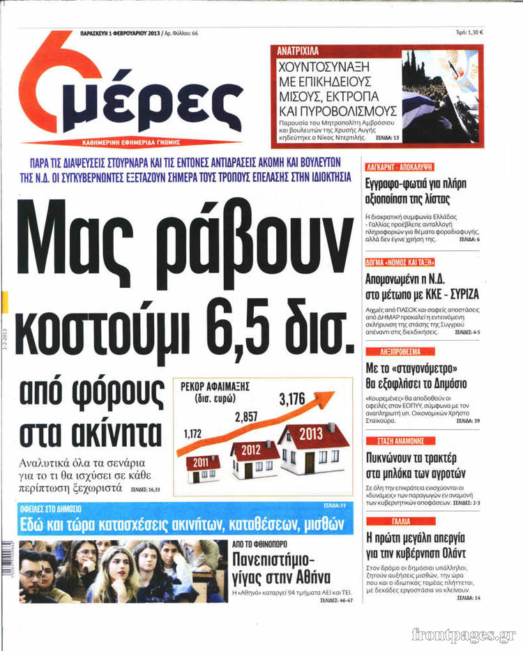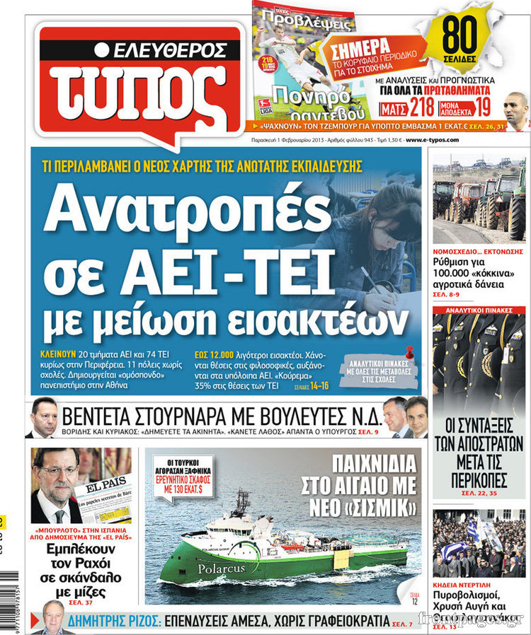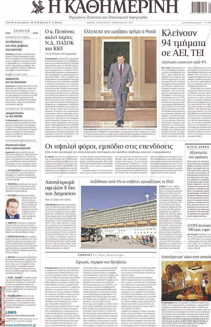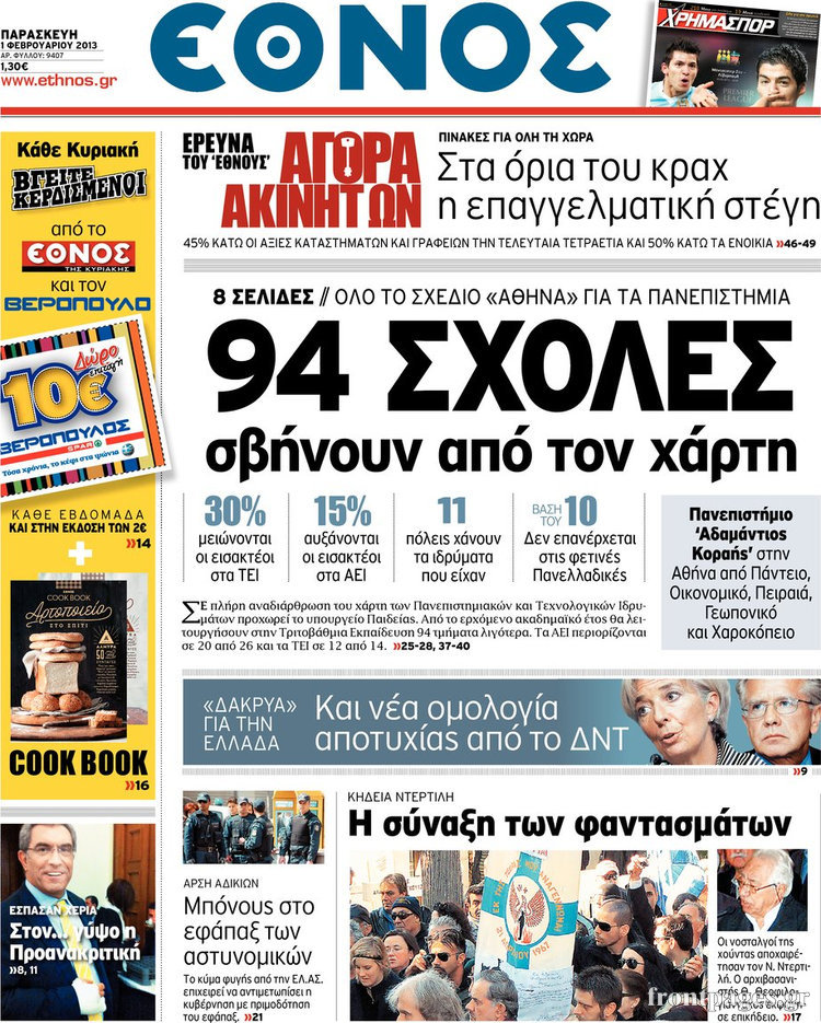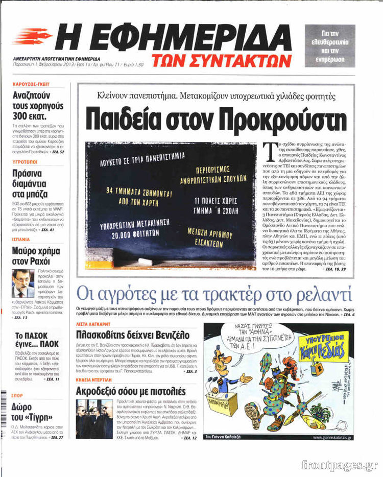 Οι πολιτικές εφημερίδες Enikos Newsroom 09:17, Παρασκευή 01 Φεβρουαρίου 2013 Media Οι πολιτικές εφημερίδες ΕΦΗΜΕΡΙΔΕΣ ΟΙ ΠΟΛΙΤΙΚΕΣ ΕΦΗΜΕΡΙΔΕΣ ΠΡΩΤΟΣΕΛΙΔΑ Μοιράσου το: σχολίασε κι εσύ (0 σχόλια) Ακολουθήστε το enikos.gr στο Google News και μάθετε πρώτοι όλες τις ειδήσεις Δείτε όλες τις τελευταίες ειδήσεις από την Ελλάδα και τον Κόσμο στο enikos.gr Ειδήσεις Ροή Ειδήσεων 4 ώρες πριν Υπόθεση Έπσταϊν: Το Υπουργείο Δικαιοσύνης δημοσιοποίησε μια σειρά από εξαιρετικά επεξεργασμένα αρχεία – «Λείπουν τα πιο σημαντικά έγγραφα», λένε οι Δημοκρατικοί 1 ώρα πριν Γιορτές με μπλόκα για τους αγρότες: Ανοίγουν διόδια και μοιράζουν προϊόντα στους ταξιδιώτες 2 ώρες πριν Εξαφάνιση 33χρονου γιατρού στην Κρήτη: «Άναψα τα φώτα, τρόμαξε και άρχισε να τρέχει στα χωράφια» – Η τελευταία διαδρομή και η μαρτυρία «κλειδί» 3 ώρες πριν Ο «χάρτης» με τις αυξήσεις και τις φοροελαφρύνσεις του 2026 – Ποιοι και πόσα κερδίζουν 1 ώρα πριν Τα αρχεία του Έπσταϊν αποκαλύπτουν φωτογραφία του έκπτωτου πρίγκιπα Άντριου – Είναι ξαπλωμένος στην αγκαλιά 5 γυναικών 1 ώρα πριν Μία νέα «χρυσή» περίοδος αρχίζει για 3 ζώδια από σήμερα – «Μία αναπάντεχη ευκαιρία οδηγεί στην επιτυχία» 6 ώρες πριν Αυγά: Πόσα μπορείτε να τρώτε την ημέρα με ασφάλεια για μέγιστη πρόσληψη πρωτεΐνης 4 ώρες πριν Αρχαιολόγοι ανακάλυψαν σε χωράφι απεικόνιση 600 ετών ενός Αγίου – Τα στοιχεία που δείχνουν ότι μαρτύρησε 3 ώρες πριν Αγχώνεται για το χριστουγεννιάτικο δώρο που πήρε στην πλούσια σύντροφό του – «Φοβάμαι πως θα το βρει φθηνιάρικο, φοράει βραχιόλια Cartier» 4 λεπτά πριν Στέφανος Παπαδόπουλος: Η συνέντευξη μετά τη μήνυση στον Γιώργο Μαζωνάκη – «Δεν θέλω να τα βρούμε εξωδικαστικά» 11 λεπτά πριν Τραγωδία στην άσφαλτο στα Χανιά: Νεκρός 37χρονος οδηγός ΙΧ – Τον βρήκαν ώρες μετά το τροχαίο 19 λεπτά πριν Τα Labubu «μετακομίζουν» στο Χόλιγουντ: Η Sony Pictures ετοιμάζει live-action ταινία με τον σκηνοθέτη του «Wonka» 27 λεπτά πριν Νέες ταυτότητες: Μεγάλη αναμονή για ραντεβού στην Αττική – Τέλος τα ταξίδια εκτός Ελλάδος από τον Αύγουστο για όσους δεν έχουν αλλάξει 36 λεπτά πριν Οι 7 φράσεις που δεν λένε ποτέ οι συναισθηματικά έξυπνοι άνθρωποι κατά τη διάρκεια ενός καβγά ENIKOS NETWORK Είστε μόνιμα απρόσεκτοι; 3 σημάδια που δείχνουν ότι μπορεί να είναι σύμπτωμα πάθησης Πόσα κιλά παίρνουμε πραγματικά τα Χριστούγεννα, σύμφωνα με την επιστήμη – Πώς να το αποτρέψουμε; e-ΕΦΚΑ και ΔΥΠΑ: Έρχονται νέες πληρωμές έως τις 24 Δεκεμβρίου – Ποιοι πάνε ταμείο Επίδομα παιδιού: Τι αλλάζει από το 2026 – Το όφελος από τις φορολογικές ελαφρύνσεις Χαρτογραφώντας το «σημείο χωρίς επιστροφή»: Για πρώτη φορά αποκαλύπτεται με λεπτομέρεια το ακανθώδες όριο της ατμόσφαιρας τ... Η Google καταργεί τη λειτουργία «dark web report» – Πώς θα μπορούν οι χρήστες να διαγράφουν τα δεδομένα τους περισσότερα 09:30 , Σάββατο 20 Δεκεμβρίου 2025 «Porto Leone: Στη γειτονιά με τα κόκκινα φανάρια» – Ο Χρόνης αποκαλύπτει στην Αλεξάνδρα το μυστικό για το παιδί της Λένας Η μεγάλη δραματική σειρά του Apha «Porto Leone: Στη γειτονιά με τα κόκκινα φανάρια» μας μεταφέ... 08:14 , Σάββατο 20 Δεκεμβρίου 2025 Τρομεροί γονείς: Η Μαρία Καβογιάννη εισβάλλει στο σπίτι της οικογένειας Στεφανίδη Όσα θα δούμε στο νέο διπλό επεισόδιο της σειράς «Τρομεροί γονείς», σήμερα Σάββατο 20 Δεκεμβρίο... 05:48 , Σάββατο 20 Δεκεμβρίου 2025 Οι οικονομικές εφημερίδες 20/12/2025 Διαβάστε τα πρωτοσέλιδα από τις οικονομικές εφημερίδες, σήμερα 20/12/2025. 05:43 , Σάββατο 20 Δεκεμβρίου 2025 Οι αθλητικές εφημερίδες