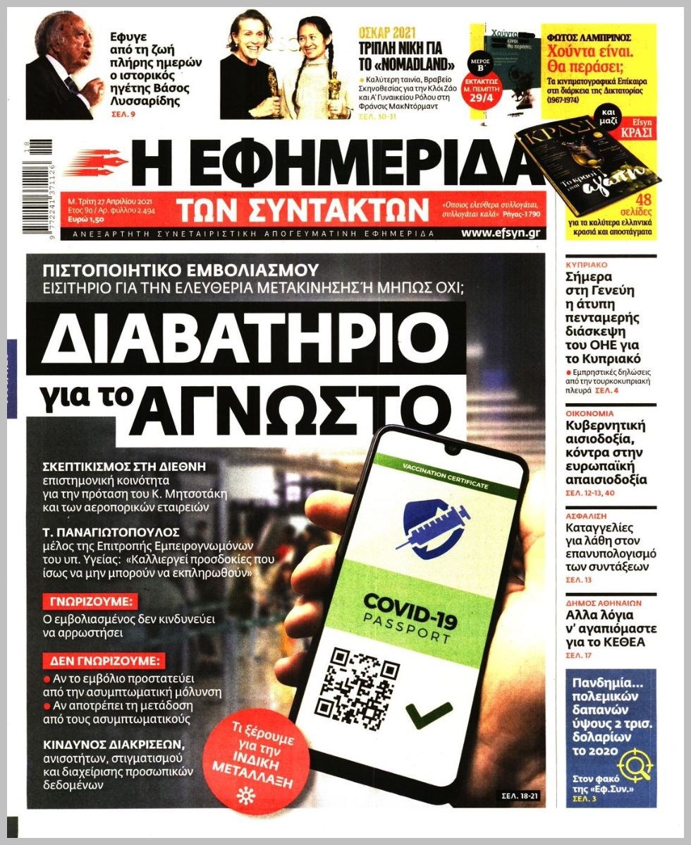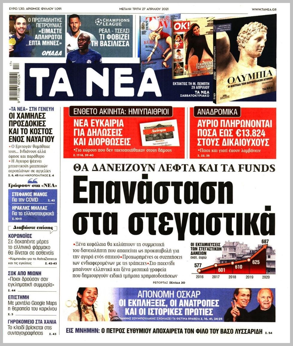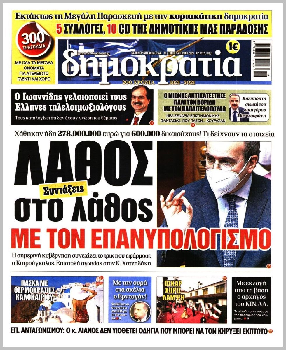 Οι πολιτικές εφημερίδες 27/4/2021 Διονύσης Νίκκας 06:12, Τρίτη 27 Απριλίου 2021 Media Διαβάστε τα πρωτοσέλιδα των πολιτικών εφημερίδων… ΕΦΗΜΕΡΙΔΕΣ ΠΡΩΤΟΣΕΛΙΔΑ Μοιράσου το: σχολίασε κι εσύ (0 σχόλια) Ακολουθήστε το enikos.gr στο Google News και μάθετε πρώτοι όλες τις ειδήσεις Δείτε όλες τις τελευταίες ειδήσεις από την Ελλάδα και τον Κόσμο στο enikos.gr Ειδήσεις Ροή Ειδήσεων 2 ώρες πριν Γιορτές με μπλόκα για τους αγρότες: Ανοίγουν διόδια και μοιράζουν προϊόντα στους ταξιδιώτες 8 λεπτά πριν Τσιάρας για αγρότες: Ικανοποιείται το αίτημα για αφορολόγητο πετρέλαιο στη μάνικα, πρόθεσή μας να μειωθεί ακόμη περισσότερο η τιμή στο ρεύμα 23 λεπτά πριν Αρχεία Έπσταϊν: Οι συγκλονιστικές φωτογραφίες – Ο Μάικλ Τζάκσον, ο Μικ Τζάγκερ και ο Κέβιν Σπέισι ανάμεσα στους διάσημους που απεικονίζονται 2 ώρες πριν Νέες ταυτότητες: Μεγάλη αναμονή για ραντεβού στην Αττική – Τέλος τα ταξίδια εκτός Ελλάδος από τον Αύγουστο για όσους δεν έχουν αλλάξει 54 λεπτά πριν Ινδία: Επτά ελέφαντες σκοτώθηκαν κατά τη σύγκρουση επιβατικού τρένου με κοπάδι 3 ώρες πριν Μία νέα «χρυσή» περίοδος αρχίζει για 3 ζώδια από σήμερα – «Μία αναπάντεχη ευκαιρία οδηγεί στην επιτυχία» 5 ώρες πριν Αρχαιολόγοι ανακάλυψαν σε χωράφι απεικόνιση 600 ετών ενός Αγίου – Τα στοιχεία που δείχνουν ότι μαρτύρησε 4 ώρες πριν Αγχώνεται για το χριστουγεννιάτικο δώρο που πήρε στην πλούσια σύντροφό του – «Φοβάμαι πως θα το βρει φθηνιάρικο, φοράει βραχιόλια Cartier» 52 λεπτά πριν Διαιτολόγος αποκαλύπτει 9 πρωινές συνήθειες που «λιώνουν» το κοιλιακό λίπος – «Υποστηρίζουν την υγιεινή απώλεια βάρους» 8 λεπτά πριν Τσιάρας για αγρότες: Ικανοποιείται το αίτημα για αφορολόγητο πετρέλαιο στη μάνικα, πρόθεσή μας να μειωθεί ακόμη περισσότερο η τιμή στο ρεύμα 15 λεπτά πριν Η Ζιζέλ Μπούντχεν παντρεύτηκε τον δάσκαλο ζίου-ζίτσου, Χοακίμ Βαλέντε 23 λεπτά πριν Αρχεία Έπσταϊν: Οι συγκλονιστικές φωτογραφίες – Ο Μάικλ Τζάκσον, ο Μικ Τζάγκερ και ο Κέβιν Σπέισι ανάμεσα στους διάσημους που απεικονίζονται 31 λεπτά πριν Χρήστος Μάντακας: «Θα μπορούσα να είχα φύγει από τη ζωή, δεν μπορούσα να περπατήσω…» 38 λεπτά πριν Εντυπωσιακό βίντεο από «τσουνάμι» πάγου στη Σιβηρία – Πώς προκαλείται το σπάνιο φαινόμενο ENIKOS NETWORK Είστε μόνιμα απρόσεκτοι; 3 σημάδια που δείχνουν ότι μπορεί να είναι σύμπτωμα πάθησης Πόσα κιλά παίρνουμε πραγματικά τα Χριστούγεννα, σύμφωνα με την επιστήμη – Πώς να το αποτρέψουμε; Χρήστος Δήμας: Στα 2,5 εκατ. ευρώ την ημέρα το κόστος από το άνοιγμα των διοδίων από τους αγρότες – Θα αξιώσουν αποζημίωση ... Χριστούγεννα και Πρωτοχρονιά: Πώς αμείβονται όσοι εργαστούν Χαρτογραφώντας το «σημείο χωρίς επιστροφή»: Για πρώτη φορά αποκαλύπτεται με λεπτομέρεια το ακανθώδες όριο της ατμόσφαιρας τ... Η Google καταργεί τη λειτουργία «dark web report» – Πώς θα μπορούν οι χρήστες να διαγράφουν τα δεδομένα τους περισσότερα 11:41 , Σάββατο 20 Δεκεμβρίου 2025 «Η αγάπη δεν χάνεται ποτέ»: Η μικρού μήκους ταινία κινουμένων σχεδίων που θέτει ερωτήματα για τη ζωή και τον θάνατο Ο θάνατος είναι ένα από τα πιο σκληρά θέματα που καλείται να διαχειριστεί κάποιος στη διάρκεια... 09:30 , Σάββατο 20 Δεκεμβρίου 2025 «Porto Leone: Στη γειτονιά με τα κόκκινα φανάρια» – Ο Χρόνης αποκαλύπτει στην Αλεξάνδρα το μυστικό για το παιδί της Λένας Η μεγάλη δραματική σειρά του Apha «Porto Leone: Στη γειτονιά με τα κόκκινα φανάρια» μας μεταφέ... 08:14 , Σάββατο 20 Δεκεμβρίου 2025 Τρομεροί γονείς: Η Μαρία Καβογιάννη εισβάλλει στο σπίτι