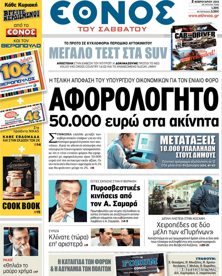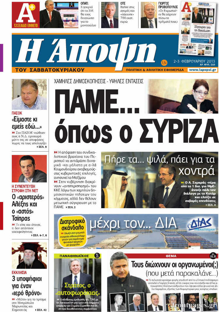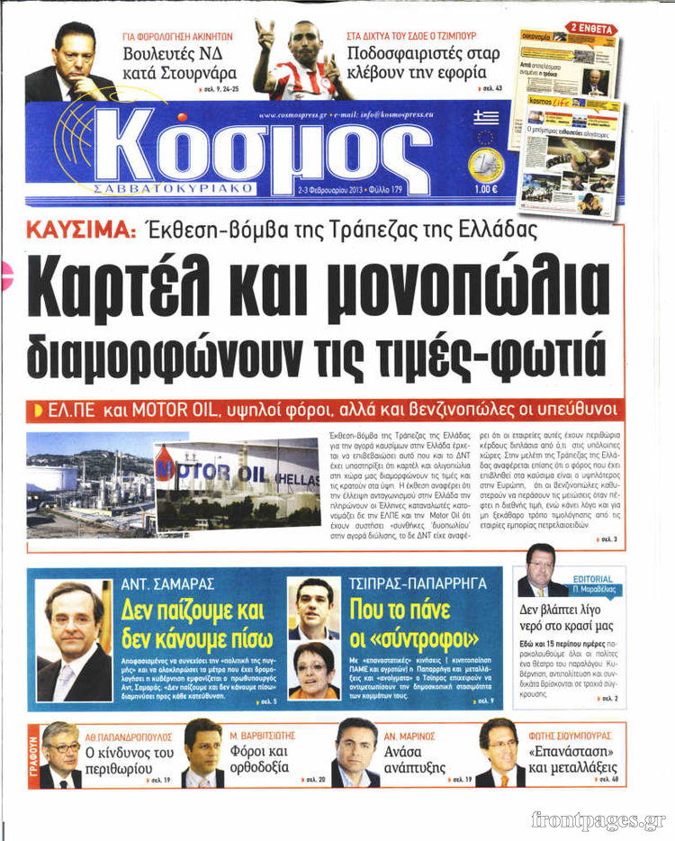 Οι πολιτικές εφημερίδες Enikos Newsroom 09:44, Σάββατο 02 Φεβρουαρίου 2013 Media Οι πολιτικές εφημερίδες ΠΟΛΙΤΙΚΕΣ ΕΦΗΜΕΡΙΔΕΣ Μοιράσου το: σχολίασε κι εσύ (0 σχόλια) Ακολουθήστε το enikos.gr στο Google News και μάθετε πρώτοι όλες τις ειδήσεις Δείτε όλες τις τελευταίες ειδήσεις από την Ελλάδα και τον Κόσμο στο enikos.gr Ειδήσεις Ροή Ειδήσεων 2 ώρες πριν Γιορτές με μπλόκα για τους αγρότες: Ανοίγουν διόδια και μοιράζουν προϊόντα στους ταξιδιώτες 2 ώρες πριν Τα αρχεία του Έπσταϊν αποκαλύπτουν φωτογραφία του έκπτωτου πρίγκιπα Άντριου – Είναι ξαπλωμένος στην αγκαλιά 5 γυναικών 1 ώρα πριν Νέες ταυτότητες: Μεγάλη αναμονή για ραντεβού στην Αττική – Τέλος τα ταξίδια εκτός Ελλάδος από τον Αύγουστο για όσους δεν έχουν αλλάξει 2 ώρες πριν Εξαφάνιση 33χρονου γιατρού στην Κρήτη: «Άναψα τα φώτα, τρόμαξε και άρχισε να τρέχει στα χωράφια» – Η τελευταία διαδρομή και η μαρτυρία «κλειδί» 29 λεπτά πριν Ινδία: Επτά ελέφαντες σκοτώθηκαν κατά τη σύγκρουση επιβατικού τρένου με κοπάδι 2 ώρες πριν Μία νέα «χρυσή» περίοδος αρχίζει για 3 ζώδια από σήμερα – «Μία αναπάντεχη ευκαιρία οδηγεί στην επιτυχία» 4 ώρες πριν Αρχαιολόγοι ανακάλυψαν σε χωράφι απεικόνιση 600 ετών ενός Αγίου – Τα στοιχεία που δείχνουν ότι μαρτύρησε 3 ώρες πριν Αγχώνεται για το χριστουγεννιάτικο δώρο που πήρε στην πλούσια σύντροφό του – «Φοβάμαι πως θα το βρει φθηνιάρικο, φοράει βραχιόλια Cartier» 27 λεπτά πριν Διαιτολόγος αποκαλύπτει 9 πρωινές συνήθειες που «λιώνουν» το κοιλιακό λίπος – «Υποστηρίζουν την υγιεινή απώλεια βάρους» 6 λεπτά πριν Χρήστος Μάντακας: «Θα μπορούσα να είχα φύγει από τη ζωή, δεν μπορούσα να περπατήσω…» 13 λεπτά πριν Εντυπωσιακό βίντεο από «τσουνάμι» πάγου στη Σιβηρία – Πώς προκαλείται το σπάνιο φαινόμενο 22 λεπτά πριν Μυλωνάκης κατά Τζάκρη: Την καλώ να ανασκευάσει το αδιανόητο ψέμα της. Η ανοχή έχει και τα όρια της» 27 λεπτά πριν Διαιτολόγος αποκαλύπτει 9 πρωινές συνήθειες που «λιώνουν» το κοιλιακό λίπος – «Υποστηρίζουν την υγιεινή απώλεια βάρους» 29 λεπτά πριν Ινδία: Επτά ελέφαντες σκοτώθηκαν κατά τη σύγκρουση επιβατικού τρένου με κοπάδι ENIKOS NETWORK Είστε μόνιμα απρόσεκτοι; 3 σημάδια που δείχνουν ότι μπορεί να είναι σύμπτωμα πάθησης Πόσα κιλά παίρνουμε πραγματικά τα Χριστούγεννα, σύμφωνα με την επιστήμη – Πώς να το αποτρέψουμε; Χριστούγεννα και Πρωτοχρονιά: Πώς αμείβονται όσοι εργαστούν e-ΕΦΚΑ και ΔΥΠΑ: Έρχονται νέες πληρωμές έως τις 24 Δεκεμβρίου – Ποιοι πάνε ταμείο Χαρτογραφώντας το «σημείο χωρίς επιστροφή»: Για πρώτη φορά αποκαλύπτεται με λεπτομέρεια το ακανθώδες όριο της ατμόσφαιρας τ... Η Google καταργεί τη λειτουργία «dark web report» – Πώς θα μπορούν οι χρήστες να διαγράφουν τα δεδομένα τους περισσότερα 11:41 , Σάββατο 20 Δεκεμβρίου 2025 «Η αγάπη δεν χάνεται ποτέ»: Η μικρού μήκους ταινία κινουμένων σχεδίων που θέτει ερωτήματα για τη ζωή και τον θάνατο Ο θάνατος είναι ένα από τα πιο σκληρά θέματα που καλείται να διαχειριστεί κάποιος στη διάρκεια... 09:30 , Σάββατο 20 Δεκεμβρίου 2025 «Porto Leone: Στη γειτονιά με τα κόκκινα φανάρια» – Ο Χρόνης αποκαλύπτει στην Αλεξάνδρα το μυστικό για το παιδί της Λένας Η μεγάλη δραματική σειρά του Apha «Porto Leone: Στη γειτονιά με τα κόκκινα φανάρια» μας μεταφέ... 08:14 , Σάββατο 20 Δεκεμβρίου 2025 Τρομεροί γονείς: Η Μαρία Καβογιάννη εισβάλλει στο σπίτι της οικογένειας Στεφανίδη Όσα θα δούμε στο νέο διπλό επεισόδιο της σειράς «Τρομεροί γονείς», σήμερα Σάββατο 20 Δεκεμβρίο... 05:48 , Σάββατο 20 Δεκεμβρίου 2025 Οι οι