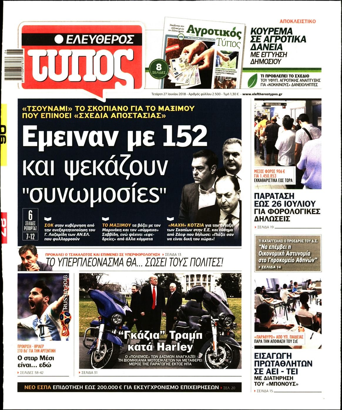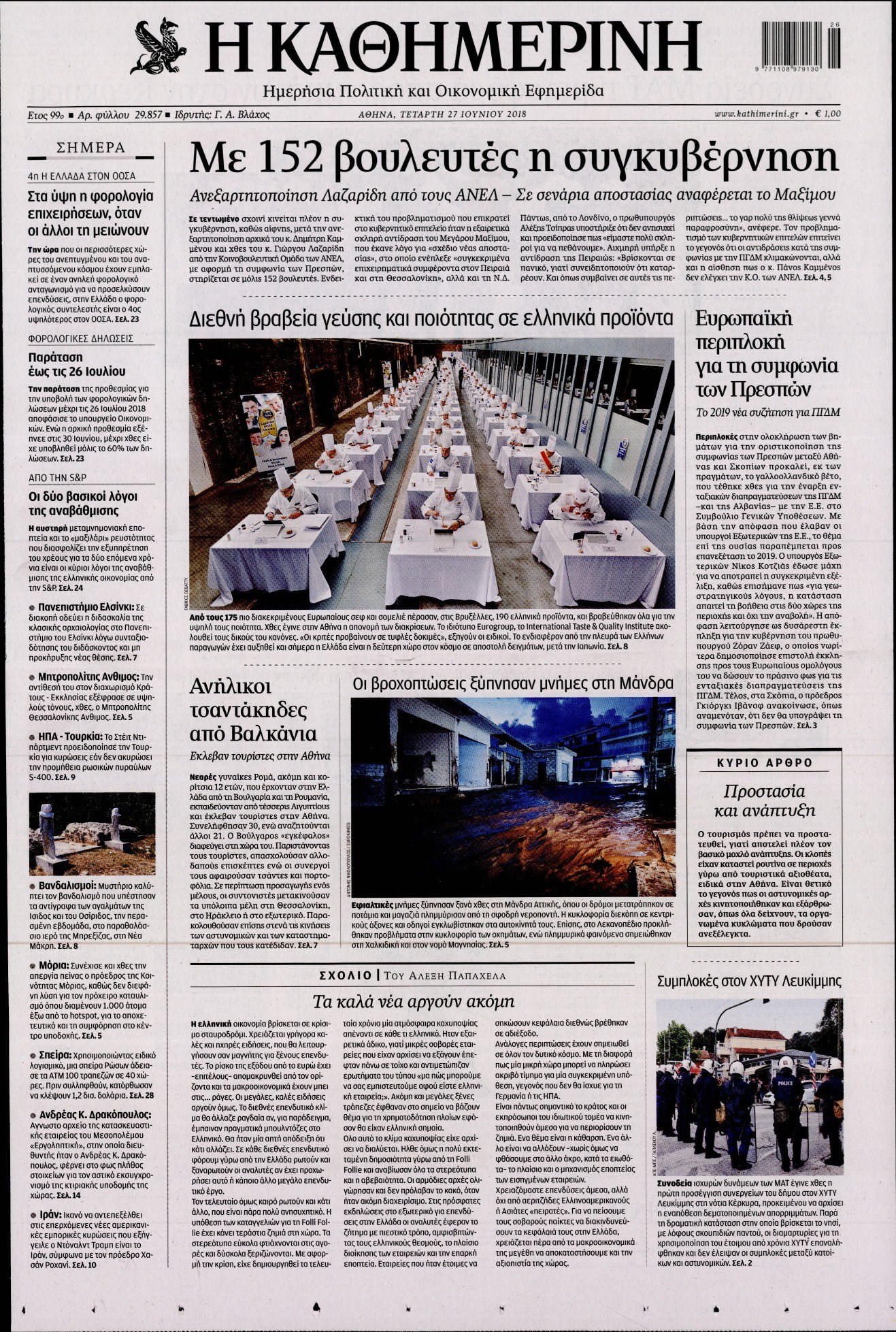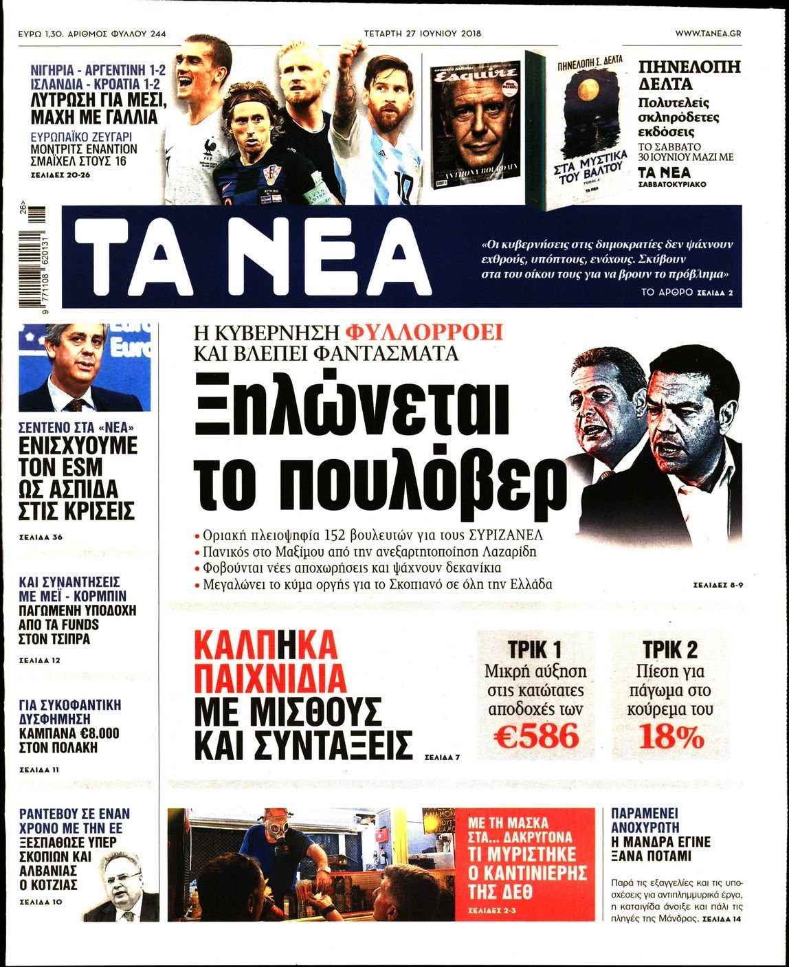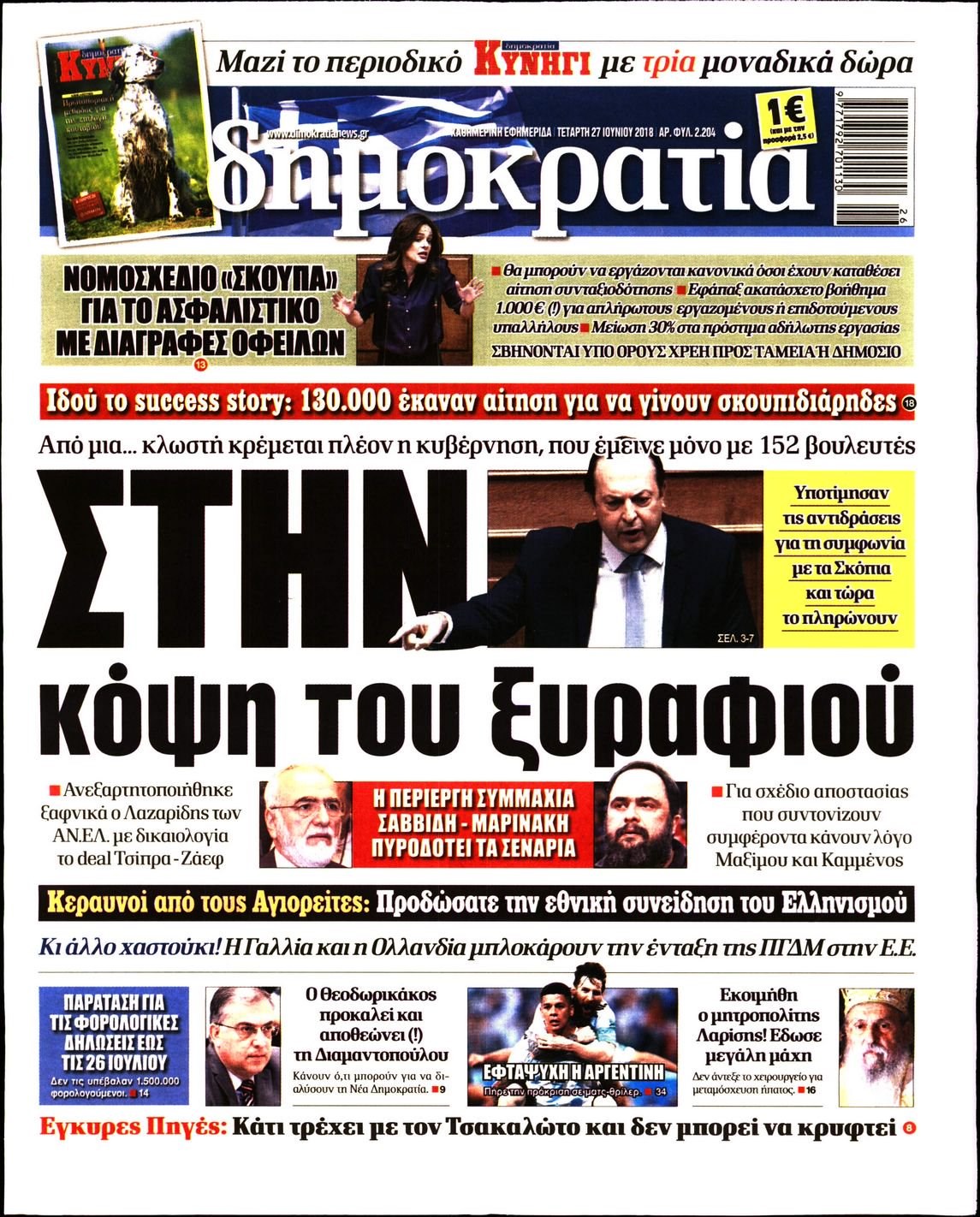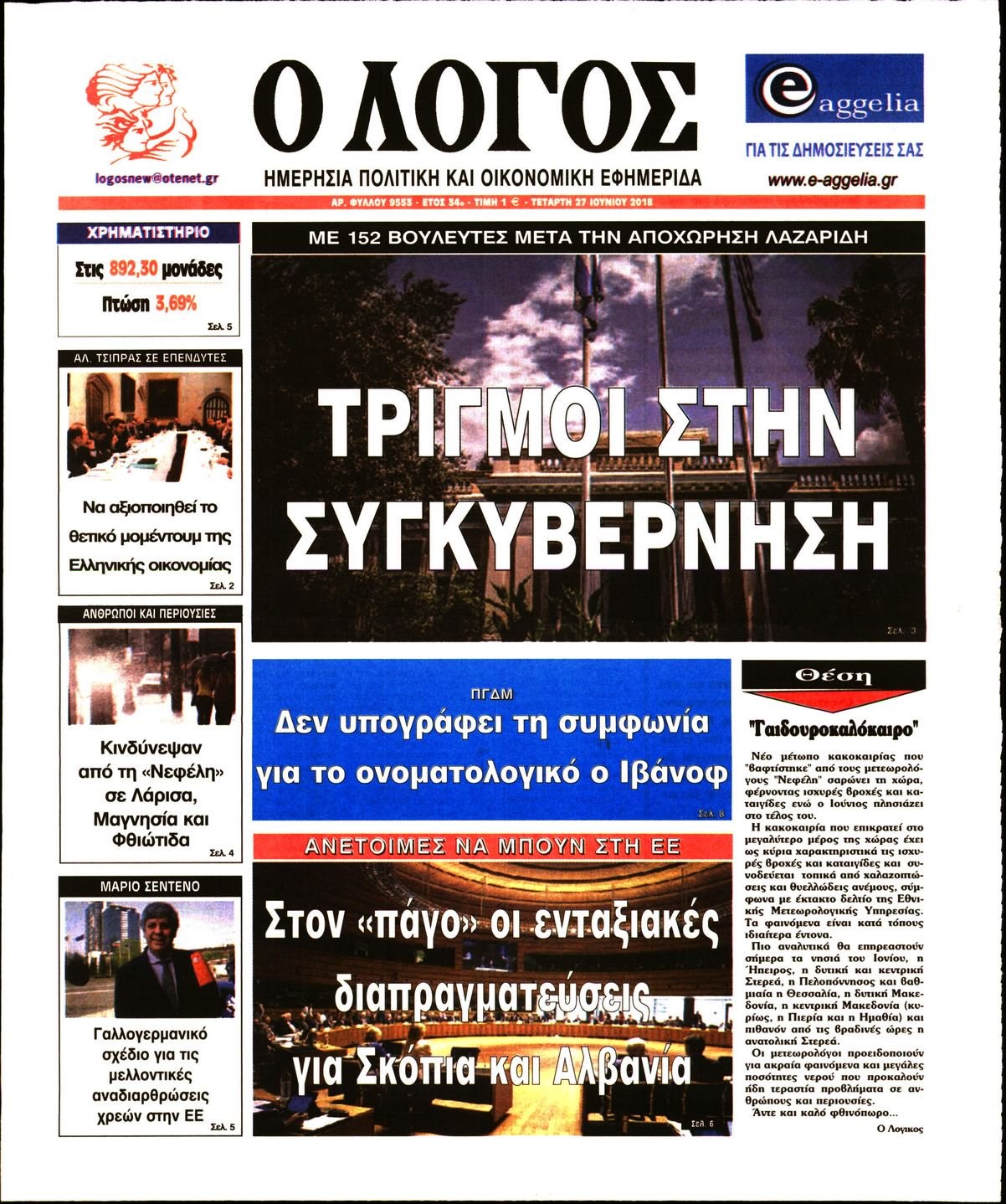 Οι πολιτικές εφημερίδες 27/6/18 Enikos Newsroom 06:06, Τετάρτη 27 Ιουνίου 2018 Media Διαβάστε τα πρωτοσέλιδα. ΠΟΛΙΤΙΚΕΣ ΕΦΗΜΕΡΙΔΕΣ ΠΡΩΤΟΣΕΛΙΔΑ Μοιράσου το: σχολίασε κι εσύ (0 σχόλια) Ακολουθήστε το enikos.gr στο Google News και μάθετε πρώτοι όλες τις ειδήσεις Δείτε όλες τις τελευταίες ειδήσεις από την Ελλάδα και τον Κόσμο στο enikos.gr Ειδήσεις Ροή Ειδήσεων 3 ώρες πριν Μητσοτάκης σε αγρότες: Είμαστε ανοιχτοί στον διάλογο, αλλά όχι στο παράλογο – Η διεκδίκηση αιτημάτων οφείλει να γίνεται με σεβασμό στο κοινωνικό σύνολο 1 ώρα πριν Κηφισιά: Δύο συλλήψεις για ληστεία με λεία 180.000 ευρώ – Βίντεο ντοκουμέντα από τη δράση των συλληφθέντων 3 ώρες πριν Γρίπη: «Καμπανάκι» από τους επιστήμονες για έξαρση κρουσμάτων στις γιορτές – Ποιοι κινδυνεύουν και πώς προστατευόμαστε 4 ώρες πριν Γαλλία: Έτοιμοι για Χριστούγεννα στους δρόμους οι αγρότες – «Οι δεσμεύσεις της κυβέρνησης δεν είναι αρκετές» 3 ώρες πριν Η οικογενειακή διαμάχη των Μπέκαμ: Το block από τον Μπρούκλιν και η απόφαση να περάσει τα Χριστούγεννα με τους δισεκατομμυριούχους γονείς της συζύγου του 3 ώρες πριν Τα άστρα ευνοούν σκανδαλωδώς 4 ζώδια – «Εμφανίζονται ξαφνικά ευκαιρίες γιατί αποφασίζετε να αφήσετε πίσω το παρελθόν» 2 ώρες πριν Προπονήτρια γυμναστικής που έχασε 9 κιλά αποκαλύπτει: «Αυτοί είναι οι 5 παράγοντες που εμποδίζουν την απώλεια βάρους» 44 λεπτά πριν Οι άνθρωποι που στρώνουν το κρεβάτι τους κάθε πρωί, διαθέτουν αυτές τις 8 κρυφές δυνάμεις 1 ημέρα πριν Enerwave: Το νέο «ρεύμα» στη λιανική ενέργειας που αλλάζει την εμπειρία του καταναλωτή 8 λεπτά πριν ΣΥΡΙΖΑ για Μητσοτάκη: Ο κυνισμός και η αλαζονεία του δεν πείθει κανέναν πια – Ούτε τους αγροτοσυνδικαλιστές της παράταξης του 16 λεπτά πριν Athens Santa Run: Έκατοντάδες Άγιοι Βασίληδες έτρεξαν στο κέντρο της Αθήνες – Τα σκυλάκια έκλεψαν την παράσταση 24 λεπτά πριν Τσουκαλάς: Η διακυβέρνηση Μητσοτάκη διαιρεί την κοινωνία σε δύο Ελλάδες – Mια των λίγων που καλοπερνούν και μια των πολλών που αγκομαχούν 32 λεπτά πριν Super League: «Αντίο» στο 2025 με ντέρμπι στην Τούμπα 40 λεπτά πριν Στρατιωτική θητεία: Τι ισχύει με τις αναβολές σε κατοίκους εξωτερικού – Διευκρινίσεις από το υπουργείο Εθνικής Άμυνας ENIKOS NETWORK Άσκηση: η «ασπίδα» του εγκεφάλου απέναντι στη γήρανση Έχετε καταρροή και φαγούρα στα μάτια στις γιορτές; Μπορεί να ευθύνεται το σύνδρομο χριστουγεννιάτικου δέντρου Φοροδιαφυγή: Πώς τα ψηφιακά εργαλεία άλλαξαν τα δεδομένα το 2025 και έφεραν δισεκατομμύρια στα ταμεία του Δημοσίου “Προσβασιμότητα κατ’ Οίκον”: Έως αύριο η υποβολή των δικαιολογητικών για 3.000 δικαιούχους Χαρτογραφώντας το «σημείο χωρίς επιστροφή»: Για πρώτη φορά αποκαλύπτεται με λεπτομέρεια το ακανθώδες όριο της ατμόσφαιρας τ... Η Google καταργεί τη λειτουργία «dark web report» – Πώς θα μπορούν οι χρήστες να διαγράφουν τα δεδομένα τους περισσότερα 09:43 , Κυριακή 21 Δεκεμβρίου 2025 Το λάθος στην ταινία Die Hard που άφησε άναυδους τους θαυμαστές του Μπρους Γουίλις Ένας φανατικός των ταινιών άφησε άναυδους τους θαυμαστές του Die Hard, επισημαίνοντας τρία βασ... 08:13 , Κυριακή 21 Δεκεμβρίου 2025 Άγιος έρωτας: Ένας καταστροφικός σεισμός χτυπά τη Στέρνα Καταιγιστικές είναι οι εξελίξεις στα δυο τελευταία, συγκλονιστικά επεισόδια του 2025 της σειρά... 08:00 , Κυριακή 21 Δεκεμβρίου 2025 Σήμερα με τη Realnews: Ό,τι και αν αγοράσεις, σκανάρεις και κερδίζεις! Σήμερα με τη Realnews: Ό,τι και αν αγοράσεις, σκανάρεις και κερδίζεις! Με το PADU app, το κορυ... 07:00 , Κυριακή 21 Δεκεμβρίου 2