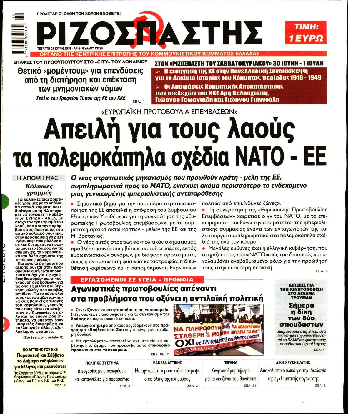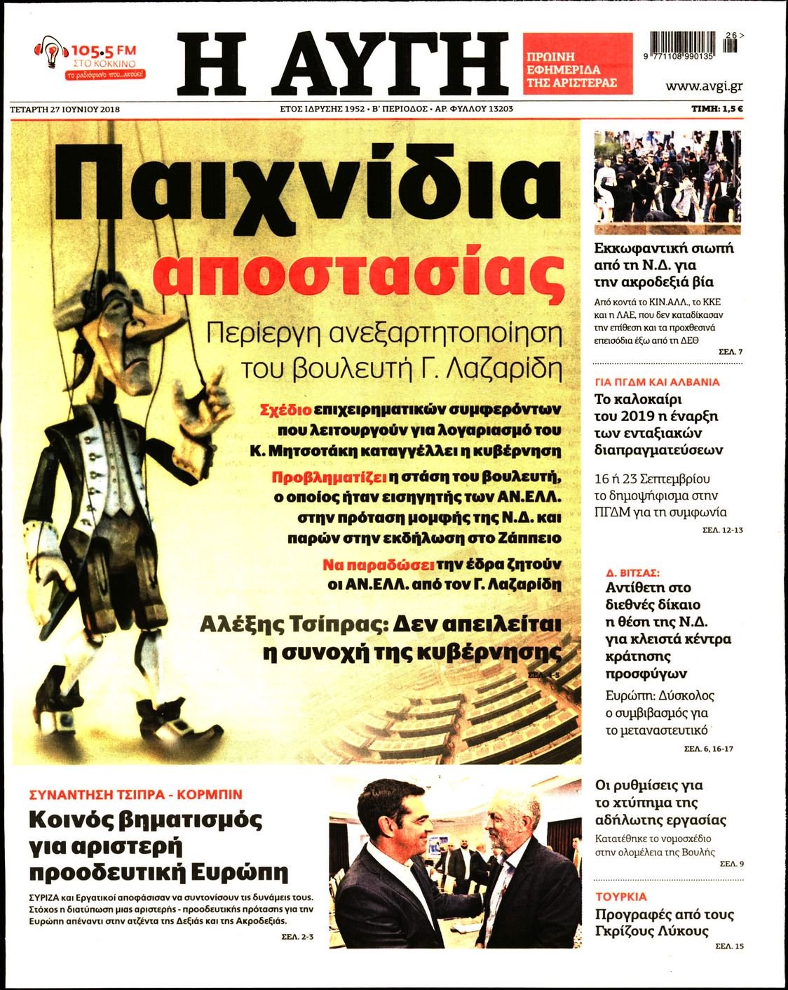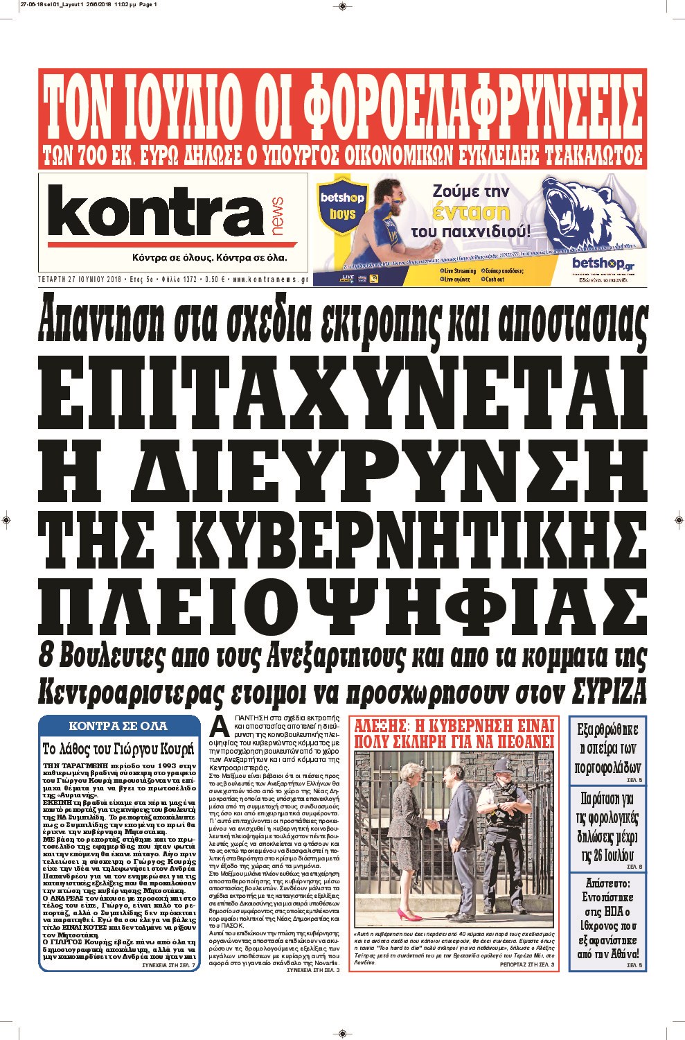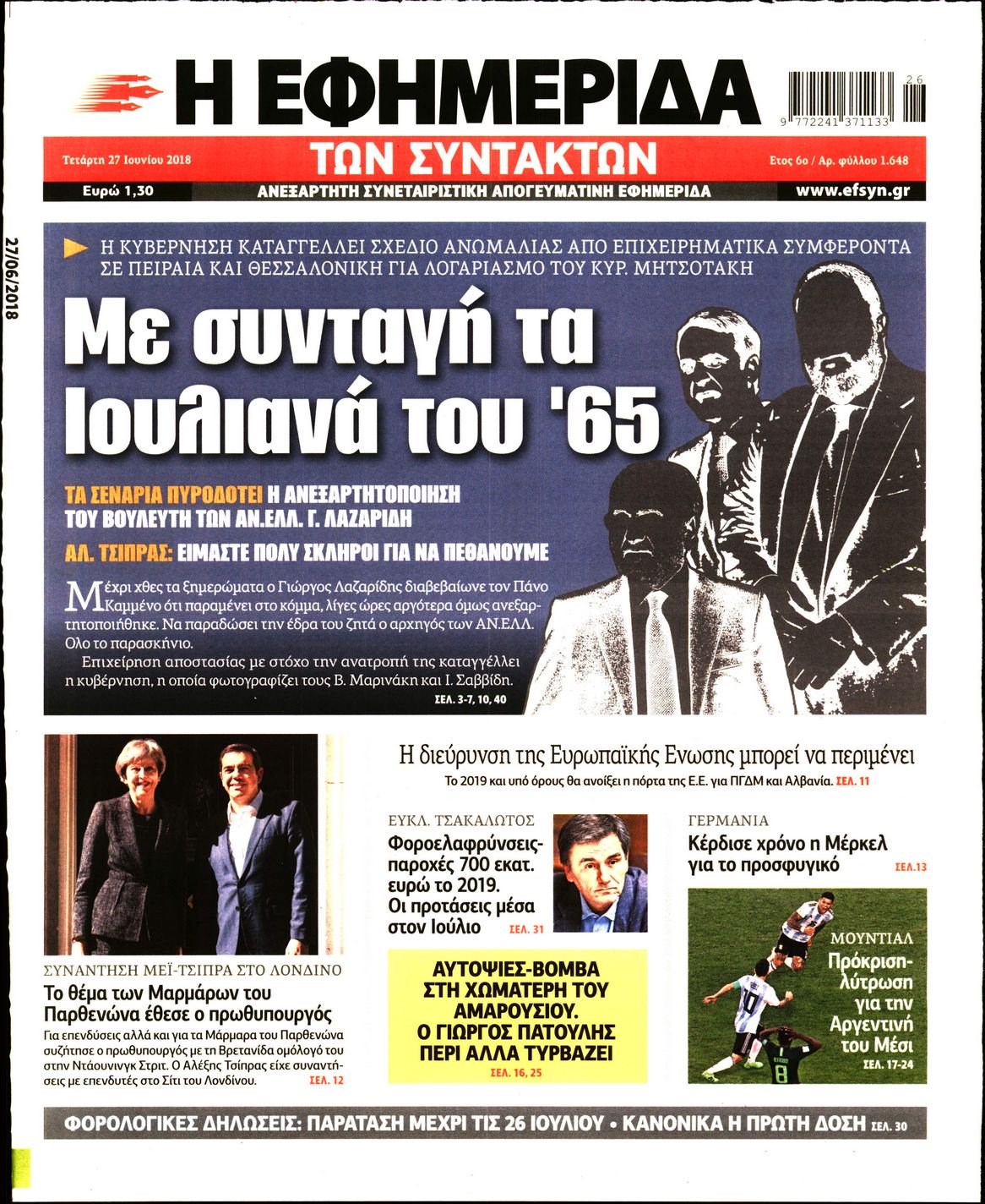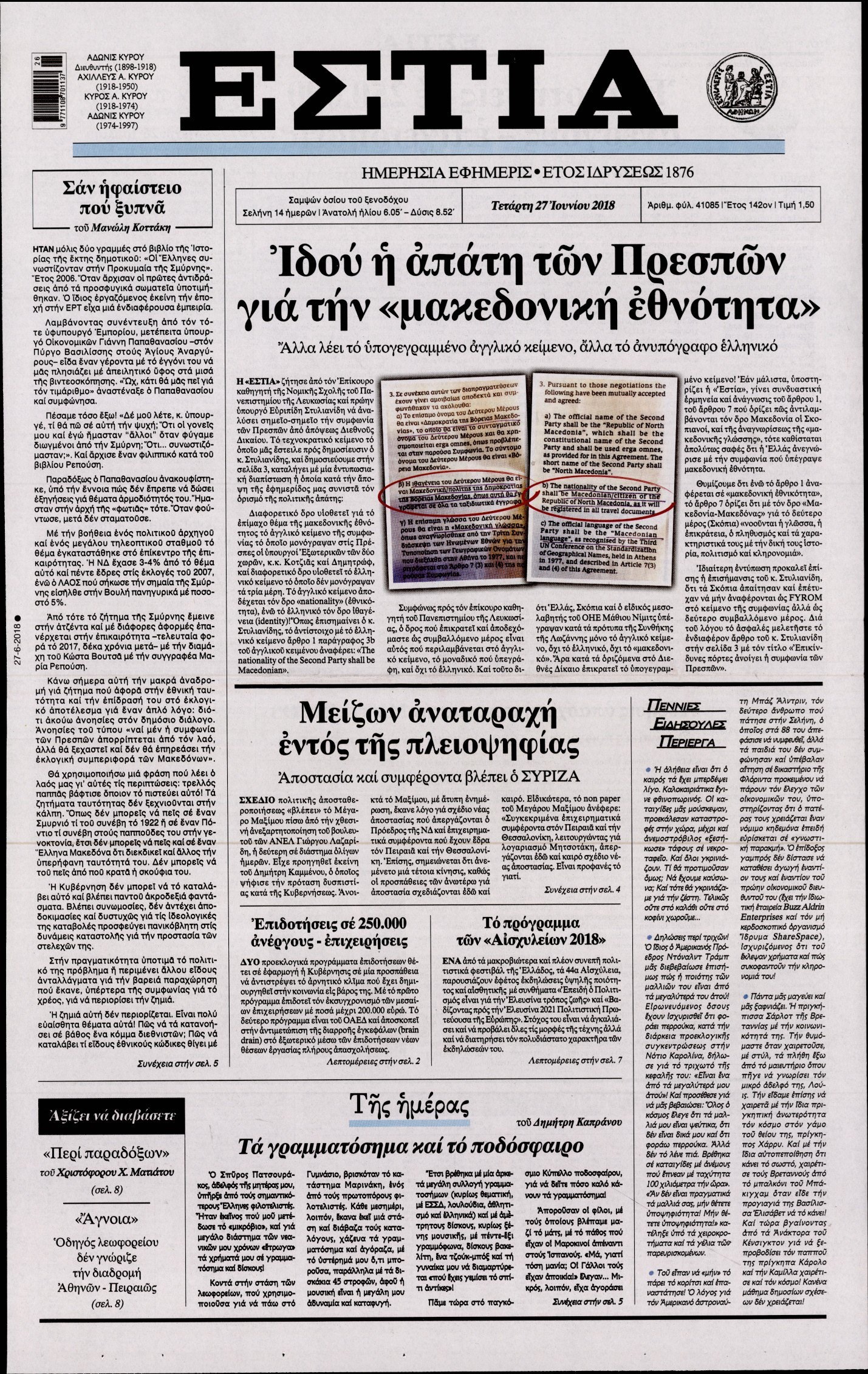 Οι πολιτικές εφημερίδες 27/6/18 Enikos Newsroom 06:06, Τετάρτη 27 Ιουνίου 2018 Media Διαβάστε τα πρωτοσέλιδα. ΠΟΛΙΤΙΚΕΣ ΕΦΗΜΕΡΙΔΕΣ ΠΡΩΤΟΣΕΛΙΔΑ Μοιράσου το: σχολίασε κι εσύ (0 σχόλια) Ακολουθήστε το enikos.gr στο Google News και μάθετε πρώτοι όλες τις ειδήσεις Δείτε όλες τις τελευταίες ειδήσεις από την Ελλάδα και τον Κόσμο στο enikos.gr Ειδήσεις Ροή Ειδήσεων 3 ώρες πριν Μητσοτάκης σε αγρότες: Είμαστε ανοιχτοί στον διάλογο, αλλά όχι στο παράλογο – Η διεκδίκηση αιτημάτων οφείλει να γίνεται με σεβασμό στο κοινωνικό σύνολο 1 ώρα πριν Κηφισιά: Δύο συλλήψεις για ληστεία με λεία 180.000 ευρώ – Βίντεο ντοκουμέντα από τη δράση των συλληφθέντων 3 ώρες πριν Γρίπη: «Καμπανάκι» από τους επιστήμονες για έξαρση κρουσμάτων στις γιορτές – Ποιοι κινδυνεύουν και πώς προστατευόμαστε 4 ώρες πριν Γαλλία: Έτοιμοι για Χριστούγεννα στους δρόμους οι αγρότες – «Οι δεσμεύσεις της κυβέρνησης δεν είναι αρκετές» 3 ώρες πριν Η οικογενειακή διαμάχη των Μπέκαμ: Το block από τον Μπρούκλιν και η απόφαση να περάσει τα Χριστούγεννα με τους δισεκατομμυριούχους γονείς της συζύγου του 3 ώρες πριν Τα άστρα ευνοούν σκανδαλωδώς 4 ζώδια – «Εμφανίζονται ξαφνικά ευκαιρίες γιατί αποφασίζετε να αφήσετε πίσω το παρελθόν» 2 ώρες πριν Προπονήτρια γυμναστικής που έχασε 9 κιλά αποκαλύπτει: «Αυτοί είναι οι 5 παράγοντες που εμποδίζουν την απώλεια βάρους» 44 λεπτά πριν Οι άνθρωποι που στρώνουν το κρεβάτι τους κάθε πρωί, διαθέτουν αυτές τις 8 κρυφές δυνάμεις 1 ημέρα πριν Enerwave: Το νέο «ρεύμα» στη λιανική ενέργειας που αλλάζει την εμπειρία του καταναλωτή 8 λεπτά πριν ΣΥΡΙΖΑ για Μητσοτάκη: Ο κυνισμός και η αλαζονεία του δεν πείθει κανέναν πια – Ούτε τους αγροτοσυνδικαλιστές της παράταξης του 16 λεπτά πριν Athens Santa Run: Έκατοντάδες Άγιοι Βασίληδες έτρεξαν στο κέντρο της Αθήνες – Τα σκυλάκια έκλεψαν την παράσταση 24 λεπτά πριν Τσουκαλάς: Η διακυβέρνηση Μητσοτάκη διαιρεί την κοινωνία σε δύο Ελλάδες – Mια των λίγων που καλοπερνούν και μια των πολλών που αγκομαχούν 32 λεπτά πριν Super League: «Αντίο» στο 2025 με ντέρμπι στην Τούμπα 40 λεπτά πριν Στρατιωτική θητεία: Τι ισχύει με τις αναβολές σε κατοίκους εξωτερικού – Διευκρινίσεις από το υπουργείο Εθνικής Άμυνας ENIKOS NETWORK Άσκηση: η «ασπίδα» του εγκεφάλου απέναντι στη γήρανση Έχετε καταρροή και φαγούρα στα μάτια στις γιορτές; Μπορεί να ευθύνεται το σύνδρομο χριστουγεννιάτικου δέντρου Φοροδιαφυγή: Πώς τα ψηφιακά εργαλεία άλλαξαν τα δεδομένα το 2025 και έφεραν δισεκατομμύρια στα ταμεία του Δημοσίου “Προσβασιμότητα κατ’ Οίκον”: Έως αύριο η υποβολή των δικαιολογητικών για 3.000 δικαιούχους Χαρτογραφώντας το «σημείο χωρίς επιστροφή»: Για πρώτη φορά αποκαλύπτεται με λεπτομέρεια το ακανθώδες όριο της ατμόσφαιρας τ... Η Google καταργεί τη λειτουργία «dark web report» – Πώς θα μπορούν οι χρήστες να διαγράφουν τα δεδομένα τους περισσότερα 09:43 , Κυριακή 21 Δεκεμβρίου 2025 Το λάθος στην ταινία Die Hard που άφησε άναυδους τους θαυμαστές του Μπρους Γουίλις Ένας φανατικός των ταινιών άφησε άναυδους τους θαυμαστές του Die Hard, επισημαίνοντας τρία βασ... 08:13 , Κυριακή 21 Δεκεμβρίου 2025 Άγιος έρωτας: Ένας καταστροφικός σεισμός χτυπά τη Στέρνα Καταιγιστικές είναι οι εξελίξεις στα δυο τελευταία, συγκλονιστικά επεισόδια του 2025 της σειρά... 08:00 , Κυριακή 21 Δεκεμβρίου 2025 Σήμερα με τη Realnews: Ό,τι και αν αγοράσεις, σκανάρεις και κερδίζεις! Σήμερα με τη Realnews: Ό,τι και αν αγοράσεις, σκανάρεις και κερδίζεις! Με το PADU app, το κορυ... 07:00 , Κυριακή 21 Δεκεμβρίου 2