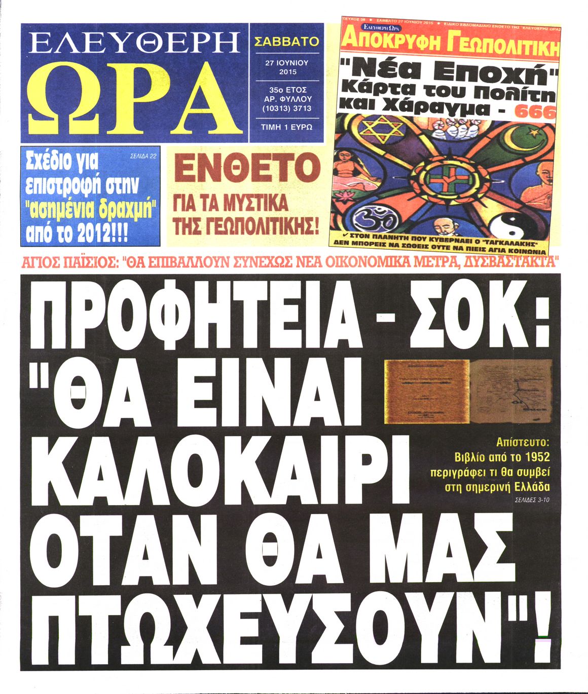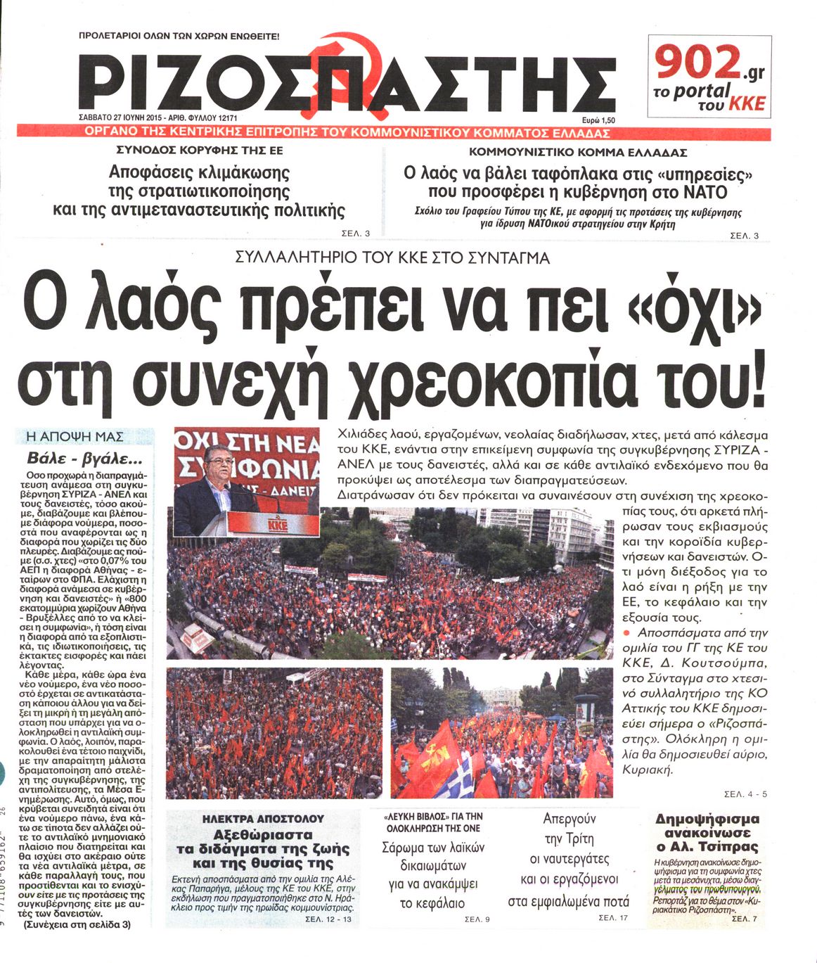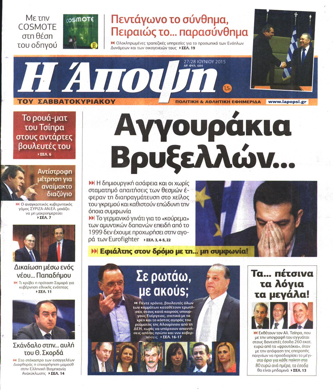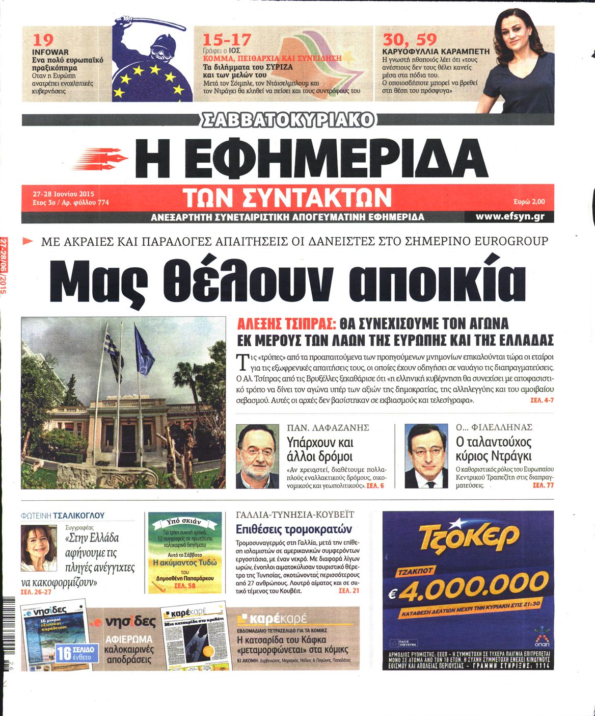 Oι πολιτικές εφημερίδες 27/6/2015 Enikos Newsroom 07:51, Σάββατο 27 Ιουνίου 2015 Media Διαβάστε τα σημερινά πρωτοσέλιδα των πολιτικών εφημερίδων: ΠΟΛΙΤΙΚΕΣ ΕΦΗΜΕΡΙΔΕΣ ΠΡΩΤΟΣΕΛΙΔΑ Μοιράσου το: σχολίασε κι εσύ (0 σχόλια) Ακολουθήστε το enikos.gr στο Google News και μάθετε πρώτοι όλες τις ειδήσεις Δείτε όλες τις τελευταίες ειδήσεις από την Ελλάδα και τον Κόσμο στο enikos.gr Ειδήσεις Ροή Ειδήσεων 4 ώρες πριν Χριστούγεννα στα μπλόκα: Επιμένουν στις κινητοποιήσεις τους οι αγρότες – Ανοίγουν τα διόδια το Σαββατοκύριακο 4 ώρες πριν Ουκρανία: Η άνευ προηγουμένου επίθεση σε ρωσικό τάνκερ στη Μεσόγειο και το μήνυμα προς στον Πούτιν – Το «μακρύ χέρι» του Κιέβου 3 ώρες πριν Πούτιν: Τα μηνύματα σε Ευρώπη και ΝΑΤΟ από το μαραθώνιο «σόου» του – Η απαίτηση για «σεβασμό» και η ειρήνη «με τους όρους» της Μόσχας 4 ώρες πριν Τραμπ: Δεν αποκλείει την πιθανότητα ενός πολέμου στη Βενεζουέλα – «Ο Μαδούρο ξέρει καλύτερα από τον καθένα τι ακριβώς θέλω» 5 ώρες πριν Συνεχίζει να προκαλεί ο Μίτσκοσκι: «Για μένα το όνομα Μακεδονία είναι ιερό» 4 ώρες πριν Ανακαλύφθηκαν αρχαία χρυσά νομίσματα 2.200 ετών που απεικονίζουν τον θεό Απόλλωνα – Η άγνωστη σύνδεση με τον Φίλιππο Β΄ της Μακεδονίας 5 ώρες πριν Ύπνος: Μια κρυφή κατάσταση του εγκεφάλου πριν από τον ύπνο μπορεί να είναι το “κλειδί” για υψηλή ευφυΐα και δημιουργικότητα 5 ώρες πριν Αριθμολογία: Οι άνθρωποι που έχουν γεννηθεί αυτές τις 4 ημερομηνίες, συχνά παρεξηγούνται – «Η καλοσύνη τους κρύβει τεράστια δύναμη» 6 ώρες πριν Ξεχάστε το καθάρισμα το Σαββατοκύριακο: Ο «κανόνας των 20 λεπτών» που θα σας λύσει τα χέρια 5 λεπτά πριν Ντόναλντ Τραμπ: «Πολύ βαριά αντίποινα» στη Συρία – «Πλήττουμε πολύ δυνατά οχυρά του Ισλαμικού Κράτους» 20 λεπτά πριν Εξάρχεια: Ένταση με μολότοφ, χημικά και κρότου λάμψης 36 λεπτά πριν ΗΠΑ: Τραγωδία στην Αλαμπάμα – Σκότωσε την δημοσιογράφο σύζυγό του και αυτοκτόνησε μπροστά στον 3χρονο γιο τους 50 λεπτά πριν Πρόταση γάμου στο ΣΕΦ κατά την διάρκεια του αγώνα Ολυμπιακός-Βιλερμπάν – Δείτε βίντεο 1 ώρα πριν Euroleague: Επέστρεψε στις νίκες ο Ολυμπιακός, πήρε την ματσάρα της χρονιάς η Μπάρτσα – Τα αποτελέσματα και η βαθμολογία ENIKOS NETWORK Το ΕΚΑΒ τιμήθηκε από την Ακαδημία Αθηνών για τα 40 χρόνια προσφοράς του Έχετε πραγματικά μεγάλη καρδιά; 10 χαρακτηριστικά όσων έχουν καλοσύνη Αναστολή μέτρων αναγκαστικής εκτέλεσης για κτηνοτρόφους που πλήττονται από την ευλογιά των αιγοπροβάτων Πλήρης επάρκεια προϊόντων στις λαϊκές της Αττικής, παρά τις αγροτικές κινητοποιήσεις – Τι απαντούν οι πωλητές Χαρτογραφώντας το «σημείο χωρίς επιστροφή»: Για πρώτη φορά αποκαλύπτεται με λεπτομέρεια το ακανθώδες όριο της ατμόσφαιρας τ... Η Google καταργεί τη λειτουργία «dark web report» – Πώς θα μπορούν οι χρήστες να διαγράφουν τα δεδομένα τους περισσότερα 22:42 , Παρασκευή 19 Δεκεμβρίου 2025 Γιώργος Γιαννόπουλος για “Το σόι σου”: “Είναι ευτυχία και ευλογία αυτή η σειρά” «Είναι ευτυχία και ευλογία η συγκυρία αυτής της σειράς», θα πει ο Γιώργος Γιαννόπουλος -ο αγαπ... 20:37 , Παρασκευή 19 Δεκεμβρίου 2025 Don’t Forget The Lyrics: Η Έλλη Κοκκίνου υποδέχεται 4 παίκτες που θα κάνουν τα πάντα για να μη χάσουν ούτε… μισή λέξη από τους στίχους Το «Don’t Forget The Lyrics» επιστρέφει απόψε, Παρασκευή 19 Δεκεμβρίου, στις 21:00 με νέο επει... 19:31 , Παρασκευή 19 Δεκεμβρίου 2025 GNTM: Απόψε ο μεγάλος τελικός για τους 4 φιναλίστ Έπειτα από μήνες γεμάτους μόδα, δημιουργία και έντονες αναμετρήσεις, το GNTM 2025 κορυφώνεται,... 18:11 , Παρασκε