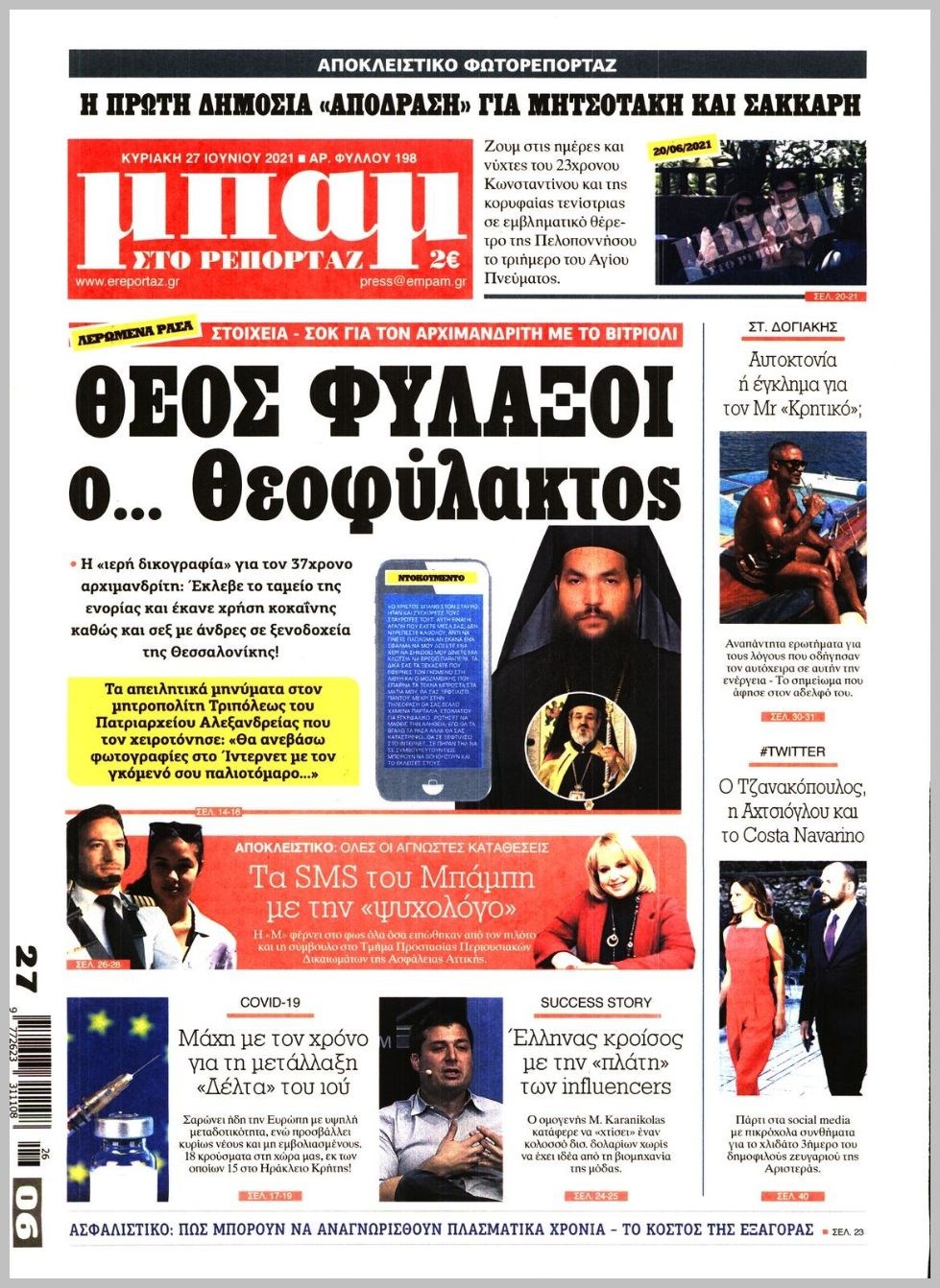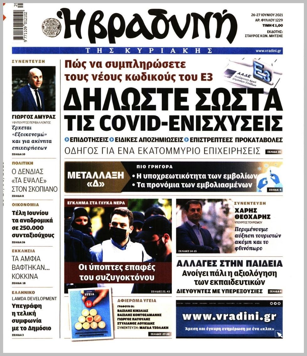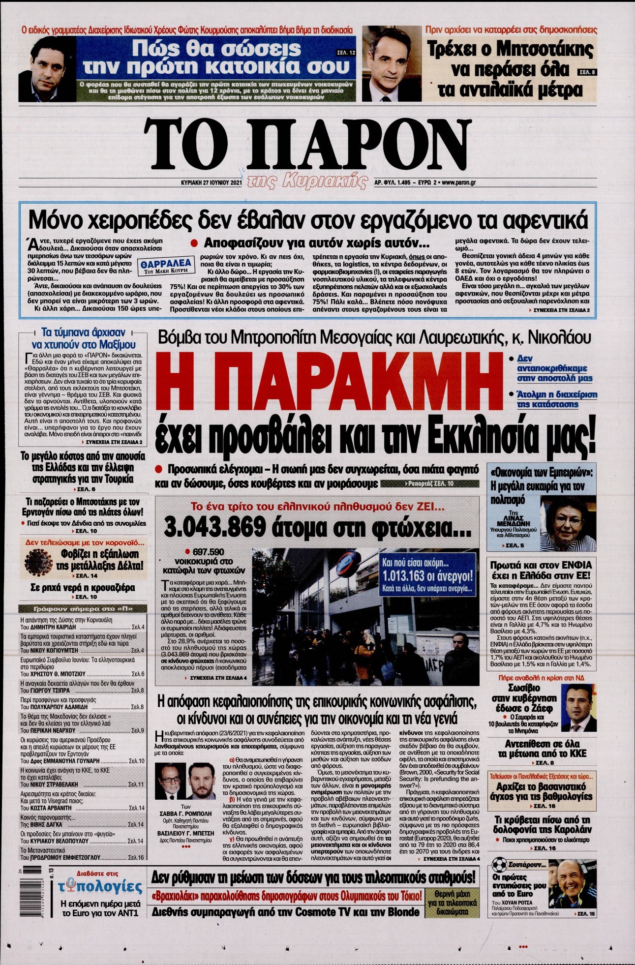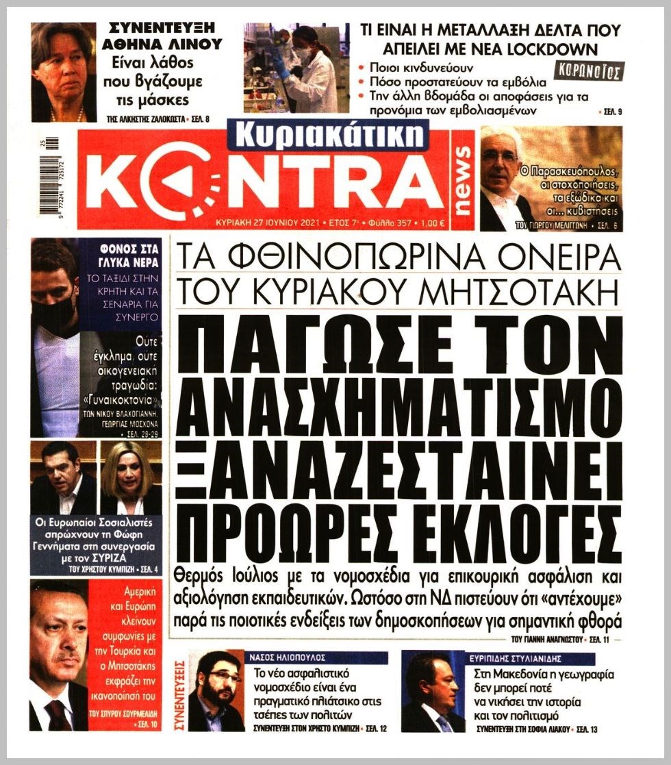 Οι πολιτικές εφημερίδες 27/6/2021 Διονύσης Νίκκας 07:08, Κυριακή 27 Ιουνίου 2021 Media Διαβάστε τα πρωτοσέλιδα των πολιτικών εφημερίδων… ΕΦΗΜΕΡΙΔΕΣ ΠΡΩΤΟΣΕΛΙΔΑ Μοιράσου το: σχολίασε κι εσύ (0 σχόλια) Ακολουθήστε το enikos.gr στο Google News και μάθετε πρώτοι όλες τις ειδήσεις Δείτε όλες τις τελευταίες ειδήσεις από την Ελλάδα και τον Κόσμο στο enikos.gr Ειδήσεις Ροή Ειδήσεων 2 ώρες πριν Υπόθεση Έπσταϊν: Το Υπουργείο Δικαιοσύνης δημοσιοποίησε μια σειρά από εξαιρετικά επεξεργασμένα αρχεία – «Λείπουν τα πιο σημαντικά έγγραφα», λένε οι Δημοκρατικοί 1 ώρα πριν Ο «χάρτης» με τις αυξήσεις και τις φοροελαφρύνσεις του 2026 – Ποιοι και πόσα κερδίζουν 11 ώρες πριν Χριστούγεννα στα μπλόκα: Επιμένουν στις κινητοποιήσεις τους οι αγρότες – Ανοίγουν τα διόδια το Σαββατοκύριακο 2 ώρες πριν ΟΝΕΧ – MEGATUGS: Ξεκίνησε η ναυπήγηση ρυμουλκών στην Ελλάδα – Προθάλαμος πολεμικών πλοίων – Δείτε φωτογραφίες και βίντεο 2 ώρες πριν Καιρός: Αλλαγή σκηνικού σήμερα με βροχές και πτώση της θερμοκρασίας – Οι προβλέψεις των μετεωρολόγων για τα Χριστούγεννα 4 ώρες πριν Αυγά: Πόσα μπορείτε να τρώτε την ημέρα με ασφάλεια για μέγιστη πρόσληψη πρωτεΐνης 3 ώρες πριν Οπτική ψευδαίσθηση: Μόνο αν είσαι ο Σέρλοκ Χολμς θα βρεις τον αριθμό «87» σε 7 δευτερόλεπτα 2 ώρες πριν Αρχαιολόγοι ανακάλυψαν σε χωράφι απεικόνιση 600 ετών ενός Αγίου – Τα στοιχεία που δείχνουν ότι μαρτύρησε 37 λεπτά πριν Αγχώνεται για το χριστουγεννιάτικο δώρο που πήρε στην πλούσια σύντροφό του – «Φοβάμαι πως θα το βρει φθηνιάρικο, φοράει βραχιόλια Cartier» 11 λεπτά πριν «Porto Leone: Στη γειτονιά με τα κόκκινα φανάρια» – Ο Χρόνης αποκαλύπτει στην Αλεξάνδρα το μυστικό για το παιδί της Λένας 19 λεπτά πριν Νέες αιτήσεις για ίδρυση μη κρατικών πανεπιστημίων στο πρώτο δίμηνο του 2026 – Τι είπε η Ζαχαράκη 27 λεπτά πριν Ουκρανία: Drones έπληξαν εξέδρα πετρελαίου και πολεμικό πλοίο της Ρωσίας στην Κασπία 36 λεπτά πριν Παιδική υπέρταση: Μια σιωπηλή απειλή που αυξάνεται διεθνώς 37 λεπτά πριν Αγχώνεται για το χριστουγεννιάτικο δώρο που πήρε στην πλούσια σύντροφό του – «Φοβάμαι πως θα το βρει φθηνιάρικο, φοράει βραχιόλια Cartier» ENIKOS NETWORK Πόσα κιλά παίρνουμε πραγματικά τα Χριστούγεννα, σύμφωνα με την επιστήμη – Πώς να το αποτρέψουμε; Το δημοφιλές ρόφημα που αυξάνει την πίεση πιο γρήγορα και από το αλάτι Mega χριστουγεννιάτικη φορολοταρία: «Κλείδωσε» η ημερομηνία για την κλήρωση – Ερωτήσεις και απαντήσεις Αναστολή μέτρων αναγκαστικής εκτέλεσης για κτηνοτρόφους που πλήττονται από την ευλογιά των αιγοπροβάτων Χαρτογραφώντας το «σημείο χωρίς επιστροφή»: Για πρώτη φορά αποκαλύπτεται με λεπτομέρεια το ακανθώδες όριο της ατμόσφαιρας τ... Η Google καταργεί τη λειτουργία «dark web report» – Πώς θα μπορούν οι χρήστες να διαγράφουν τα δεδομένα τους περισσότερα 09:30 , Σάββατο 20 Δεκεμβρίου 2025 «Porto Leone: Στη γειτονιά με τα κόκκινα φανάρια» – Ο Χρόνης αποκαλύπτει στην Αλεξάνδρα το μυστικό για το παιδί της Λένας Η μεγάλη δραματική σειρά του Apha «Porto Leone: Στη γειτονιά με τα κόκκινα φανάρια» μας μεταφέ... 08:14 , Σάββατο 20 Δεκεμβρίου 2025 Τρομεροί γονείς: Η Μαρία Καβογιάννη εισβάλλει στο σπίτι της οικογένειας Στεφανίδη Όσα θα δούμε στο νέο διπλό επεισόδιο της σειράς «Τρομεροί γονείς», σήμερα Σάββατο 20 Δεκεμβρίο... 05:48 , Σάββατο 20 Δεκεμβρίου 2025 Οι οικονομικές εφημερίδες 20/12/2025 Διαβάστε τα πρωτοσέλιδα από τις οικονομικές εφημερίδες, σήμερα 20/12/2025. 05:43 , Σάββατο 20 Δεκεμβρίου 2025 Οι αθλητικές εφημερίδες 20/12/2025 Δι