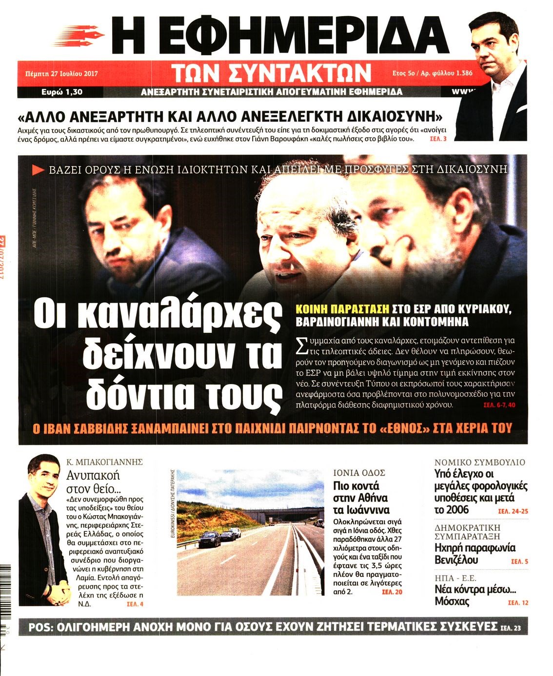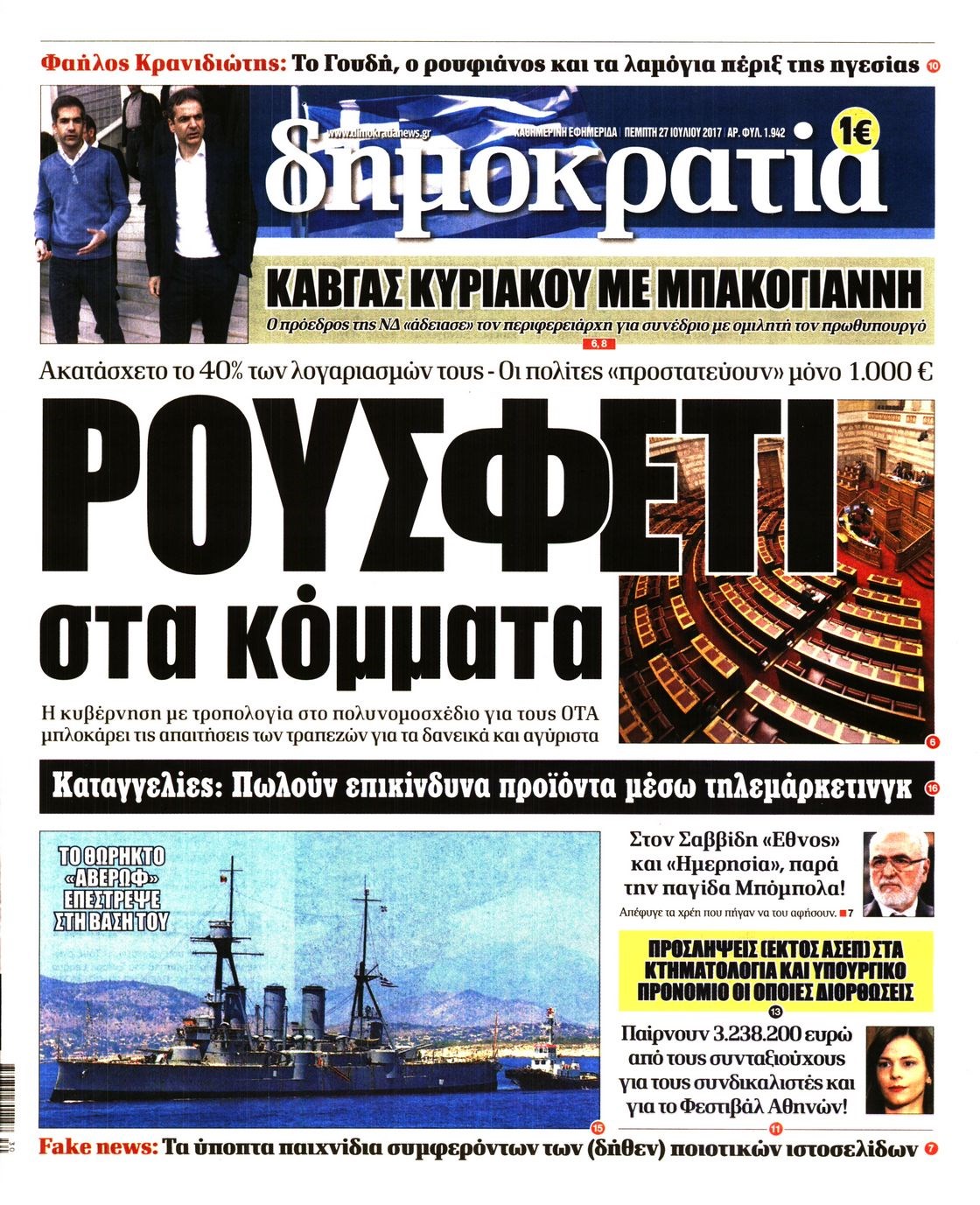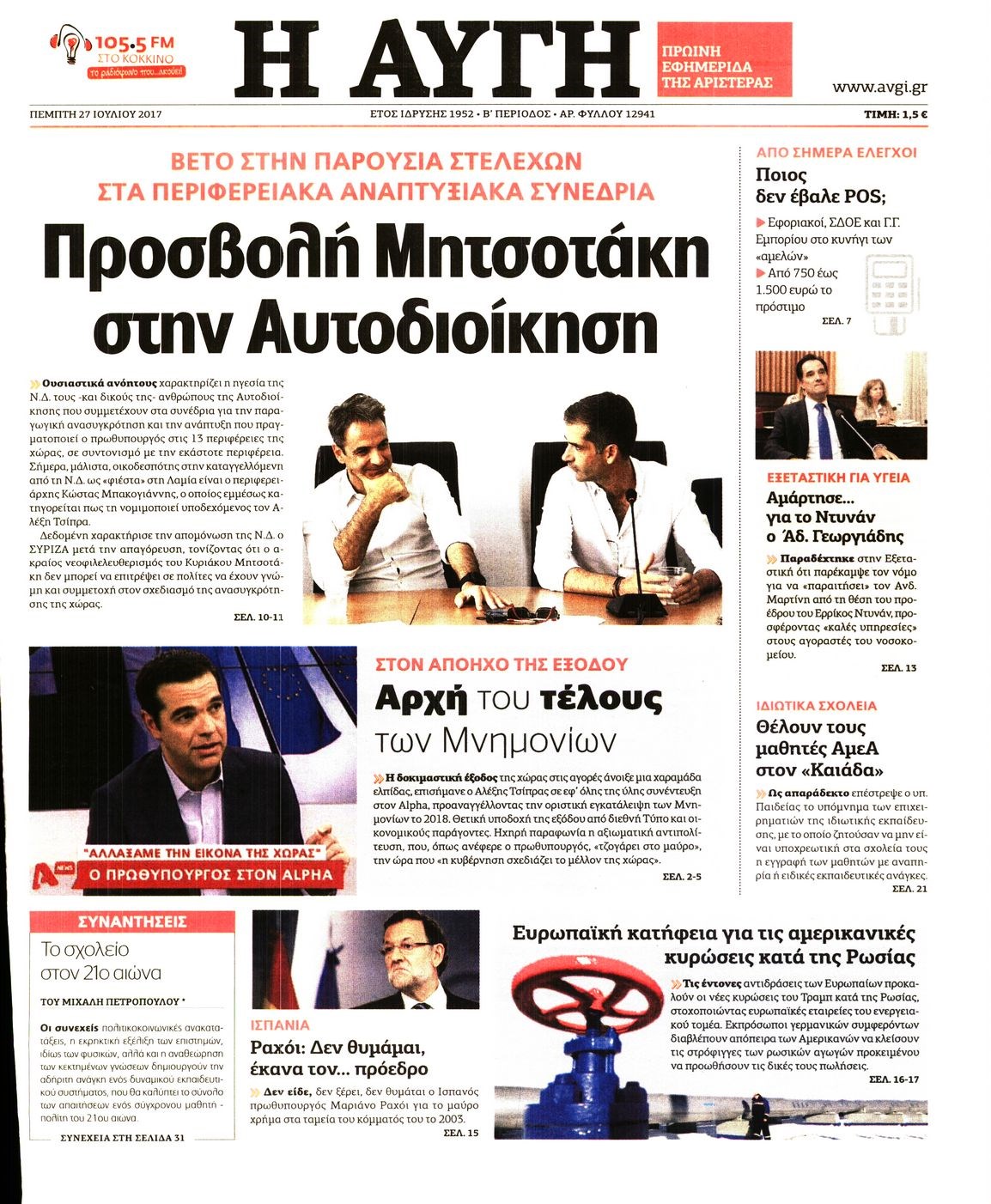 Οι πολιτικές εφημερίδες 27/7/2017 Enikos Newsroom 07:42, Πέμπτη 27 Ιουλίου 2017 Media Διαβάστε τα σημερινά πρωτοσέλιδα των πολιτικών εφημερίδων: ΠΟΛΙΤΙΚΕΣ ΕΦΗΜΕΡΙΔΕΣ ΠΡΩΤΟΣΕΛΙΔΑ Μοιράσου το: σχολίασε κι εσύ (0 σχόλια) Ακολουθήστε το enikos.gr στο Google News και μάθετε πρώτοι όλες τις ειδήσεις Δείτε όλες τις τελευταίες ειδήσεις από την Ελλάδα και τον Κόσμο στο enikos.gr Ειδήσεις Ροή Ειδήσεων 2 ώρες πριν Κλιμακώνουν από σήμερα τις κινητοποιήσεις οι αγρότες: Νέα μπλόκα, κλείσιμο παρακαμπτηρίων και άνοιγμα διοδίων – Το νέο μήνυμα Μητσοτάκη 2 ώρες πριν Ευρωπαϊκό Συμβούλιο: Όλες οι λεπτομέρειες για το δάνειο των 90 δισ. ευρώ στην Ουκρανία – Τα συμπεράσματα της Συνόδου Κορυφής 1 ώρα πριν Νίκος Παππάς: Δρομολογήθηκαν οι διαδικασίες για τη διαγραφή του από τον ΣΥΡΙΖΑ μέσα στις γιορτές 3 ώρες πριν Συντάξεις: Οι κερδισμένοι και οι χαμένοι από τις αυξήσεις – Αναλυτικός οδηγός και παραδείγματα 2 ώρες πριν Peter Greene: Ο πρωταγωνιστής του «Pulp Fiction» είχε τραύματα στο σώμα του όταν βρέθηκε νεκρός στο αιματοβαμμένο διαμέρισμα 2 ώρες πριν Πώς το αρχαίο DNA του κυνηγού – συλλέκτη ξεκλείδωσε τα μυστικά της μακροζωίας 2 ημέρες πριν 20 χρόνια τα Χριστούγεννα ξεκινούν στα Public με μεγάλη ποικιλία σε δώρα! 1 ώρα πριν Ο σύζυγός της συμπεριφέρεται όπως το παιδί τους – «Χρησιμοποιεί αστείες δικαιολογίες για να μην κάνει δουλειές και να ξοδεύει λεφτά» 16 λεπτά πριν Αλλαγή σελίδας για 3 ζώδια – «Μία δύσκολη περίοδος φτάνει στο τέλος της» 1 λεπτό πριν Κόστα σε αγρότες: «Η Ευρώπη σας ακούει» – Μικρή αναβολή στην υπογραφή της συμφωνίας με την Mercosur, λέει η Φον Ντερ Λάιεν 6 λεπτά πριν Ελένη Χατζίδου: «Έχω δεχτεί σεξουαλική παρενόχληση, δεν ήμουν αρκετά γενναία για να το καταγγείλω» – Η αποκάλυψη που σόκαρε τους συνεργάτες της 11 λεπτά πριν Τα νούμερα τηλεθέασης της πρωινής ζώνης – Πρώτο το «Super Κατερίνα» 16 λεπτά πριν Αλλαγή σελίδας για 3 ζώδια – «Μία δύσκολη περίοδος φτάνει στο τέλος της» 25 λεπτά πριν Κρούσμα μηνιγγίτιδας σε Λύκειο των Χανίων – Στο νοσοκομείο μια μαθήτρια ENIKOS NETWORK Πότε μπορεί το χλωμό δέρμα να σχετίζεται με σοβαρή νόσο Ενίσχυση του μεταβολισμού: Η Νο1 άσκηση που πρέπει να κάνουν οι γυναίκες μετά τα 35 Συντάξεις: Οι κερδισμένοι και οι χαμένοι από τις αυξήσεις – Αναλυτικός οδηγός Στεγαστικό: Τι λέει η ΠΟΜΙΔΑ για τα νέα μέτρα που ανακοίνωσε ο Κυριάκος Μητσοτάκης Χαρτογραφώντας το «σημείο χωρίς επιστροφή»: Για πρώτη φορά αποκαλύπτεται με λεπτομέρεια το ακανθώδες όριο της ατμόσφαιρας τ... Η Google καταργεί τη λειτουργία «dark web report» – Πώς θα μπορούν οι χρήστες να διαγράφουν τα δεδομένα τους περισσότερα 08:00 , Παρασκευή 19 Δεκεμβρίου 2025 Την Κυριακή με τη Realnews: Δωροεπιταγή 10€ Δωροεπιταγή αξίας 10€ για αγορές άνω των 60€ από τα πολυκαταστήματα FactoryOutlet H προσφορά ι... 05:48 , Παρασκευή 19 Δεκεμβρίου 2025 Οι οικονομικές εφημερίδες 19/12/2025 Διαβάστε τα πρωτοσέλιδα από τις οικονομικές εφημερίδες, σήμερα 19/12/2025. 05:43 , Παρασκευή 19 Δεκεμβρίου 2025 Οι αθλητικές εφημερίδες 19/12/2025 Διαβάστε τα πρωτοσέλιδα από τις αθλητικές εφημερίδες, σήμερα 19/12/2025. 05:38 , Παρασκευή 19 Δεκεμβρίου 2025 Οι πολιτικές εφημερίδες 19/12/2025 Διαβάστε τα πρωτοσέλιδα από τις πολιτικές εφημερίδες, σήμερα 19/12/2025. ΤΕΛΕΥΤΑΙΕΣ ΕΙΔΗΣΕΙΣ 6 λεπτά πριν Ελένη Χατζίδου: «Έχω δεχτεί σεξουαλική παρενόχληση,... 11 λεπτά πριν Τα νούμερα τηλεθέασης της πρωινής ζώνης – Πρώτο το... 16 λεπτά πριν Αλλαγή σελίδας για 3 ζώδια – «Μία δύσκολη περίοδος... 25 λεπτά πριν Κρούσμα μηνιγγίτιδας σε Λύκειο τ