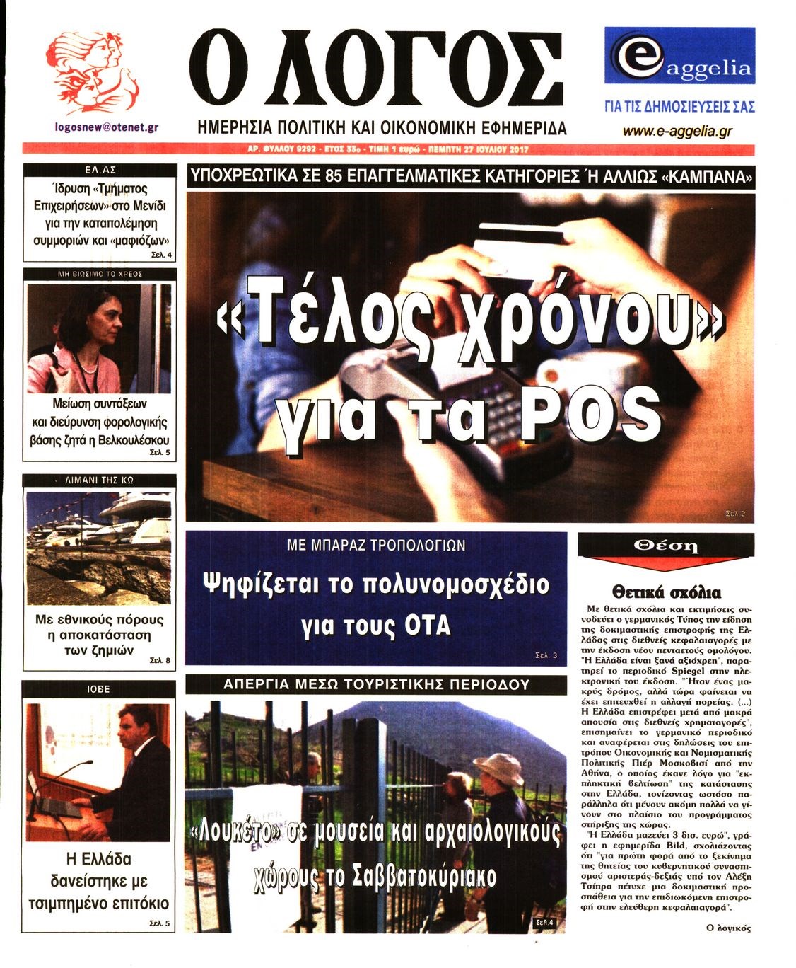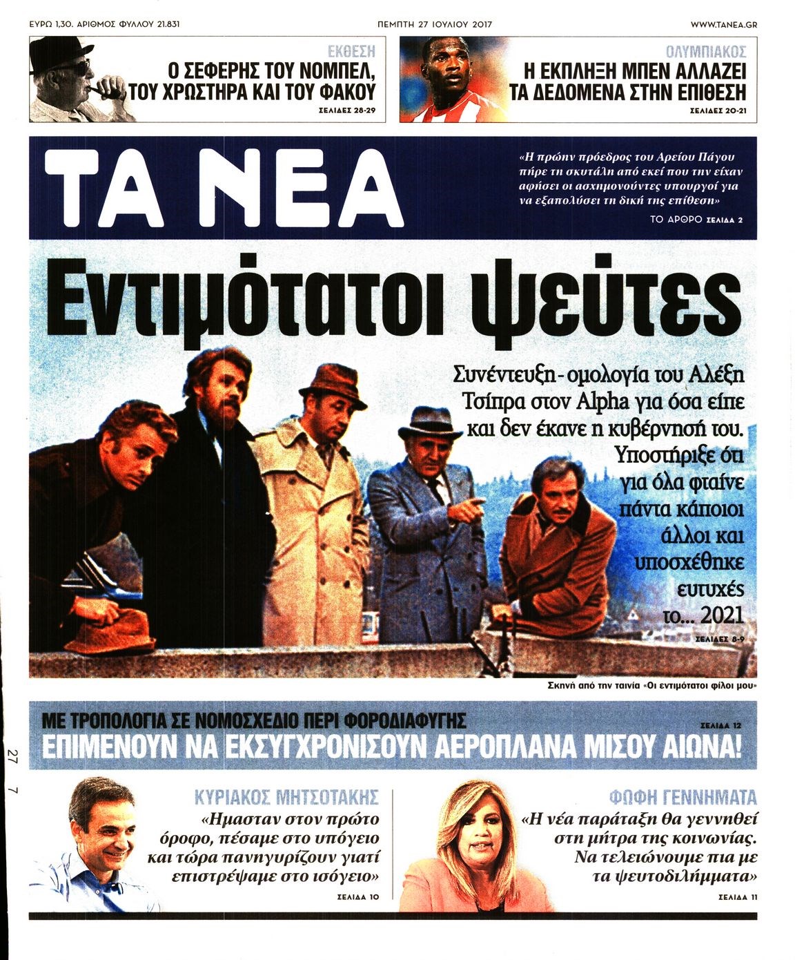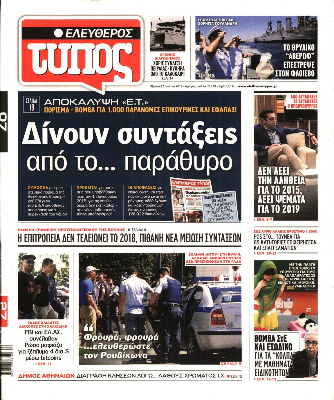 Οι πολιτικές εφημερίδες 27/7/2017 Enikos Newsroom 07:42, Πέμπτη 27 Ιουλίου 2017 Media Διαβάστε τα σημερινά πρωτοσέλιδα των πολιτικών εφημερίδων: ΠΟΛΙΤΙΚΕΣ ΕΦΗΜΕΡΙΔΕΣ ΠΡΩΤΟΣΕΛΙΔΑ Μοιράσου το: σχολίασε κι εσύ (0 σχόλια) Ακολουθήστε το enikos.gr στο Google News και μάθετε πρώτοι όλες τις ειδήσεις Δείτε όλες τις τελευταίες ειδήσεις από την Ελλάδα και τον Κόσμο στο enikos.gr Ειδήσεις Ροή Ειδήσεων 2 ώρες πριν Κλιμακώνουν από σήμερα τις κινητοποιήσεις οι αγρότες: Νέα μπλόκα, κλείσιμο παρακαμπτηρίων και άνοιγμα διοδίων – Το νέο μήνυμα Μητσοτάκη 2 ώρες πριν Ευρωπαϊκό Συμβούλιο: Όλες οι λεπτομέρειες για το δάνειο των 90 δισ. ευρώ στην Ουκρανία – Τα συμπεράσματα της Συνόδου Κορυφής 1 ώρα πριν Νίκος Παππάς: Δρομολογήθηκαν οι διαδικασίες για τη διαγραφή του από τον ΣΥΡΙΖΑ μέσα στις γιορτές 3 ώρες πριν Συντάξεις: Οι κερδισμένοι και οι χαμένοι από τις αυξήσεις – Αναλυτικός οδηγός και παραδείγματα 2 ώρες πριν Peter Greene: Ο πρωταγωνιστής του «Pulp Fiction» είχε τραύματα στο σώμα του όταν βρέθηκε νεκρός στο αιματοβαμμένο διαμέρισμα 2 ώρες πριν Πώς το αρχαίο DNA του κυνηγού – συλλέκτη ξεκλείδωσε τα μυστικά της μακροζωίας 2 ημέρες πριν 20 χρόνια τα Χριστούγεννα ξεκινούν στα Public με μεγάλη ποικιλία σε δώρα! 1 ώρα πριν Ο σύζυγός της συμπεριφέρεται όπως το παιδί τους – «Χρησιμοποιεί αστείες δικαιολογίες για να μην κάνει δουλειές και να ξοδεύει λεφτά» 16 λεπτά πριν Αλλαγή σελίδας για 3 ζώδια – «Μία δύσκολη περίοδος φτάνει στο τέλος της» 1 λεπτό πριν Κόστα σε αγρότες: «Η Ευρώπη σας ακούει» – Μικρή αναβολή στην υπογραφή της συμφωνίας με την Mercosur, λέει η Φον Ντερ Λάιεν 6 λεπτά πριν Ελένη Χατζίδου: «Έχω δεχτεί σεξουαλική παρενόχληση, δεν ήμουν αρκετά γενναία για να το καταγγείλω» – Η αποκάλυψη που σόκαρε τους συνεργάτες της 11 λεπτά πριν Τα νούμερα τηλεθέασης της πρωινής ζώνης – Πρώτο το «Super Κατερίνα» 16 λεπτά πριν Αλλαγή σελίδας για 3 ζώδια – «Μία δύσκολη περίοδος φτάνει στο τέλος της» 25 λεπτά πριν Κρούσμα μηνιγγίτιδας σε Λύκειο των Χανίων – Στο νοσοκομείο μια μαθήτρια ENIKOS NETWORK Πότε μπορεί το χλωμό δέρμα να σχετίζεται με σοβαρή νόσο Ενίσχυση του μεταβολισμού: Η Νο1 άσκηση που πρέπει να κάνουν οι γυναίκες μετά τα 35 Συντάξεις: Οι κερδισμένοι και οι χαμένοι από τις αυξήσεις – Αναλυτικός οδηγός Στεγαστικό: Τι λέει η ΠΟΜΙΔΑ για τα νέα μέτρα που ανακοίνωσε ο Κυριάκος Μητσοτάκης Χαρτογραφώντας το «σημείο χωρίς επιστροφή»: Για πρώτη φορά αποκαλύπτεται με λεπτομέρεια το ακανθώδες όριο της ατμόσφαιρας τ... Η Google καταργεί τη λειτουργία «dark web report» – Πώς θα μπορούν οι χρήστες να διαγράφουν τα δεδομένα τους περισσότερα 08:00 , Παρασκευή 19 Δεκεμβρίου 2025 Την Κυριακή με τη Realnews: Δωροεπιταγή 10€ Δωροεπιταγή αξίας 10€ για αγορές άνω των 60€ από τα πολυκαταστήματα FactoryOutlet H προσφορά ι... 05:48 , Παρασκευή 19 Δεκεμβρίου 2025 Οι οικονομικές εφημερίδες 19/12/2025 Διαβάστε τα πρωτοσέλιδα από τις οικονομικές εφημερίδες, σήμερα 19/12/2025. 05:43 , Παρασκευή 19 Δεκεμβρίου 2025 Οι αθλητικές εφημερίδες 19/12/2025 Διαβάστε τα πρωτοσέλιδα από τις αθλητικές εφημερίδες, σήμερα 19/12/2025. 05:38 , Παρασκευή 19 Δεκεμβρίου 2025 Οι πολιτικές εφημερίδες 19/12/2025 Διαβάστε τα πρωτοσέλιδα από τις πολιτικές εφημερίδες, σήμερα 19/12/2025. ΤΕΛΕΥΤΑΙΕΣ ΕΙΔΗΣΕΙΣ 6 λεπτά πριν Ελένη Χατζίδου: «Έχω δεχτεί σεξουαλική παρενόχληση,... 11 λεπτά πριν Τα νούμερα τηλεθέασης της πρωινής ζώνης – Πρώτο το... 16 λεπτά πριν Αλλαγή σελίδας για 3 ζώδια – «Μία δύσκολη περίοδος... 25 λεπτά πριν Κρούσμα μηνιγγίτιδας σε Λύκειο τ