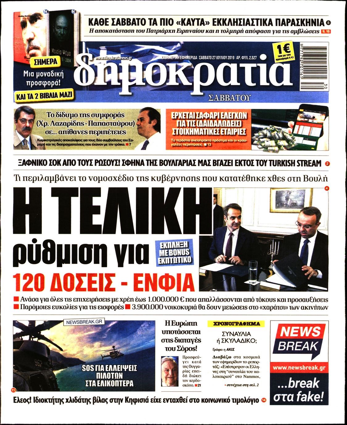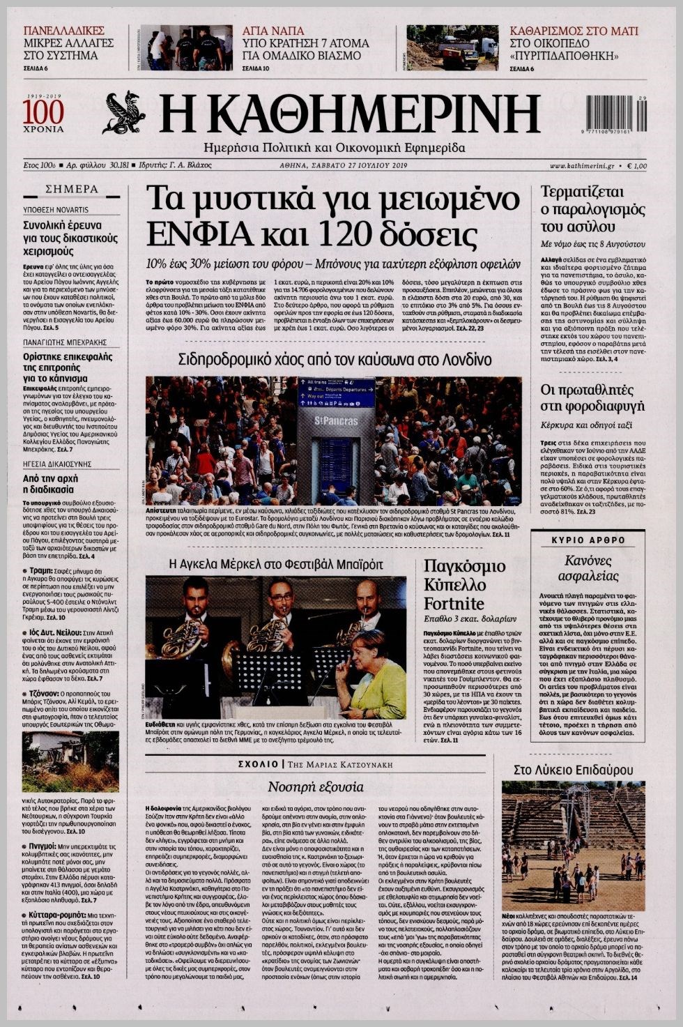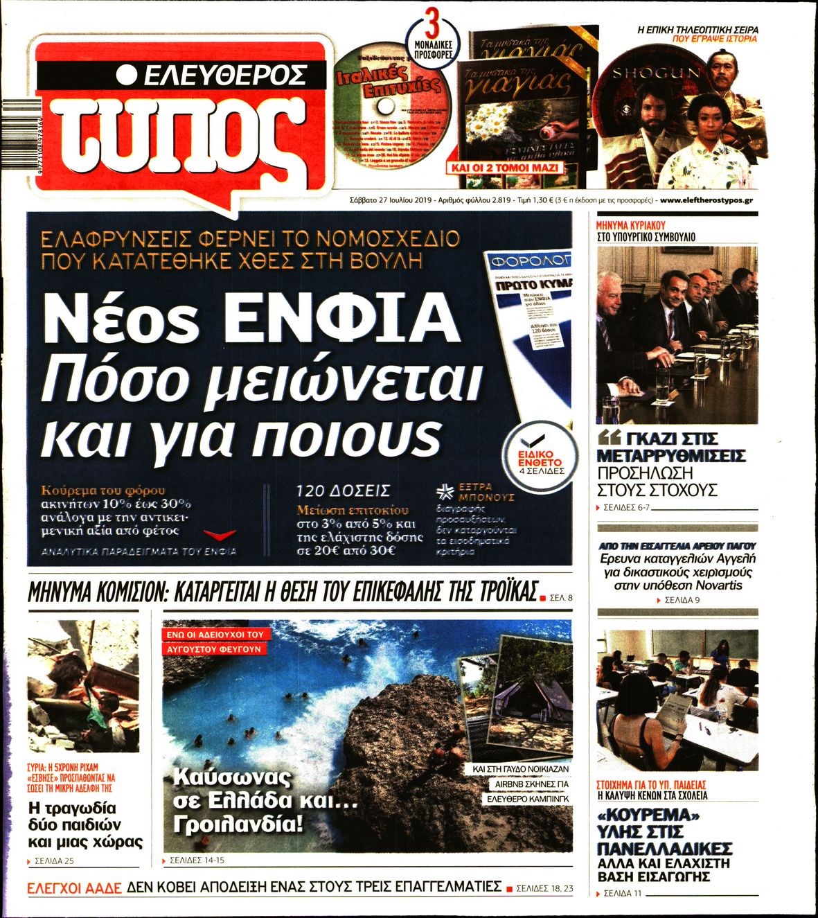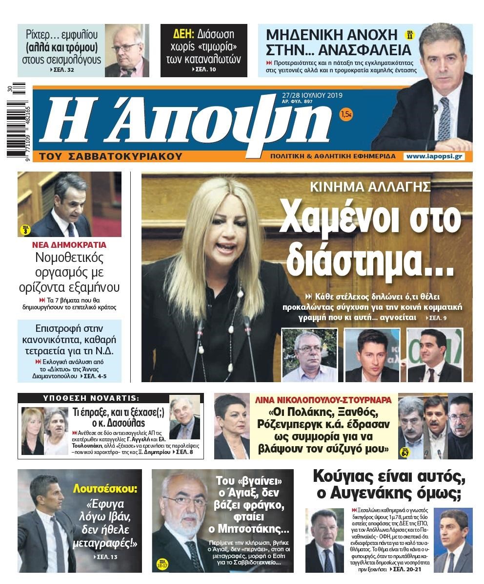 Οι πολιτικές εφημερίδες 27/7/2019 Κώστας Τεό 07:20, Σάββατο 27 Ιουλίου 2019 Media Διαβάστε τα πρωτοσέλιδα των πολιτικών εφημερίδων: ΠΟΛΙΤΙΚΕΣ ΕΦΗΜΕΡΙΔΕΣ ΠΡΩΤΟΣΕΛΙΔΑ Μοιράσου το: σχολίασε κι εσύ (0 σχόλια) Ακολουθήστε το enikos.gr στο Google News και μάθετε πρώτοι όλες τις ειδήσεις Δείτε όλες τις τελευταίες ειδήσεις από την Ελλάδα και τον Κόσμο στο enikos.gr Ειδήσεις Ροή Ειδήσεων 5 ώρες πριν Χριστούγεννα στα μπλόκα: Επιμένουν στις κινητοποιήσεις τους οι αγρότες – Ανοίγουν τα διόδια το Σαββατοκύριακο 5 ώρες πριν Ουκρανία: Η άνευ προηγουμένου επίθεση σε ρωσικό τάνκερ στη Μεσόγειο και το μήνυμα προς στον Πούτιν – Το «μακρύ χέρι» του Κιέβου 4 ώρες πριν Πούτιν: Τα μηνύματα σε Ευρώπη και ΝΑΤΟ από το μαραθώνιο «σόου» του – Η απαίτηση για «σεβασμό» και η ειρήνη «με τους όρους» της Μόσχας 5 ώρες πριν Τραμπ: Δεν αποκλείει την πιθανότητα ενός πολέμου στη Βενεζουέλα – «Ο Μαδούρο ξέρει καλύτερα από τον καθένα τι ακριβώς θέλω» 6 ώρες πριν Συνεχίζει να προκαλεί ο Μίτσκοσκι: «Για μένα το όνομα Μακεδονία είναι ιερό» 4 ώρες πριν Ανακαλύφθηκαν αρχαία χρυσά νομίσματα 2.200 ετών που απεικονίζουν τον θεό Απόλλωνα – Η άγνωστη σύνδεση με τον Φίλιππο Β΄ της Μακεδονίας 5 ώρες πριν Ύπνος: Μια κρυφή κατάσταση του εγκεφάλου πριν από τον ύπνο μπορεί να είναι το “κλειδί” για υψηλή ευφυΐα και δημιουργικότητα 6 ώρες πριν Αριθμολογία: Οι άνθρωποι που έχουν γεννηθεί αυτές τις 4 ημερομηνίες, συχνά παρεξηγούνται – «Η καλοσύνη τους κρύβει τεράστια δύναμη» 7 ώρες πριν Ξεχάστε το καθάρισμα το Σαββατοκύριακο: Ο «κανόνας των 20 λεπτών» που θα σας λύσει τα χέρια 3 λεπτά πριν Ταμίλα Κουλίεβα: «Δεν θέλω να είμαι κάποια που πορεύεται συνεχώς με τις ίδιες αναφορές» 18 λεπτά πριν Η Ελλάδα προσχωρεί στη Διεθνή Επιτροπή Αποζημιώσεων για την Ουκρανία 32 λεπτά πριν GNTM: Η Ξένια Τσίρκοβα αναδείχθηκε μεγάλη νικήτρια και πήρε τις 50.000 ευρώ – Ποιος βρέθηκε σε απόσταση αναπνοής; 47 λεπτά πριν Θεσσαλονίκη: Εξαφανίστηκε 13χρονος από χώρο φιλοξενίας ασυνόδευτων ανηλίκων στο Ωραιόκαστρο 58 λεπτά πριν Ντόναλντ Τραμπ: «Πολύ βαριά αντίποινα» στη Συρία – «Πλήττουμε πολύ δυνατά οχυρά του Ισλαμικού Κράτους» ENIKOS NETWORK Το ΕΚΑΒ τιμήθηκε από την Ακαδημία Αθηνών για τα 40 χρόνια προσφοράς του Έχετε πραγματικά μεγάλη καρδιά; 10 χαρακτηριστικά όσων έχουν καλοσύνη Αναστολή μέτρων αναγκαστικής εκτέλεσης για κτηνοτρόφους που πλήττονται από την ευλογιά των αιγοπροβάτων Πλήρης επάρκεια προϊόντων στις λαϊκές της Αττικής, παρά τις αγροτικές κινητοποιήσεις – Τι απαντούν οι πωλητές Χαρτογραφώντας το «σημείο χωρίς επιστροφή»: Για πρώτη φορά αποκαλύπτεται με λεπτομέρεια το ακανθώδες όριο της ατμόσφαιρας τ... Η Google καταργεί τη λειτουργία «dark web report» – Πώς θα μπορούν οι χρήστες να διαγράφουν τα δεδομένα τους περισσότερα 02:50 , Σάββατο 20 Δεκεμβρίου 2025 GNTM: Η Ξένια Τσίρκοβα αναδείχθηκε μεγάλη νικήτρια και πήρε τις 50.000 ευρώ – Ποιος βρέθηκε σε απόσταση αναπνοής; Με φαντασμαγορικό τρόπο ολοκληρώθηκε το βράδυ της Παρασκευής ο μεγάλος τελικός του GNTM, μέσα ... 22:42 , Παρασκευή 19 Δεκεμβρίου 2025 Γιώργος Γιαννόπουλος για “Το σόι σου”: “Είναι ευτυχία και ευλογία αυτή η σειρά” «Είναι ευτυχία και ευλογία η συγκυρία αυτής της σειράς», θα πει ο Γιώργος Γιαννόπουλος -ο αγαπ... 20:37 , Παρασκευή 19 Δεκεμβρίου 2025 Don’t Forget The Lyrics: Η Έλλη Κοκκίνου υποδέχεται 4 παίκτες που θα κάνουν τα πάντα για να μη χάσουν ούτε… μισή λέξη από τους στίχους Το «Don’t Forget The Lyrics» επιστρέφει απόψε, Παρασκ