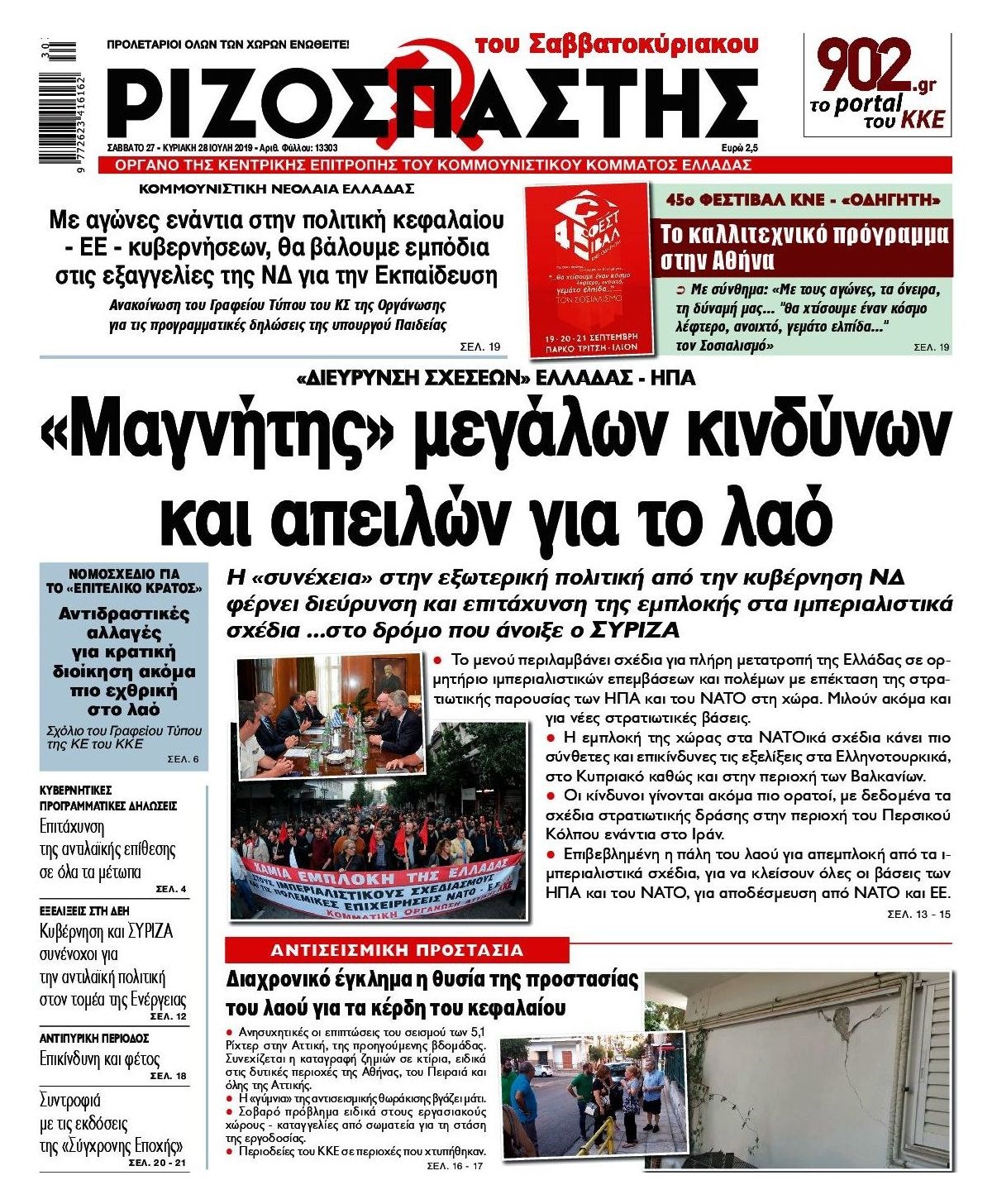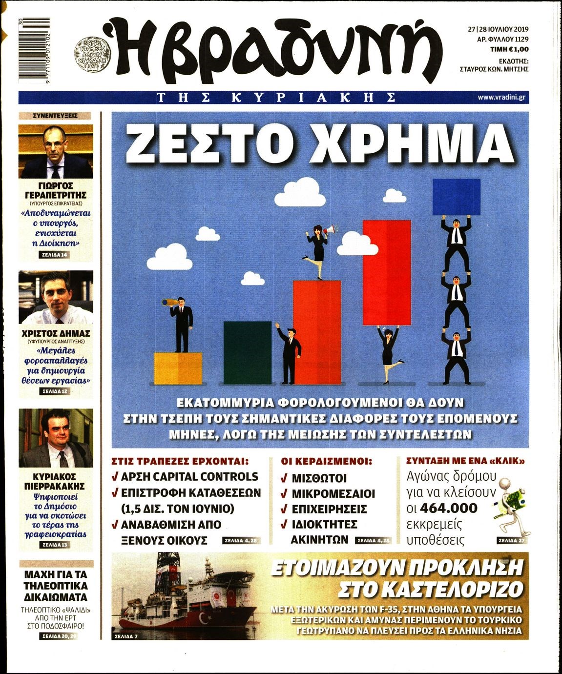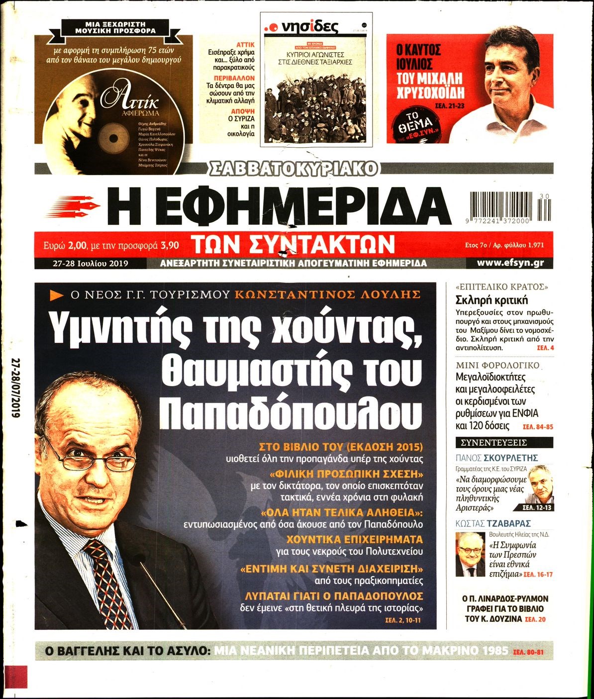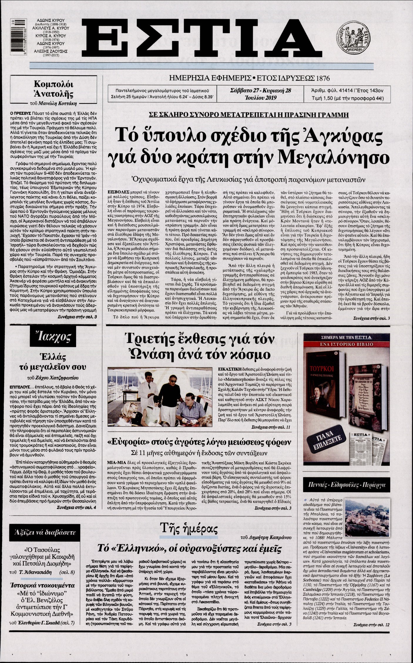 Οι πολιτικές εφημερίδες 27/7/2019 Κώστας Τεό 07:20, Σάββατο 27 Ιουλίου 2019 Media Διαβάστε τα πρωτοσέλιδα των πολιτικών εφημερίδων: ΠΟΛΙΤΙΚΕΣ ΕΦΗΜΕΡΙΔΕΣ ΠΡΩΤΟΣΕΛΙΔΑ Μοιράσου το: σχολίασε κι εσύ (0 σχόλια) Ακολουθήστε το enikos.gr στο Google News και μάθετε πρώτοι όλες τις ειδήσεις Δείτε όλες τις τελευταίες ειδήσεις από την Ελλάδα και τον Κόσμο στο enikos.gr Ειδήσεις Ροή Ειδήσεων 5 ώρες πριν Χριστούγεννα στα μπλόκα: Επιμένουν στις κινητοποιήσεις τους οι αγρότες – Ανοίγουν τα διόδια το Σαββατοκύριακο 5 ώρες πριν Ουκρανία: Η άνευ προηγουμένου επίθεση σε ρωσικό τάνκερ στη Μεσόγειο και το μήνυμα προς στον Πούτιν – Το «μακρύ χέρι» του Κιέβου 4 ώρες πριν Πούτιν: Τα μηνύματα σε Ευρώπη και ΝΑΤΟ από το μαραθώνιο «σόου» του – Η απαίτηση για «σεβασμό» και η ειρήνη «με τους όρους» της Μόσχας 5 ώρες πριν Τραμπ: Δεν αποκλείει την πιθανότητα ενός πολέμου στη Βενεζουέλα – «Ο Μαδούρο ξέρει καλύτερα από τον καθένα τι ακριβώς θέλω» 6 ώρες πριν Συνεχίζει να προκαλεί ο Μίτσκοσκι: «Για μένα το όνομα Μακεδονία είναι ιερό» 4 ώρες πριν Ανακαλύφθηκαν αρχαία χρυσά νομίσματα 2.200 ετών που απεικονίζουν τον θεό Απόλλωνα – Η άγνωστη σύνδεση με τον Φίλιππο Β΄ της Μακεδονίας 5 ώρες πριν Ύπνος: Μια κρυφή κατάσταση του εγκεφάλου πριν από τον ύπνο μπορεί να είναι το “κλειδί” για υψηλή ευφυΐα και δημιουργικότητα 6 ώρες πριν Αριθμολογία: Οι άνθρωποι που έχουν γεννηθεί αυτές τις 4 ημερομηνίες, συχνά παρεξηγούνται – «Η καλοσύνη τους κρύβει τεράστια δύναμη» 7 ώρες πριν Ξεχάστε το καθάρισμα το Σαββατοκύριακο: Ο «κανόνας των 20 λεπτών» που θα σας λύσει τα χέρια 3 λεπτά πριν Ταμίλα Κουλίεβα: «Δεν θέλω να είμαι κάποια που πορεύεται συνεχώς με τις ίδιες αναφορές» 18 λεπτά πριν Η Ελλάδα προσχωρεί στη Διεθνή Επιτροπή Αποζημιώσεων για την Ουκρανία 32 λεπτά πριν GNTM: Η Ξένια Τσίρκοβα αναδείχθηκε μεγάλη νικήτρια και πήρε τις 50.000 ευρώ – Ποιος βρέθηκε σε απόσταση αναπνοής; 47 λεπτά πριν Θεσσαλονίκη: Εξαφανίστηκε 13χρονος από χώρο φιλοξενίας ασυνόδευτων ανηλίκων στο Ωραιόκαστρο 58 λεπτά πριν Ντόναλντ Τραμπ: «Πολύ βαριά αντίποινα» στη Συρία – «Πλήττουμε πολύ δυνατά οχυρά του Ισλαμικού Κράτους» ENIKOS NETWORK Το ΕΚΑΒ τιμήθηκε από την Ακαδημία Αθηνών για τα 40 χρόνια προσφοράς του Έχετε πραγματικά μεγάλη καρδιά; 10 χαρακτηριστικά όσων έχουν καλοσύνη Αναστολή μέτρων αναγκαστικής εκτέλεσης για κτηνοτρόφους που πλήττονται από την ευλογιά των αιγοπροβάτων Πλήρης επάρκεια προϊόντων στις λαϊκές της Αττικής, παρά τις αγροτικές κινητοποιήσεις – Τι απαντούν οι πωλητές Χαρτογραφώντας το «σημείο χωρίς επιστροφή»: Για πρώτη φορά αποκαλύπτεται με λεπτομέρεια το ακανθώδες όριο της ατμόσφαιρας τ... Η Google καταργεί τη λειτουργία «dark web report» – Πώς θα μπορούν οι χρήστες να διαγράφουν τα δεδομένα τους περισσότερα 02:50 , Σάββατο 20 Δεκεμβρίου 2025 GNTM: Η Ξένια Τσίρκοβα αναδείχθηκε μεγάλη νικήτρια και πήρε τις 50.000 ευρώ – Ποιος βρέθηκε σε απόσταση αναπνοής; Με φαντασμαγορικό τρόπο ολοκληρώθηκε το βράδυ της Παρασκευής ο μεγάλος τελικός του GNTM, μέσα ... 22:42 , Παρασκευή 19 Δεκεμβρίου 2025 Γιώργος Γιαννόπουλος για “Το σόι σου”: “Είναι ευτυχία και ευλογία αυτή η σειρά” «Είναι ευτυχία και ευλογία η συγκυρία αυτής της σειράς», θα πει ο Γιώργος Γιαννόπουλος -ο αγαπ... 20:37 , Παρασκευή 19 Δεκεμβρίου 2025 Don’t Forget The Lyrics: Η Έλλη Κοκκίνου υποδέχεται 4 παίκτες που θα κάνουν τα πάντα για να μη χάσουν ούτε… μισή λέξη από τους στίχους Το «Don’t Forget The Lyrics» επιστρέφει απόψε, Παρασκ