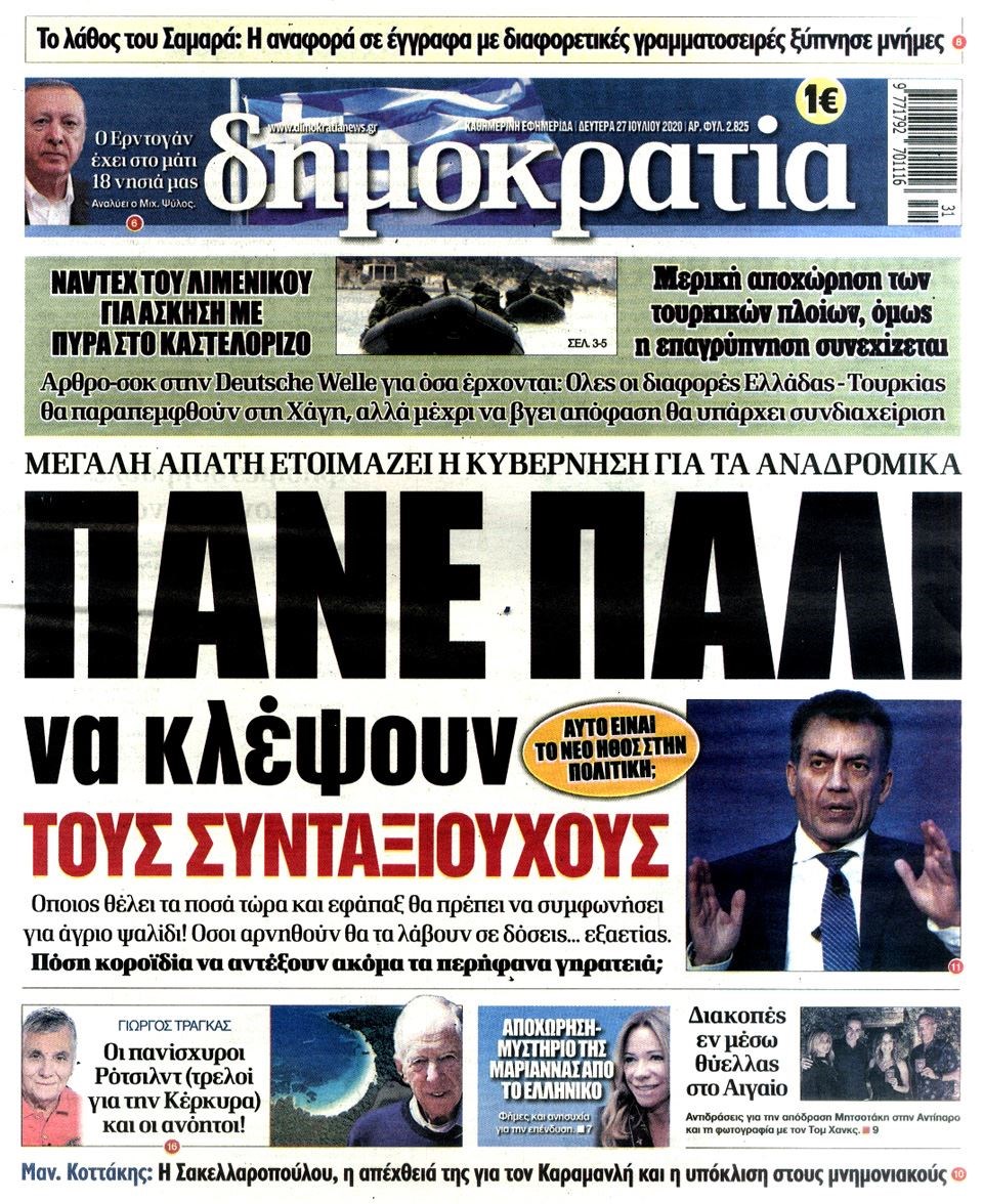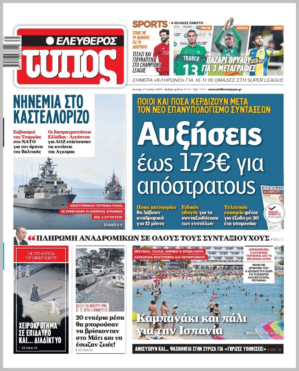 Οι πολιτικές εφημερίδες 27/7/2020 Κώστας Τεό 06:45, Δευτέρα 27 Ιουλίου 2020 Media Διαβάστε τα πρωτοσέλιδα των πολιτικών εφημερίδων: ΠΟΛΙΤΙΚΕΣ ΕΦΗΜΕΡΙΔΕΣ ΠΡΩΤΟΣΕΛΙΔΑ Μοιράσου το: σχολίασε κι εσύ (0 σχόλια) Ακολουθήστε το enikos.gr στο Google News και μάθετε πρώτοι όλες τις ειδήσεις Δείτε όλες τις τελευταίες ειδήσεις από την Ελλάδα και τον Κόσμο στο enikos.gr Ειδήσεις Ροή Ειδήσεων 10 λεπτά πριν Χριστούγεννα στα μπλόκα: Επιμένουν στις κινητοποιήσεις τους οι αγρότες – Ανοίγουν τα διόδια το Σαββατοκύριακο 38 λεπτά πριν Τραμπ: Δεν αποκλείει την πιθανότητα ενός πολέμου στη Βενεζουέλα – «Ο Μαδούρο ξέρει καλύτερα από τον καθένα τι ακριβώς θέλω» 33 λεπτά πριν Ουκρανία: Η άνευ προηγουμένου επίθεση σε ρωσικό τάνκερ στη Μεσόγειο και το μήνυμα προς στον Πούτιν – Το «μακρύ χέρι» του Κιέβου 3 ώρες πριν Πούτιν: «Ναι, είμαι ερωτευμένος» – Βίντεο από τη σπάνια προσωπική παραδοχή του 1 ώρα πριν Συνεχίζει να προκαλεί ο Μίτσκοσκι: «Για μένα το όνομα Μακεδονία είναι ιερό» 2 ώρες πριν Αριθμολογία: Οι άνθρωποι που έχουν γεννηθεί αυτές τις 4 ημερομηνίες, συχνά παρεξηγούνται – «Η καλοσύνη τους κρύβει τεράστια δύναμη» 4 ώρες πριν Μήπως έχετε χάσει τον εαυτό σας στη σχέση σας; 7 «αθόρυβες» υποχωρήσεις που μάλλον κάνατε, χωρίς να το συνειδητοποιήσετε 3 ώρες πριν Ξεχάστε το καθάρισμα το Σαββατοκύριακο: Ο «κανόνας των 20 λεπτών» που θα σας λύσει τα χέρια 48 λεπτά πριν Ύπνος: Μια κρυφή κατάσταση του εγκεφάλου πριν από τον ύπνο μπορεί να είναι το “κλειδί” για υψηλή ευφυΐα και δημιουργικότητα 6 λεπτά πριν Γιώργος Γιαννόπουλος για “Το σόι σου”: “Είναι ευτυχία και ευλογία αυτή η σειρά” 10 λεπτά πριν Χριστούγεννα στα μπλόκα: Επιμένουν στις κινητοποιήσεις τους οι αγρότες – Ανοίγουν τα διόδια το Σαββατοκύριακο 21 λεπτά πριν Χάρι και Μέγκαν: Η σπάνια οικογενειακή φωτογραφία με τον Άρτσι και τη Λίλιμπετ – Τι σχεδιάζουν για τα Χριστούγεννα 28 λεπτά πριν Βασίλης Καρράς: «Είναι πάντα δίπλα μου, δεν έφυγε…», λέει ο αδελφός του 33 λεπτά πριν Ουκρανία: Η άνευ προηγουμένου επίθεση σε ρωσικό τάνκερ στη Μεσόγειο και το μήνυμα προς στον Πούτιν – Το «μακρύ χέρι» του Κιέβου ENIKOS NETWORK Το ΕΚΑΒ τιμήθηκε από την Ακαδημία Αθηνών για τα 40 χρόνια προσφοράς του Έχετε πραγματικά μεγάλη καρδιά; 10 χαρακτηριστικά όσων έχουν καλοσύνη Πλήρης επάρκεια προϊόντων στις λαϊκές της Αττικής, παρά τις αγροτικές κινητοποιήσεις – Τι απαντούν οι πωλητές ΑΑΔΕ: Νέες αναβαθμίσεις στο Ψηφιακό Πελατολόγιο και την εφαρμογή myDATAapp – Τι πρέπει να γνωρίζετε Χαρτογραφώντας το «σημείο χωρίς επιστροφή»: Για πρώτη φορά αποκαλύπτεται με λεπτομέρεια το ακανθώδες όριο της ατμόσφαιρας τ... Η Google καταργεί τη λειτουργία «dark web report» – Πώς θα μπορούν οι χρήστες να διαγράφουν τα δεδομένα τους περισσότερα 22:42 , Παρασκευή 19 Δεκεμβρίου 2025 Γιώργος Γιαννόπουλος για “Το σόι σου”: “Είναι ευτυχία και ευλογία αυτή η σειρά” «Είναι ευτυχία και ευλογία η συγκυρία αυτής της σειράς», θα πει ο Γιώργος Γιαννόπουλος -ο αγαπ... 20:37 , Παρασκευή 19 Δεκεμβρίου 2025 Don’t Forget The Lyrics: Η Έλλη Κοκκίνου υποδέχεται 4 παίκτες που θα κάνουν τα πάντα για να μη χάσουν ούτε… μισή λέξη από τους στίχους Το «Don’t Forget The Lyrics» επιστρέφει απόψε, Παρασκευή 19 Δεκεμβρίου, στις 21:00 με νέο επει... 19:31 , Παρασκευή 19 Δεκεμβρίου 2025 GNTM: Απόψε ο μεγάλος τελικός για τους 4 φιναλίστ Έπειτα από μήνες γεμάτους μόδα, δημιουργία και έντονες αναμετρήσεις, το GNTM 2025 κορυφώνεται,... 18:11 , Παρασκευή 19 Δεκεμβρίου 2025 Το σόι σου: Ο Άρης έρχε