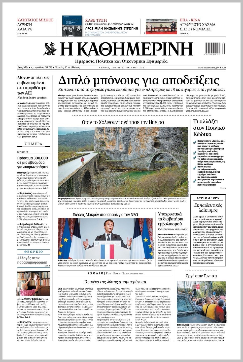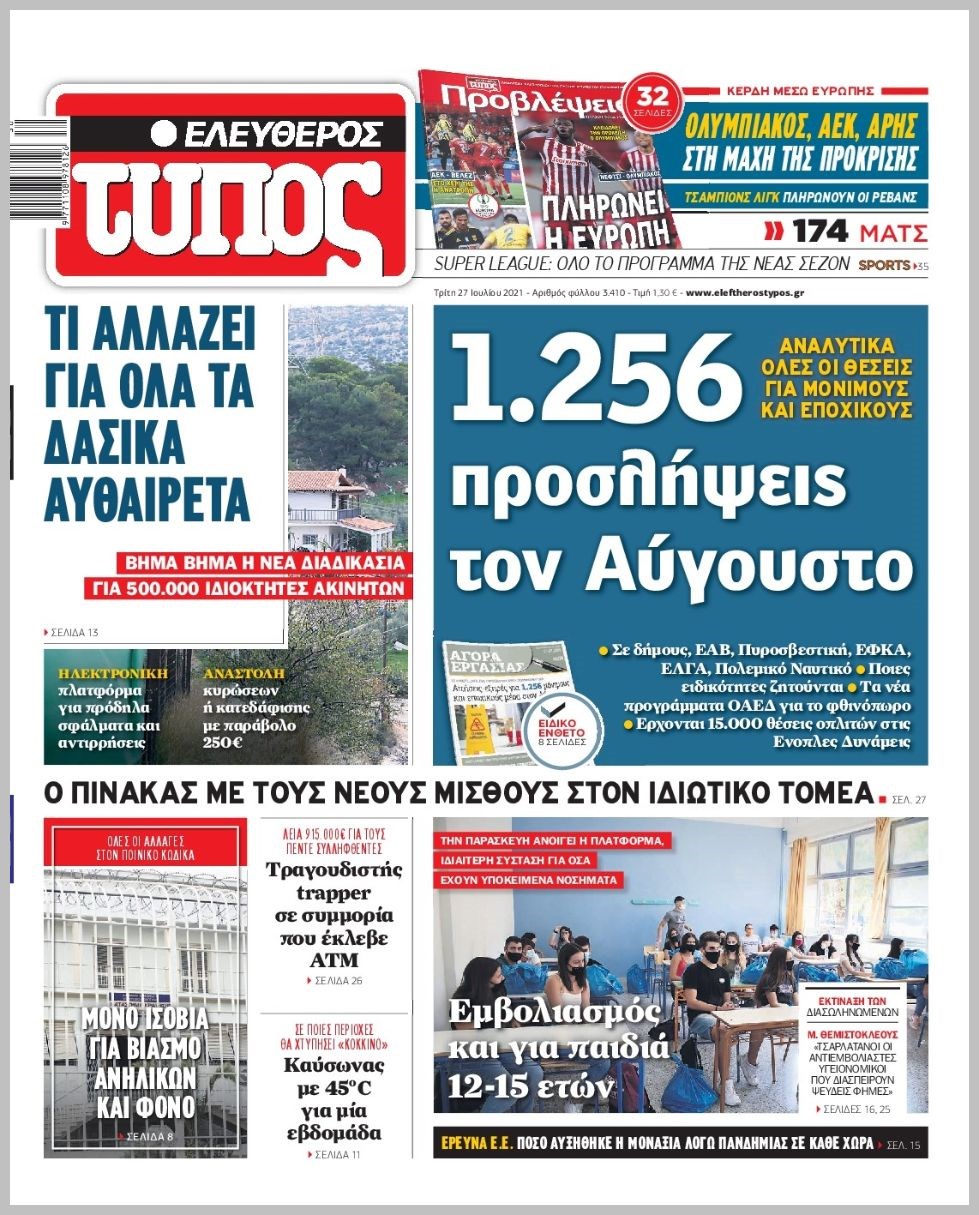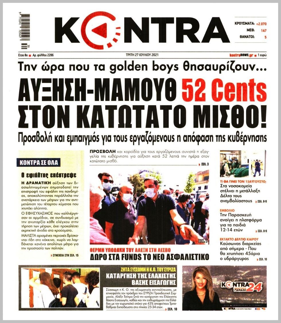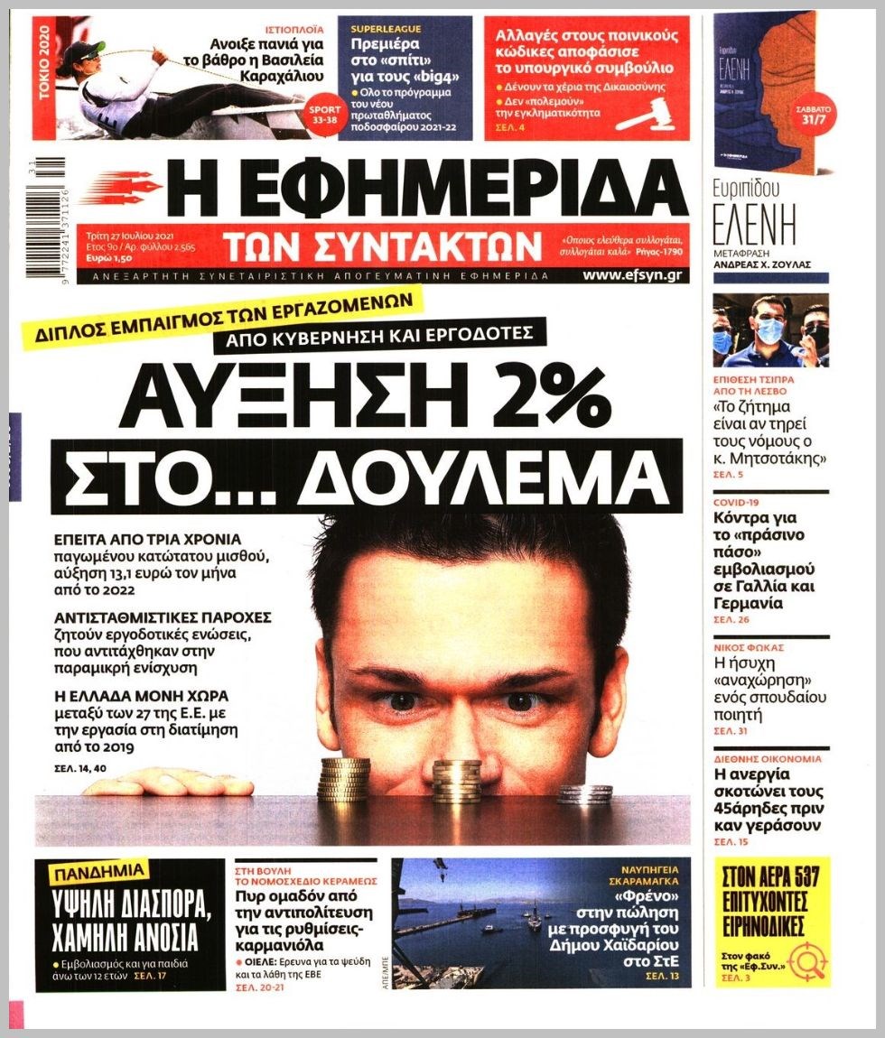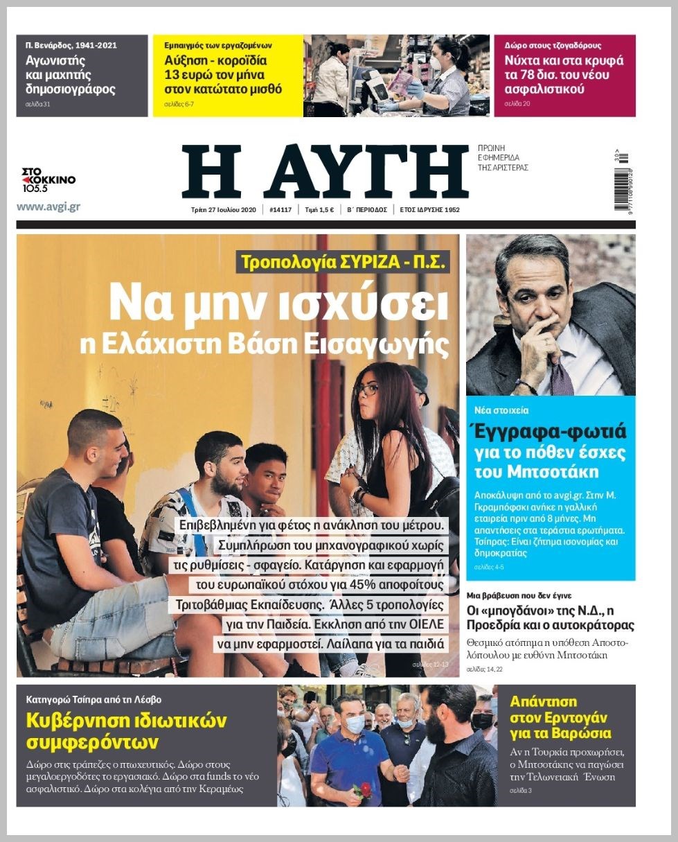 Οι πολιτικές εφημερίδες 27/7/2021 Διονύσης Νίκκας 06:24, Τρίτη 27 Ιουλίου 2021 Media Διαβάστε τα πρωτοσέλιδα των πολιτικών εφημερίδων… ΕΦΗΜΕΡΙΔΕΣ ΠΡΩΤΟΣΕΛΙΔΑ Μοιράσου το: σχολίασε κι εσύ (0 σχόλια) Ακολουθήστε το enikos.gr στο Google News και μάθετε πρώτοι όλες τις ειδήσεις Δείτε όλες τις τελευταίες ειδήσεις από την Ελλάδα και τον Κόσμο στο enikos.gr Ειδήσεις Ροή Ειδήσεων 3 ώρες πριν Υπόθεση Έπσταϊν: Το Υπουργείο Δικαιοσύνης δημοσιοποίησε μια σειρά από εξαιρετικά επεξεργασμένα αρχεία – «Λείπουν τα πιο σημαντικά έγγραφα», λένε οι Δημοκρατικοί 35 λεπτά πριν Γιορτές με μπλόκα για τους αγρότες: Ανοίγουν διόδια και μοιράζουν προϊόντα στους ταξιδιώτες 1 ώρα πριν Εξαφάνιση 33χρονου γιατρού στην Κρήτη: «Άναψα τα φώτα, τρόμαξε και άρχισε να τρέχει στα χωράφια» – Η τελευταία διαδρομή και η μαρτυρία «κλειδί» 3 ώρες πριν Ο «χάρτης» με τις αυξήσεις και τις φοροελαφρύνσεις του 2026 – Ποιοι και πόσα κερδίζουν 51 λεπτά πριν Τα αρχεία του Έπσταϊν αποκαλύπτουν φωτογραφία του έκπτωτου πρίγκιπα Άντριου – Είναι ξαπλωμένος στην αγκαλιά 5 γυναικών 58 λεπτά πριν Μία νέα «χρυσή» περίοδος αρχίζει για 3 ζώδια από σήμερα – «Μία αναπάντεχη ευκαιρία οδηγεί στην επιτυχία» 5 ώρες πριν Αυγά: Πόσα μπορείτε να τρώτε την ημέρα με ασφάλεια για μέγιστη πρόσληψη πρωτεΐνης 3 ώρες πριν Αρχαιολόγοι ανακάλυψαν σε χωράφι απεικόνιση 600 ετών ενός Αγίου – Τα στοιχεία που δείχνουν ότι μαρτύρησε 2 ώρες πριν Αγχώνεται για το χριστουγεννιάτικο δώρο που πήρε στην πλούσια σύντροφό του – «Φοβάμαι πως θα το βρει φθηνιάρικο, φοράει βραχιόλια Cartier» 8 λεπτά πριν Οι 7 φράσεις που δεν λένε ποτέ οι συναισθηματικά έξυπνοι άνθρωποι κατά τη διάρκεια ενός καβγά 12 λεπτά πριν Τηλεθέαση (19/12): Ανατροπές και πρωτιές στην πρωινή ζώνη 19 λεπτά πριν Πώς η κλιματική αλλαγή επηρεάζει εγκύους και βρέφη – Οι επιπτώσεις των υψηλών θερμοκρασιών 27 λεπτά πριν e-ΕΦΚΑ και ΔΥΠΑ: Οι πληρωμές από 22 έως 24 Δεκεμβρίου – Ποιοι θα δουν χρήματα στους λογαριασμούς τους 35 λεπτά πριν Συνελήφθη οδηγός μηχανής που έτρεχε με 161 χλμ στη Συγγρού – Τον έπιασε το ραντάρ της Τροχαίας ENIKOS NETWORK Είστε μόνιμα απρόσεκτοι; 3 σημάδια που δείχνουν ότι μπορεί να είναι σύμπτωμα πάθησης Πόσα κιλά παίρνουμε πραγματικά τα Χριστούγεννα, σύμφωνα με την επιστήμη – Πώς να το αποτρέψουμε; Επίδομα παιδιού: Τι αλλάζει από το 2026 – Το όφελος από τις φορολογικές ελαφρύνσεις Mega χριστουγεννιάτικη φορολοταρία: «Κλείδωσε» η ημερομηνία για την κλήρωση – Ερωτήσεις και απαντήσεις Χαρτογραφώντας το «σημείο χωρίς επιστροφή»: Για πρώτη φορά αποκαλύπτεται με λεπτομέρεια το ακανθώδες όριο της ατμόσφαιρας τ... Η Google καταργεί τη λειτουργία «dark web report» – Πώς θα μπορούν οι χρήστες να διαγράφουν τα δεδομένα τους περισσότερα 09:30 , Σάββατο 20 Δεκεμβρίου 2025 «Porto Leone: Στη γειτονιά με τα κόκκινα φανάρια» – Ο Χρόνης αποκαλύπτει στην Αλεξάνδρα το μυστικό για το παιδί της Λένας Η μεγάλη δραματική σειρά του Apha «Porto Leone: Στη γειτονιά με τα κόκκινα φανάρια» μας μεταφέ... 08:14 , Σάββατο 20 Δεκεμβρίου 2025 Τρομεροί γονείς: Η Μαρία Καβογιάννη εισβάλλει στο σπίτι της οικογένειας Στεφανίδη Όσα θα δούμε στο νέο διπλό επεισόδιο της σειράς «Τρομεροί γονείς», σήμερα Σάββατο 20 Δεκεμβρίο... 05:48 , Σάββατο 20 Δεκεμβρίου 2025 Οι οικονομικές εφημερίδες 20/12/2025 Διαβάστε τα πρωτοσέλιδα από τις οικονομικές εφημερίδες, σήμερα 20/12/2025. 05:43 , Σάββατο 20 Δεκεμβρίου 2025 Οι αθλητικές εφημερίδες 20/12/2025 Διαβάστε τα πρωτοσέλιδα από τις αθλητικές εφημερίδε