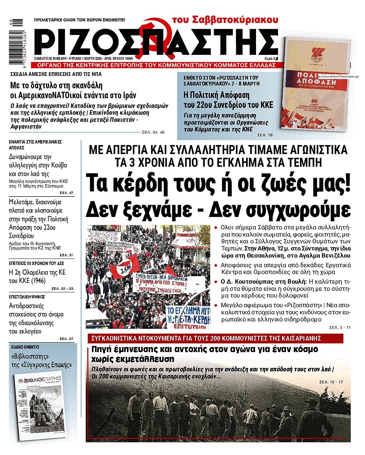Οι πολιτικές εφημερίδες 28/2/2026 Enikos Newsroom 05:38, Σάββατο 28 Φεβρουαρίου 2026 Media Διαβάστε τα πρωτοσέλιδα από τις πολιτικές εφημερίδες, σήμερα 28/2/2026. ΕΦΗΜΕΡΙΔΕΣ ΠΟΛΙΤΙΚΕΣ ΕΦΗΜΕΡΙΔΕΣ ΠΡΩΤΟΣΕΛΙΔΑ Μοιράσου το: Ο Ντοναλντ Τραμπ προειδοποιεί ότι επίκειται «μεγάλη απόφαση» για το Ιράν – Αποχωρήσεις από πρεσβείες και διακοπή πτήσεων Βολιβία: Συντριβή μεταγωγικού αεροσκάφους της πολεμικής αεροπορίας με τουλάχιστον 15 νεκρούς – Απόπειρα λεηλασίας των χαρτονομισμάτων που μετέφερε – Δείτε φώτο και βίντεο ΗΠΑ: Το Πακιστάν έχει δικαίωμα να αμύνεται έναντι των επιθέσεων των Ταλιμπάν σχολίασε κι εσύ (0 σχόλια) Ακολουθήστε το enikos.gr στο Google News και μάθετε πρώτοι όλες τις ειδήσεις Δείτε όλες τις τελευταίες ειδήσεις από την Ελλάδα και τον Κόσμο στο enikos.gr Ειδήσεις Ροή Ειδήσεων 8 ώρες πριν Λουτράκι: Για ασήμαντη αφορμή η αιματηρή συμπλοκή με θύμα τον 17χρονο – «Εγώ το έκανα» είπε ο δράστης στους αστυνομικούς πριν παραδοθεί 15 λεπτά πριν Τρία χρόνια από την τραγωδία στα Τέμπη: Συγκεντρώσεις σήμερα σε Ελλάδα και εξωτερικό – Έκτακτες κυκλοφοριακές ρυθμίσεις – Πώς θα κινηθούν τα ΜΜΜ 9 ώρες πριν Δυστύχημα στο «Ελ. Βενιζέλος»: Ποια ήταν η «αγωνίστρια της προσφοράς» Μαρία Λαδά που έχασε τη ζωή της – Πώς έγινε η τραγωδία 3 ώρες πριν Ο Ντοναλντ Τραμπ προειδοποιεί ότι επίκειται «μεγάλη απόφαση» για το Ιράν – Αποχωρήσεις από πρεσβείες και διακοπή πτήσεων 4 ώρες πριν Βολιβία: Συντριβή μεταγωγικού αεροσκάφους της πολεμικής αεροπορίας με τουλάχιστον 15 νεκρούς – Απόπειρα λεηλασίας των χαρτονομισμάτων που μετέφερε – Δείτε φώτο και βίντεο 51 λεπτά πριν Οπτική ψευδαίσθηση: Μόνο όσοι έχουν τέλεια όραση μπορούν να εντοπίσουν το δαχτυλίδι μέσα σε 12 δευτερόλεπτα 1 ώρα πριν Καρκίνος: Οι τροφές που μπορούν να μειώσουν τον κίνδυνο εμφάνισης 6 τύπων της νόσου, σύμφωνα με μελέτη 4 ώρες πριν Ζώδια 28/2: Ημερήσιες προβλέψεις – Λέοντες, οι σχέσεις σας γίνονται πιο σοβαρές τώρα 9 ώρες πριν Η συνήθεια πριν από τον ύπνο που βελτιώνει θεαματικά την ξεκούρασή σας, σύμφωνα με ειδικούς 15 λεπτά πριν Τρία χρόνια από την τραγωδία στα Τέμπη: Συγκεντρώσεις σήμερα σε Ελλάδα και εξωτερικό – Έκτακτες κυκλοφοριακές ρυθμίσεις – Πώς θα κινηθούν τα ΜΜΜ 31 λεπτά πριν ΔΕΔΔΗΕ: Διακοπές ρεύματος σήμερα (28/2) στην Αθήνα και σε άλλες 13 περιοχές της Αττικής 46 λεπτά πριν Υπόθεση Επστάιν: Με αιχμές κατά του Ντόναλντ Τραμπ η κατάθεση του Μπιλ Κλίντον 51 λεπτά πριν Οπτική ψευδαίσθηση: Μόνο όσοι έχουν τέλεια όραση μπορούν να εντοπίσουν το δαχτυλίδι μέσα σε 12 δευτερόλεπτα 1 ώρα πριν Καρκίνος: Οι τροφές που μπορούν να μειώσουν τον κίνδυνο εμφάνισης 6 τύπων της νόσου, σύμφωνα με μελέτη ENIKOS NETWORK Ο καλύτερος τρόπος για να αποθηκεύετε τις πατάτες – Δεν θα βγάζουν ρίζες Το όσπριο που δεν έτρωγε ποτέ ο Πυθαγόρας μπορεί να βοηθήσει με την απώλεια βάρους και να ενισχύσει τα οστά Το σχέδιο για ταχύτερη απονομή των εφάπαξ στο Δημόσιο – Οι 1.000 εκκρεμείς υποθέσεις και η ομάδα κρούσης που συγκροτείται e- ΕΦΚΑ: Σε λειτουργία η νέα εφαρμογή για το εργόσημο ΟΓΑ – Οι δυνατότητες που δίνει Ευπάθεια στο moltbook ai αποκαλύπτει email, tokens σύνδεσης και api keys Αυτός είναι ο ρόλος της μικρής τρύπας στους νυχοκόπτες – «Είμαι ο μόνος που δεν το ήξερε;»» περισσότερα 04:35 , Σάββατο 28 Φεβρουαρίου 2026 Μαρία Μπακοδήμου για τον «Πιο αδύναμο κρίκο»: «Είναι παιχνίδι στρατηγικής όχι μόνο γνώσεων» Η Μαρία Μπακοδήμου ανυπομονεί για την επιστροφή του δημοφιλούς τηλεπαιχνιδιο