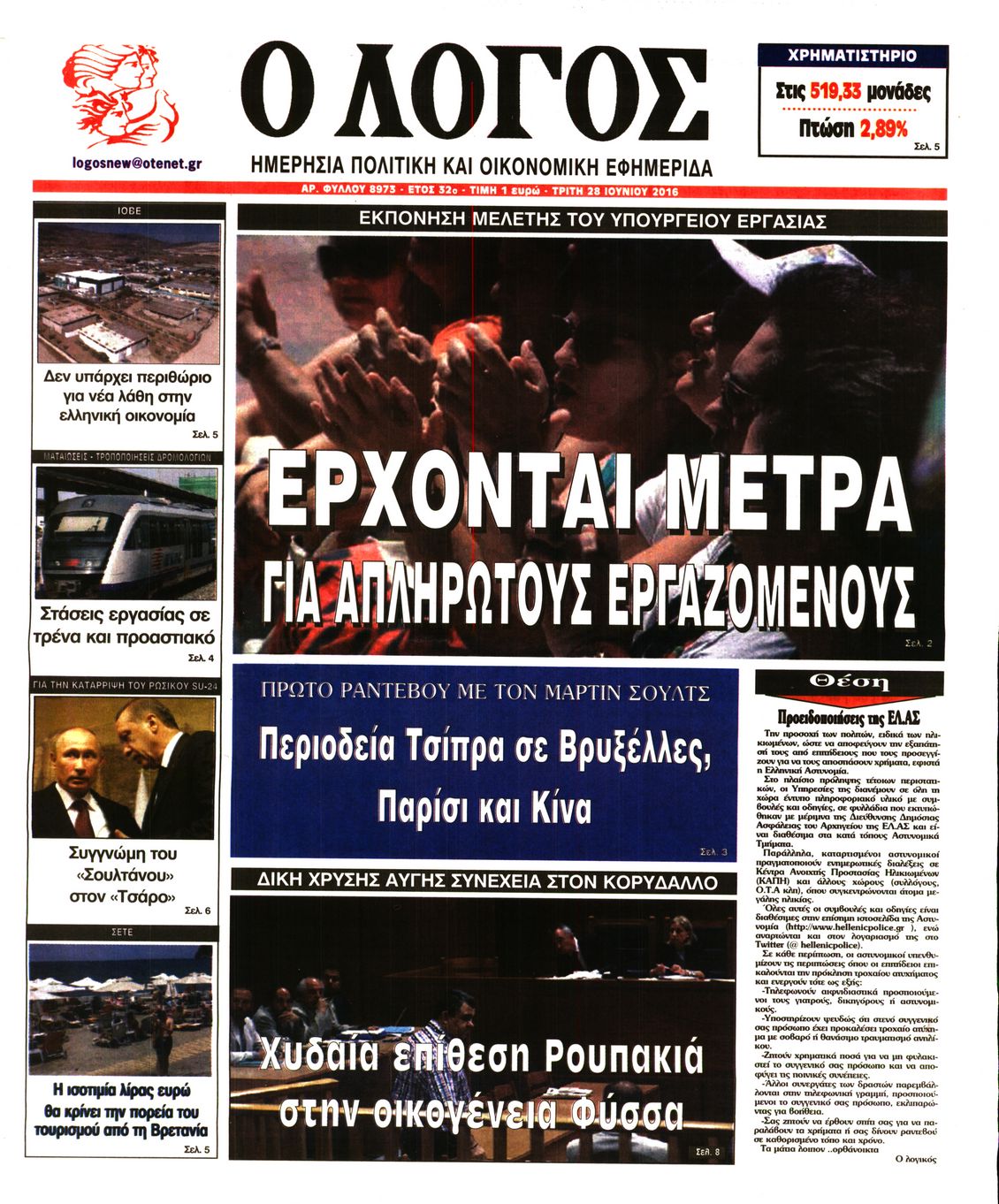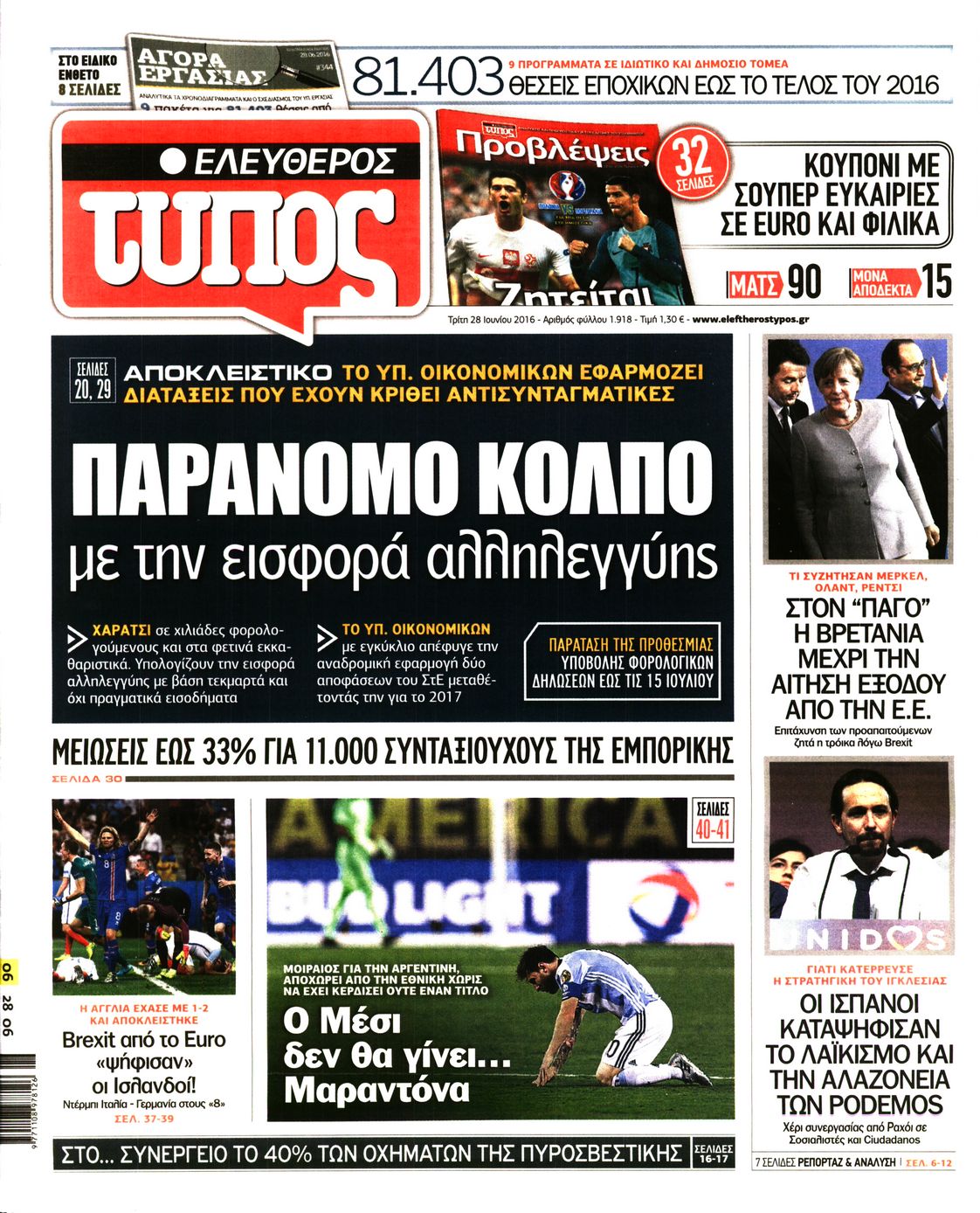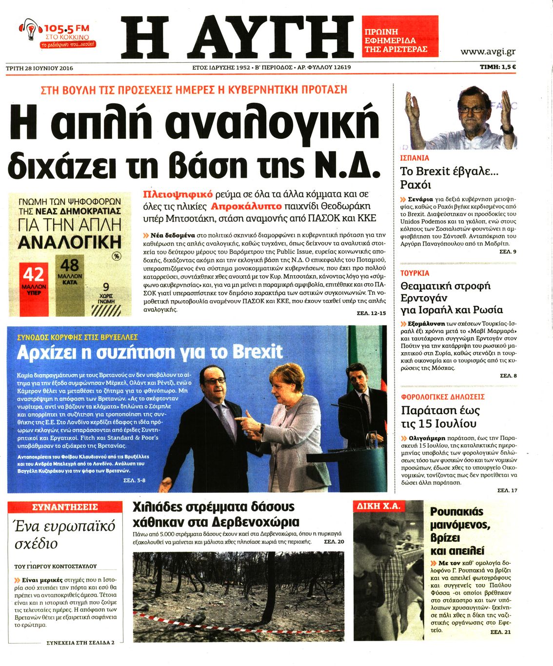 Oι πολιτικές εφημερίδες 28-6-2016 Enikos Newsroom 05:04, Τρίτη 28 Ιουνίου 2016 Media Διαβάστε τα σημερινά πρωτοσέλιδα των πολιτικών εφημερίδων: ΠΟΛΙΤΙΚΕΣ ΕΦΗΜΕΡΙΔΕΣ ΠΡΩΤΟΣΕΛΙΔΑ Μοιράσου το: σχολίασε κι εσύ (0 σχόλια) Ακολουθήστε το enikos.gr στο Google News και μάθετε πρώτοι όλες τις ειδήσεις Δείτε όλες τις τελευταίες ειδήσεις από την Ελλάδα και τον Κόσμο στο enikos.gr Ειδήσεις Ροή Ειδήσεων 2 ώρες πριν Άνοιξαν οι σήραγγες των Τεμπών – Οι επόμενες κινήσεις των αγροτών πριν από τα Χριστούγεννα 5 ώρες πριν Χριστουγεννιάτικο «θαύμα» στη Φουρνά Ευρυτανίας: Πώς γέμισε ξανά με παιδικά χαμόγελα – «Νιώθω περήφανη» λέει η δασκάλα που «ανέστησε» το ορεινό χωριό 2 ώρες πριν Κώστας Ανεστίδης: Πληροφορίες ότι εστάλη εισαγγελική διάταξη για δέσμευση των περιουσιακών στοιχείων του 2 ώρες πριν Νέα Δημοκρατία: Ανακοινώθηκαν 6 ονόματα για τα ψηφοδέλτια των εκλογών του 2027 2 ώρες πριν Πέθανε ο τραγουδιστής Chris Rea σε ηλικία 74 ετών 3 ώρες πριν Αυτό το ζώδιο θα ξαναγεννηθεί το 2026 – «Αφήνετε τις δυσκολίες στο παρελθόν και κάνετε restart» 8 ώρες πριν Έχετε κρατήσει αυτά 8 αντικείμενα από την παιδική ηλικία σας; Δείτε τι αποκαλύπτει για τον χαρακτήρα σας 2 ημέρες πριν Enerwave: Το νέο «ρεύμα» στη λιανική ενέργειας που αλλάζει την εμπειρία του καταναλωτή 4 ώρες πριν Ιστορική ανακάλυψη στη Φυσική – Επιβεβαιώθηκε η ύπαρξη του «δεύτερου ήχου» 5 λεπτά πριν Μάριος Ηλιόπουλος: «Πόσα γκολ πρέπει να πετύχει μια ομάδα για να μετρήσουν τα μισά ή και λιγότερα;» 6 λεπτά πριν LIVE η κίνηση: Κυκλοφοριακή συμφόρηση σε Κηφισό, Κηφισίας και στο κέντρο της Αθήνας – Μεγάλες καθυστερήσεις και στην Αττική Οδό 11 λεπτά πριν Αγρότες άδειασαν 4 τόνους κοπριάς έξω από το κτίριο της Περιφέρειας Δυτικής Μακεδονίας – Δείτε βίντεο 17 λεπτά πριν Όλγα Βλαχοπούλου για τη μάχη της με τον καρκίνο: «Το λέω τώρα και συγκινούμαι γιατί ήταν μια δύσκολη διαδικασία…» 23 λεπτά πριν Κατ’ ιδίαν συνάντηση Μητσοτάκη – Νετανιάχου στην Ιερουσαλήμ ENIKOS NETWORK ΕΟΦ: Ανάκληση παρτίδων καλλυντικών προϊόντων Ο ΙΣΑ στηρίζει την έγκυρη ενημέρωση για τα μυοσκελετικά νοσήματα Ευλογιά αιγοπροβάτων: Πόσα χρήματα δίνει το υπουργείο Αγροτικής Ανάπτυξης στις Περιφέρειες για λειτουργικές δαπάνες Τουρισμός: Στα 22,38 δισ. ευρώ τα έσοδα στο 10μηνο – Δείτε αναλυτικά τα στοιχεία της Τράπεζας της Ελλάδας Ο Google Assistant θα παραμείνει λίγο περισσότερο για ορισμένους χρήστες Android Τεστ προσωπικότητας: Το βάζο που θα επιλέξετε αποκαλύπτει πώς λύνετε προβλήματα στη ζωή σας περισσότερα 17:48 , Δευτέρα 22 Δεκεμβρίου 2025 Βελτιωτικές κινήσεις με νέους συνεργάτες Στοχευμένες κινήσεις για την ενίσχυση του «Καλημέρα Ελλάδα» κάνει ο ΑΝΤ1 ενόψει της νέας χρονι... 16:56 , Δευτέρα 22 Δεκεμβρίου 2025 ALPHA: Θα επιμείνει στο μοντέλο της οικογενειακής κωμωδίας – Η νέα σειρά που έρχεται Στο μοντέλο της οικογενειακής κωμωδίας με εναλλαγή σειρών θα επιμείνει ο Alpha, σύμφωνα με την... 16:25 , Δευτέρα 22 Δεκεμβρίου 2025 Μελίνα Τσαμπάνη – Πέτρος Καλκόβαλης: Eπιστρέφουν το 2026, μέσα από τη συχνότητα του Mega Μέσα από τη συχνότητα του Mega θα επιστρέψουν το 2026 η Μελίνα Τσαμπάνη και ο Πέτρος Καλκόβαλη... 15:40 , Δευτέρα 22 Δεκεμβρίου 2025 Το «Grand Hotel» πάει «Rouk Zouk» Το «Grand Hotel» πάει… «Rouk Zouk». Με τη λάμψη του «Grand Hotel» και την παιχνιδιάρικη διάθεσ... ΤΕΛΕΥΤΑΙΕΣ ΕΙΔΗΣΕΙΣ 5 λεπτά πριν Μάριος Ηλιόπουλος: «Πόσα γκολ πρέπει να πετύχει μια... 6 λεπτά πριν LIVE η κίνηση: Κυκλοφοριακή συμφόρηση σε Κηφισό,... 11 λεπτά πριν Αγρότες άδειασαν 4 τόνους κοπριάς έξω από 
