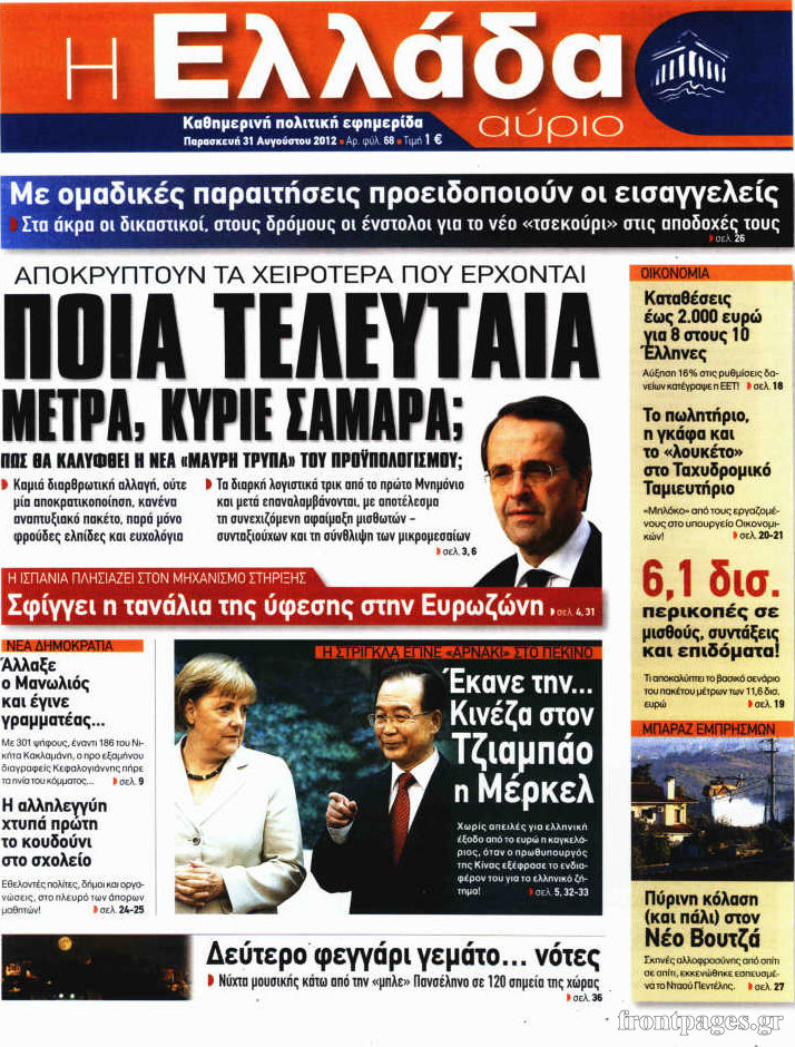 Δείτε τα σημερινά πρωτοσέλιδα