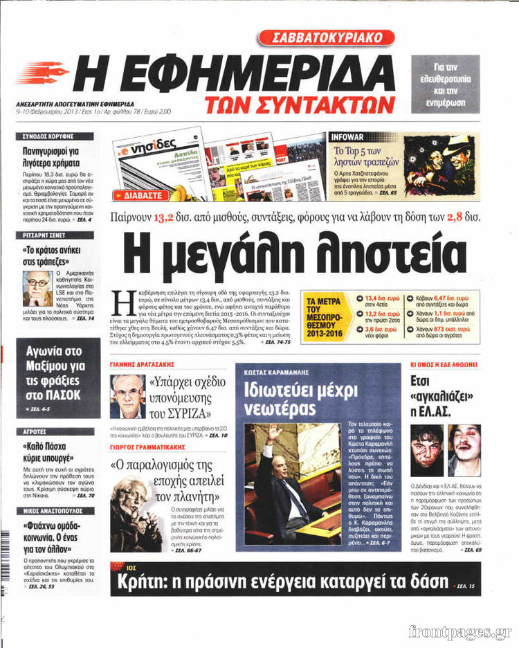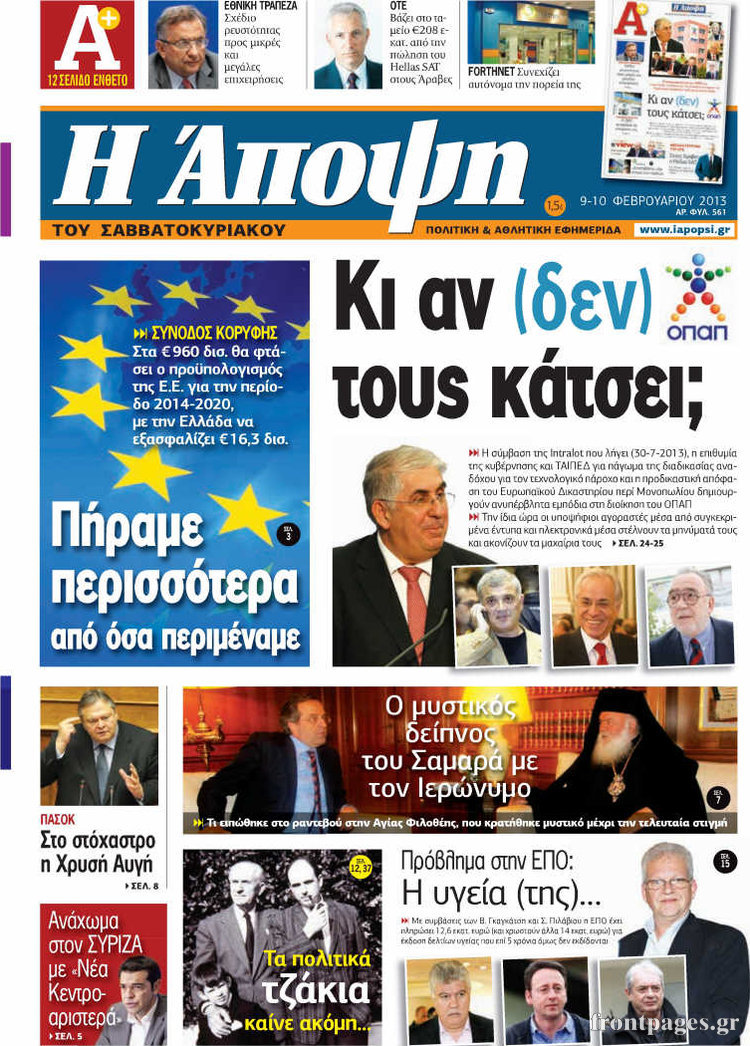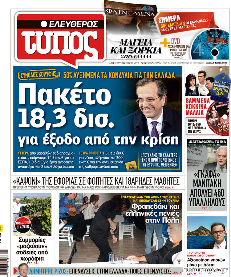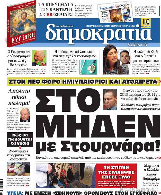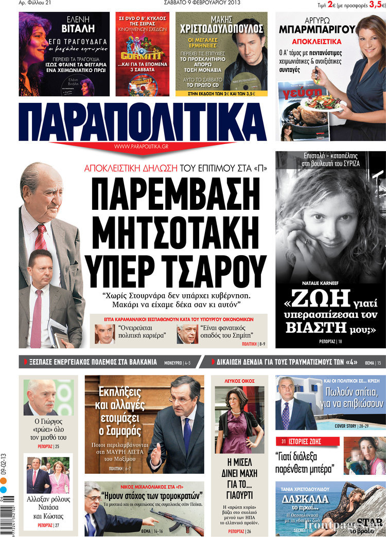 Οι πολιτικές εφημερίδες Enikos Newsroom 08:52, Σάββατο 09 Φεβρουαρίου 2013 Media Οι πολιτικές εφημερίδες Τα πρωτοσέλιδα των πολιτικών εφημερίδων… ΕΦΗΜΕΡΙΔΕΣ ΠΟΛΙΤΙΚΕΣ ΕΦΗΜΕΡΙΔΕΣ ΠΡΩΤΟΣΕΛΙΔΑ Μοιράσου το: σχολίασε κι εσύ (0 σχόλια) Ακολουθήστε το enikos.gr στο Google News και μάθετε πρώτοι όλες τις ειδήσεις Δείτε όλες τις τελευταίες ειδήσεις από την Ελλάδα και τον Κόσμο στο enikos.gr Ειδήσεις Ροή Ειδήσεων 2 ώρες πριν Ζελένσκι: Μόνο οι ΗΠΑ και ο Τραμπ μπορούν να πιέσουν τη Ρωσία να βάλει τέλος στον πόλεμο 2 ώρες πριν Φοινικούντα: Προφυλακιστέος ο 30χρονος για συνέργεια στη διπλή δολοφονία – Και άλλα πρόσωπα στο «μικροσκόπιο» 3 ώρες πριν Κυριάκος Μητσοτάκης: Στην Ιερουσαλήμ την Τρίτη ο Πρωθυπουργός για την τριμερή Ελλάδας, Κύπρου, Ισραήλ – Θα συναντηθεί και με τον Αμπάς 6 ώρες πριν Πώς δρούσε το κύκλωμα που διακινούσε ναρκωτικά σε σχολεία – Υπέβαλαν σε βασανιστήρια όσους δεν τηρούσαν τους «κανόνες πειθαρχίας» 2 ώρες πριν Πάπας Λέων: Όταν έχει αϋπνίες επενδύει παραγωγικά τον χρόνο του – Ποιο παιχνίδι παίζει στο κινητό 2 ώρες πριν Αριθμολογία: Ο αριθμός του φύλακα αγγέλου σας, με βάση τον μήνα γέννησής σας – «Έτσι σας στέλνει σημάδια το σύμπαν» 3 ώρες πριν Πώς να απαλλαγείτε από τη μυρωδιά του τηγανητού φαγητού: Το μυστικό βρίσκεται στην κουζίνα σας 4 ώρες πριν Μήπως οι γιορτές σας δεν είναι τόσο τέλειες; 7 χριστουγεννιάτικες συνήθειες που μαρτυρούν ότι μια οικογένεια είναι δυσλειτουργική 14 ώρες πριν Enerwave: Το νέο «ρεύμα» στη λιανική ενέργειας που αλλάζει την εμπειρία του καταναλωτή 6 λεπτά πριν Ολυμπιακός – Κηφισιά 1-1: Δεύτερη σερί ισοπαλία για τους Ερυθρόλευκους – Υπό… αμφισβήτηση η κορυφή της Super League 17 λεπτά πριν Κύκλωμα διακίνησης ναρκωτικών σε σχολεία: Τηλεφωνούσαν στους ανηλίκους την ώρα του μαθήματος – Οι διάλογοι-σοκ, τα «ψευδώνυμα» και τα βασανιστήρια 26 λεπτά πριν Χαβιέρ Μιλέι: Ο πρόεδρος της Αργεντινής χαιρετίζει την «πίεση των ΗΠΑ» στη Βενεζουέλα 33 λεπτά πριν Ξένια Τσίρκοβα: Έμαθε από την τηλεόραση ότι είναι η μεγάλη νικήτρια του GNTM – Η αντίδρασή της – ΒΙΝΤΕΟ 42 λεπτά πριν Ύπνος: Η διατροφή που μπορεί να σας βοηθήσει να κοιμάστε καλύτερα και να ζήσετε περισσότερο ENIKOS NETWORK Οι γυναίκες αποκαλύπτουν το πιο ελκυστικό πράγμα που μπορεί να κάνει ένας άνδρας Ομορφιά και αντιγήρανση: Ειδικοί μιλούν για συσκευές περιποίησης του δέρματος Ακύρωση ΑΦΜ για απάτες – Ποιους βάζει στο στόχαστρο η ΑΑΔΕ Ρεύμα: Πώς μπορείτε να αλλάξετε πάροχο γρήγορα και εύκολα – Τα βήματα της διαδικασίας Χαρτογραφώντας το «σημείο χωρίς επιστροφή»: Για πρώτη φορά αποκαλύπτεται με λεπτομέρεια το ακανθώδες όριο της ατμόσφαιρας τ... Η Google καταργεί τη λειτουργία «dark web report» – Πώς θα μπορούν οι χρήστες να διαγράφουν τα δεδομένα τους περισσότερα 20:30 , Σάββατο 20 Δεκεμβρίου 2025 Αυτή την Κυριακή με τη Realnews: Instyle, μαζί Drive και Realnews Geopolitics Αυτή την Κυριακή με τη Realnews: Instyle, μαζί Drive και Realnews Geopolitics Instyle Η Άννα Ρ... 20:28 , Σάββατο 20 Δεκεμβρίου 2025 Ο ΑΝΤ1 γεμίζει τις γιορτές με μουσική – Ποιους καλλιτέχνες θα απολαύσουμε Φέτος στον ΑΝΤ1 γιορτάζουμε τις νύχτες μας παρέα με αγαπημένους καλλιτέχνες και μεγάλες μουσι... 18:19 , Σάββατο 20 Δεκεμβρίου 2025 HOTΕΛ ΕΛVIRA: Η Ελβίρα μαθαίνει πως ο Χάρι μένει κρυφά στο ξενοδοχείο του Παντελή Συνεχίζονται οι εκλογές για πρόεδρο, στο νέο επεισόδιο της κωμικής σειράς του MEGA, HOTΕΛ ΕΛVI... 14:04 , Σάββατο 20 Δεκεμβρίου 2025 Η Realnews αυτής της Κυριακής (21/12/2025) Με τίτλο: «Ασπίδα προστασίας για την Ελλάδα» 