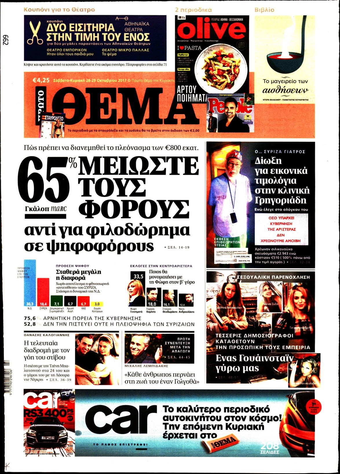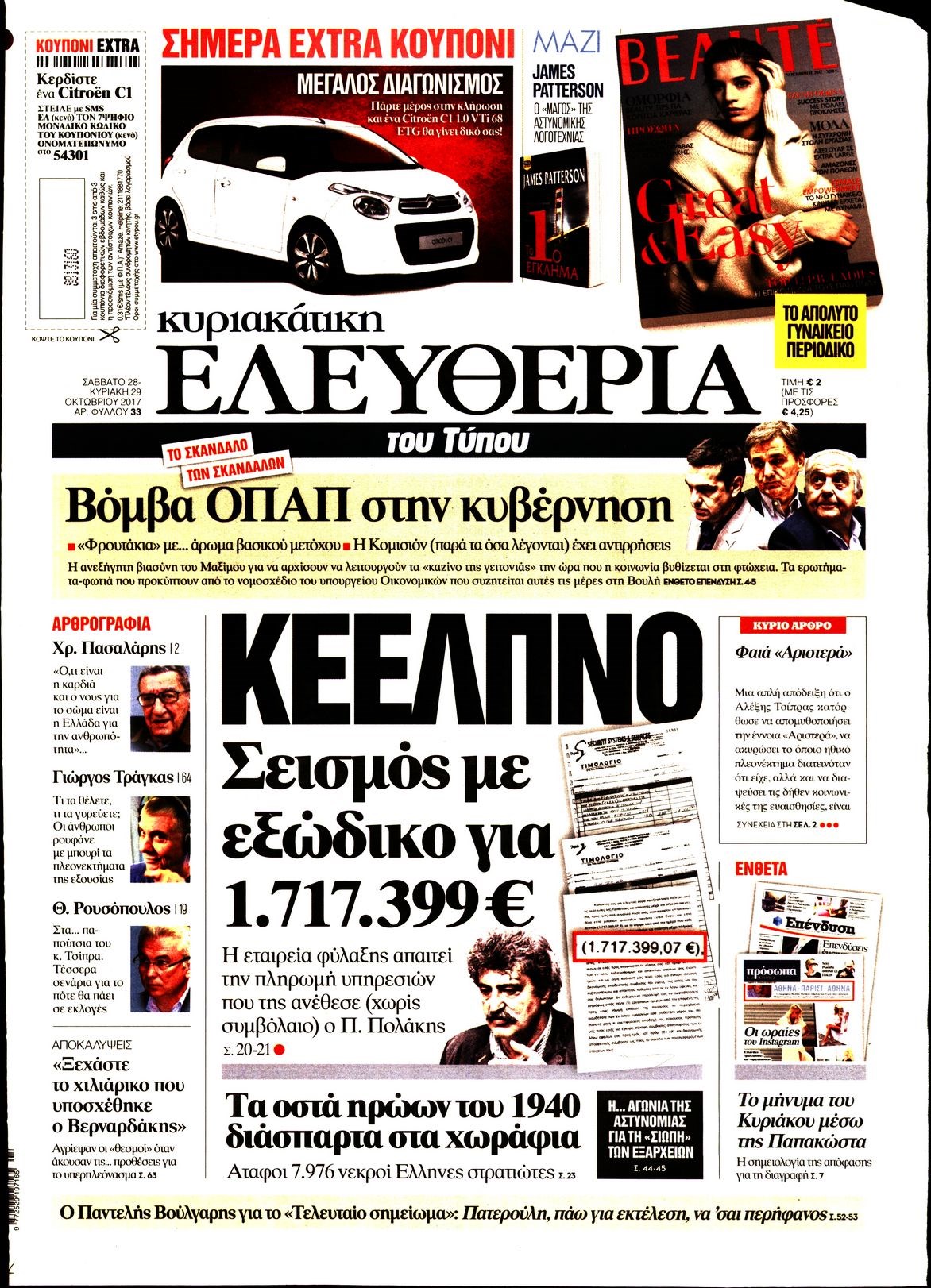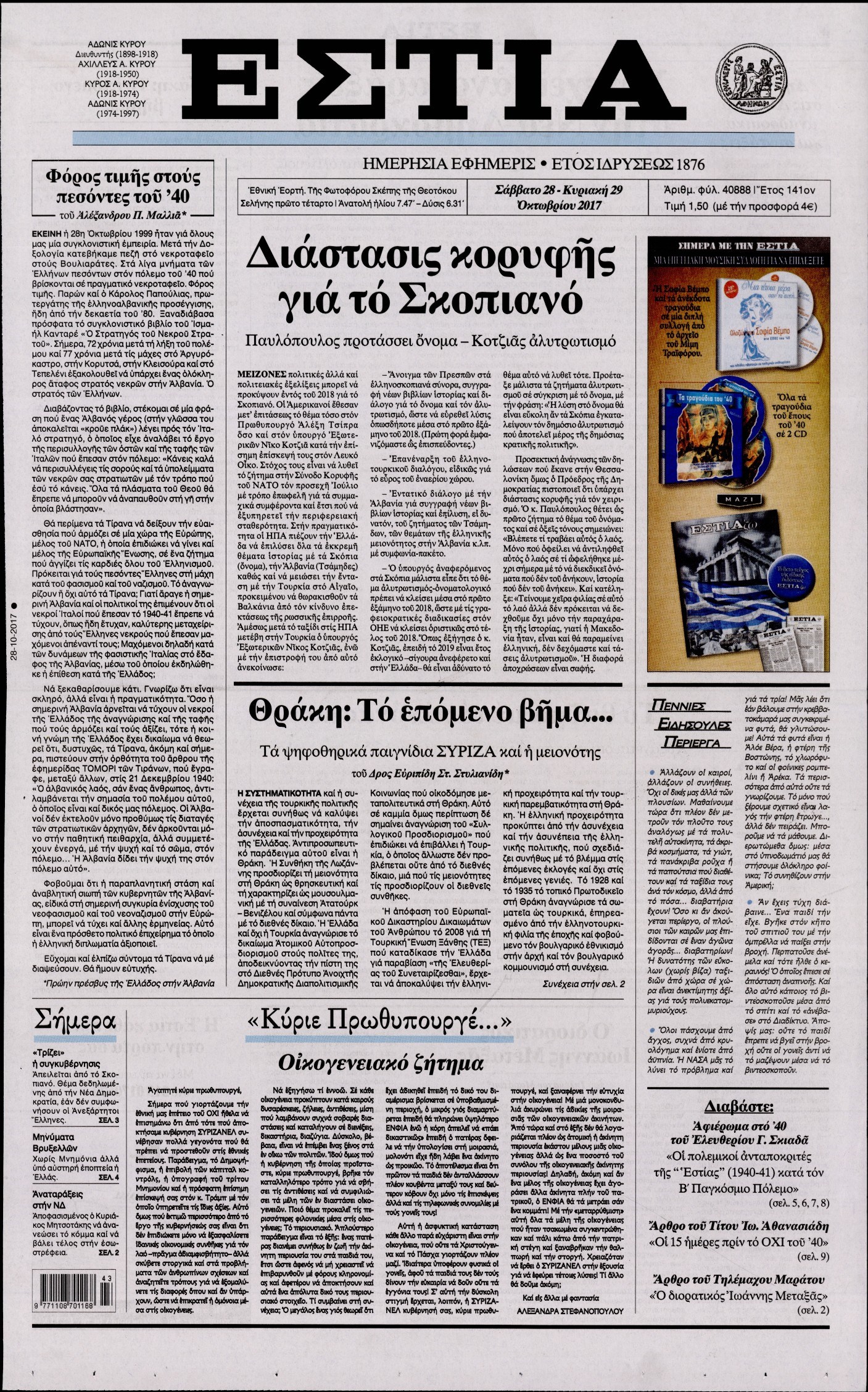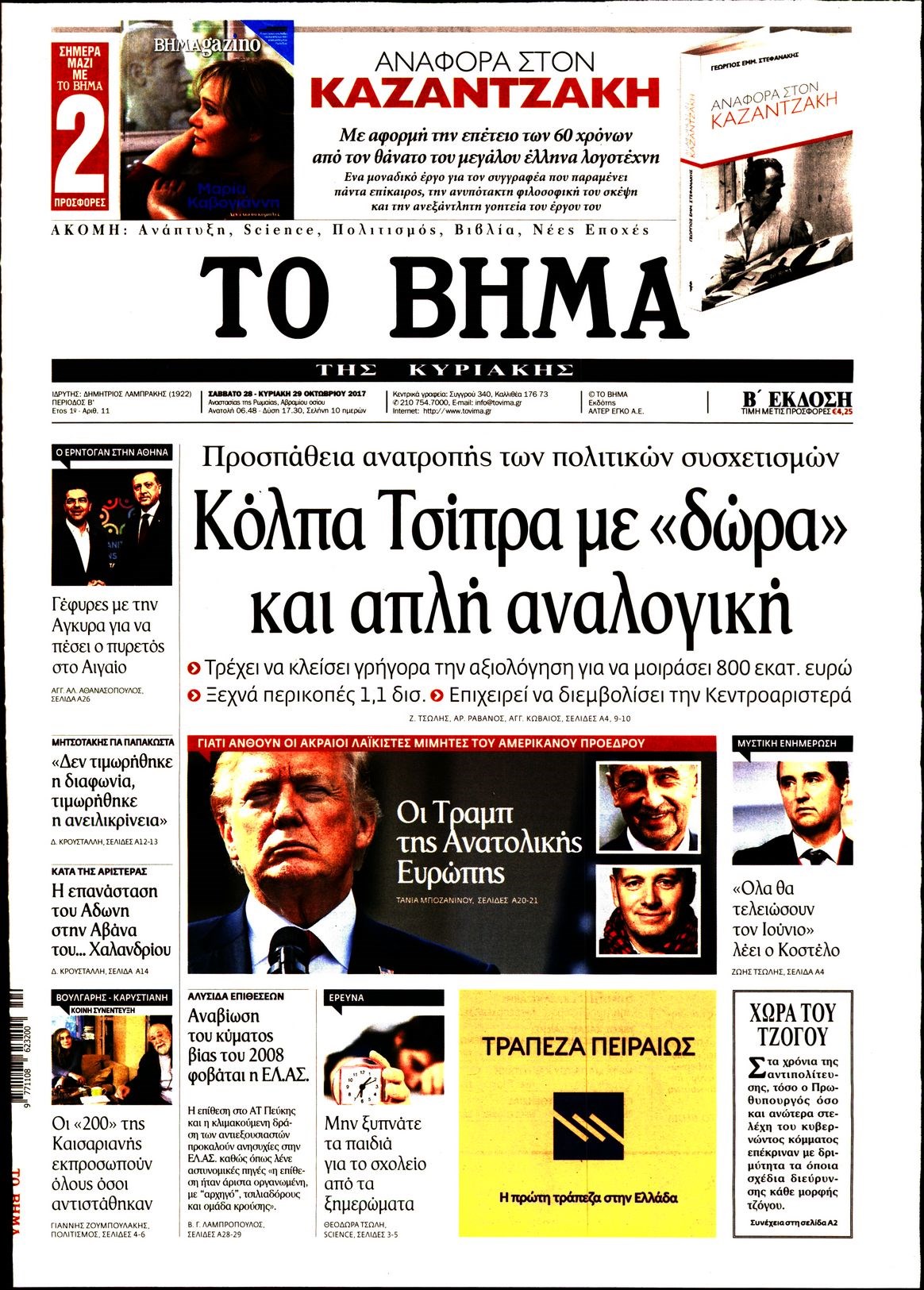Οι πολιτικές εφημερίδες 28/10/2017 Enikos Newsroom 07:30, Σάββατο 28 Οκτωβρίου 2017 Media Διαβάστε τα σημερινά πρωτοσέλιδα των πολιτικών εφημερίδων: ΠΟΛΙΤΙΚΕΣ ΕΦΗΜΕΡΙΔΕΣ ΠΡΩΤΟΣΕΛΙΔΑ Μοιράσου το: σχολίασε κι εσύ (0 σχόλια) Ακολουθήστε το enikos.gr στο Google News και μάθετε πρώτοι όλες τις ειδήσεις Δείτε όλες τις τελευταίες ειδήσεις από την Ελλάδα και τον Κόσμο στο enikos.gr Ειδήσεις Ροή Ειδήσεων 4 ώρες πριν Χριστούγεννα στα μπλόκα: Επιμένουν στις κινητοποιήσεις τους οι αγρότες – Ανοίγουν τα διόδια το Σαββατοκύριακο 5 ώρες πριν Ουκρανία: Η άνευ προηγουμένου επίθεση σε ρωσικό τάνκερ στη Μεσόγειο και το μήνυμα προς στον Πούτιν – Το «μακρύ χέρι» του Κιέβου 4 ώρες πριν Πούτιν: Τα μηνύματα σε Ευρώπη και ΝΑΤΟ από το μαραθώνιο «σόου» του – Η απαίτηση για «σεβασμό» και η ειρήνη «με τους όρους» της Μόσχας 5 ώρες πριν Τραμπ: Δεν αποκλείει την πιθανότητα ενός πολέμου στη Βενεζουέλα – «Ο Μαδούρο ξέρει καλύτερα από τον καθένα τι ακριβώς θέλω» 5 ώρες πριν Συνεχίζει να προκαλεί ο Μίτσκοσκι: «Για μένα το όνομα Μακεδονία είναι ιερό» 4 ώρες πριν Ανακαλύφθηκαν αρχαία χρυσά νομίσματα 2.200 ετών που απεικονίζουν τον θεό Απόλλωνα – Η άγνωστη σύνδεση με τον Φίλιππο Β΄ της Μακεδονίας 5 ώρες πριν Ύπνος: Μια κρυφή κατάσταση του εγκεφάλου πριν από τον ύπνο μπορεί να είναι το “κλειδί” για υψηλή ευφυΐα και δημιουργικότητα 6 ώρες πριν Αριθμολογία: Οι άνθρωποι που έχουν γεννηθεί αυτές τις 4 ημερομηνίες, συχνά παρεξηγούνται – «Η καλοσύνη τους κρύβει τεράστια δύναμη» 7 ώρες πριν Ξεχάστε το καθάρισμα το Σαββατοκύριακο: Ο «κανόνας των 20 λεπτών» που θα σας λύσει τα χέρια 23 λεπτά πριν Θεσσαλονίκη: Εξαφανίστηκε 13χρονος από χώρο φιλοξενίας ασυνόδευτων ανηλίκων στο Ωραιόκαστρο 33 λεπτά πριν Ντόναλντ Τραμπ: «Πολύ βαριά αντίποινα» στη Συρία – «Πλήττουμε πολύ δυνατά οχυρά του Ισλαμικού Κράτους» 48 λεπτά πριν Εξάρχεια: Ένταση με μολότοφ, χημικά και κρότου λάμψης 1 ώρα πριν ΗΠΑ: Τραγωδία στην Αλαμπάμα – Σκότωσε την δημοσιογράφο σύζυγό του και αυτοκτόνησε μπροστά στον 3χρονο γιο τους 1 ώρα πριν Πρόταση γάμου στο ΣΕΦ κατά την διάρκεια του αγώνα Ολυμπιακός-Βιλερμπάν – Δείτε βίντεο ENIKOS NETWORK Το ΕΚΑΒ τιμήθηκε από την Ακαδημία Αθηνών για τα 40 χρόνια προσφοράς του Έχετε πραγματικά μεγάλη καρδιά; 10 χαρακτηριστικά όσων έχουν καλοσύνη Αναστολή μέτρων αναγκαστικής εκτέλεσης για κτηνοτρόφους που πλήττονται από την ευλογιά των αιγοπροβάτων Πλήρης επάρκεια προϊόντων στις λαϊκές της Αττικής, παρά τις αγροτικές κινητοποιήσεις – Τι απαντούν οι πωλητές Χαρτογραφώντας το «σημείο χωρίς επιστροφή»: Για πρώτη φορά αποκαλύπτεται με λεπτομέρεια το ακανθώδες όριο της ατμόσφαιρας τ... Η Google καταργεί τη λειτουργία «dark web report» – Πώς θα μπορούν οι χρήστες να διαγράφουν τα δεδομένα τους περισσότερα 22:42 , Παρασκευή 19 Δεκεμβρίου 2025 Γιώργος Γιαννόπουλος για “Το σόι σου”: “Είναι ευτυχία και ευλογία αυτή η σειρά” «Είναι ευτυχία και ευλογία η συγκυρία αυτής της σειράς», θα πει ο Γιώργος Γιαννόπουλος -ο αγαπ... 20:37 , Παρασκευή 19 Δεκεμβρίου 2025 Don’t Forget The Lyrics: Η Έλλη Κοκκίνου υποδέχεται 4 παίκτες που θα κάνουν τα πάντα για να μη χάσουν ούτε… μισή λέξη από τους στίχους Το «Don’t Forget The Lyrics» επιστρέφει απόψε, Παρασκευή 19 Δεκεμβρίου, στις 21:00 με νέο επει... 19:31 , Παρασκευή 19 Δεκεμβρίου 2025 GNTM: Απόψε ο μεγάλος τελικός για τους 4 φιναλίστ Έπειτα από μήνες γεμάτους μόδα, δημιουργία και έντονες αναμετρήσεις, το GNTM 2025 κορυφώνεται,... 18:11 , Παρασκευή 19 Δεκεμβρίου 2025 Το 