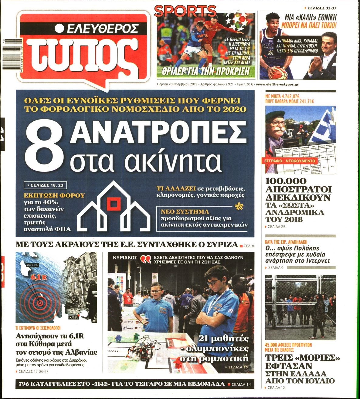 Οι πολιτικές εφημερίδες 28/11/19 Διονύσης Νίκκας 06:28, Πέμπτη 28 Νοεμβρίου 2019 Media Διαβάστε τα πρωτοσέλιδα των πολιτικών εφημερίδων… ΕΦΗΜΕΡΙΔΕΣ ΠΟΛΙΤΙΚΕΣ Μοιράσου το: σχολίασε κι εσύ (0 σχόλια) Ακολουθήστε το enikos.gr στο Google News και μάθετε πρώτοι όλες τις ειδήσεις Δείτε όλες τις τελευταίες ειδήσεις από την Ελλάδα και τον Κόσμο στο enikos.gr Ειδήσεις Ροή Ειδήσεων 3 ώρες πριν Αυξάνουν την πίεση προς την κυβέρνηση οι αγρότες: Κλείνουν παρακαμπτήριους και ανοίγουν διόδια – Τι θα γίνει τις γιορτές 2 ώρες πριν ΟΠΕΚΕΠΕ: Προφυλακιστέος ο φερόμενος αρχηγός και ο λογιστής της εγκληματικής οργάνωσης 3 ώρες πριν Φοινικούντα: Το Σάββατο απολογείται ο 30χρονος γιος γνωστού επιχειρηματία της Πλάκας που παραδόθηκε – Όσα είπε στους αστυνομικούς και ο ρόλος του στο έγκλημα 2 ώρες πριν Μπορεί ο Μαδούρο να αντέξει τον αποκλεισμό του Τραμπ; Τι θα χρειαστεί η Ουάσινγκτον για να τον ανατρέψει 4 ώρες πριν Πρίγκιπας Ουίλιαμ – Κέιτ: Η νέα οικογενειακή φωτογραφία για τις Χριστουγεννιάτικες κάρτες του 2025 4 ώρες πριν Ύπνος: Η απλή βραδινή ρουτίνα για να προστατεύσετε τα μαλλιά σας από το κρύο κατά τη διάρκεια του χειμώνα 5 ώρες πριν Manifesting: Πώς να συναντήσετε τον σύντροφο της ζωής σας, ανάλογα με τον μήνα γέννησής σας 2 ημέρες πριν 20 χρόνια τα Χριστούγεννα ξεκινούν στα Public με μεγάλη ποικιλία σε δώρα! 3 ώρες πριν Αρχαιολόγοι ανακάλυψαν ρωμαϊκά τεχνουργήματα από μια πόλη που δεν υπήρξε ποτέ – Τα τρία εντυπωσιακά κτίρια και ο αμφορέας με τις… σαρδέλες 7 λεπτά πριν ΟΗΕ: Την εκλογή του νέου ύπατου αρμοστή για τους Πρόσφυγες Μπαρχάμ Άχμεντ Σαλίχ χαιρέτησε ο Αντόνιο Γκουτέρες 12 λεπτά πριν Σύνοδος Κορυφής στις Βρυξέλλες: Ακόμη πιο κοντά σε διέξοδο για τη χρηματοδότηση της Ουκρανίας 20 λεπτά πριν ΟΗΕ: Iστορική επίσκεψη του Συμβουλίου Ασφαλείας στη Δαμασκό – Mήνυμα Ελλάδας για συμπερίληψη και λογοδοσία 27 λεπτά πριν Νέος πρέσβης της Μεγάλης Βρετανίας στις ΗΠΑ ο Κρίστιαν Τέρνερ 31 λεπτά πριν Conference League: Με Νόα, Ντρίτα, Άλκμααρ ή Τσέλιε στους «16» η ΑΕΚ ENIKOS NETWORK Σε περίοδο αυξημένης δραστηριότητας η γρίπη στην Ελλάδα-Μέτρα προστασίας από τον ΕΟΔΥ Σκέφτεστε συνέχεια συζητήσεις που έχετε κάνει; Τι σημαίνει αυτό, σύμφωνα με ειδικό Στεγαστικό: Τι λέει η ΠΟΜΙΔΑ για τα νέα μέτρα που ανακοίνωσε ο Κυριάκος Μητσοτάκης Λαγκάρντ: Αισιόδοξη για την ανάπτυξη της Ευρωζώνης, αβέβαιη για τον πληθωρισμό Χαρτογραφώντας το «σημείο χωρίς επιστροφή»: Για πρώτη φορά αποκαλύπτεται με λεπτομέρεια το ακανθώδες όριο της ατμόσφαιρας τ... Η Google καταργεί τη λειτουργία «dark web report» – Πώς θα μπορούν οι χρήστες να διαγράφουν τα δεδομένα τους περισσότερα 17:45 , Πέμπτη 18 Δεκεμβρίου 2025 ROUK ZOUK: Εορταστικό επεισόδιο με καλεσμένους τους πρωταγωνιστές του «Γιατί ρε πατέρα» Το Σάββατο 20 Δεκεμβρίου στις 21:00, η Ζέτα Μακρυπούλια υποδέχεται εκλεκτούς ηθοποιούς που όλο... 17:20 , Πέμπτη 18 Δεκεμβρίου 2025 Άγιος έρωτας: Η Χριστίνα εξομολογείται στον πατέρα Νικόλαο, απόψε στις 21:00 στον Alpha Η Νότα αποφασίζει να εκδικηθεί τον Πέτρο και τον Στέφανο, για χάρη του Λούη, όμως τα πράγματα ... 16:50 , Πέμπτη 18 Δεκεμβρίου 2025 Να μ’ αγαπάς: Ζωή και Φωτεινή συμφιλιώνονται ως μάνα με κόρη, απόψε στις 20:00 Η ταυτότητα του Άγγελου αποκαλύπτεται στο νέο επεισόδιο της σειράς “Να μ’ αγαπάς... 15:52 , Πέμπτη 18 Δεκεμβρίου 2025 Το Σπίτι Δίπλα Στο Ποτάμι: Το καθηλωτικό τελευταίο επεισόδιο για το 2025 απόψε στις 22:30 Καθηλώνει το σημερινό επεισόδιο της σειράς “Το Σπίτι Δίπλα Στο Ποτάμι” που