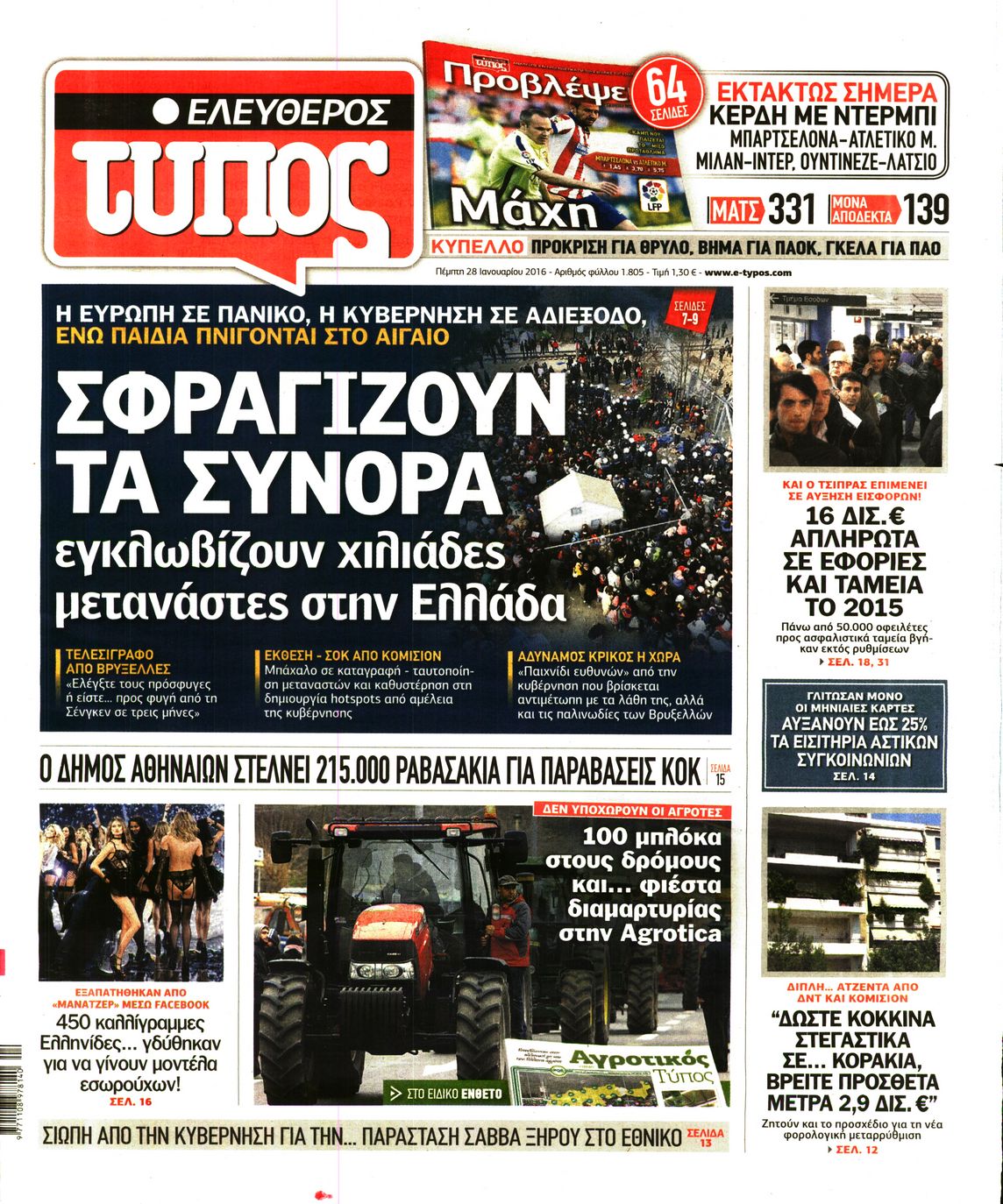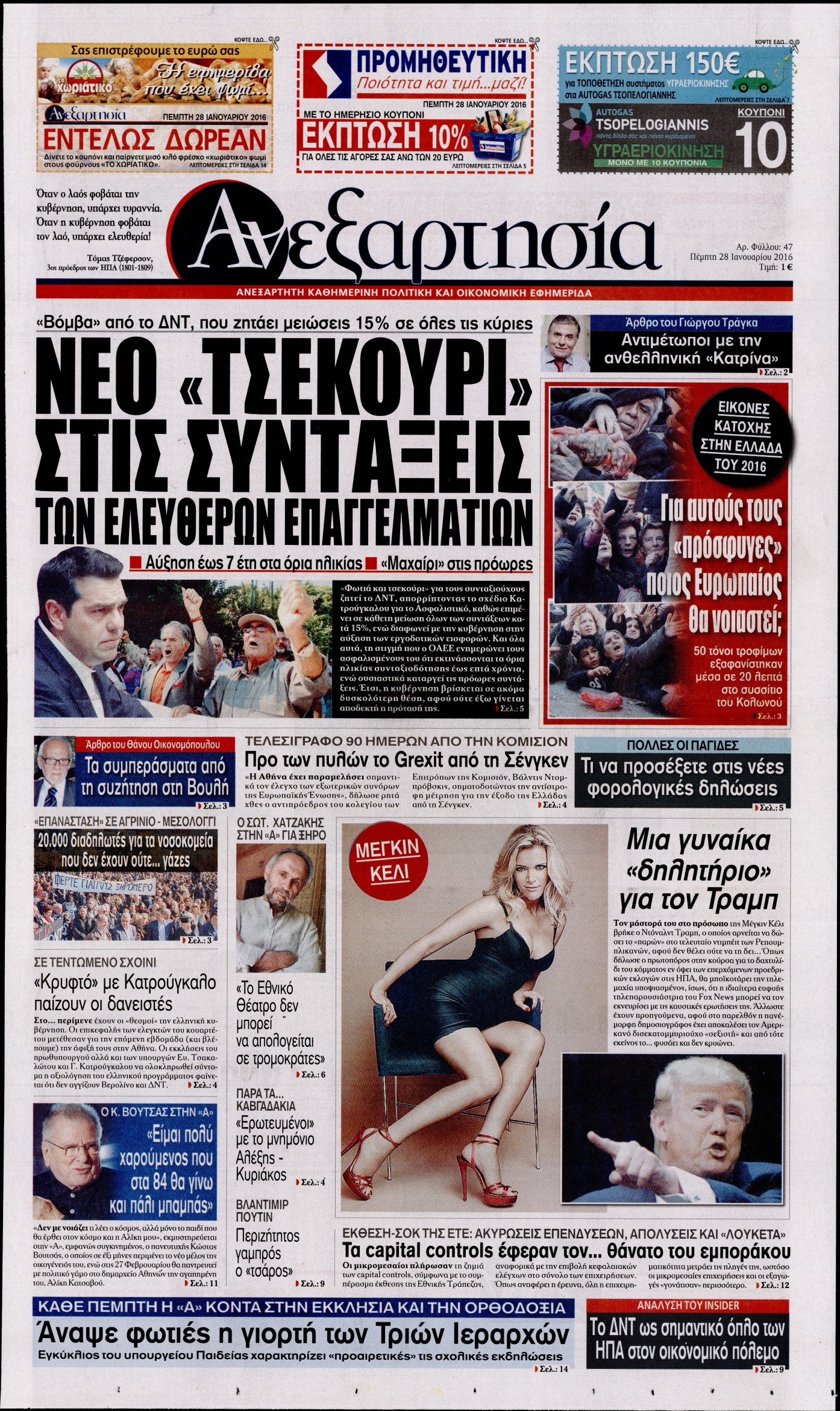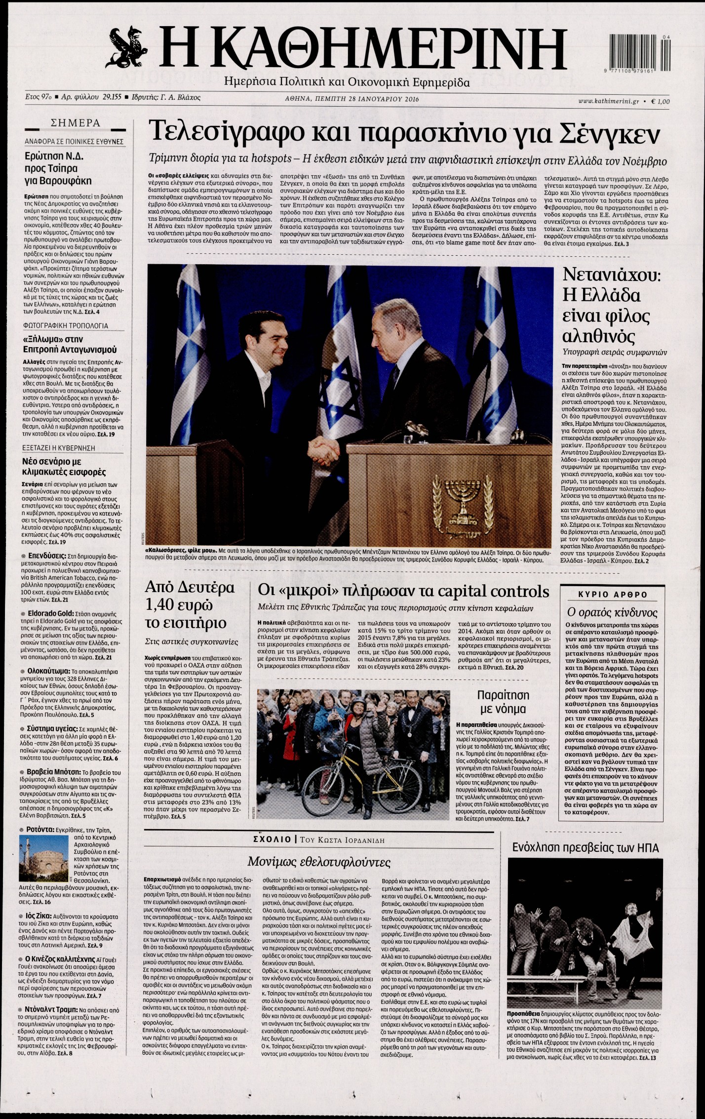 Οι πολιτικές εφημερίδες 28/1/2016 Enikos Newsroom 06:05, Πέμπτη 28 Ιανουαρίου 2016 Media Διαβάστε τα σημερινά πρωτοσέλιδα των πολιτικών εφημερίδων: ΠΟΛΙΤΙΚΕΣ ΕΦΗΜΕΡΙΔΕΣ ΠΡΩΤΟΣΕΛΙΔΑ Μοιράσου το: σχολίασε κι εσύ (0 σχόλια) Ακολουθήστε το enikos.gr στο Google News και μάθετε πρώτοι όλες τις ειδήσεις Δείτε όλες τις τελευταίες ειδήσεις από την Ελλάδα και τον Κόσμο στο enikos.gr Ειδήσεις Ροή Ειδήσεων 2 ώρες πριν Γιορτές με μπλόκα για τους αγρότες: Ανοίγουν διόδια και μοιράζουν προϊόντα στους ταξιδιώτες 15 λεπτά πριν Τσιάρας για αγρότες: Ικανοποιείται το αίτημα για αφορολόγητο πετρέλαιο στη μάνικα, πρόθεσή μας να μειωθεί ακόμη περισσότερο η τιμή στο ρεύμα 30 λεπτά πριν Αρχεία Έπσταϊν: Οι συγκλονιστικές φωτογραφίες – Ο Μάικλ Τζάκσον, ο Μικ Τζάγκερ και ο Κέβιν Σπέισι ανάμεσα στους διάσημους που απεικονίζονται 2 ώρες πριν Νέες ταυτότητες: Μεγάλη αναμονή για ραντεβού στην Αττική – Τέλος τα ταξίδια εκτός Ελλάδος από τον Αύγουστο για όσους δεν έχουν αλλάξει 1 ώρα πριν Ινδία: Επτά ελέφαντες σκοτώθηκαν κατά τη σύγκρουση επιβατικού τρένου με κοπάδι 3 ώρες πριν Μία νέα «χρυσή» περίοδος αρχίζει για 3 ζώδια από σήμερα – «Μία αναπάντεχη ευκαιρία οδηγεί στην επιτυχία» 5 ώρες πριν Αρχαιολόγοι ανακάλυψαν σε χωράφι απεικόνιση 600 ετών ενός Αγίου – Τα στοιχεία που δείχνουν ότι μαρτύρησε 4 ώρες πριν Αγχώνεται για το χριστουγεννιάτικο δώρο που πήρε στην πλούσια σύντροφό του – «Φοβάμαι πως θα το βρει φθηνιάρικο, φοράει βραχιόλια Cartier» 59 λεπτά πριν Διαιτολόγος αποκαλύπτει 9 πρωινές συνήθειες που «λιώνουν» το κοιλιακό λίπος – «Υποστηρίζουν την υγιεινή απώλεια βάρους» 6 λεπτά πριν Να μ’ αγαπάς: Το παρελθόν έρχεται στο φως – Καταιγιστικές εξελίξεις στα τελευταία επεισόδια του 2025 15 λεπτά πριν Τσιάρας για αγρότες: Ικανοποιείται το αίτημα για αφορολόγητο πετρέλαιο στη μάνικα, πρόθεσή μας να μειωθεί ακόμη περισσότερο η τιμή στο ρεύμα 22 λεπτά πριν Η Ζιζέλ Μπούντχεν παντρεύτηκε τον δάσκαλο ζίου-ζίτσου, Χοακίμ Βαλέντε 30 λεπτά πριν Αρχεία Έπσταϊν: Οι συγκλονιστικές φωτογραφίες – Ο Μάικλ Τζάκσον, ο Μικ Τζάγκερ και ο Κέβιν Σπέισι ανάμεσα στους διάσημους που απεικονίζονται 38 λεπτά πριν Χρήστος Μάντακας: «Θα μπορούσα να είχα φύγει από τη ζωή, δεν μπορούσα να περπατήσω…» ENIKOS NETWORK Γήρανση του εγκεφάλου: Νευροεπιστήμονες ανακάλυψαν τη 10λεπτη δραστηριότητα που μπορεί να τη σταματήσει Είστε μόνιμα απρόσεκτοι; 3 σημάδια που δείχνουν ότι μπορεί να είναι σύμπτωμα πάθησης Χρήστος Δήμας: Στα 2,5 εκατ. ευρώ την ημέρα το κόστος από το άνοιγμα των διοδίων από τους αγρότες – Θα αξιώσουν αποζημίωση ... Χριστούγεννα και Πρωτοχρονιά: Πώς αμείβονται όσοι εργαστούν Χαρτογραφώντας το «σημείο χωρίς επιστροφή»: Για πρώτη φορά αποκαλύπτεται με λεπτομέρεια το ακανθώδες όριο της ατμόσφαιρας τ... Η Google καταργεί τη λειτουργία «dark web report» – Πώς θα μπορούν οι χρήστες να διαγράφουν τα δεδομένα τους περισσότερα 12:53 , Σάββατο 20 Δεκεμβρίου 2025 Να μ’ αγαπάς: Το παρελθόν έρχεται στο φως – Καταιγιστικές εξελίξεις στα τελευταία επεισόδια του 2025 Ο Άγγελος αποκαλύπτεται, η Φωτεινή ανησυχεί για τον Λευτέρη και η Ζωή έρχεται αντιμέτωπη με το... 11:41 , Σάββατο 20 Δεκεμβρίου 2025 «Η αγάπη δεν χάνεται ποτέ»: Η μικρού μήκους ταινία κινουμένων σχεδίων που θέτει ερωτήματα για τη ζωή και τον θάνατο Ο θάνατος είναι ένα από τα πιο σκληρά θέματα που καλείται να διαχειριστεί κάποιος στη διάρκεια... 09:30 , Σάββατο 20 Δεκεμβρίου 2025 «Porto Leone: Στη γειτονιά με τα κόκκινα φ