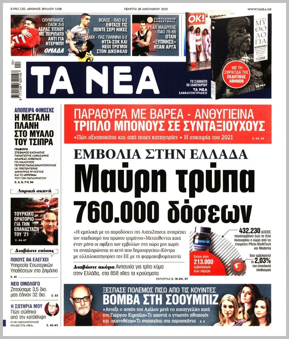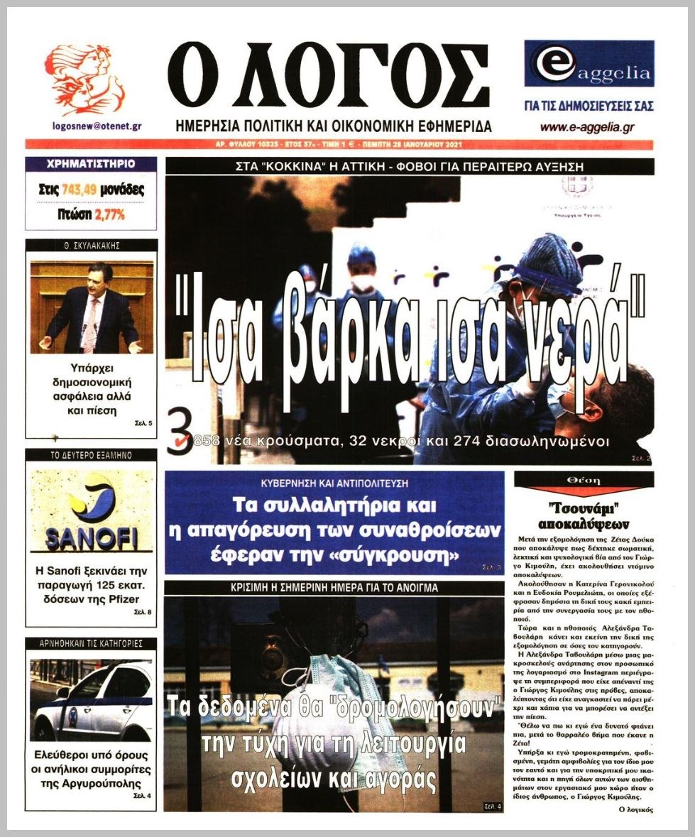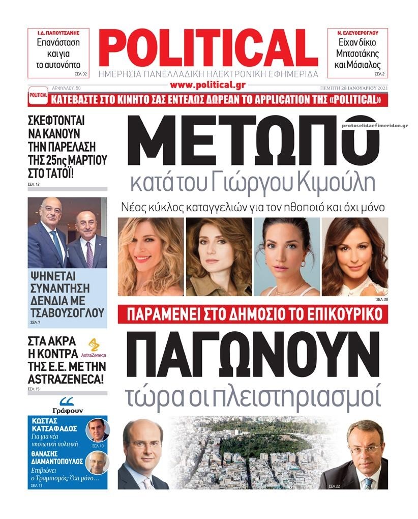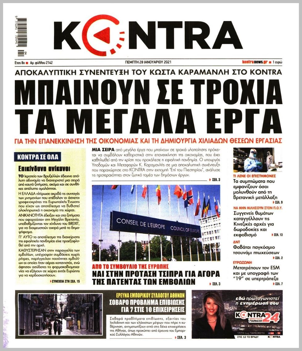 Οι πολιτικές εφημερίδες 28/1/2021 Διονύσης Νίκκας 06:07, Πέμπτη 28 Ιανουαρίου 2021 Media Διαβάστε τα πρωτοσέλιδα των πολιτικών εφημερίδων… ΕΦΗΜΕΡΙΔΕΣ ΠΟΛΙΤΙΚΕΣ ΕΦΗΜΕΡΙΔΕΣ ΠΡΩΤΟΣΕΛΙΔΑ Μοιράσου το: σχολίασε κι εσύ (0 σχόλια) Ακολουθήστε το enikos.gr στο Google News και μάθετε πρώτοι όλες τις ειδήσεις Δείτε όλες τις τελευταίες ειδήσεις από την Ελλάδα και τον Κόσμο στο enikos.gr Ειδήσεις Ροή Ειδήσεων 57 λεπτά πριν Γκύζη: Ιδιόχειρο σημείωμα άφησε ο 74χρονος που μαχαίρωσε την σύζυγό του και αυτοκτόνησε – Με τραύματα στο λαιμό νοσηλεύεται η 67χρονη 3 ώρες πριν Μπριζίτ Μπαρντό: Η ζωή και η καριέρα ενός μύθου που έγινε συνώνυμο της ομορφιάς – Ποια ήταν η θρυλική «Μπεμπέ» 5 ώρες πριν Καιρός: Προ των πυλών η ψυχρή εισβολή – Ποδαρικό με τσουχτερό κρύο θα κάνει το 2026, πού θα χιονίσει 2 ώρες πριν Γλυφάδα: Ποινική δίωξη στον Ivan Greko για το πλημμέλημα της αποδοχής προϊόντων εγκλήματος 4 ώρες πριν Παραμένουν στα μπλόκα οι αγρότες της δυτικής Θεσσαλίας – «Εμείς θα φύγουμε τελευταίοι» 59 λεπτά πριν Τα 4 ζώδια που προσελκύουν αφθονία και τύχη τον Ιανουάριο του 2026 – «Το νέο έτος μπαίνει με το δεξί» 6 ώρες πριν Από τα 150 στα 68 κιλά: Γυναίκα μοιράζεται το πρόγραμμα διατροφής και άσκησης που την βοήθησε να χάσει βάρος χωρίς στερήσεις 5 ώρες πριν Αν κάποιος συγγενής σας έχει αυτές τις 9 συμπεριφορές στις οικογενειακές συγκεντρώσεις, πιθανότατα είναι βαθιά δυστυχισμένος 2 ώρες πριν Η απλή χημική λύση που μπορεί να φέρει επανάσταση στις μπαταρίες ροής 2 λεπτά πριν Κουίζ για την παλιά Αθήνα: Αναγνωρίζετε την οδό; Έχετε περάσει 100% από εκεί 10 λεπτά πριν Τρόμος στον Ταύρο: Μαχαίρωσε υπάλληλο πρακτορείου τυχερών παιχνιδιών, την κλείδωσε σε γραφείο και άρπαξε 10.000 ευρώ 18 λεπτά πριν Κρίσιμες βουλευτικές εκλογές στο Κόσοβο – Το φαβορί για τη νίκη και τα σενάρια για σχηματισμό κυβέρνησης 26 λεπτά πριν Αγρότες: Διακόπτεται εκ νέου η κυκλοφορία των φορτηγών αυτοκινήτων στον κόμβο του Ορμενίου και το Τελωνείο των Κήπων 34 λεπτά πριν Ιωάννης Παπαζήσης: Δεν μπορούσα να καταλάβω ποτέ την ανωτερότητα του σκηνοθέτη απέναντι στον ηθοποιό ENIKOS NETWORK Η εκπληκτική ηλικία που κορυφώνεται η σωματική δύναμη – Πότε κατέγραψαν τα ρεκόρ τους Federer και Modric Μακροζωία: Οι 4 «χρυσοί» κανόνες που νικούν το χρόνο – Τι ανακάλυψαν κορυφαίοι επιστήμονες στην Ιαπωνία Νέο κρατικό επίδομα γέννησης ύψους έως και 3.000 ευρώ- Όλες οι λεπτομέρειες Νέα προκήρυξη ΑΣΕΠ για προσλήψεις στο Δημόσιο μετά την Πρωτοχρονιά 2026: Αυτές είναι οι ειδικότητες που ζητούνται -Πότε αρχ... Ο Google Assistant θα παραμείνει λίγο περισσότερο για ορισμένους χρήστες Android Τεστ προσωπικότητας: Το βάζο που θα επιλέξετε αποκαλύπτει πώς λύνετε προβλήματα στη ζωή σας περισσότερα 11:22 , Κυριακή 28 Δεκεμβρίου 2025 Τηλεθέαση (27/12): Τα ποσοστά για το βράδυ του Σαββάτου Η «μάχη» της prime time για την τηλεθέαση, συνεχίστηκε δυναμικά το βράδυ του Σαββάτου (27/12).... 10:14 , Κυριακή 28 Δεκεμβρίου 2025 Τηλεθέαση (27/12): Πώς κινήθηκαν οι εκπομπές στην πρωινή ζώνη το Σάββατο Συνεχίστηκε η μάχη για την τηλεθέαση στην πρωινή ζώνη των τηλεοπτικών καναλιών το Σάββατο (27/... 09:49 , Κυριακή 28 Δεκεμβρίου 2025 Η Realnews στο www.pressreader.com Διαβάστε την ψηφιακή έκδοση της εφημερίδας στην οθόνη του κινητού, του tablet και του υπολογισ... 07:02 , Κυριακή 28 Δεκεμβρίου 2025 Σήμερα με τη Realnews: Ό,τι και αν αγοράσεις, σκανάρεις και κερδίζεις! Σήμερα με τη Realnews: Ό,τι και αν αγοράσεις, σκανάρεις και κερδίζεις! Με το PADU app, το κορυ... ΤΕΛΕΥΤΑΙΕΣ ΕΙΔΗΣΕΙΣ 10 λεπτ